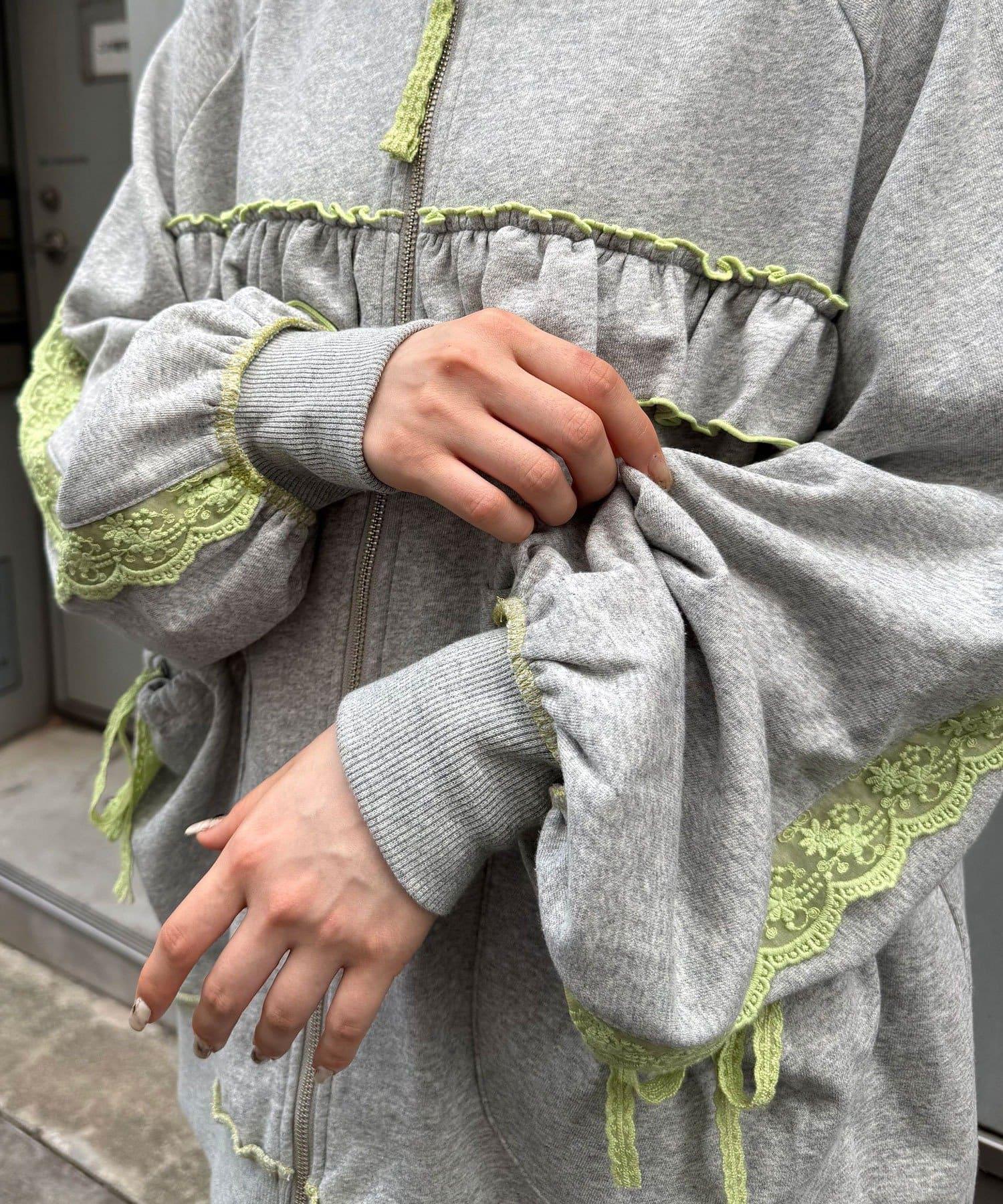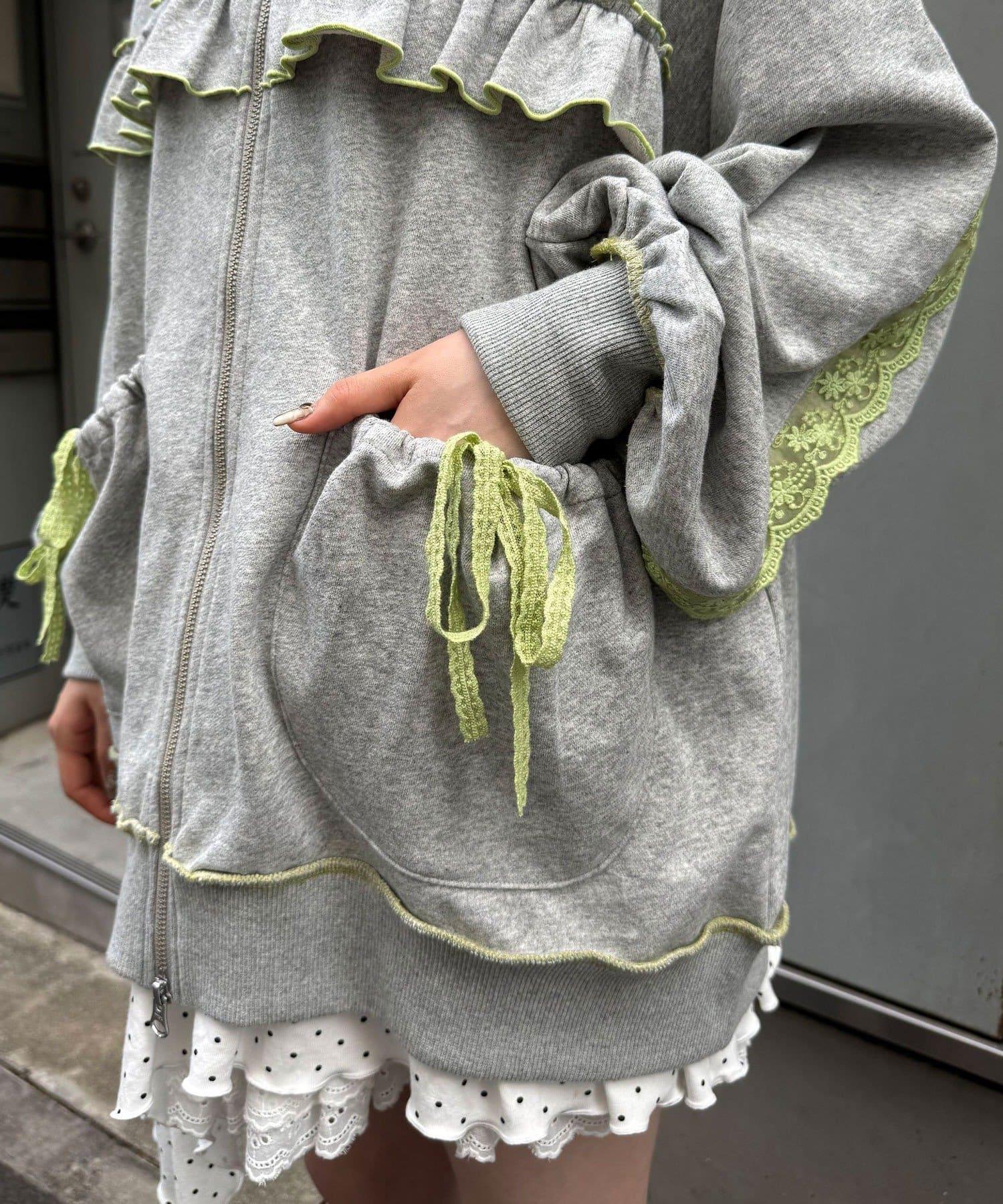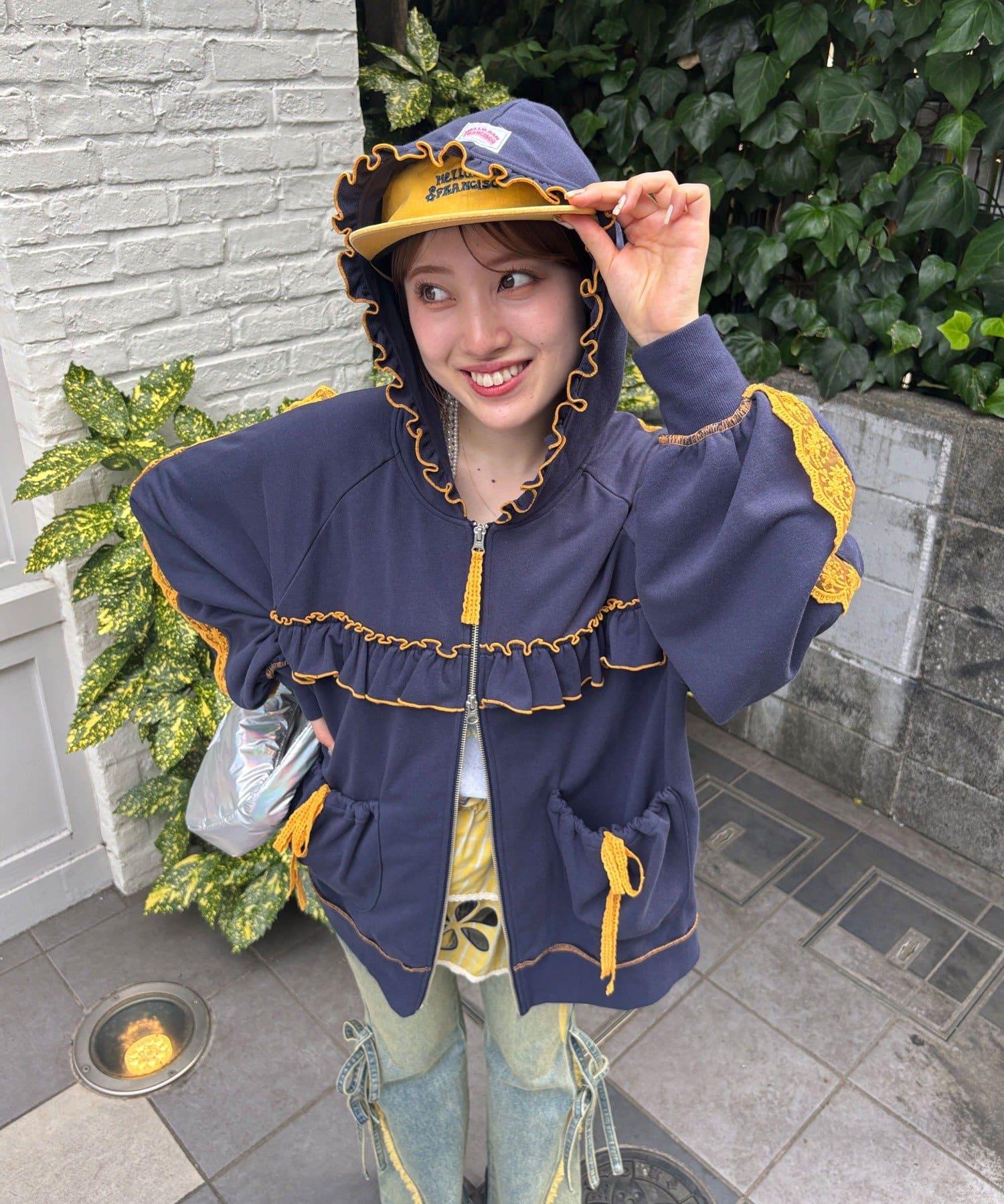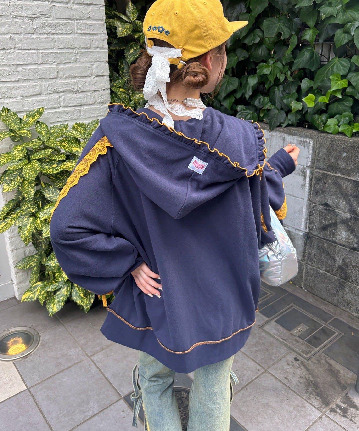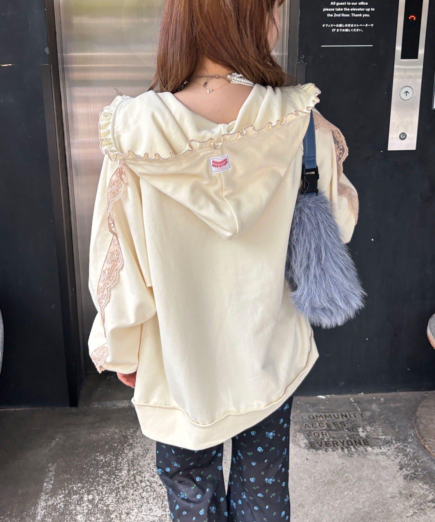 【あやっち(@_acoba_)企劃】【HELLO.SANFRANCISCO/你好,舊金山】配色柔和褶邊蕾絲帽衫