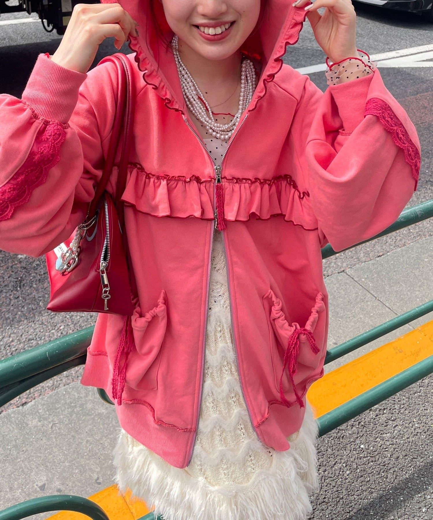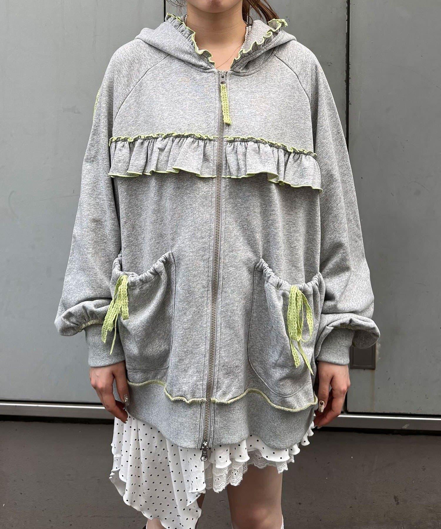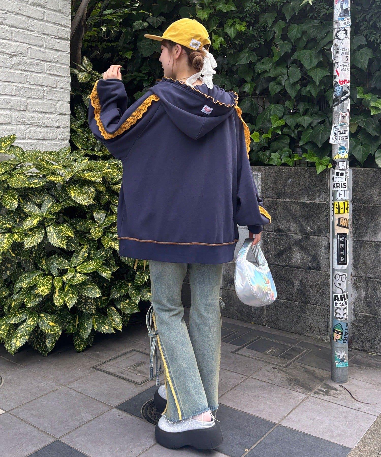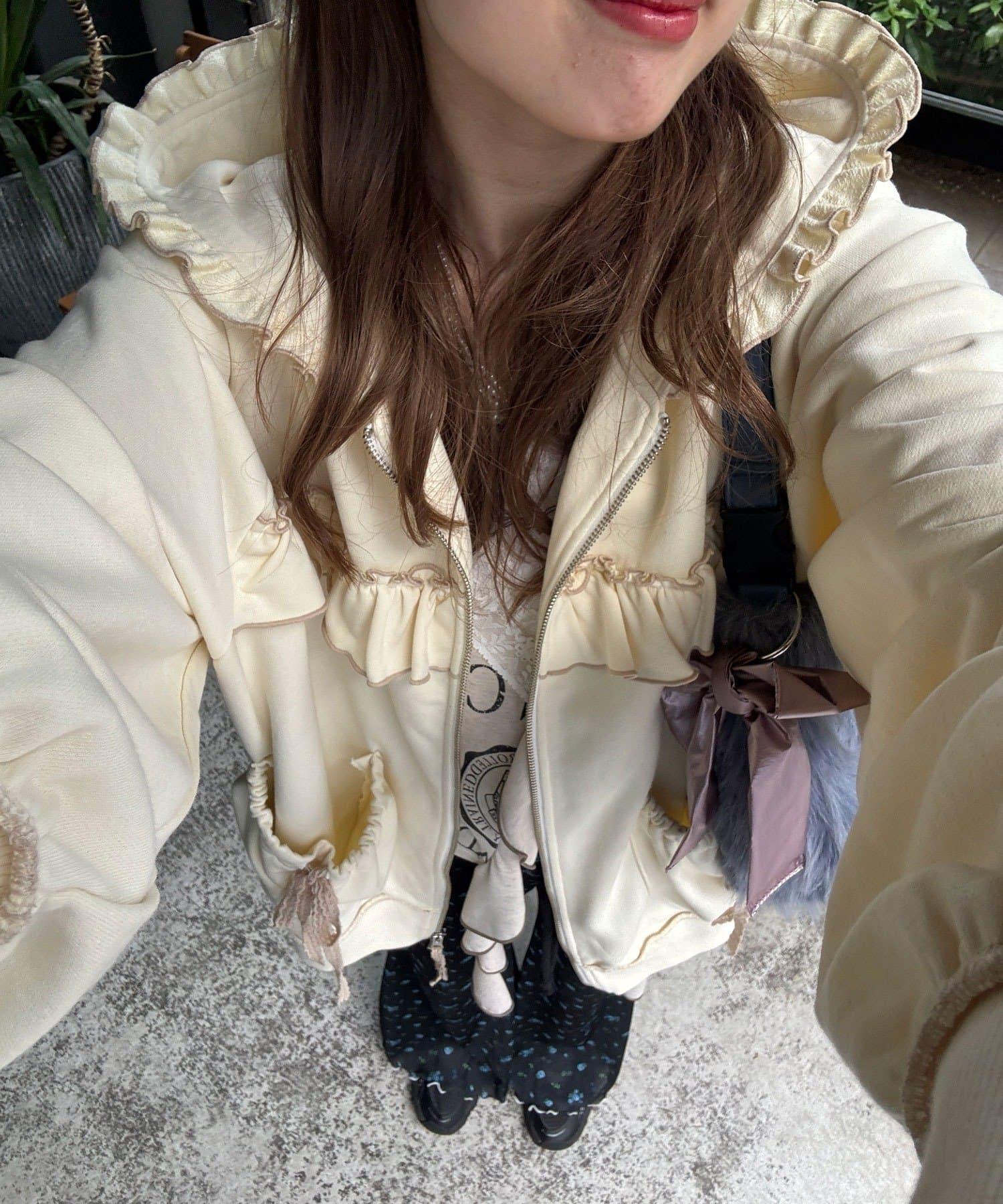 【あやっち(@_acoba_)企劃】【HELLO.SANFRANCISCO/你好,舊金山】配色柔和褶邊蕾絲帽衫