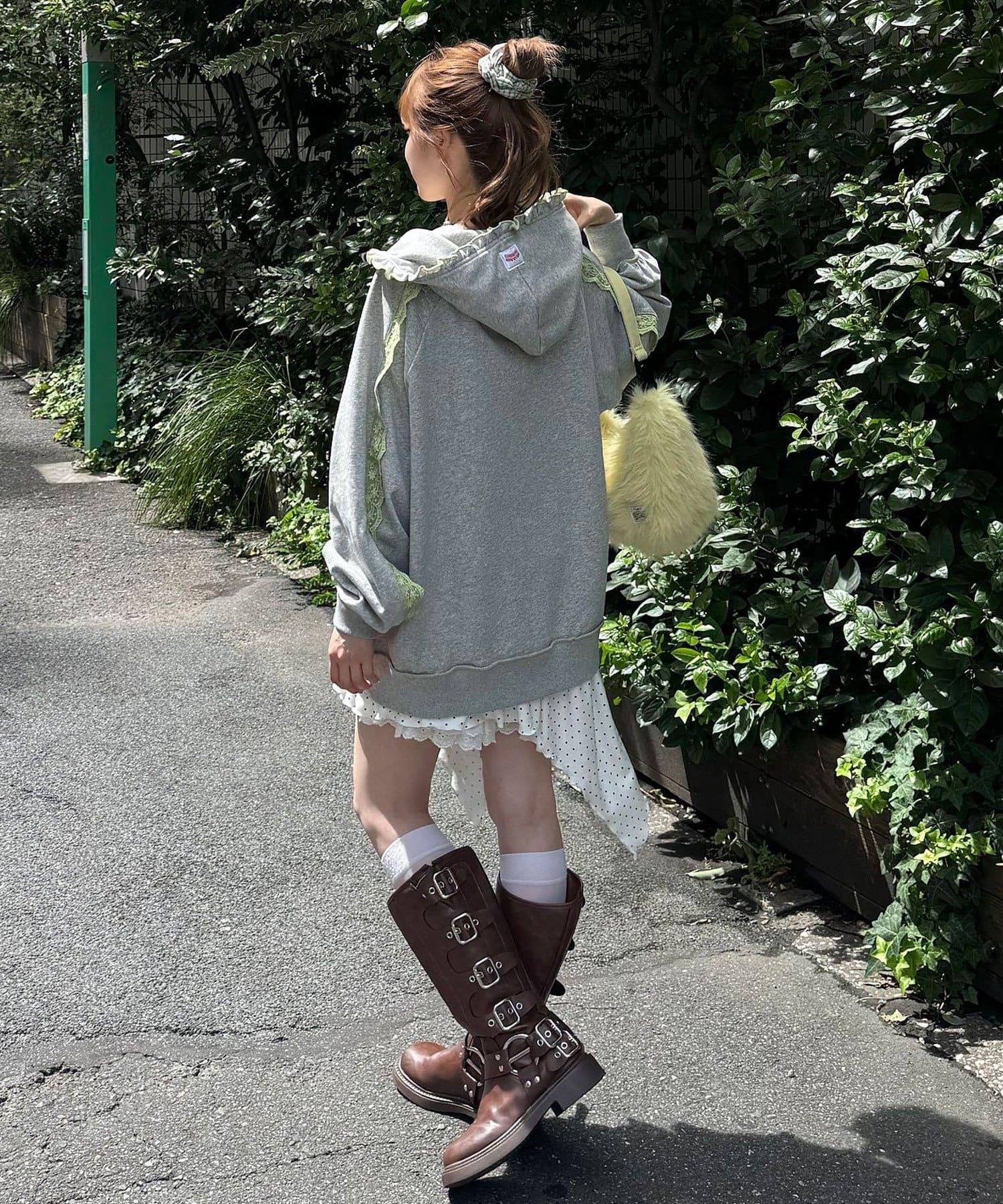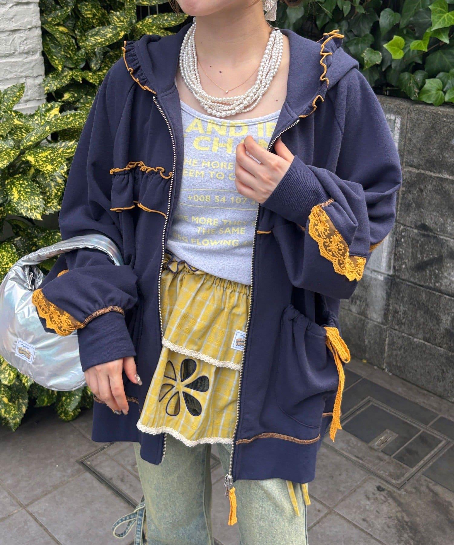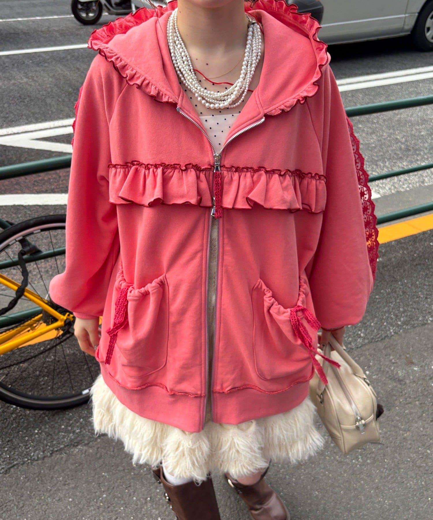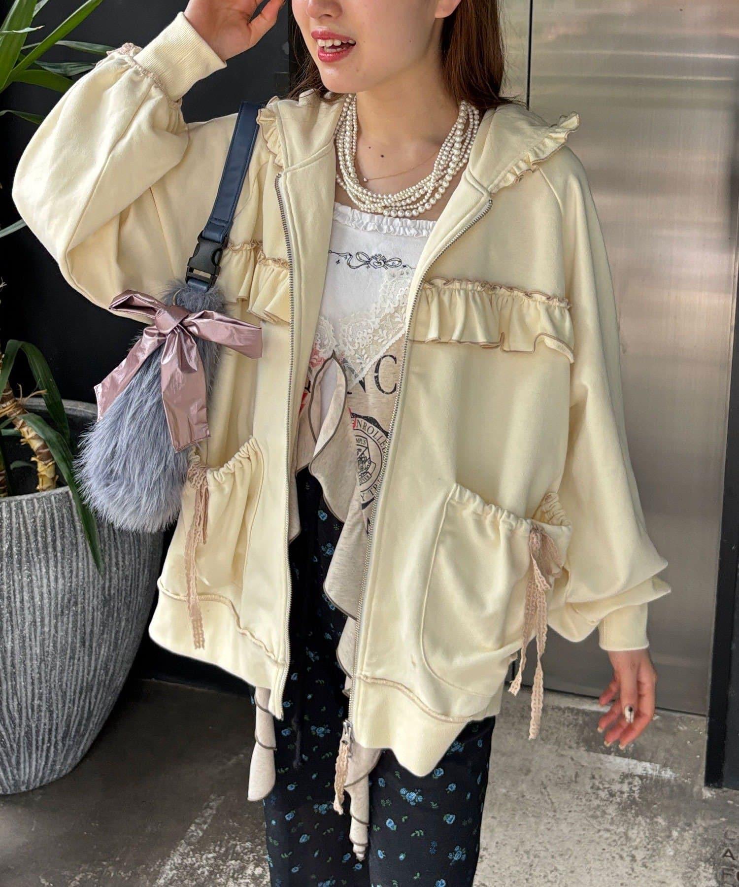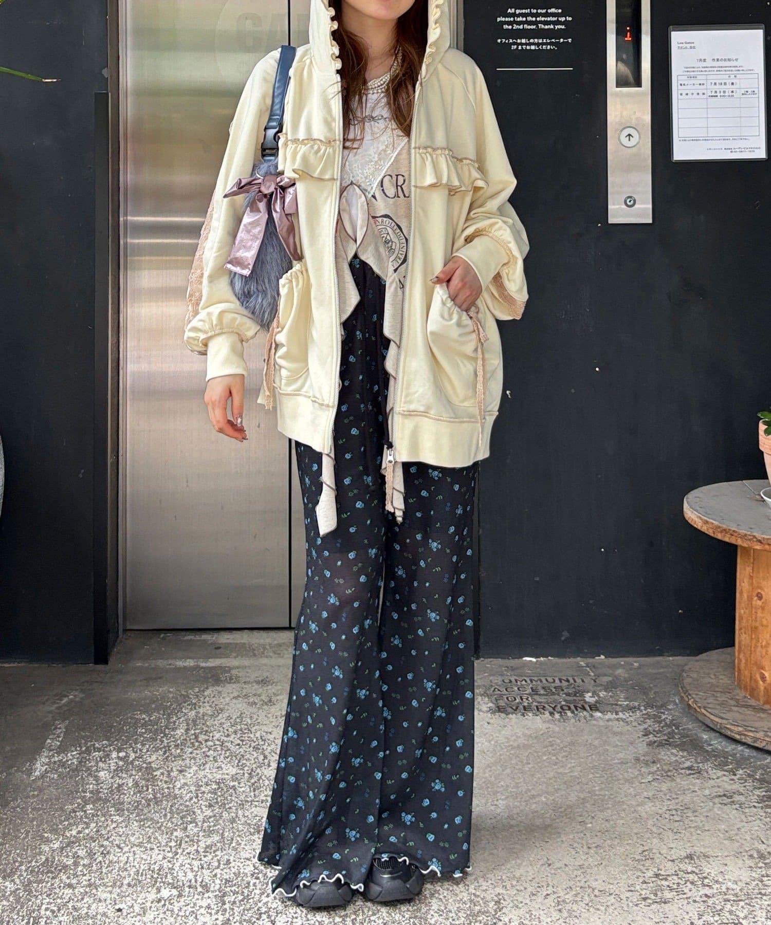 【あやっち(@_acoba_)企劃】【HELLO.SANFRANCISCO/你好,舊金山】配色柔和褶邊蕾絲帽衫