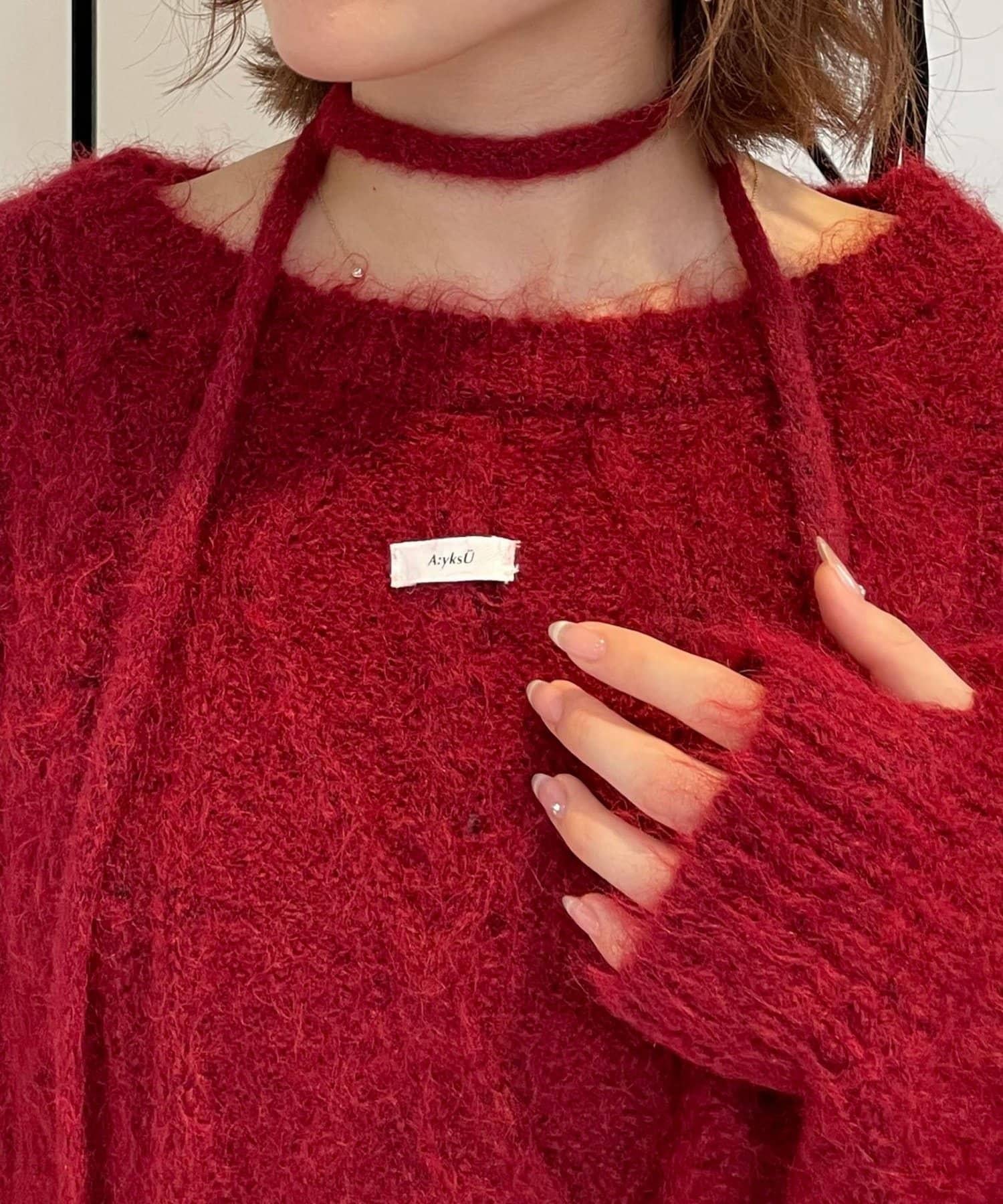【あやっち(@_acoba_)企畫】麻花編織蝴蝶結流蘇一字肩針織衫