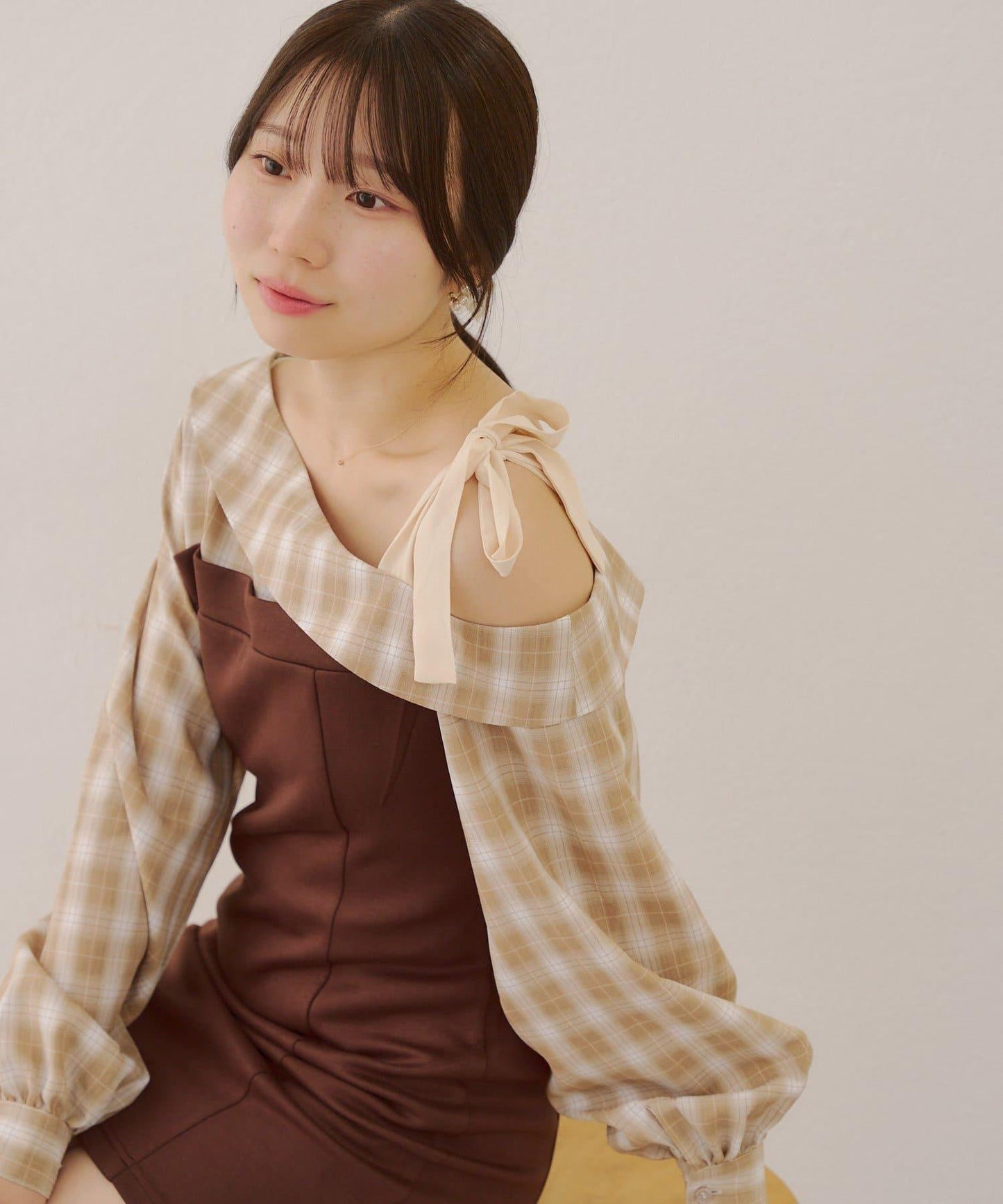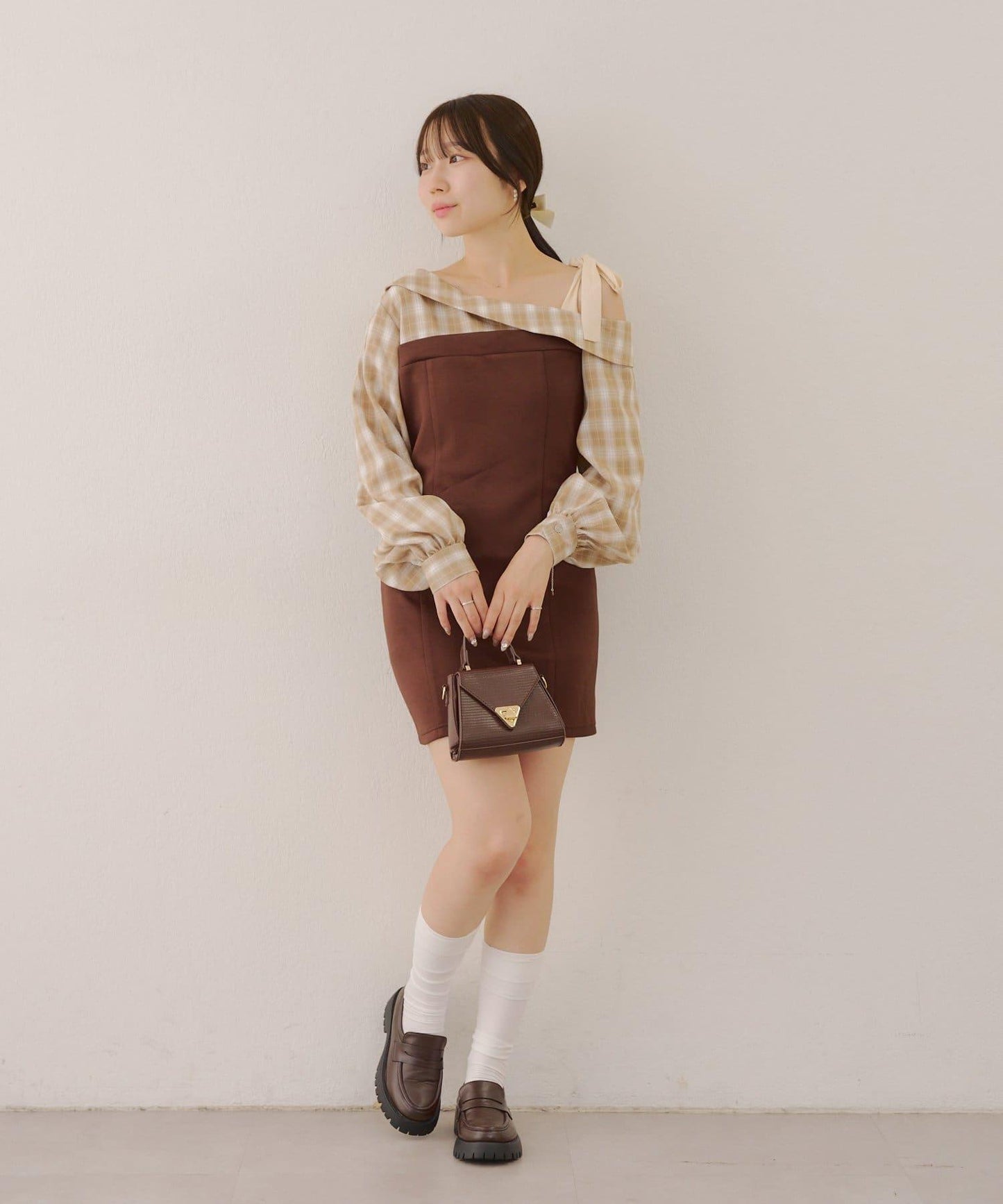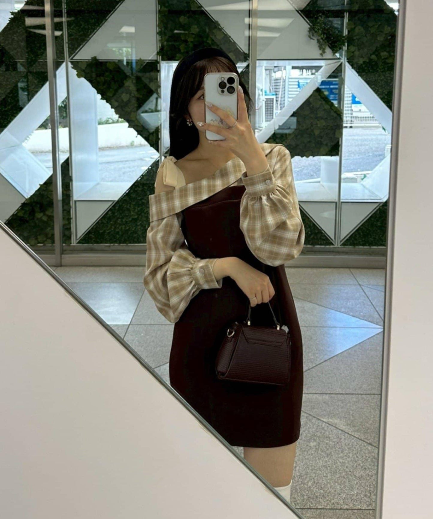 從衣領到袖子的格紋圖案,給人一種秋天的可愛感覺 ♡♡♡