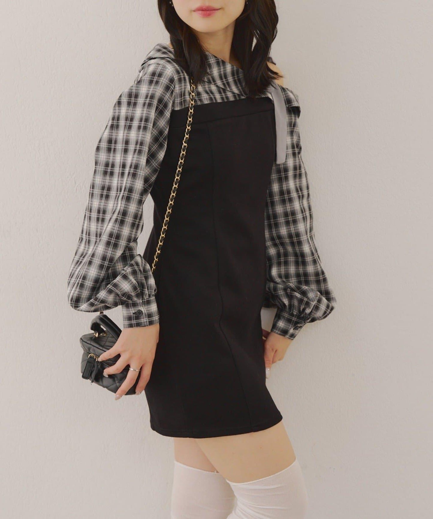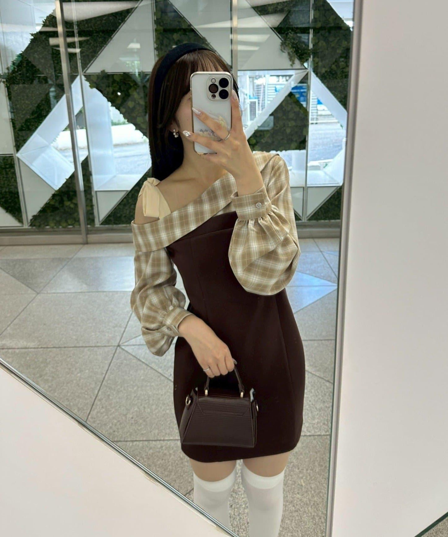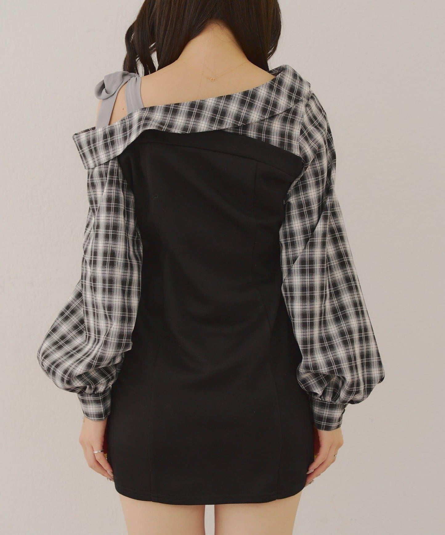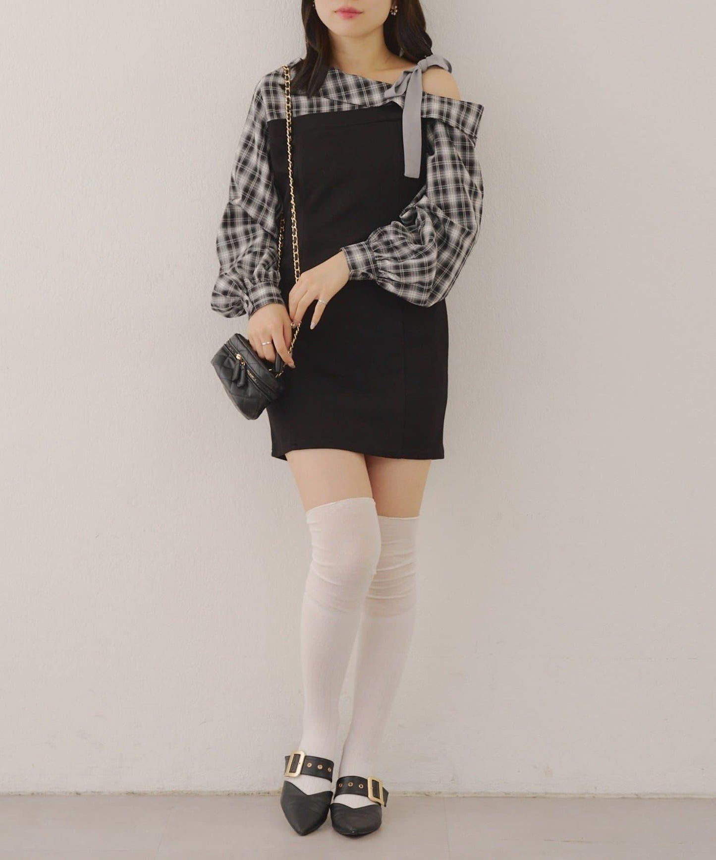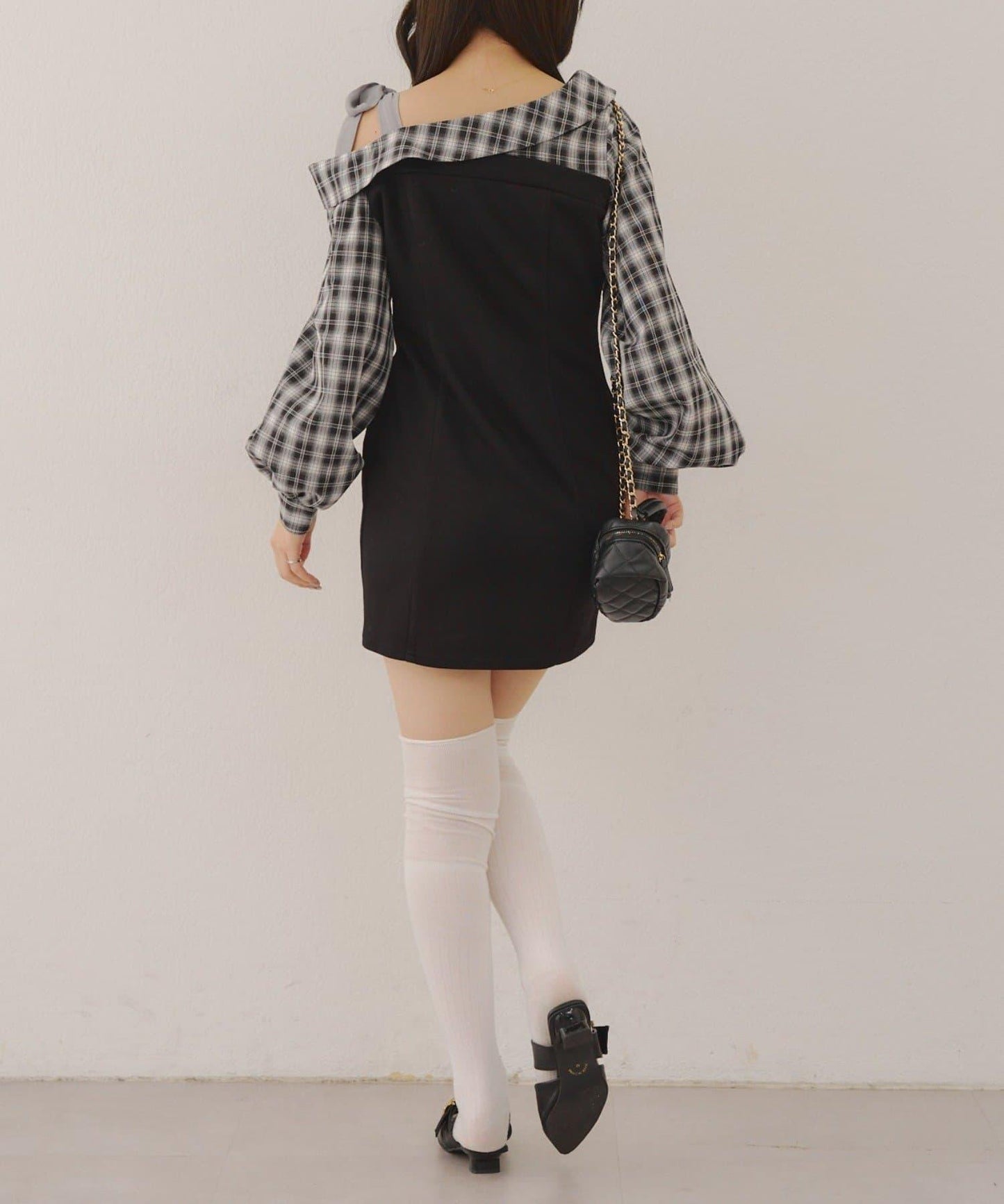 【あゆな@ayupi.06セレクト】拼接單肩迷你連衣裙
