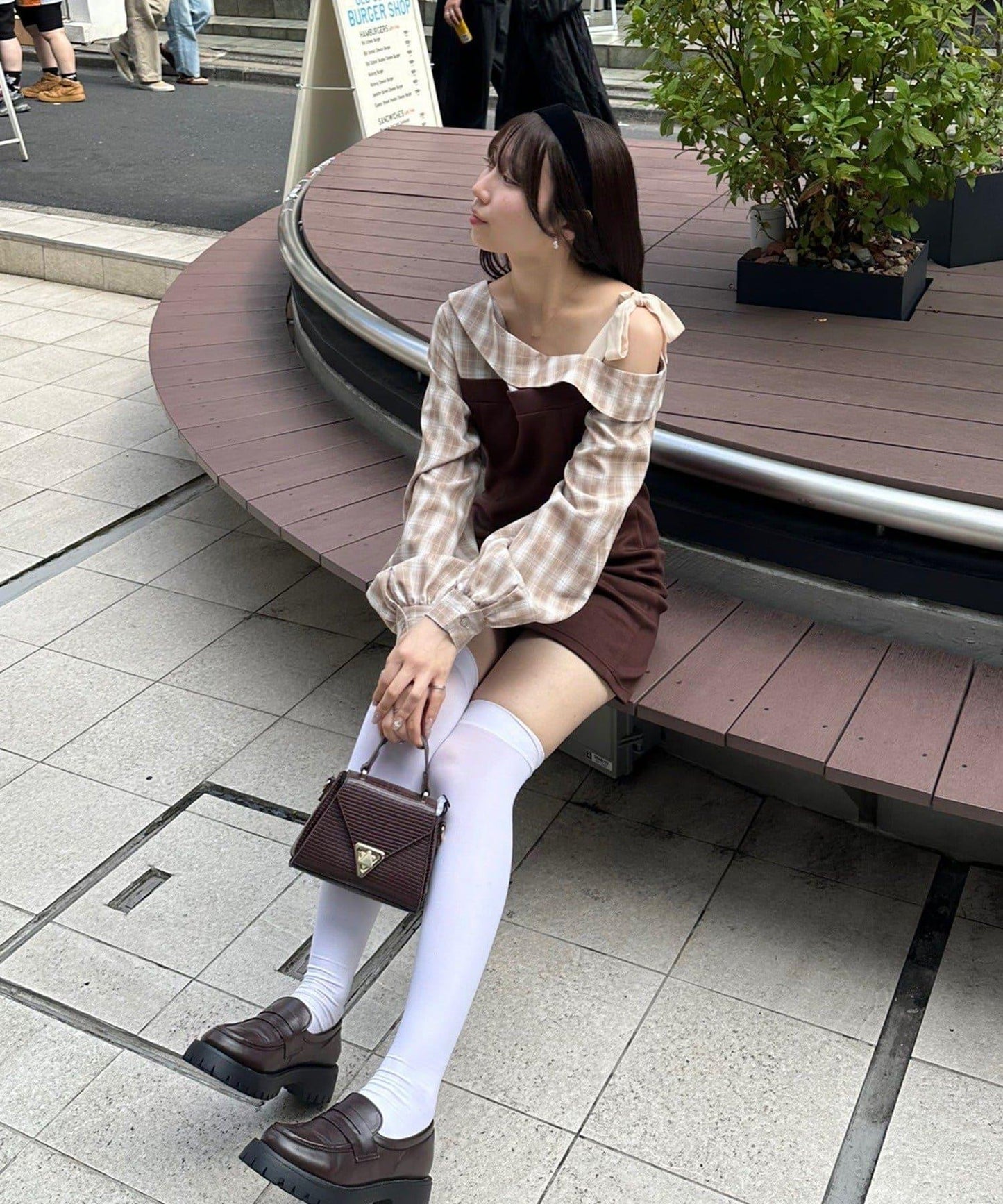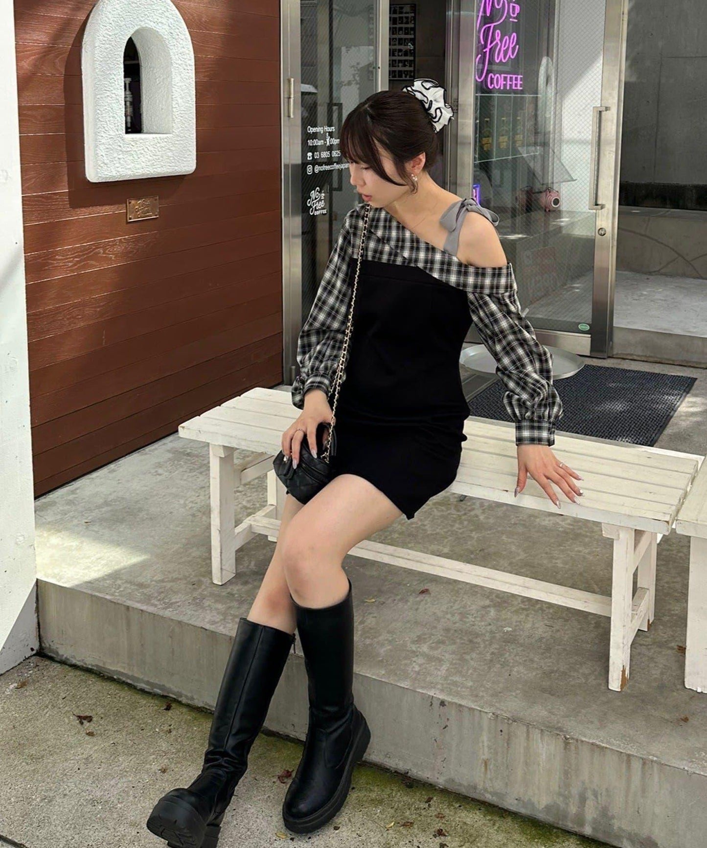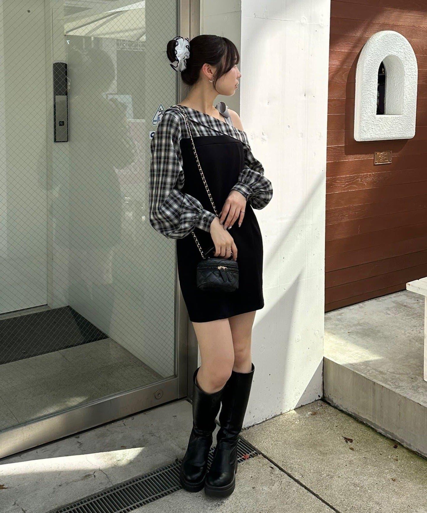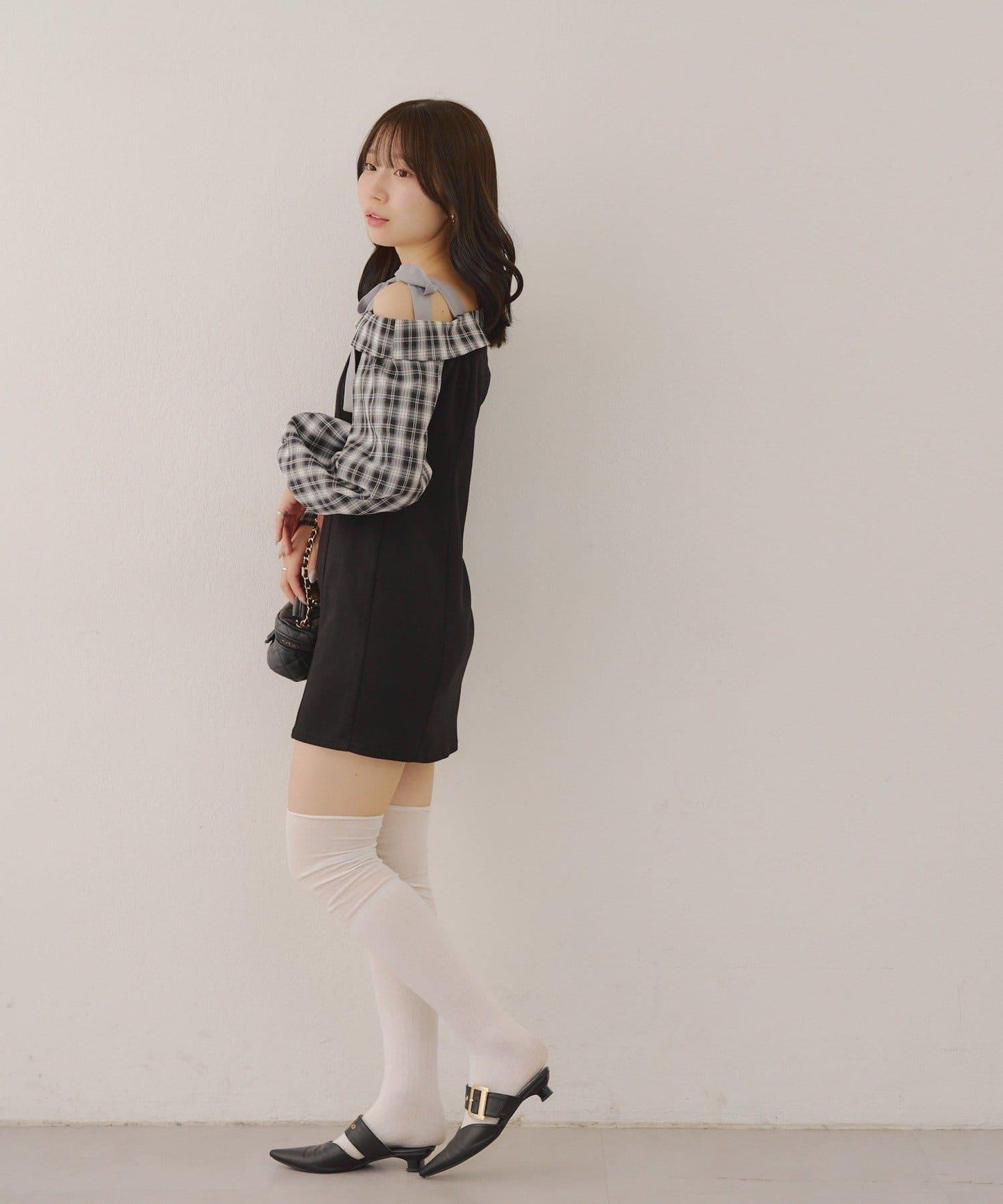 這款連衣裙的設計是為了搭配高筒襪和長筒靴時給人可愛的印象!