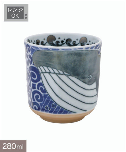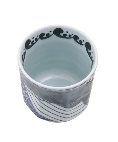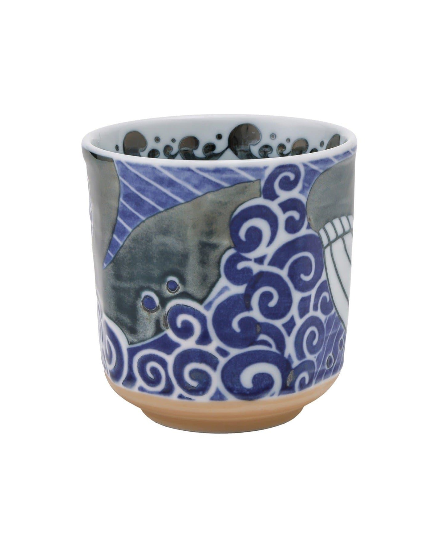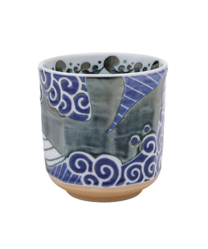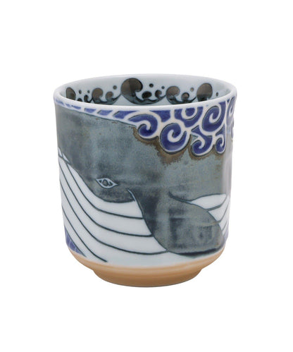 這款茶杯上的鯨魚在蔚藍的大海中暢遊,充滿活力。