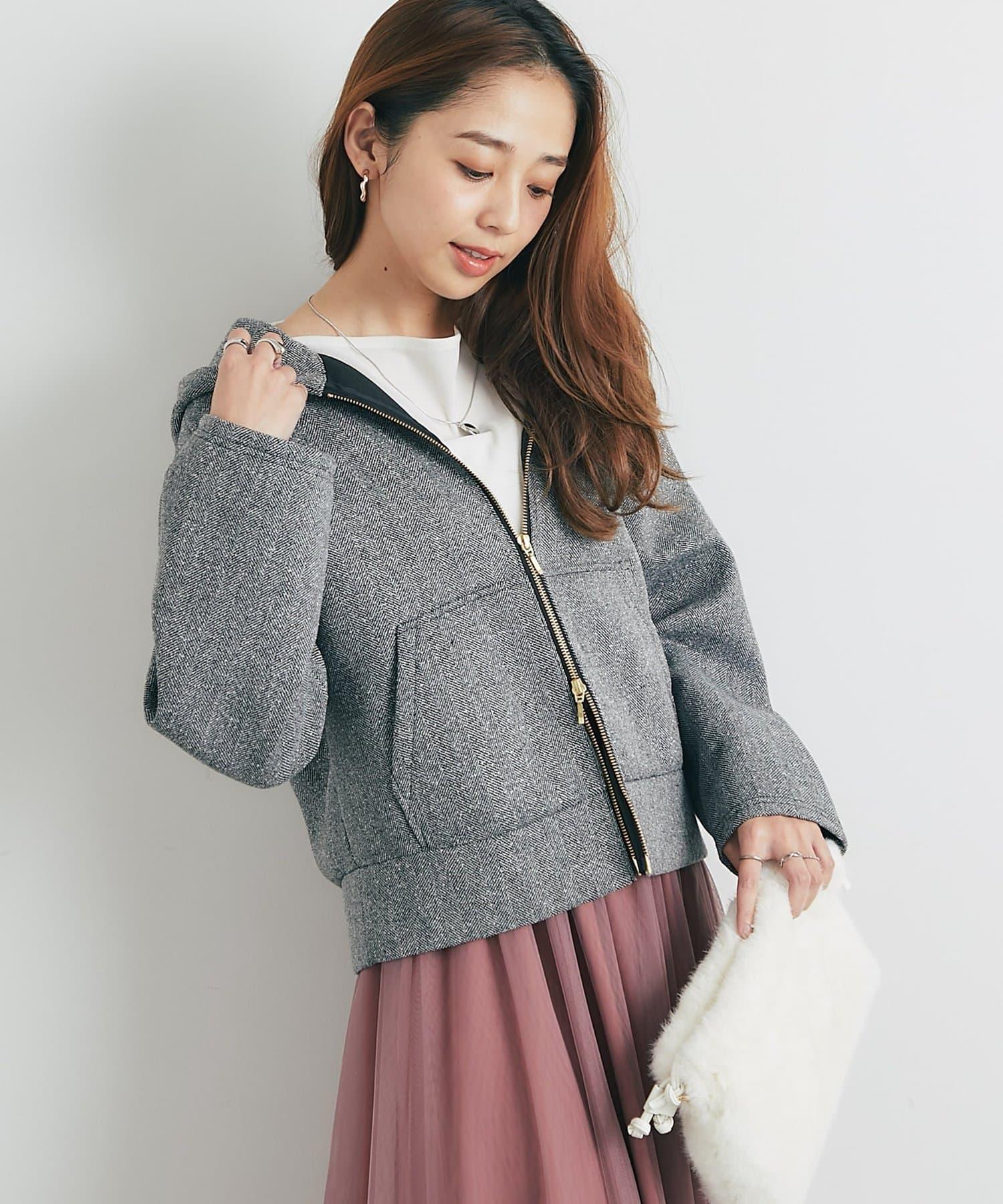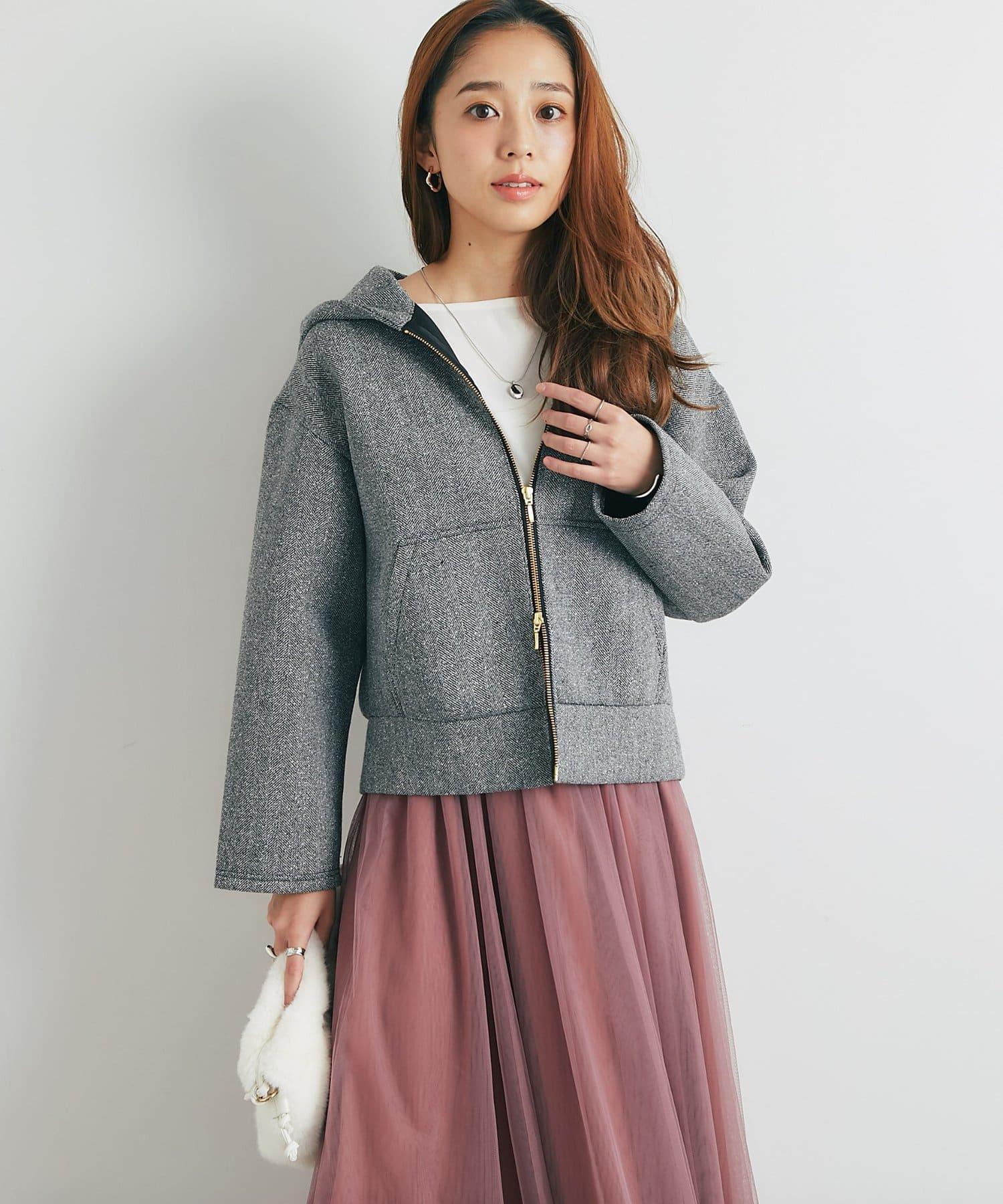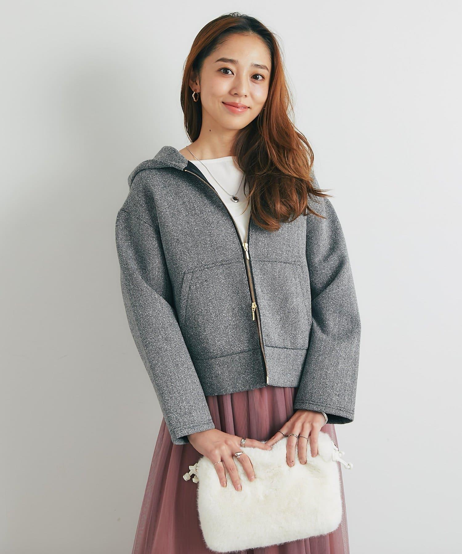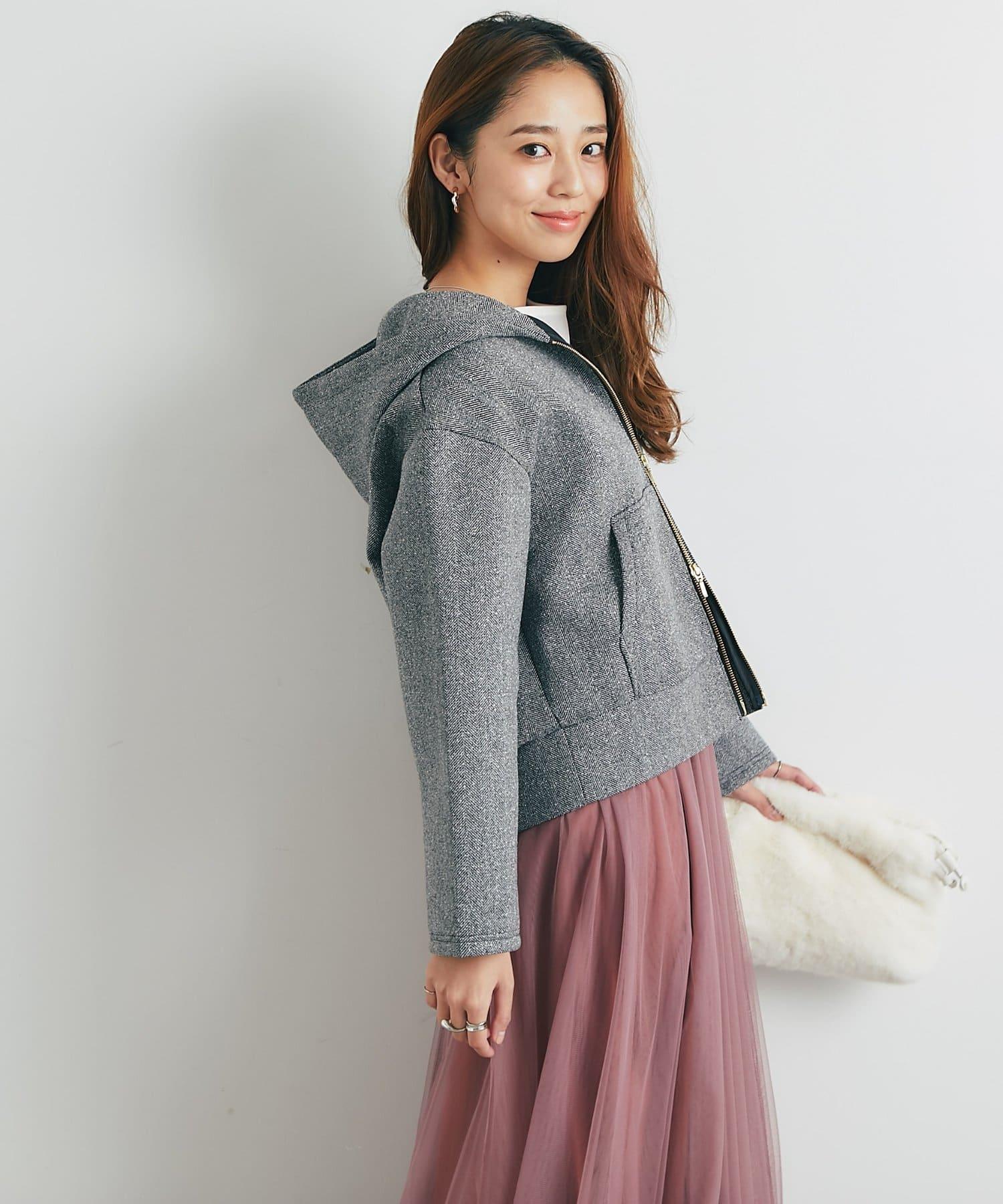 《こなれ感を演出》粗花呢粘合連帽衛衣