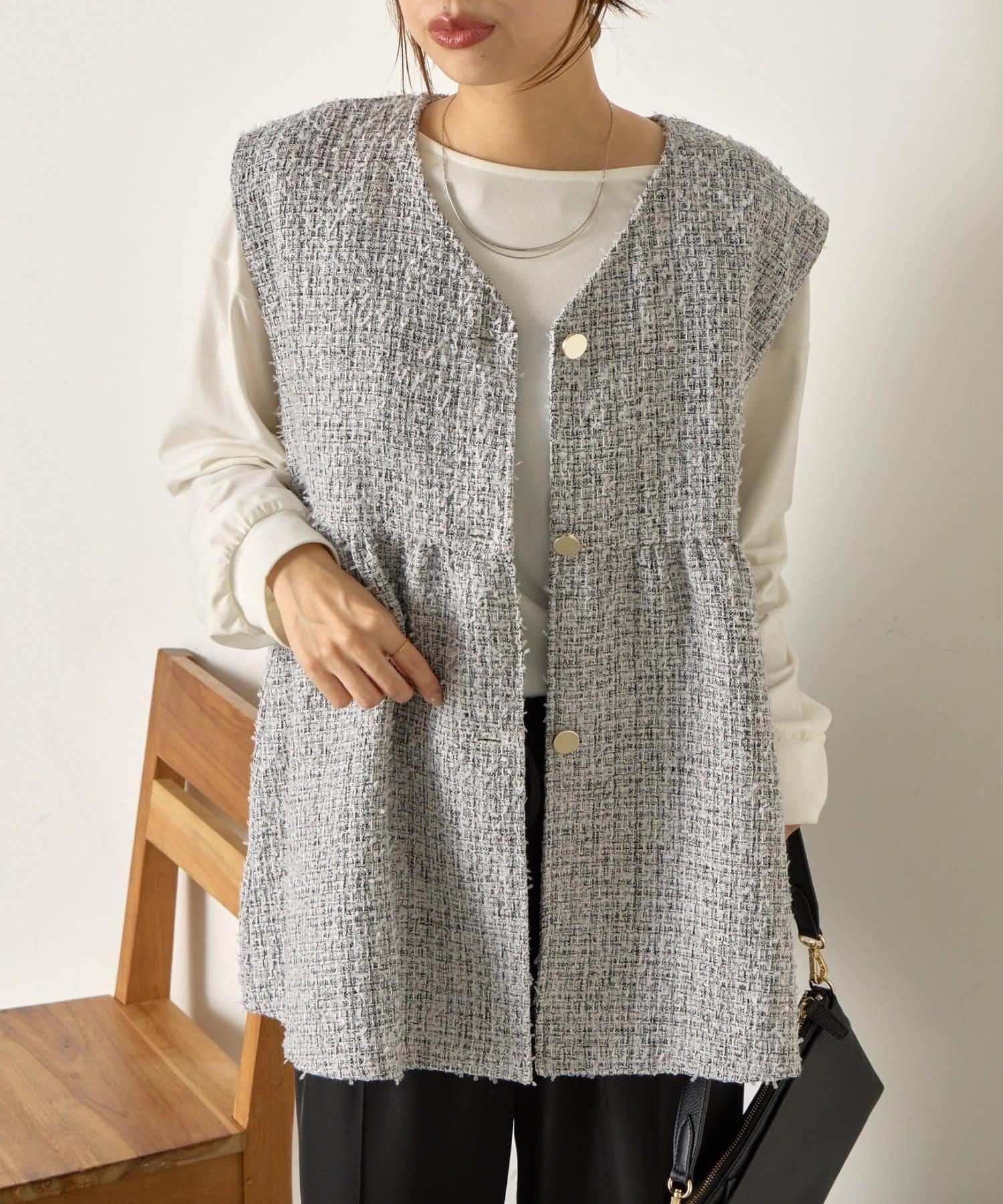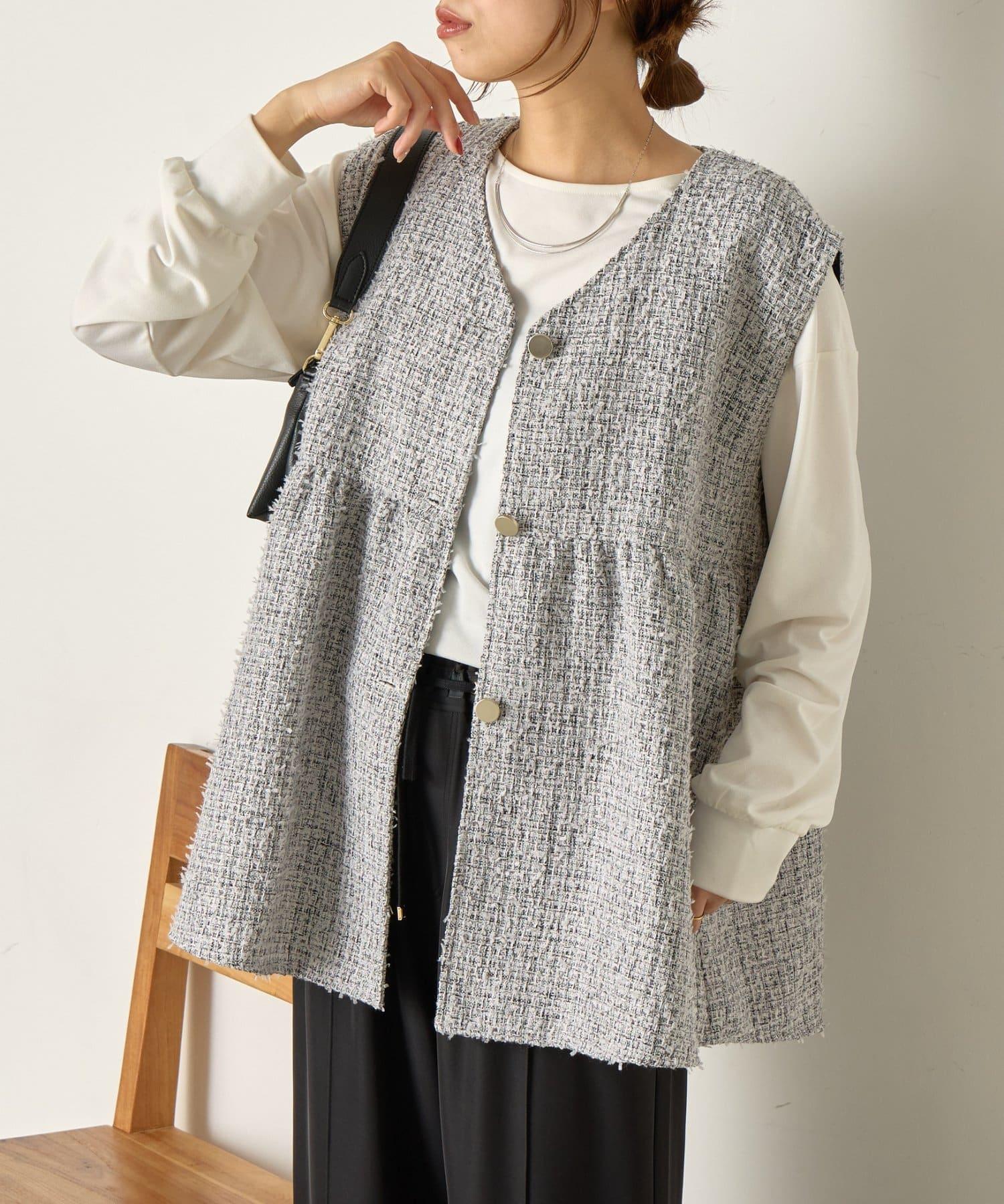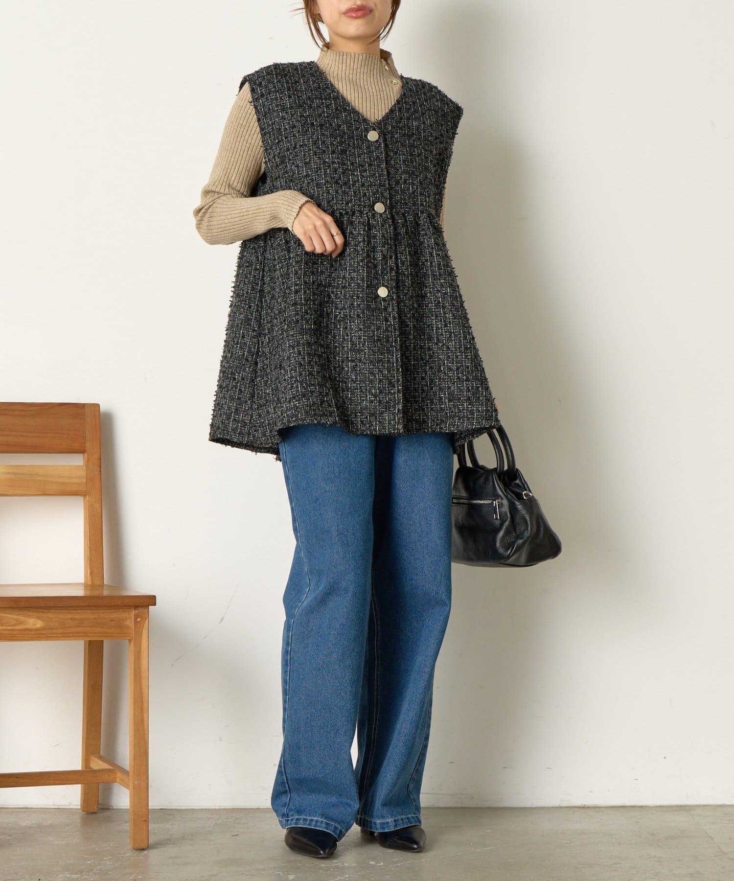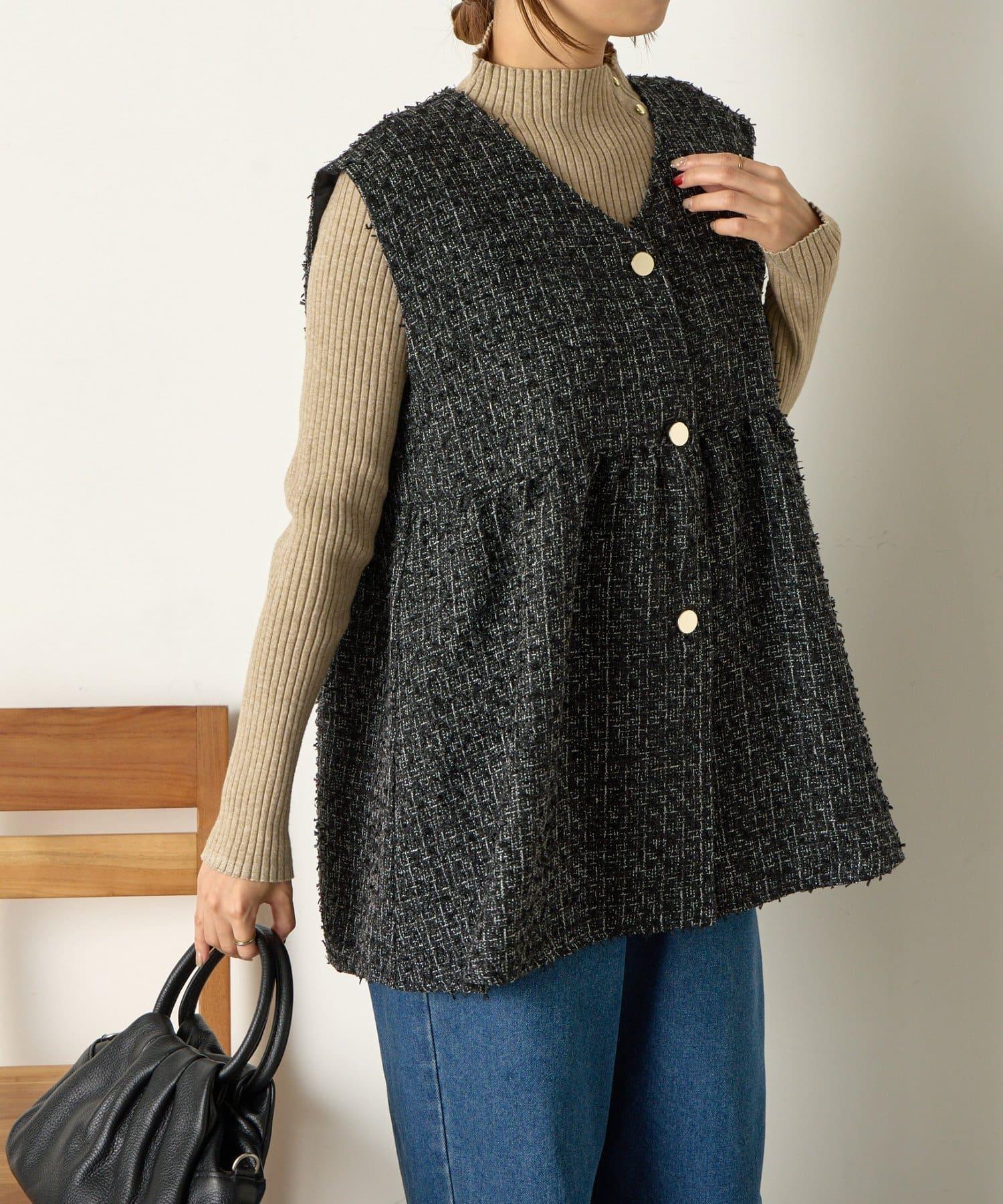 預約商品【さわゆい企畫】粗花呢荷葉邊馬甲