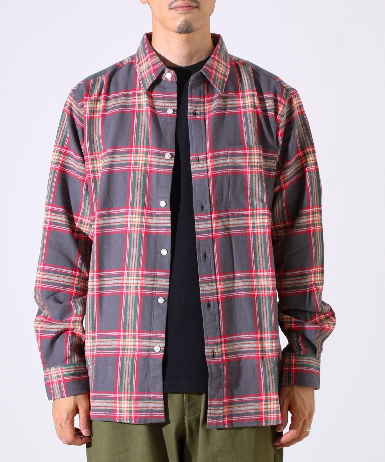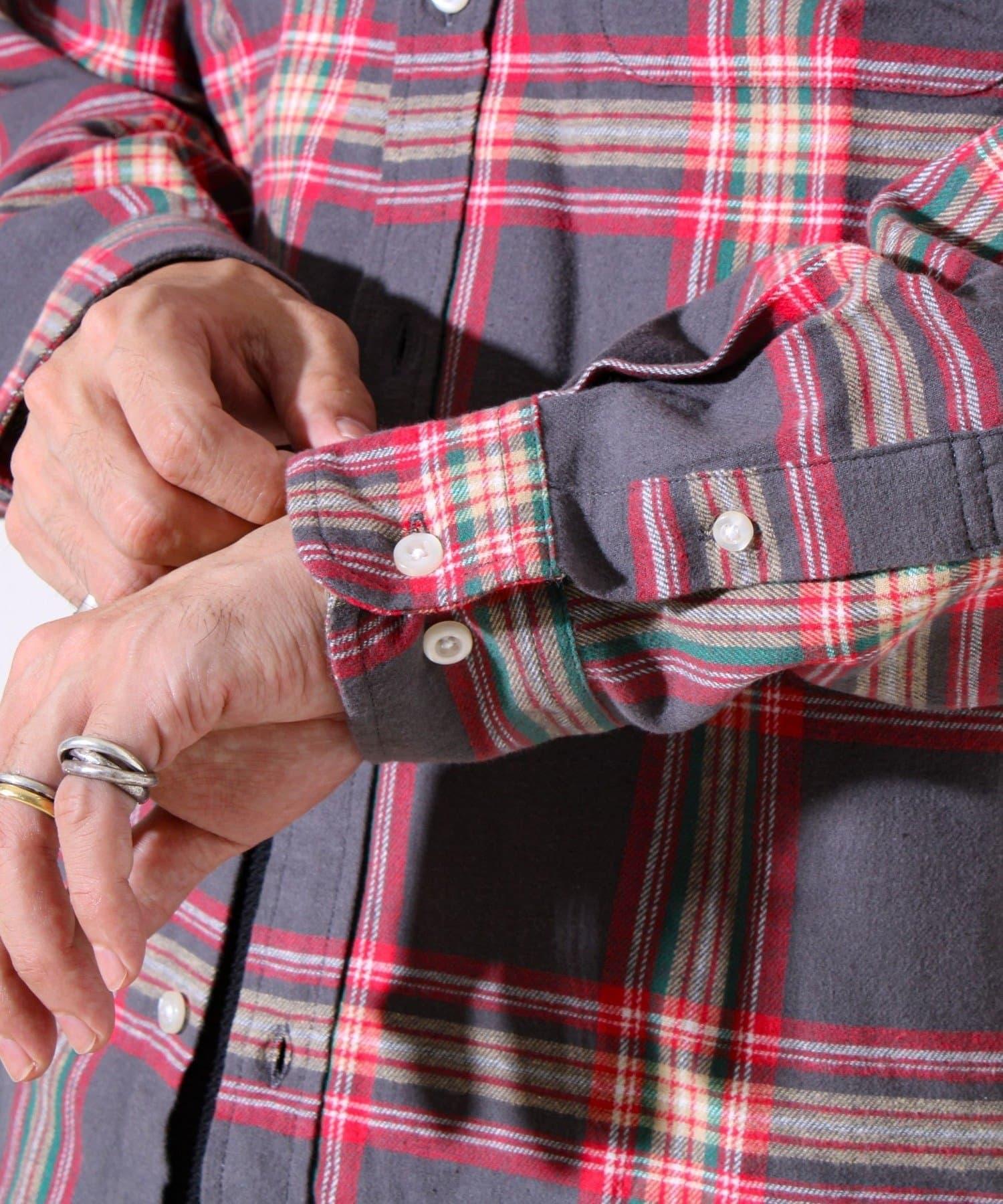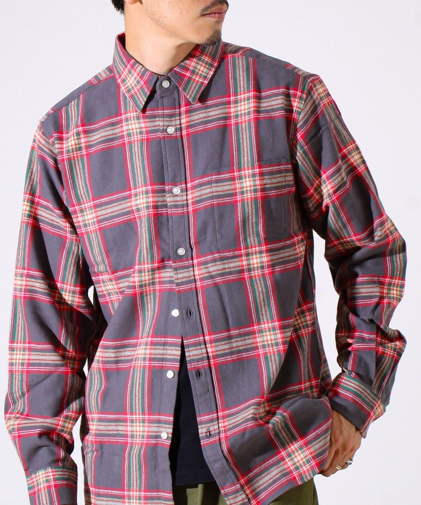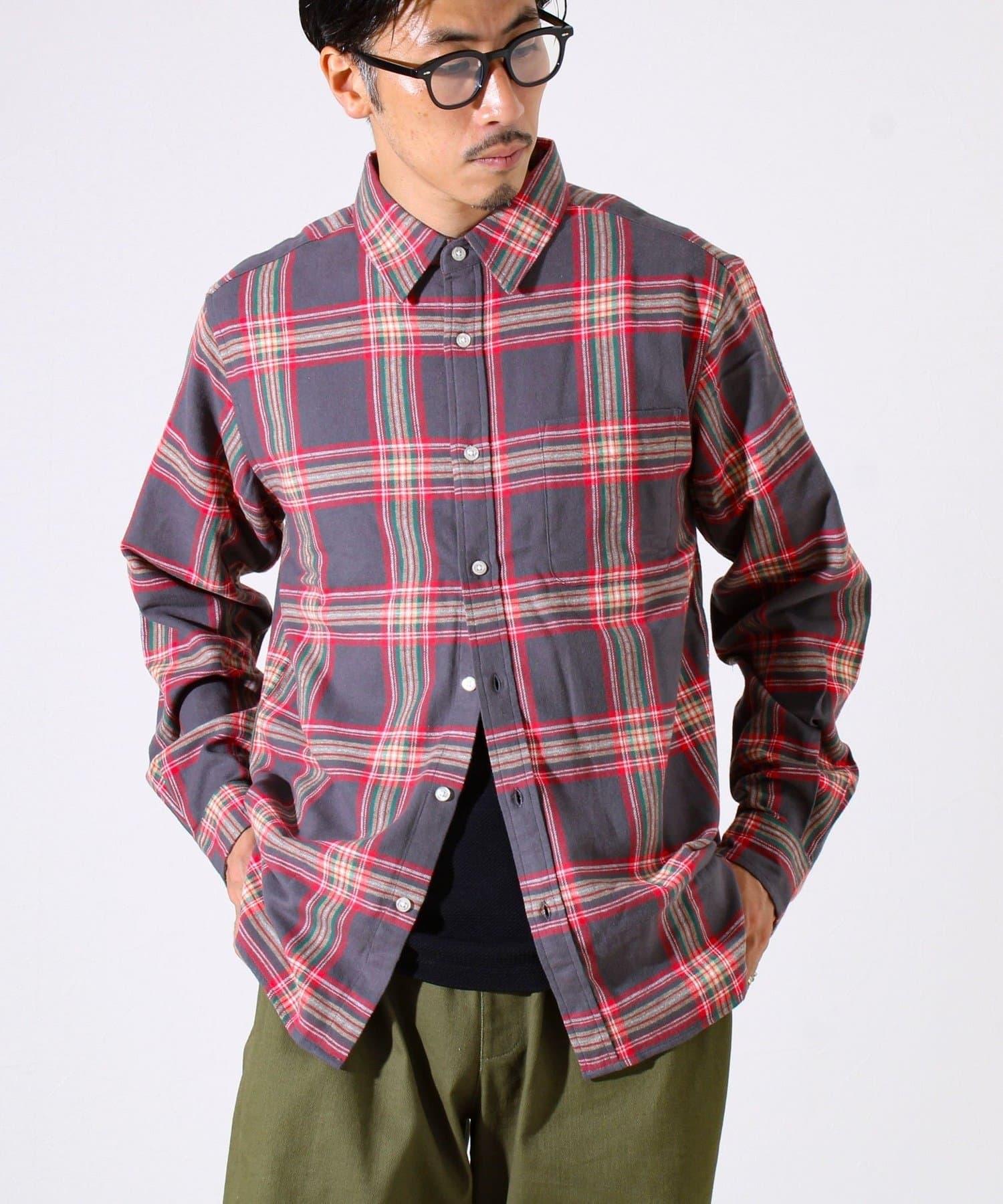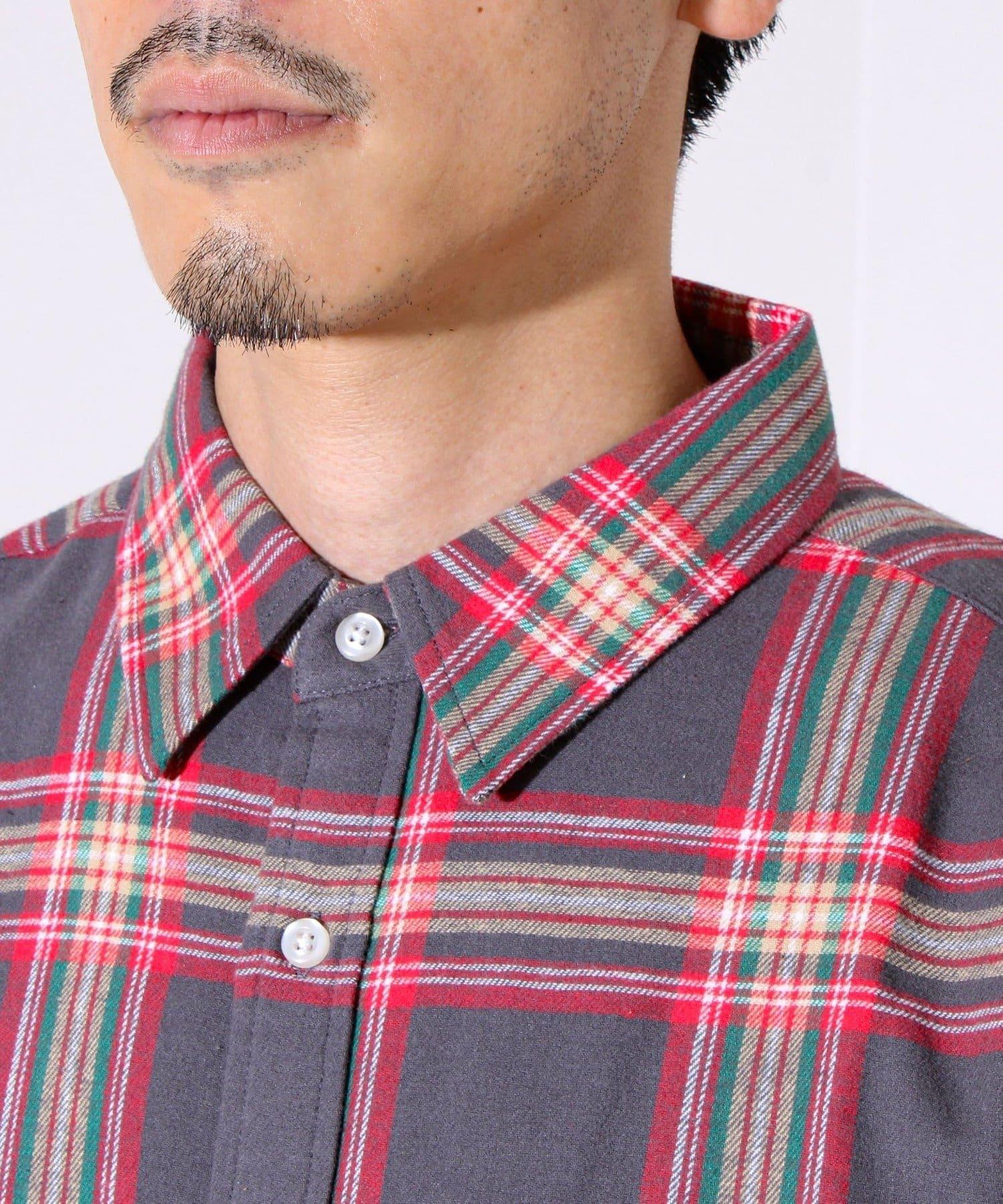 <つぶし衿>U.S.COTTON混合常規領格子法蘭絨襯衫