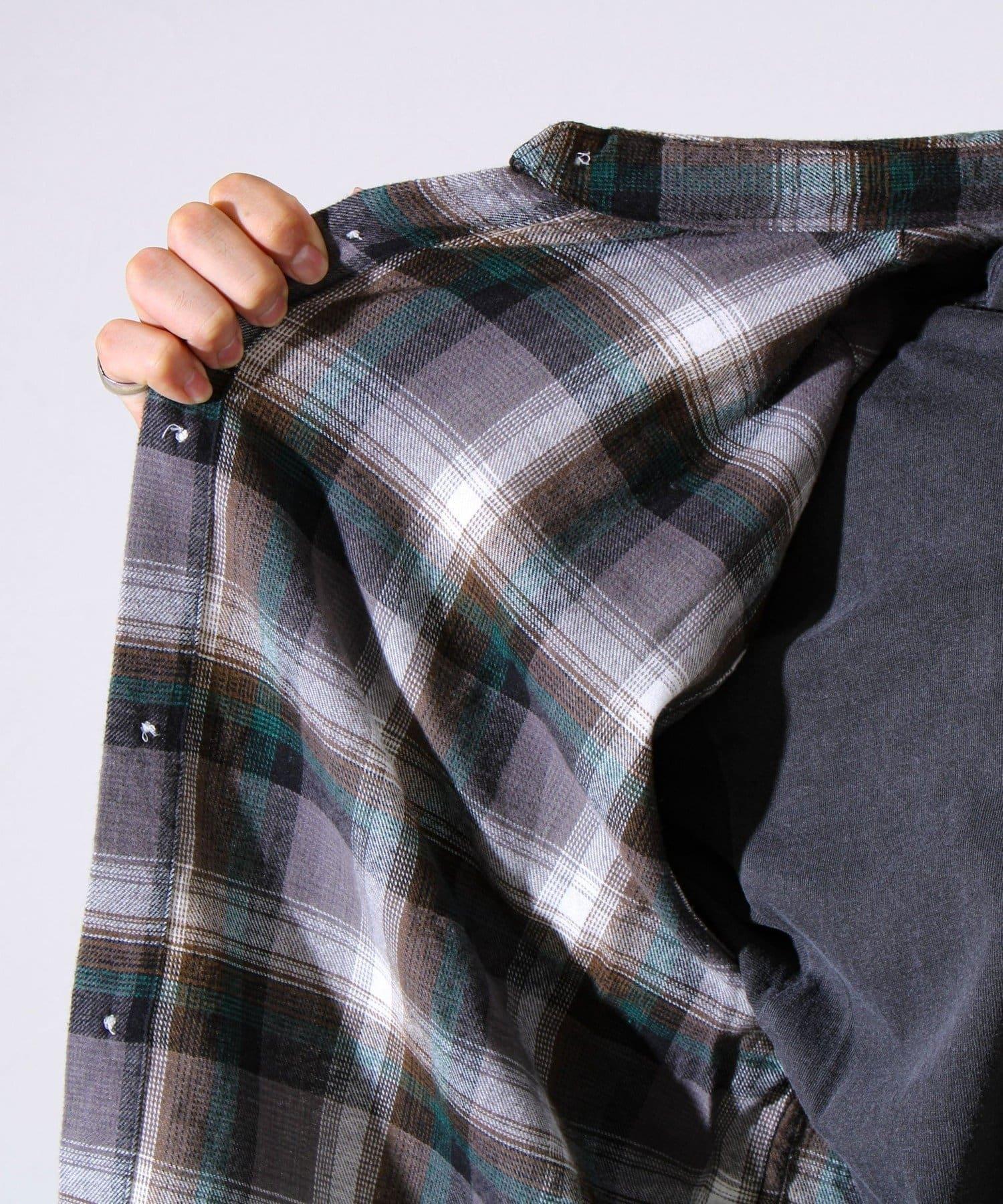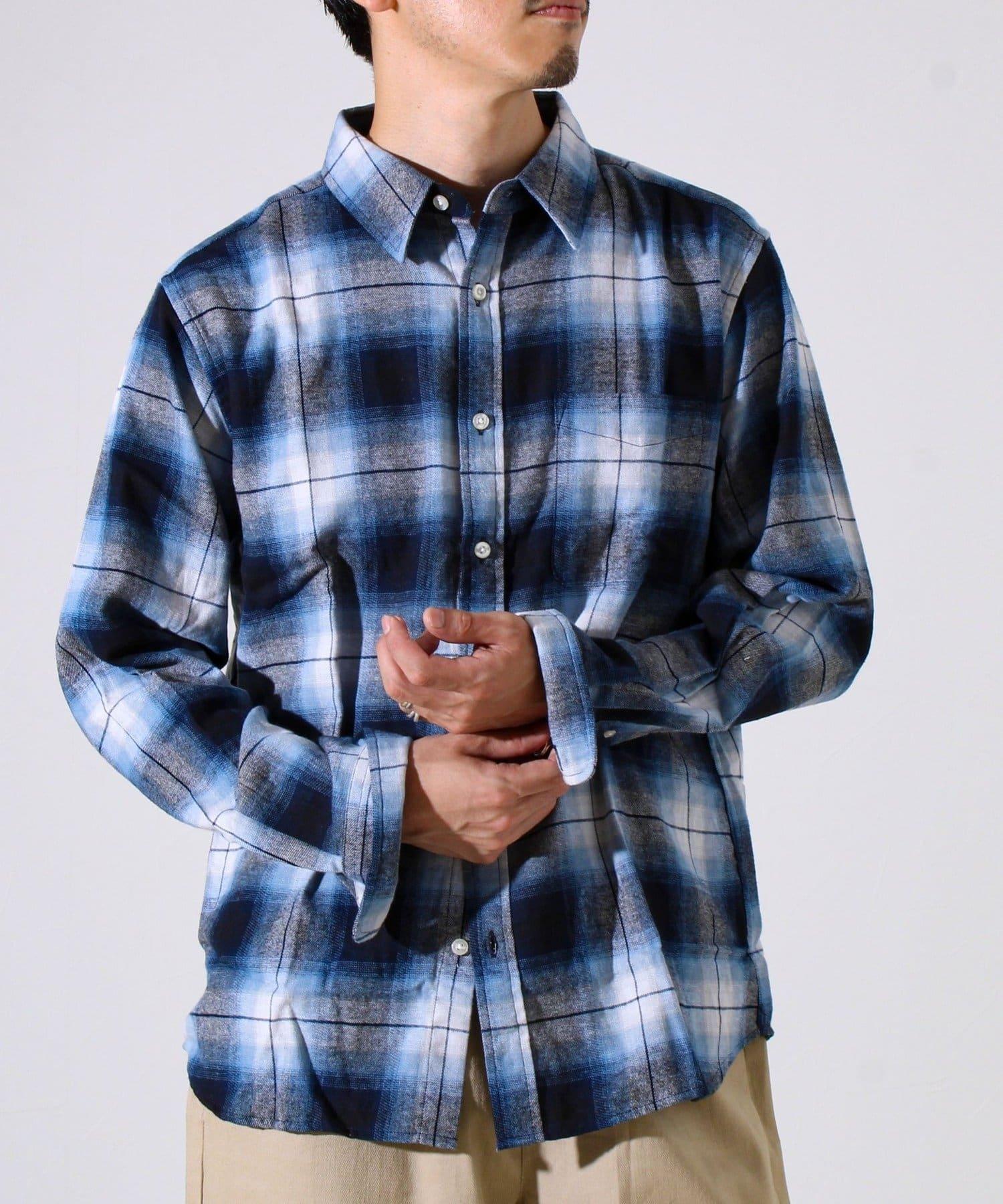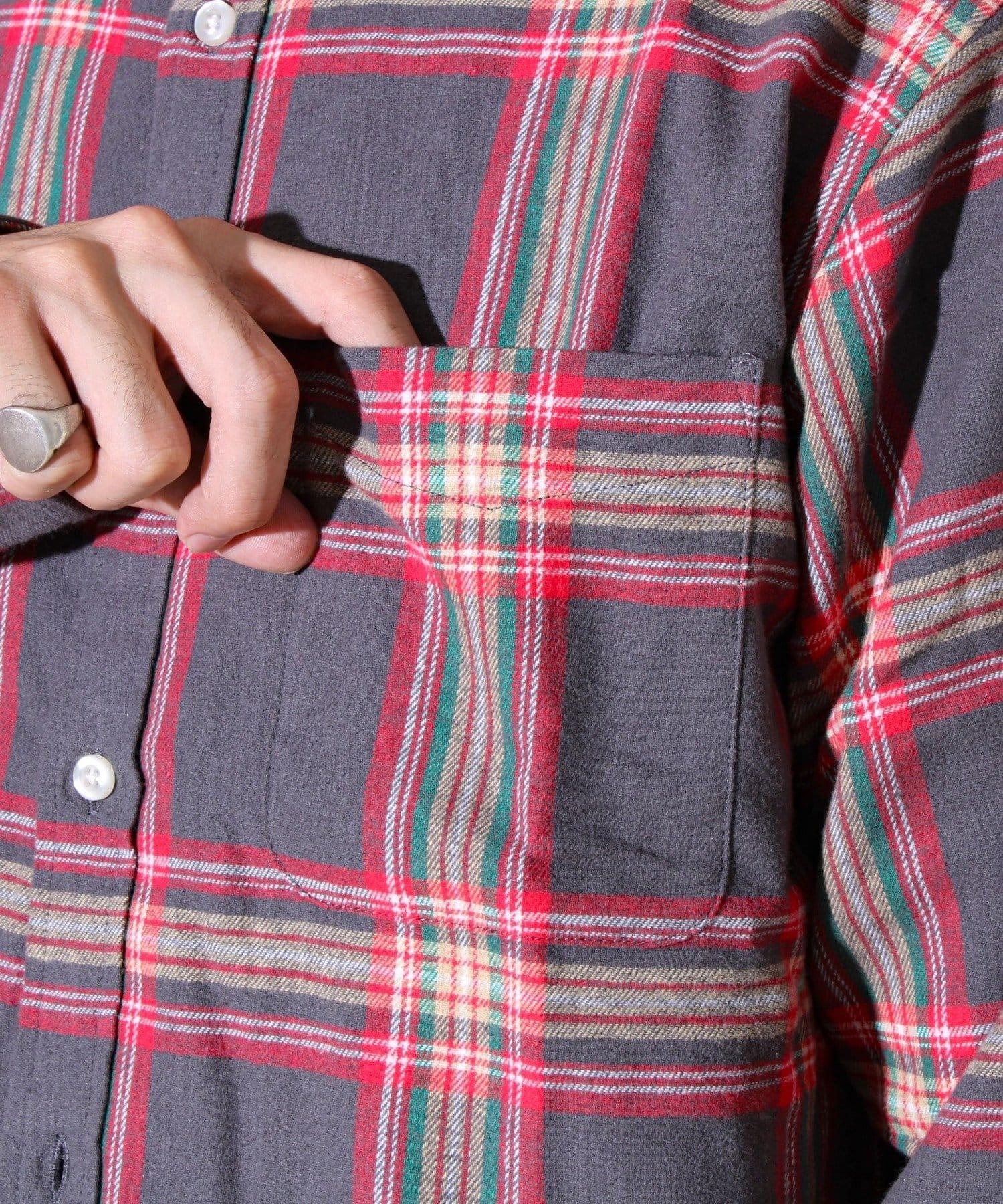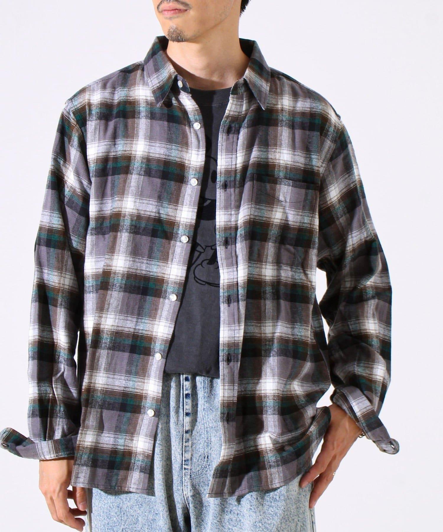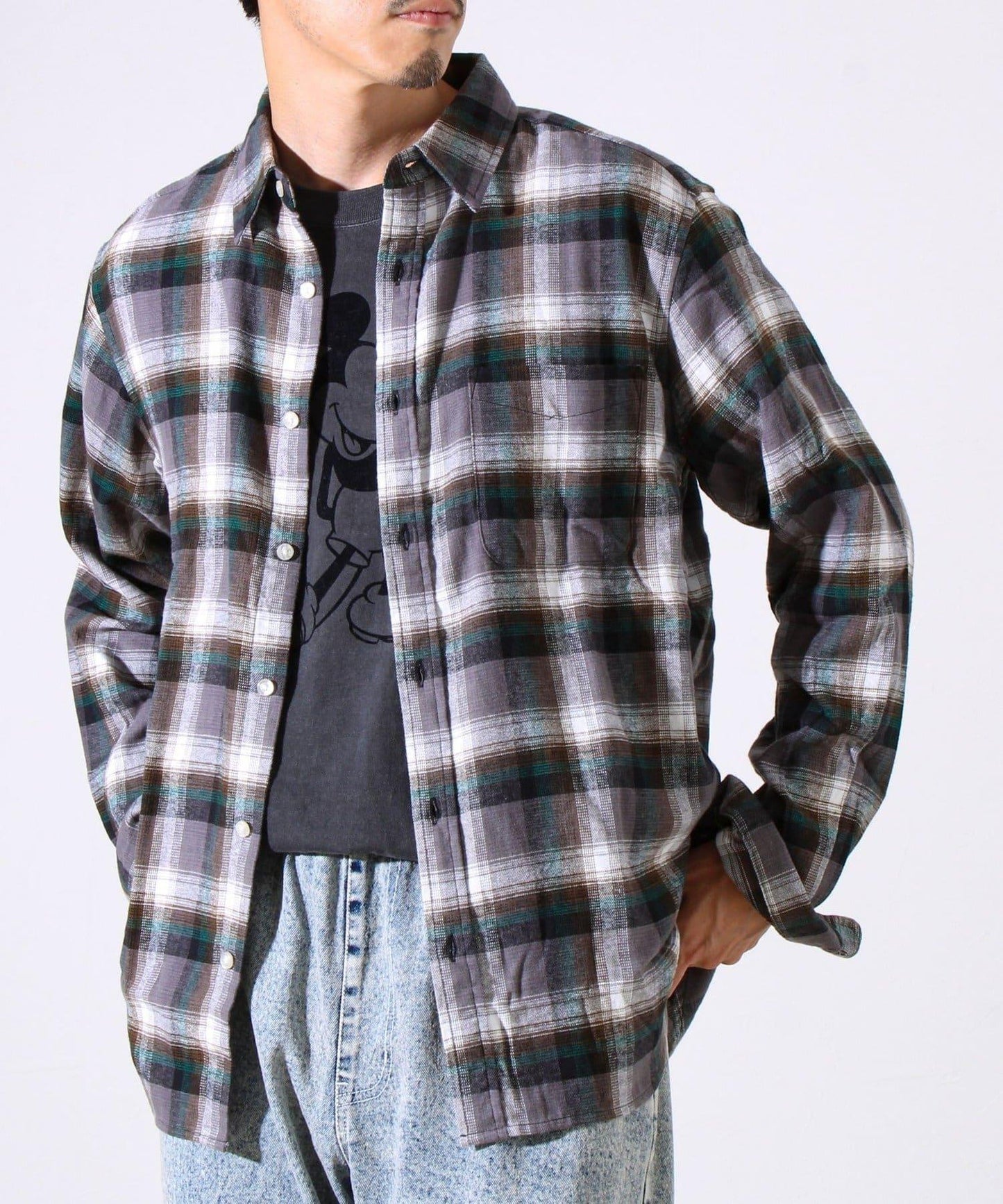 <つぶし衿>U.S.COTTON混合常規領格子法蘭絨襯衫