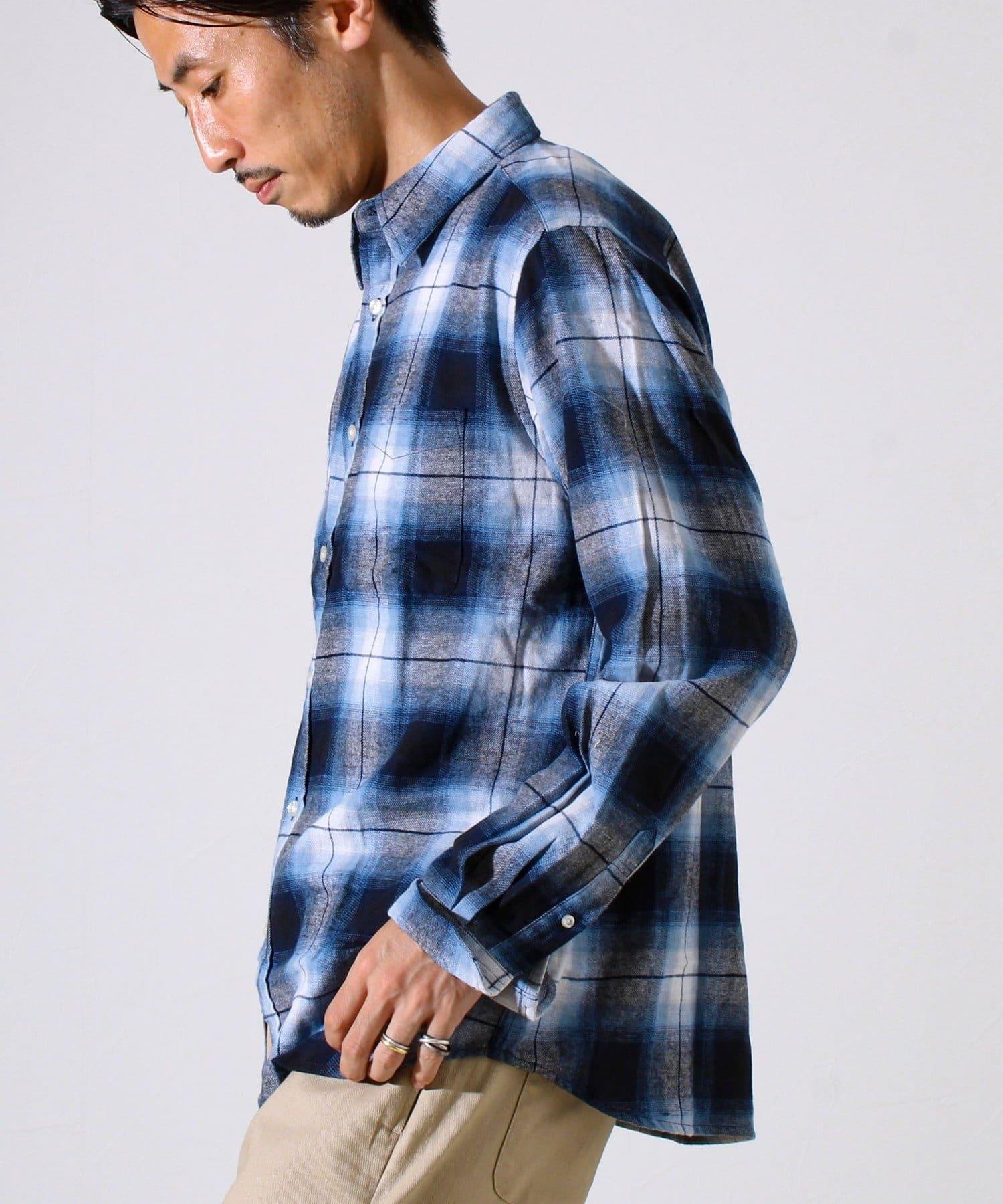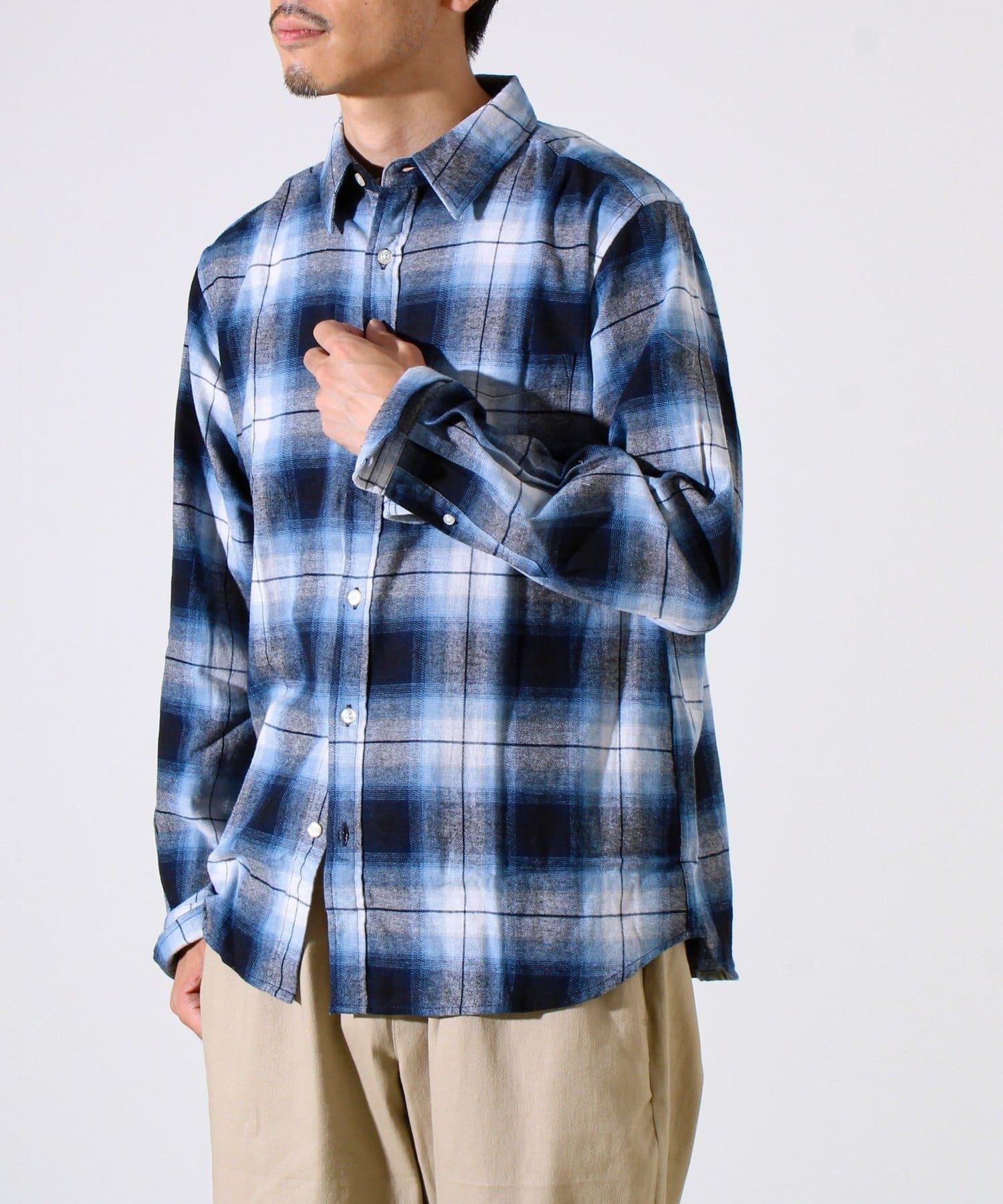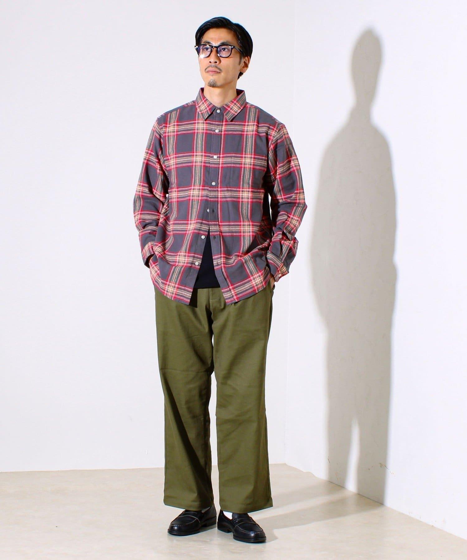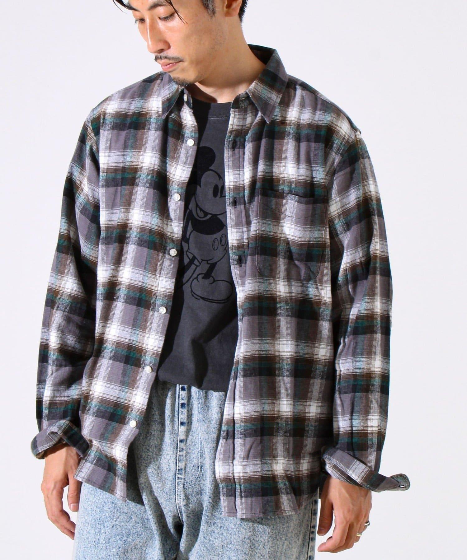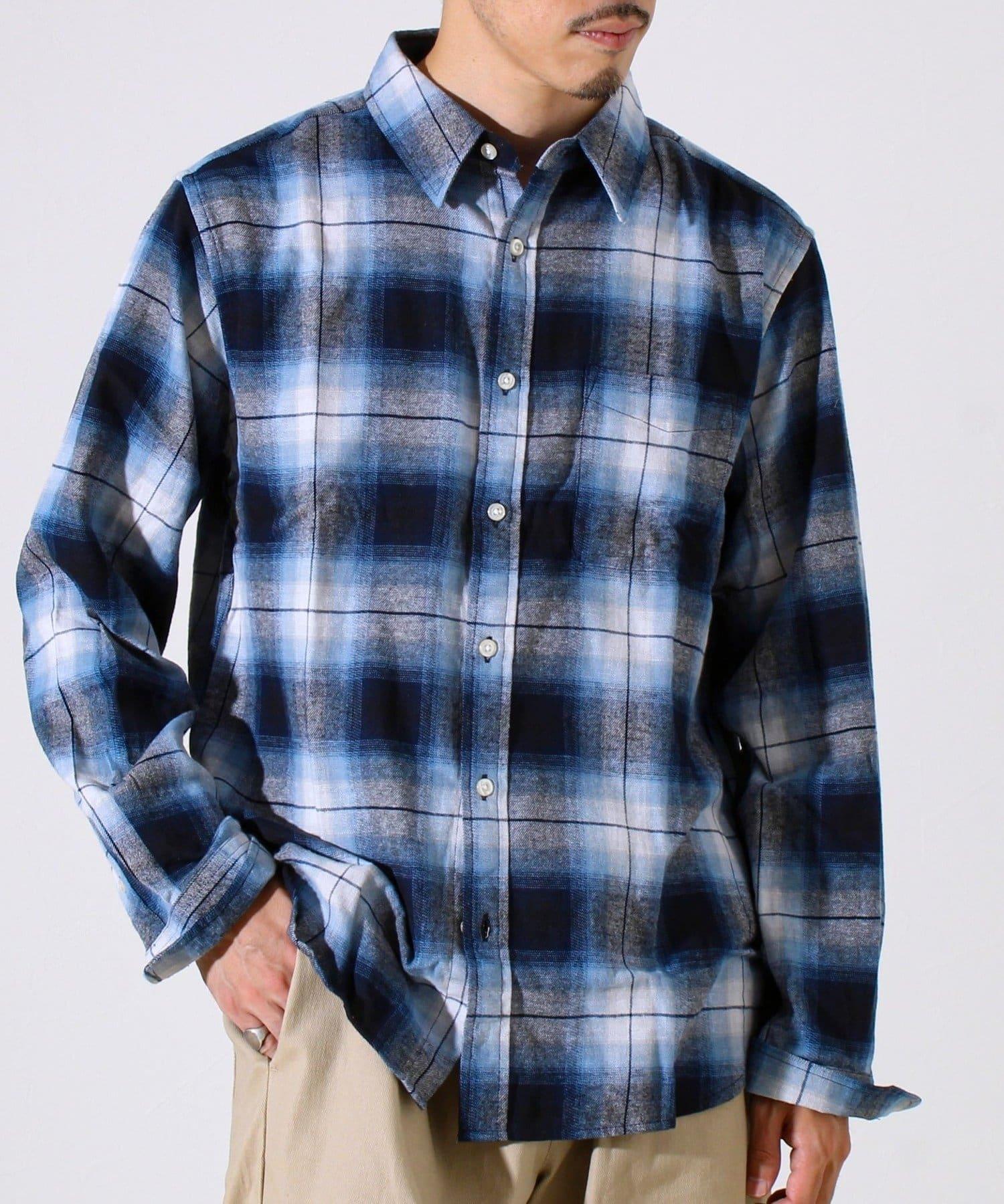 <つぶし衿>U.S.COTTON混合常規領格子法蘭絨襯衫
