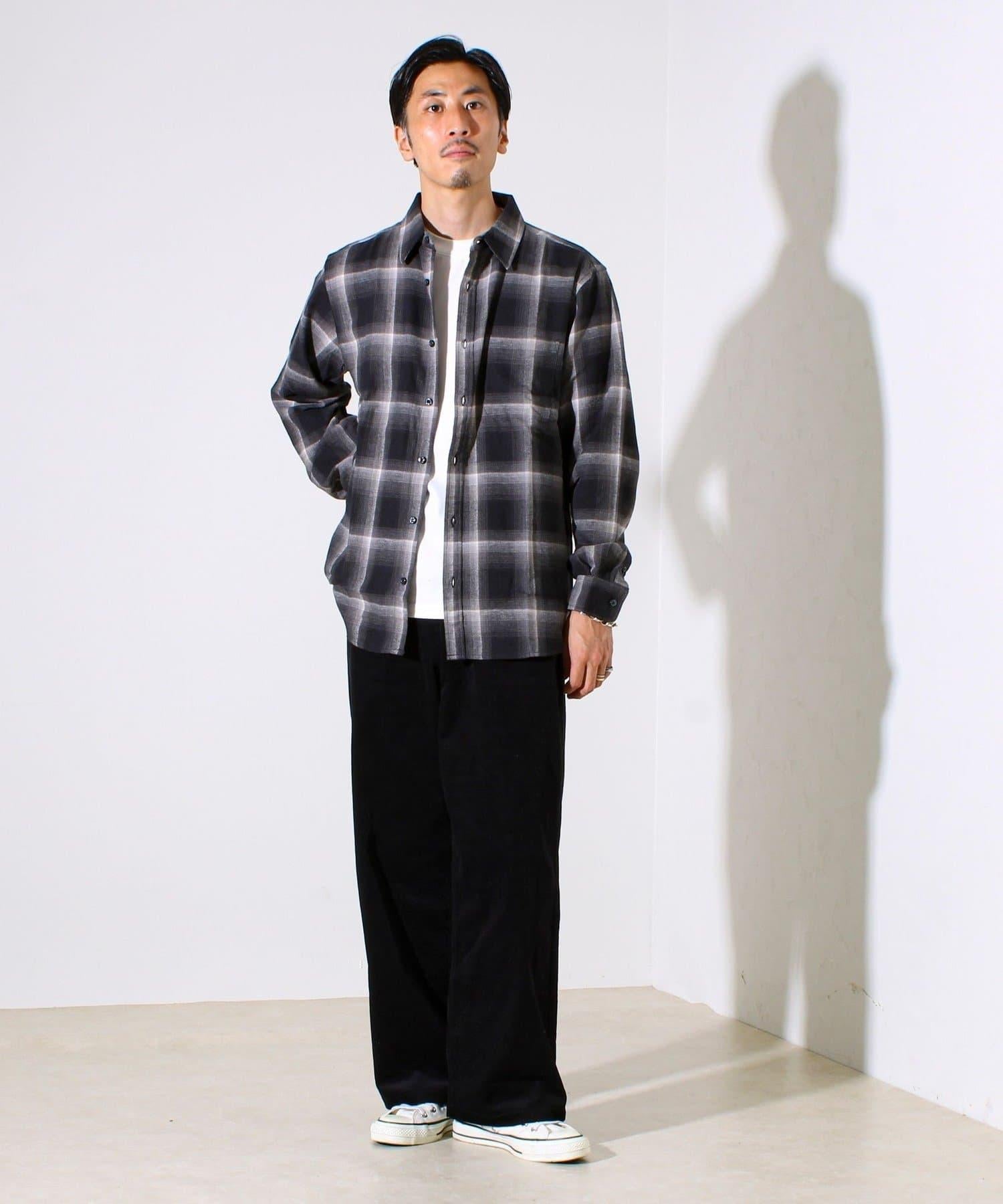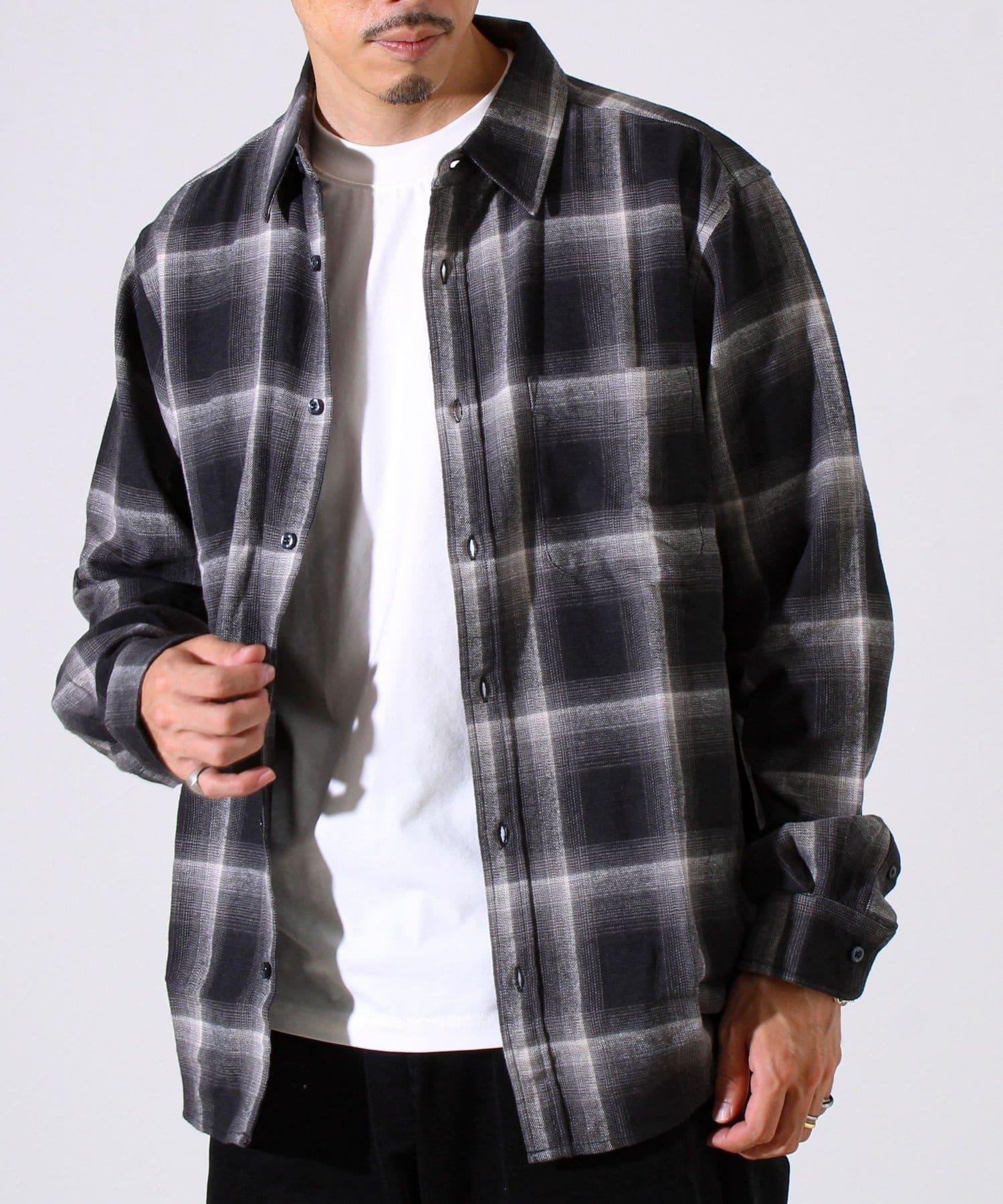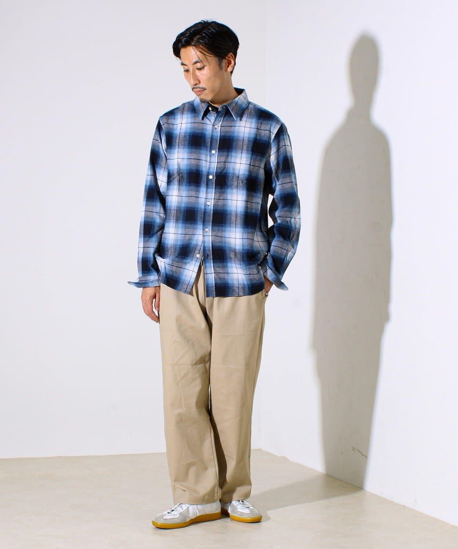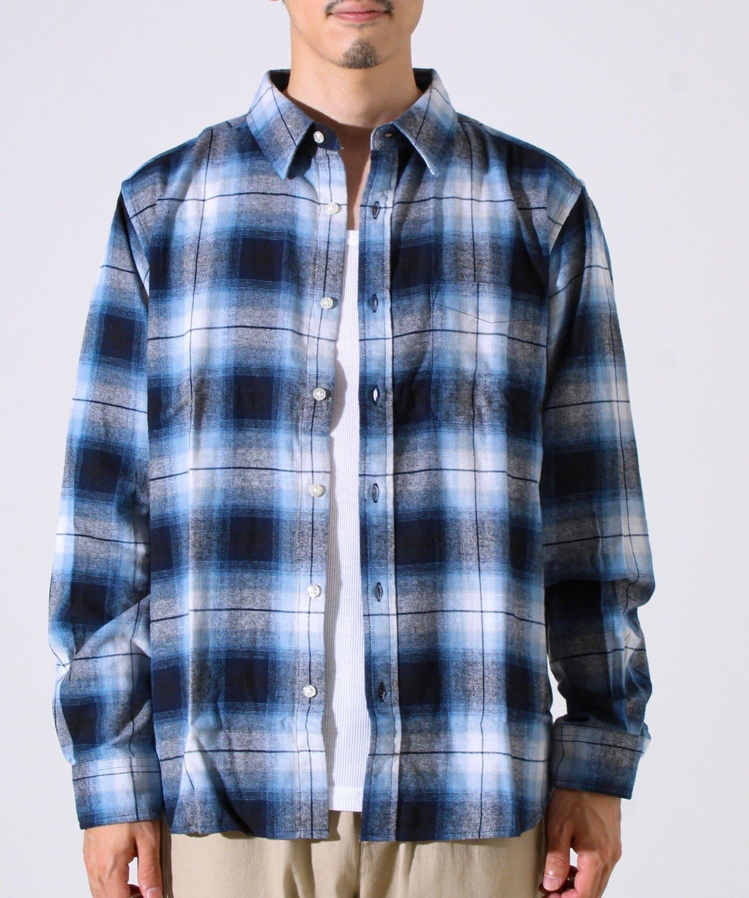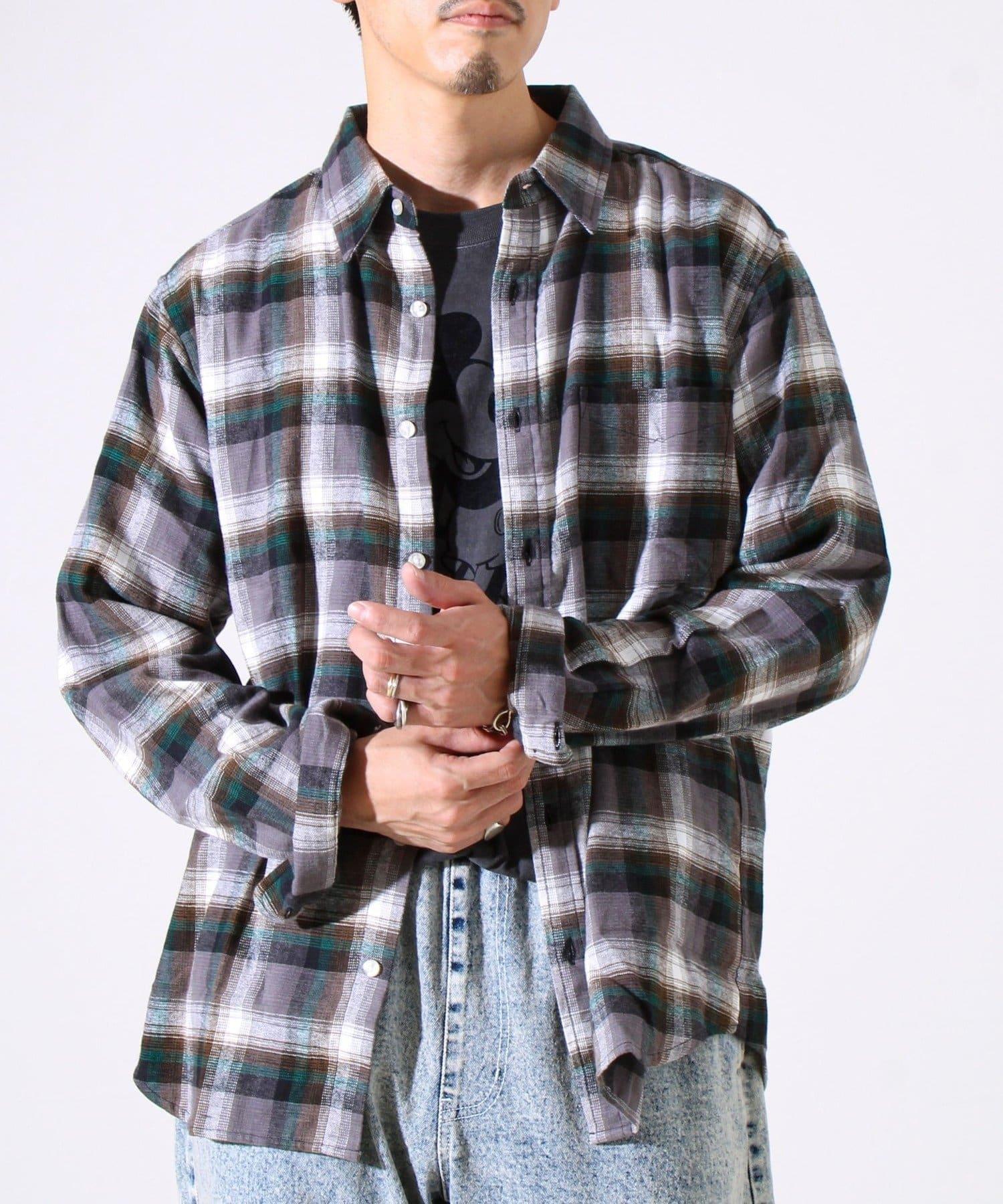 <つぶし衿>U.S.COTTON混合常規領格子法蘭絨襯衫