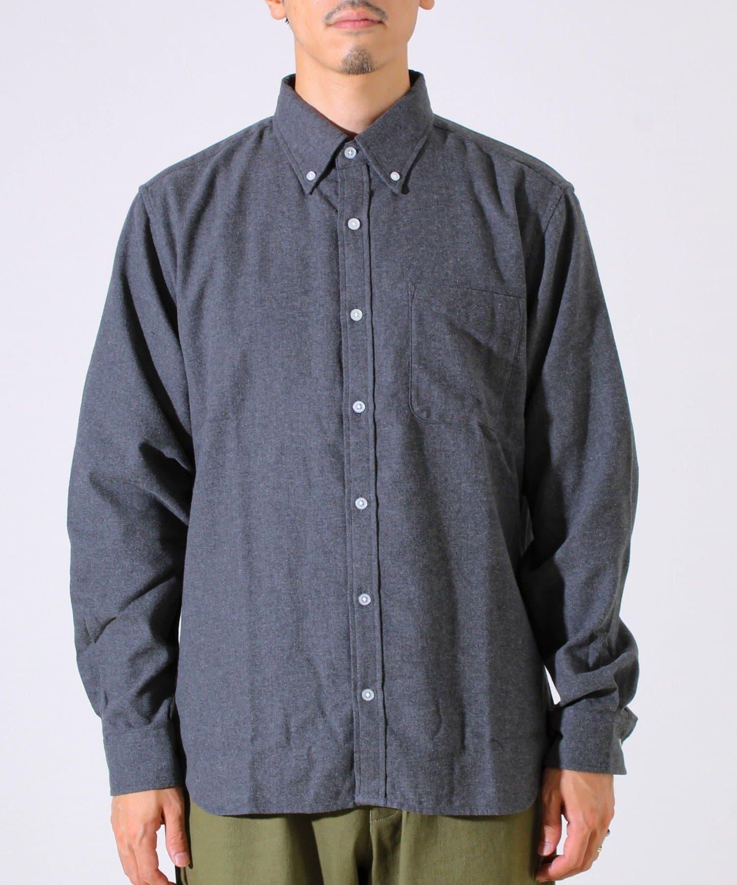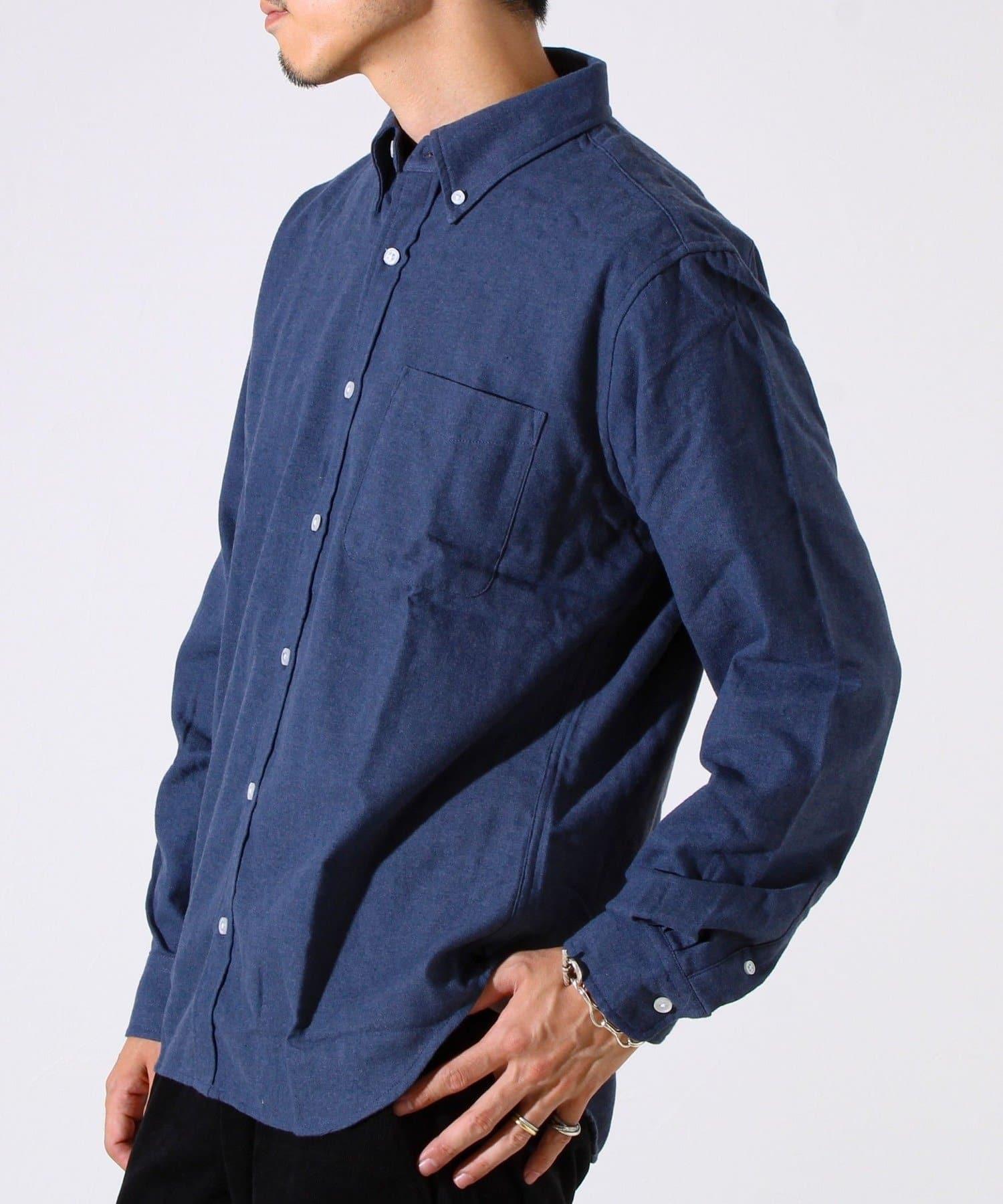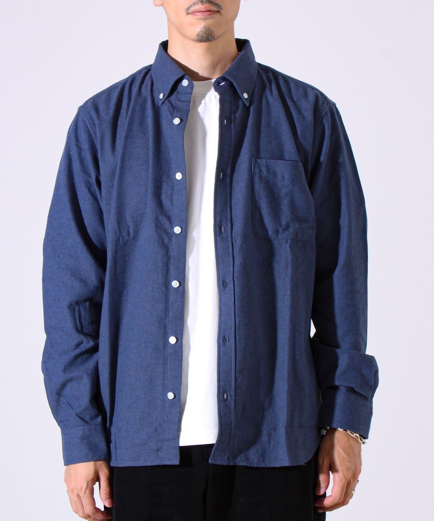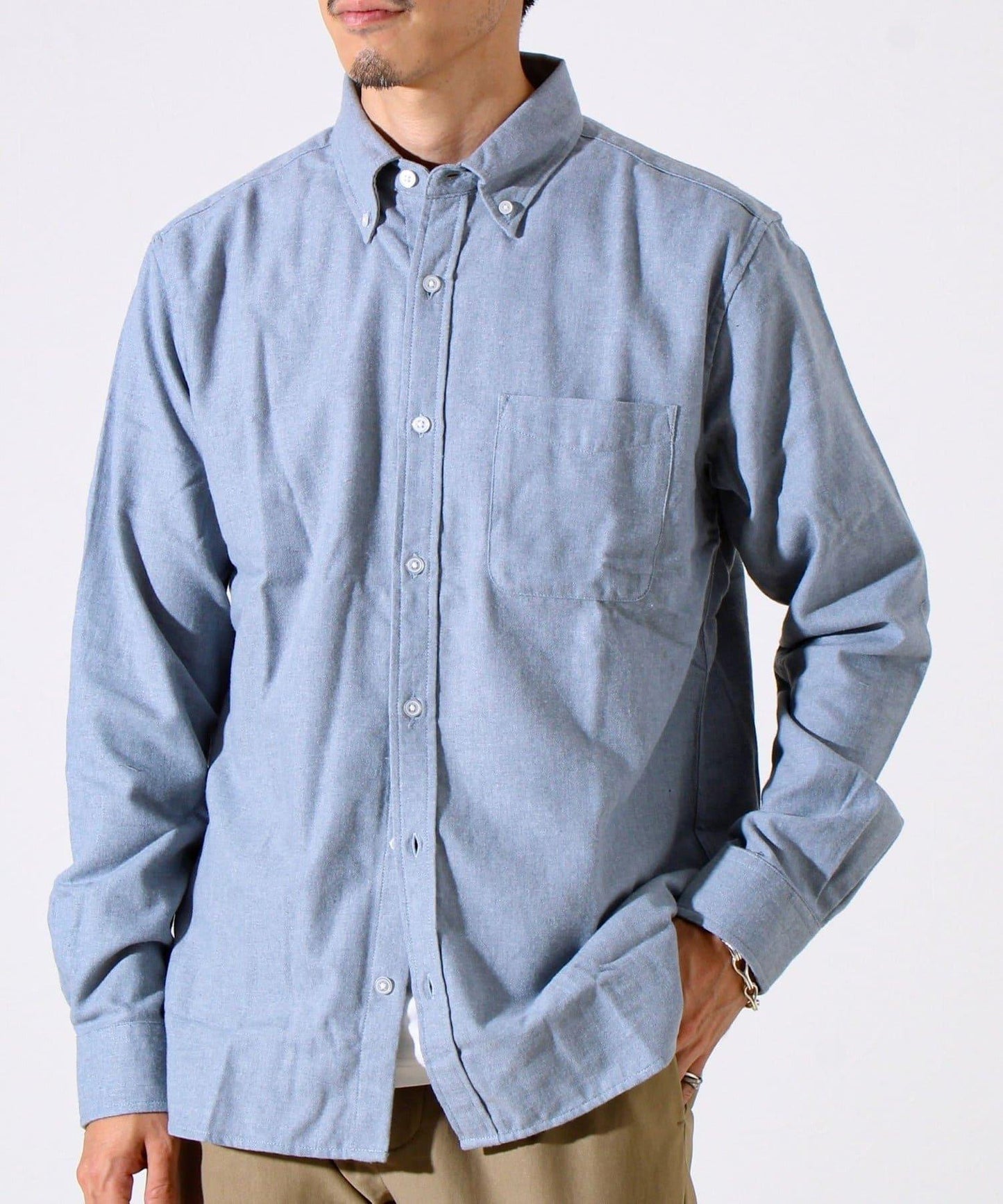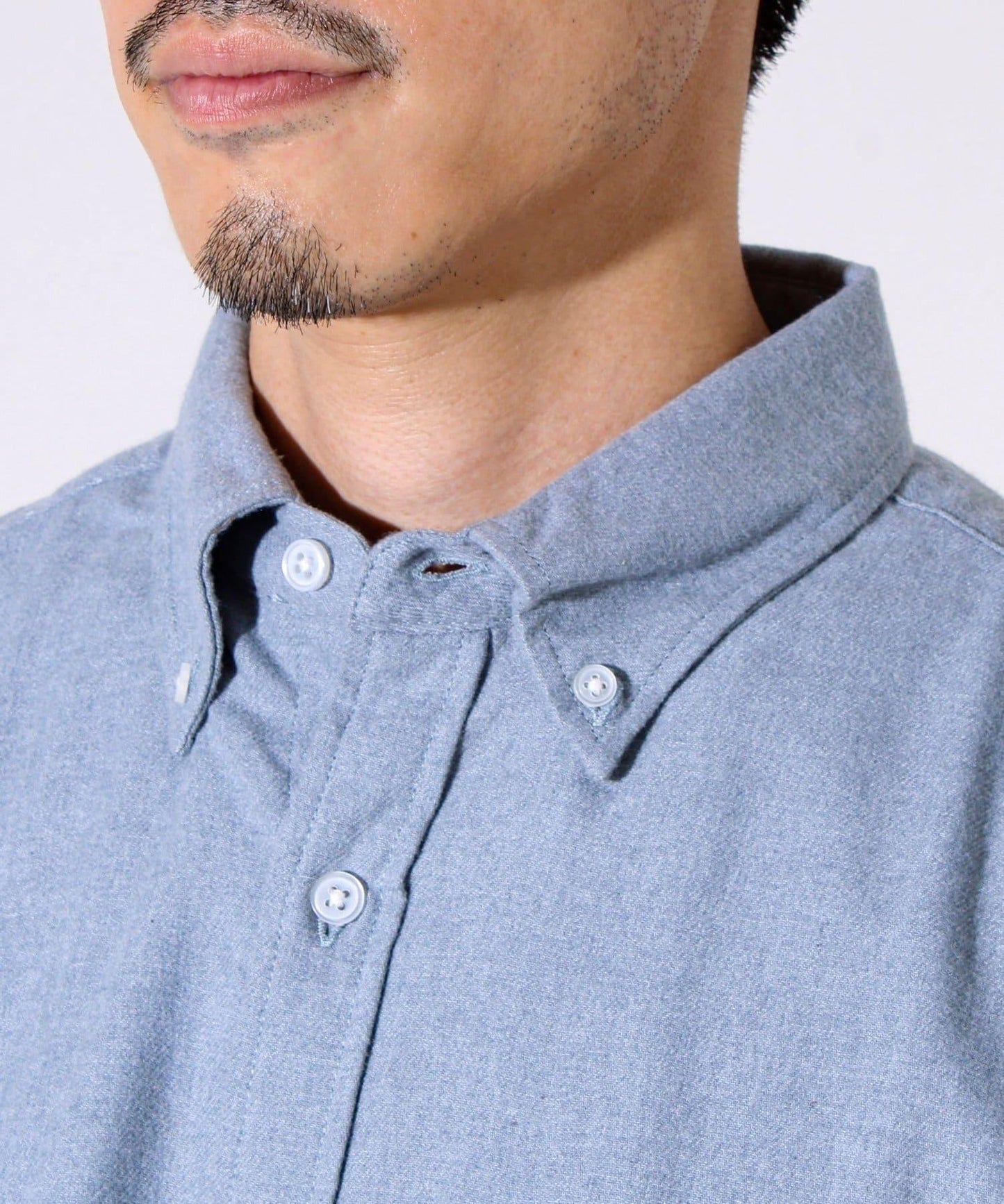 <つぶし衿>U.S.COTTON混紡男士牛津紡法蘭絨紐扣領襯衫