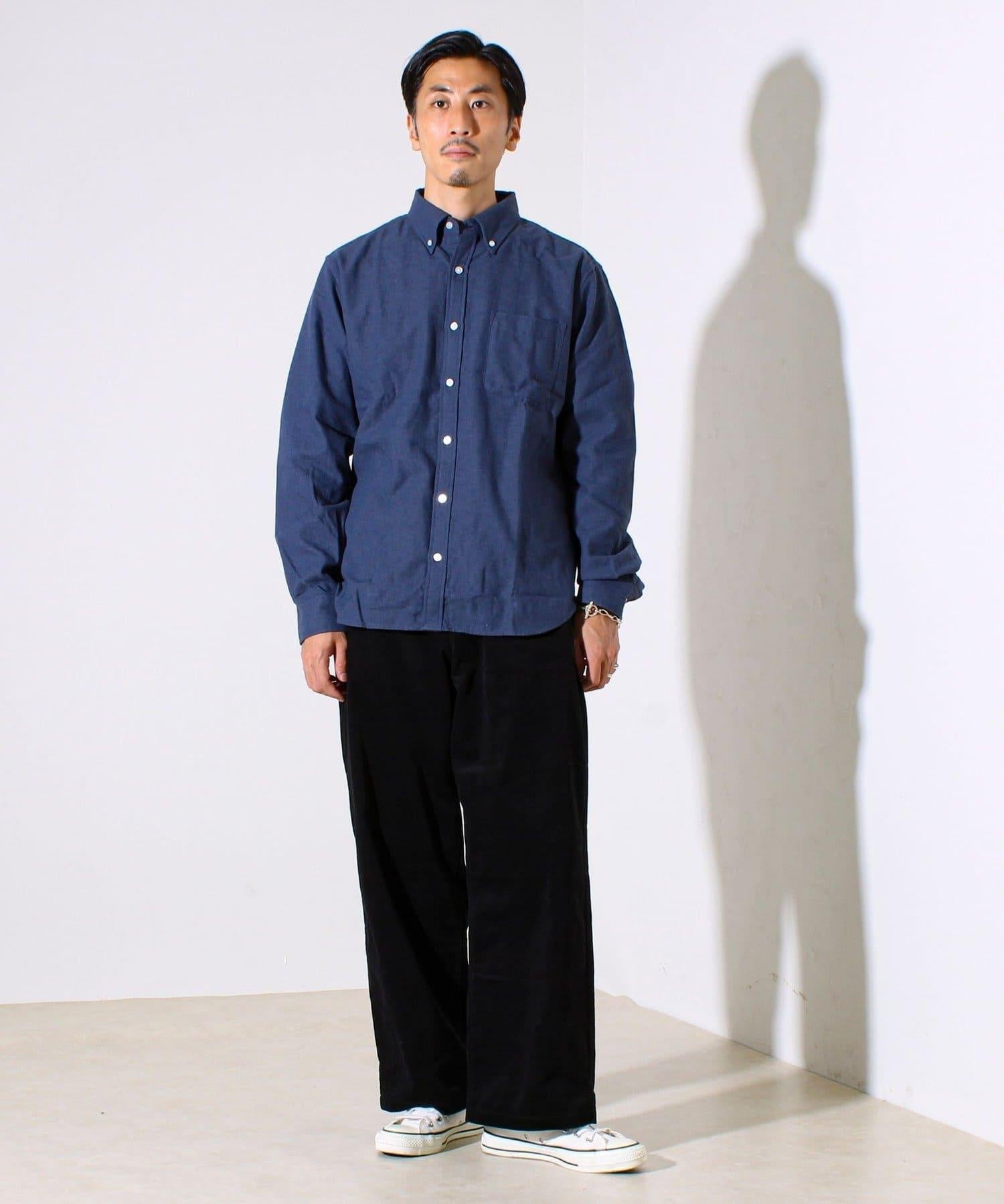#Buttondown shirt #Crushed collar #US cotton #Nel shirt #Plain shirt #Adult casual #FREDY & GLOSTER #Autumn/Winter coordination #Layered coordination #Shirt coordination