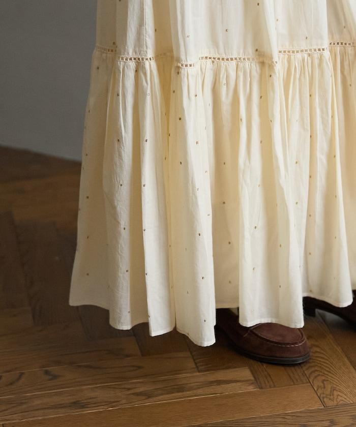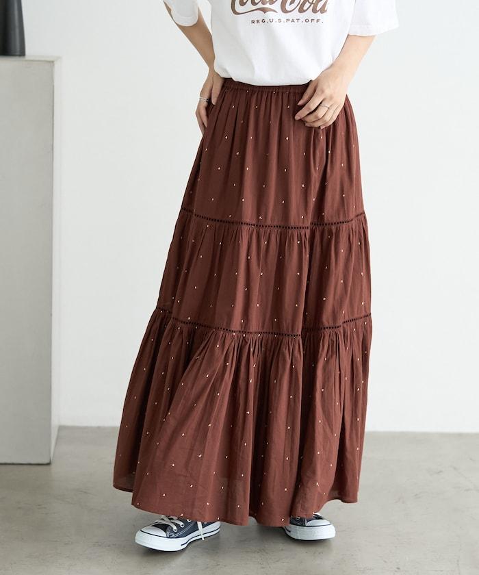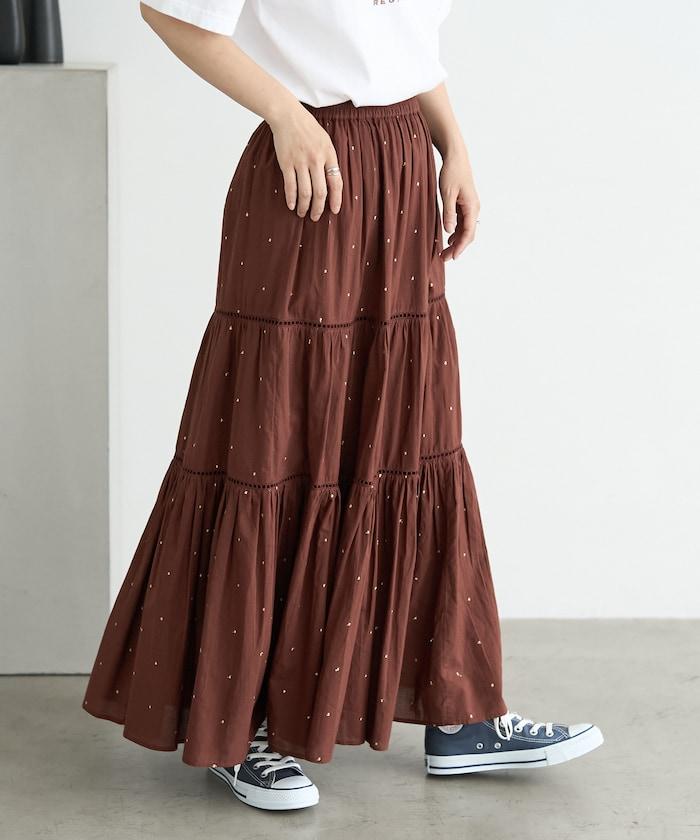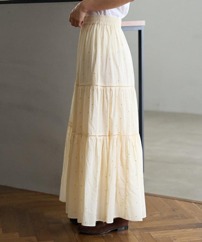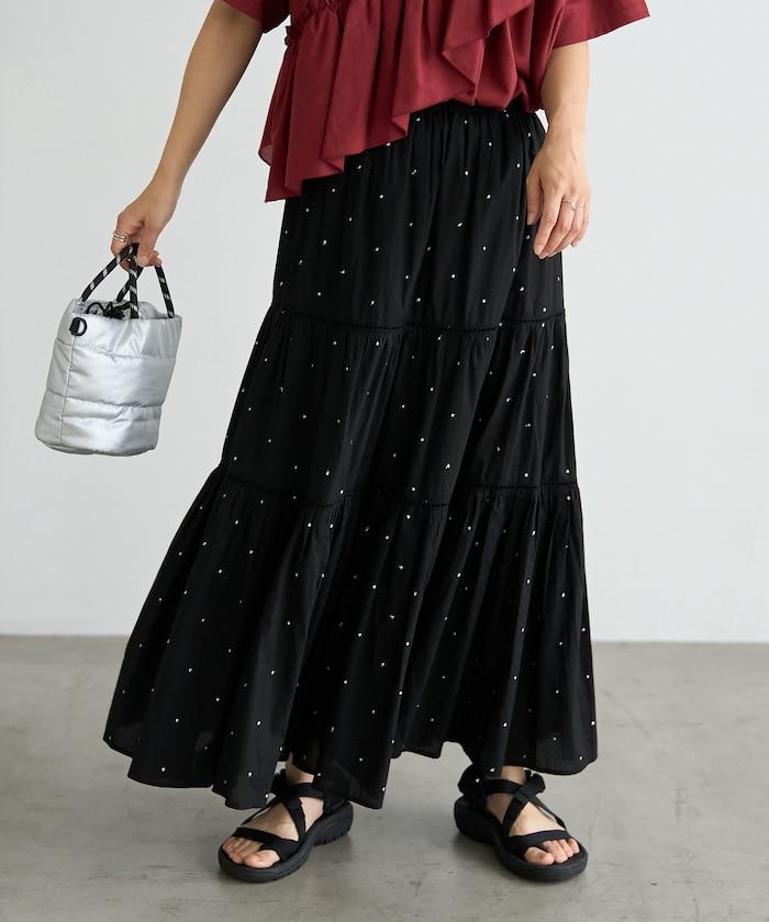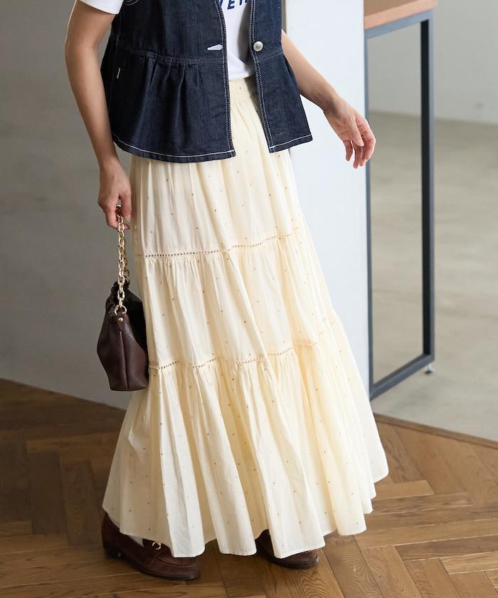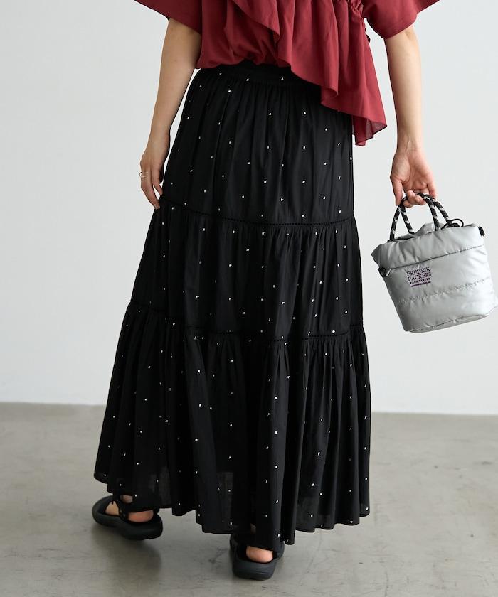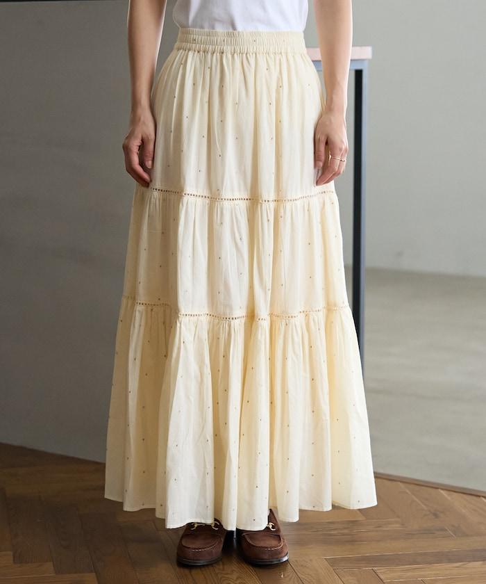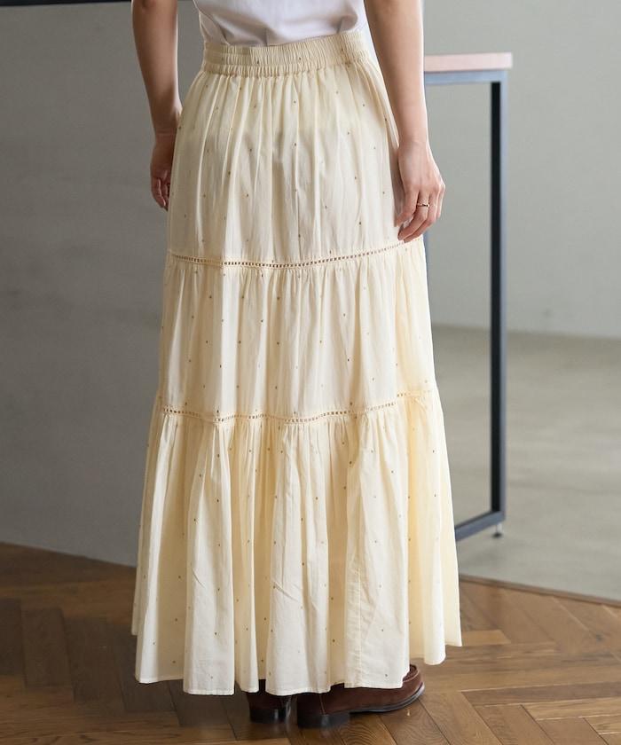 インド ラメドット ティアードマキシスカート/はしごレース ティアードマキシスカート