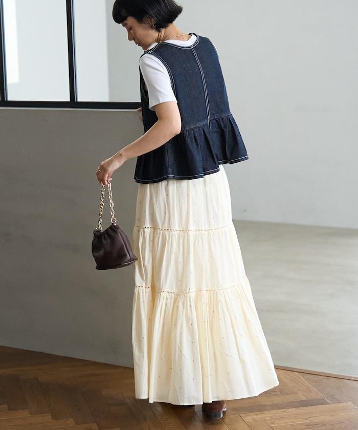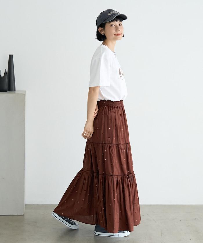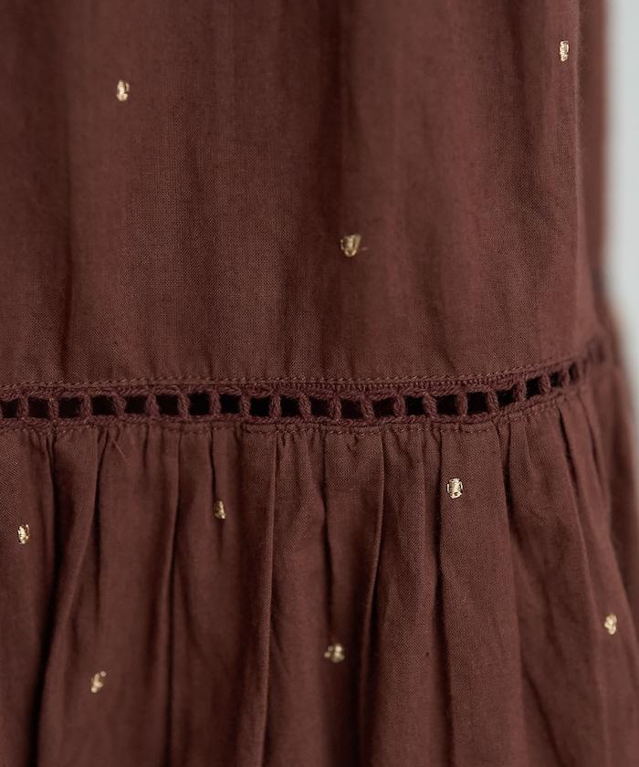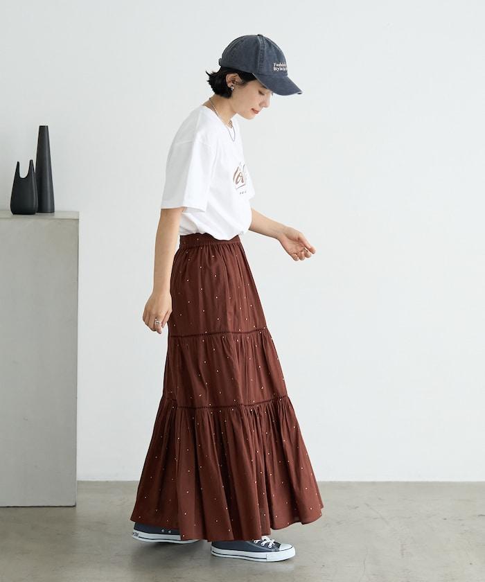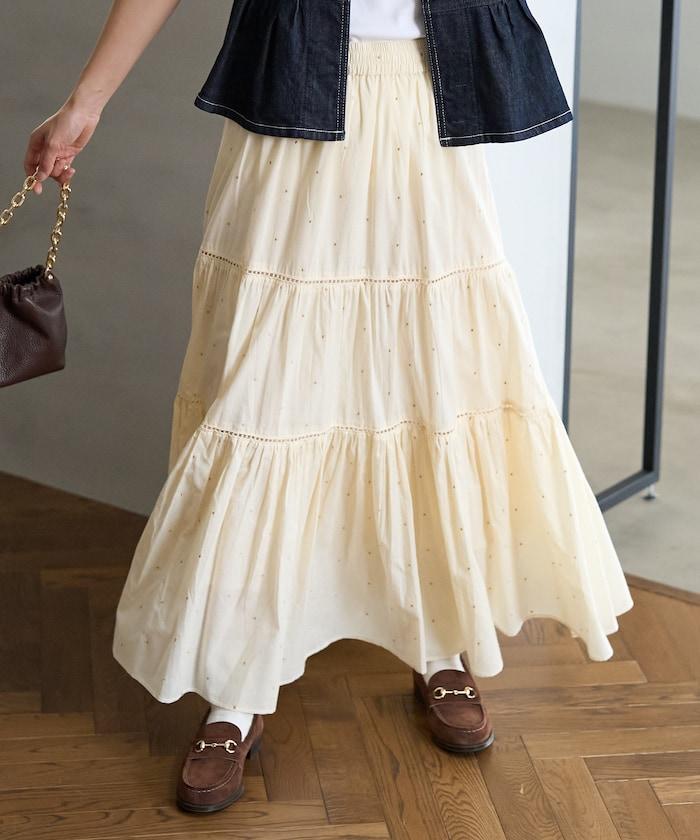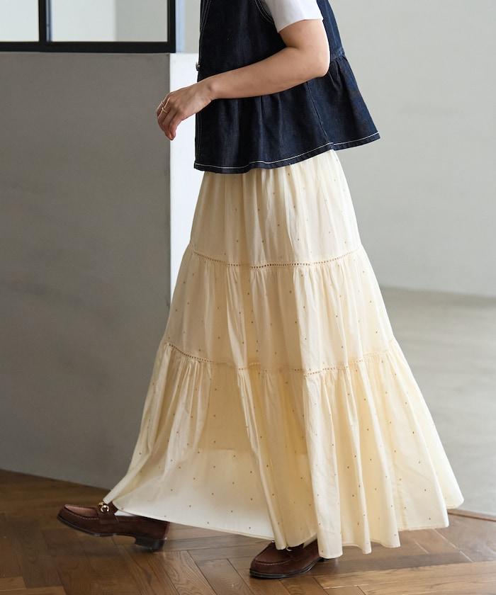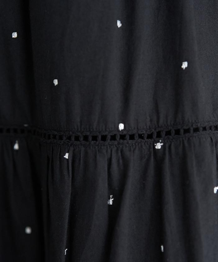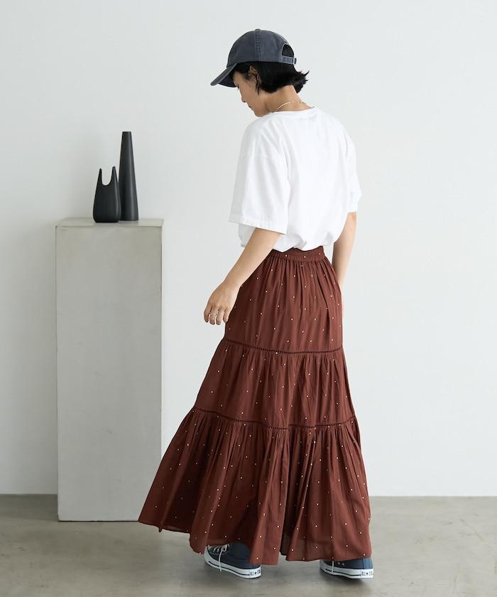 インド ラメドット ティアードマキシスカート/はしごレース ティアードマキシスカート