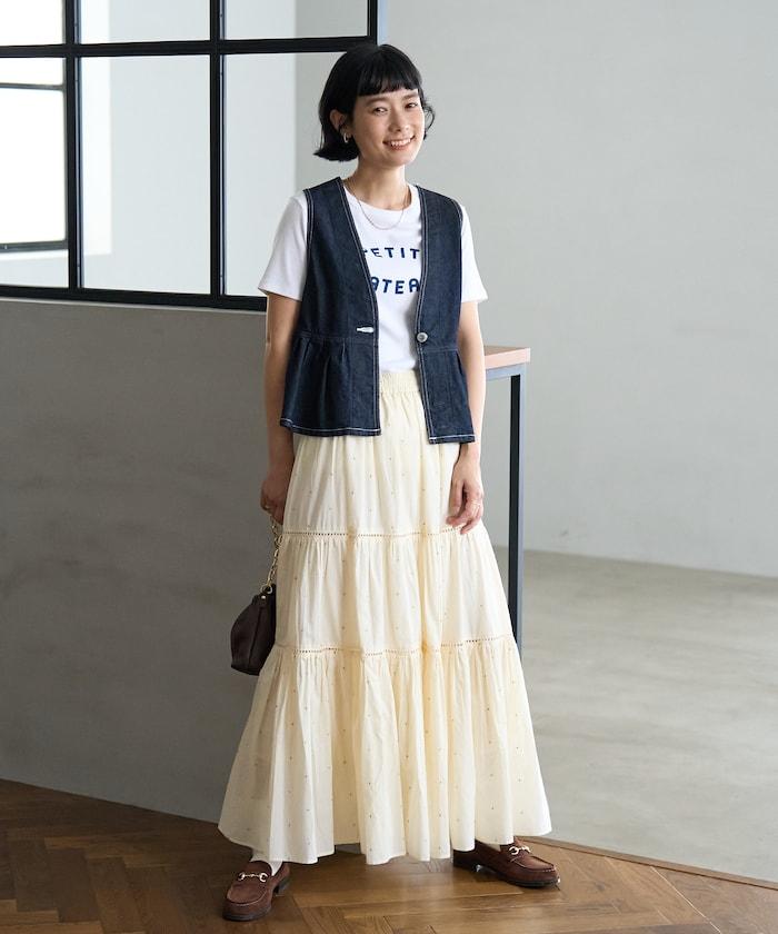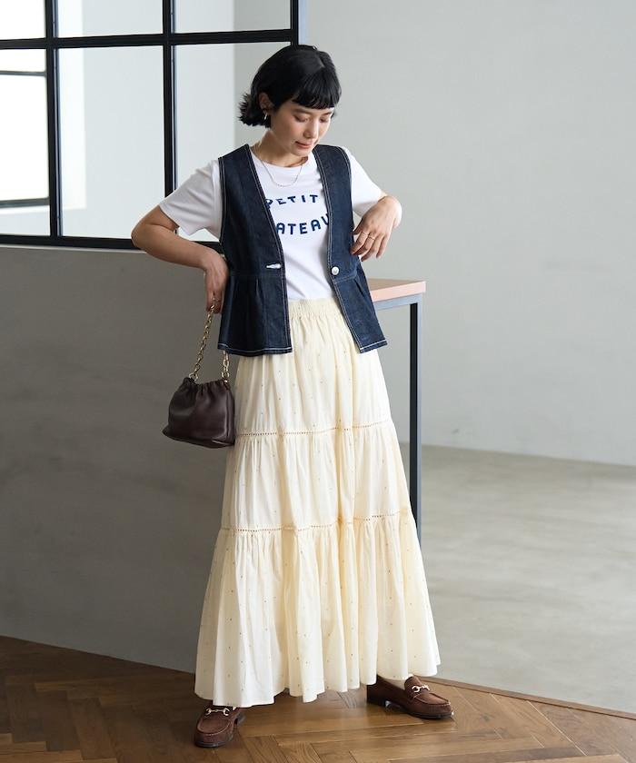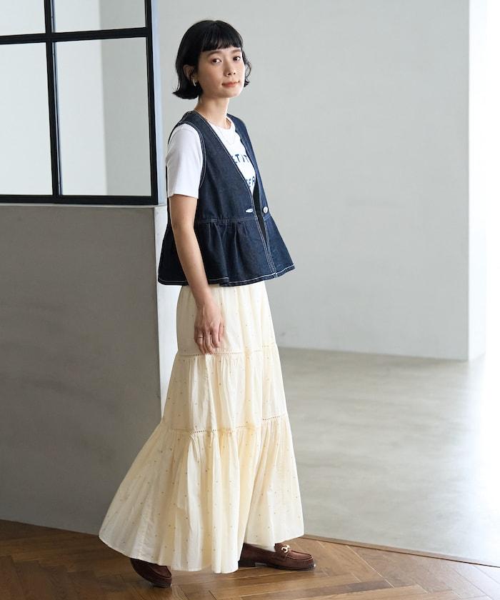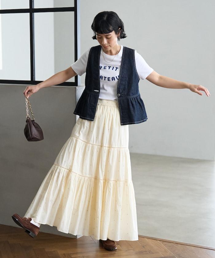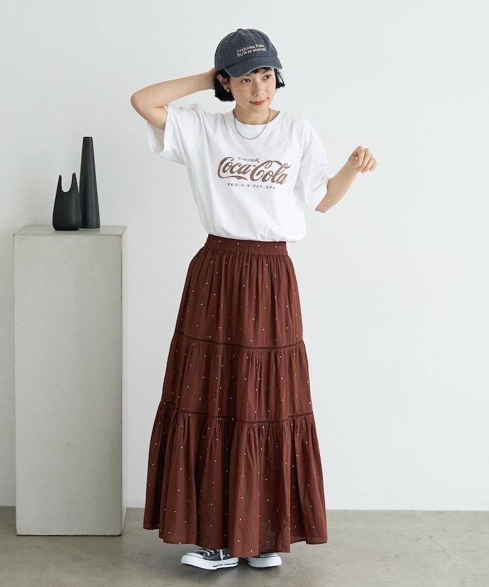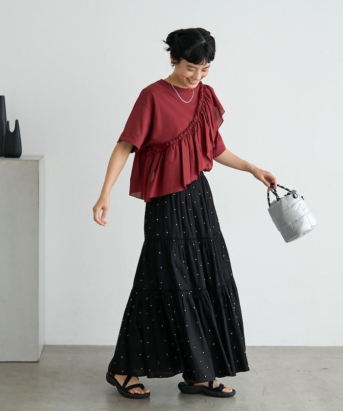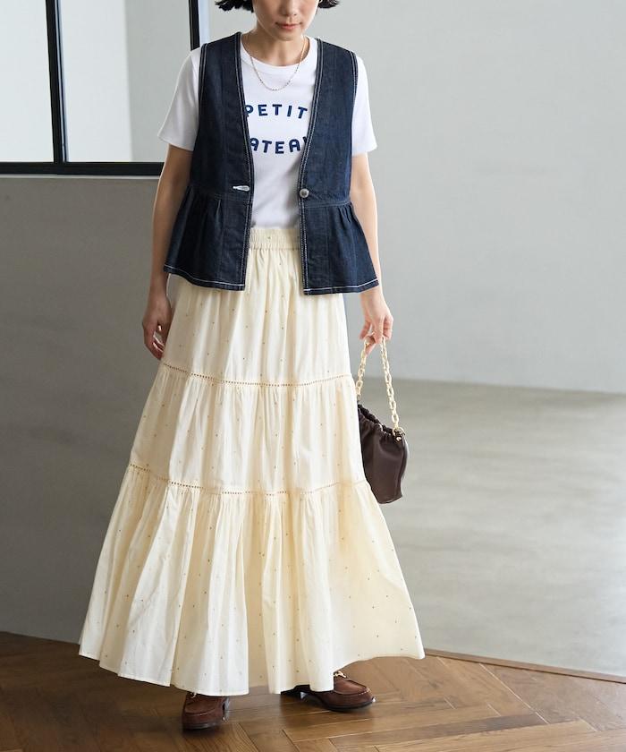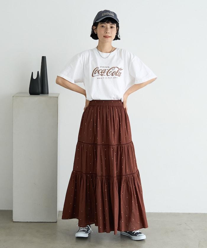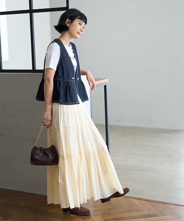 インド ラメドット ティアードマキシスカート/はしごレース ティアードマキシスカート