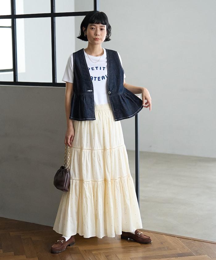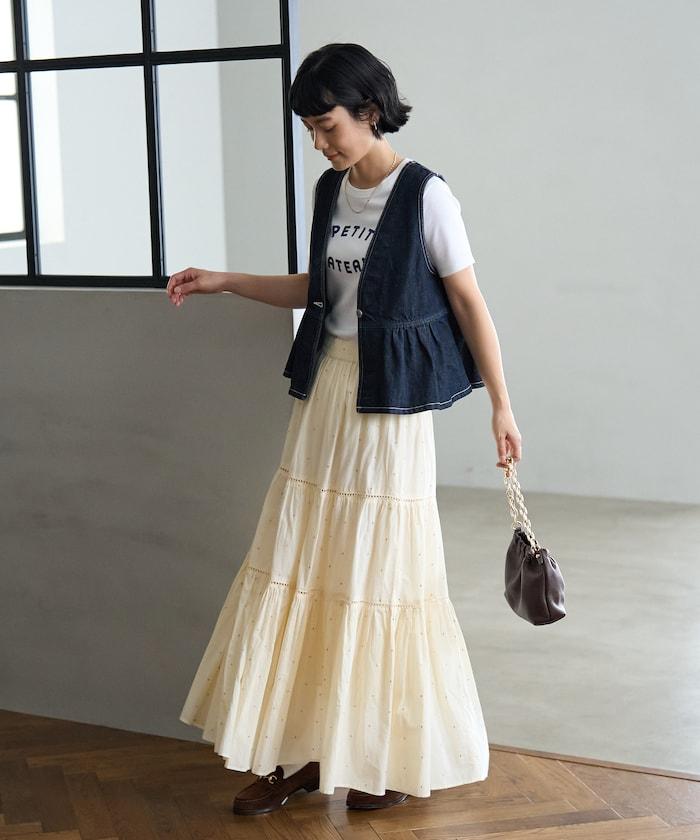秋季色彩的蹩腳圓點刺繡半身裙,可以穿出成熟的感覺。