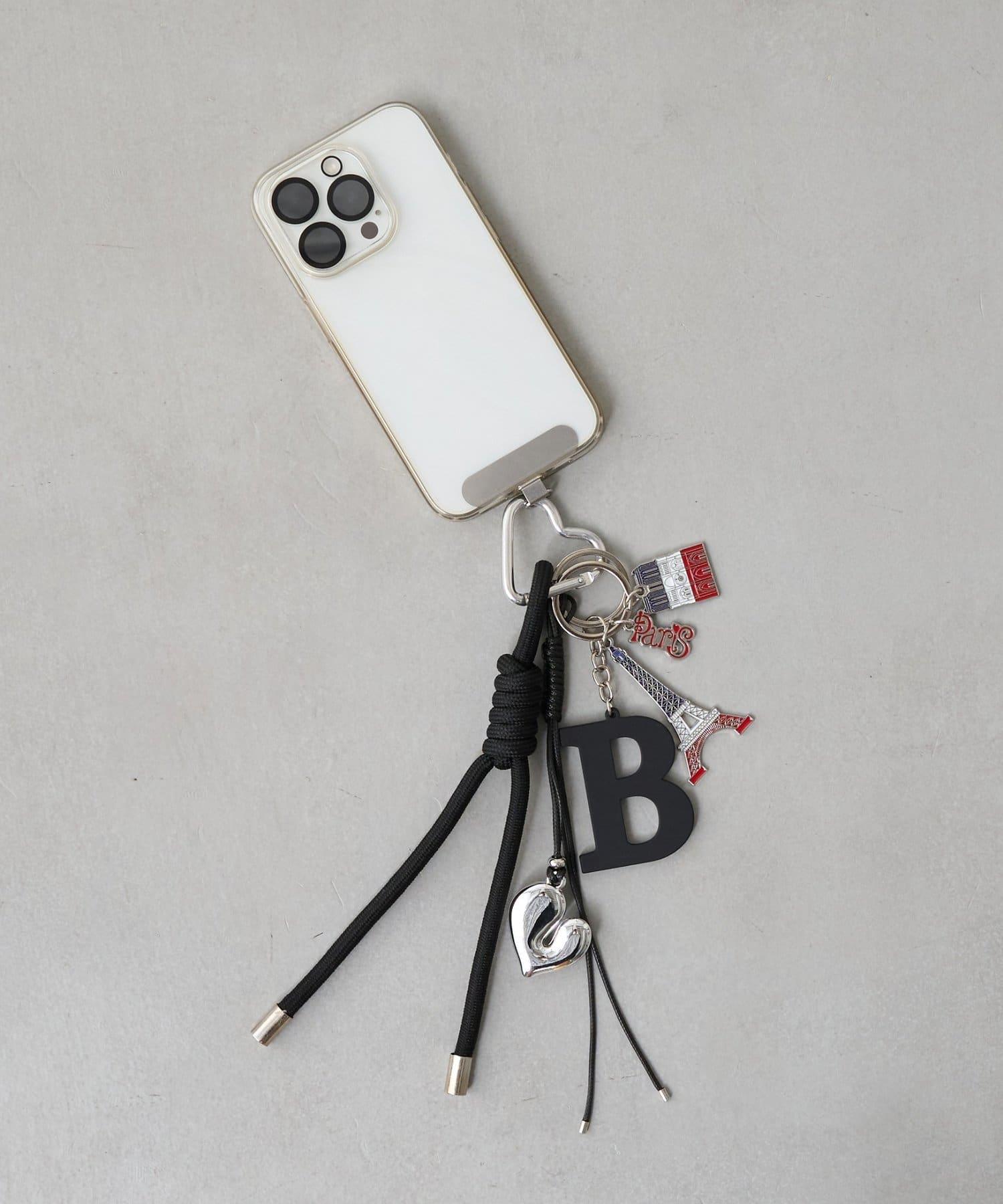 B吊飾 4.5 x 5.5cm / 粗繩長 19.5cm / 細繩長 19.5cm / 心形 3.3 x 3.5cm / 埃菲爾鐵塔 3.3 x 5.8cm / 巴黎聖母院大教堂 3 x 3cm / 巴黎 2.3 x 1.3cm / 總長 25cm / 重量:60克
