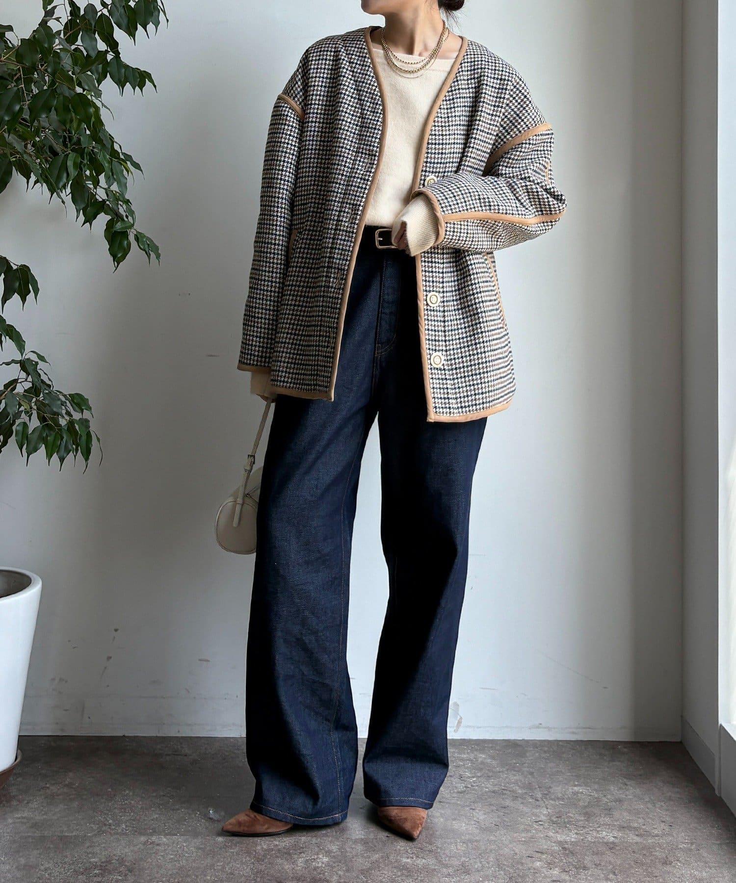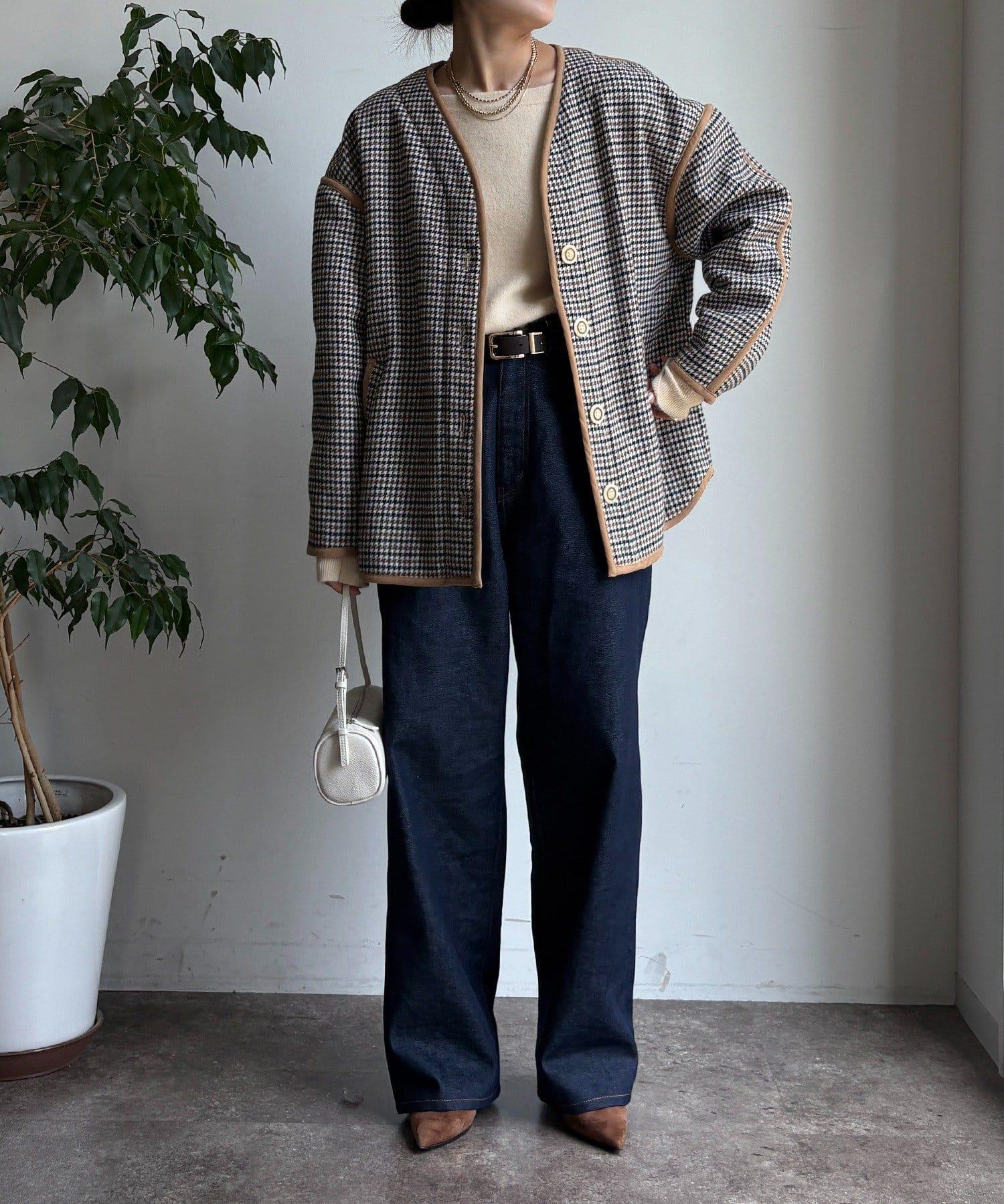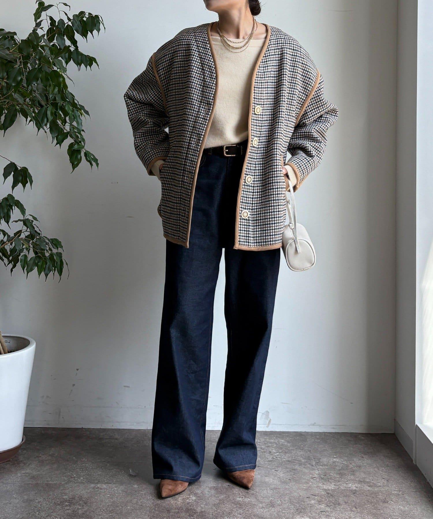 即使內搭厚針織衫也不會感覺尺寸僵硬,輪廓具有立體感,上半身不會顯得臃腫◎。