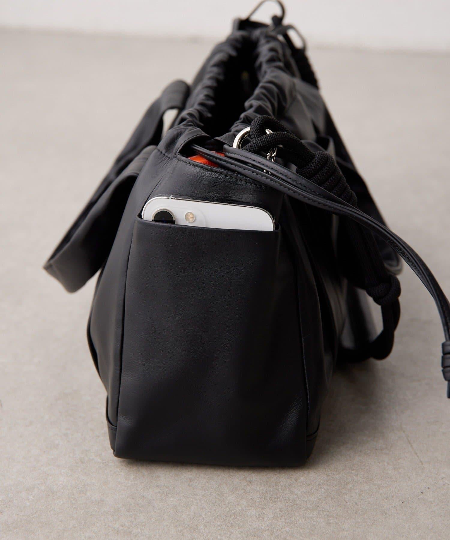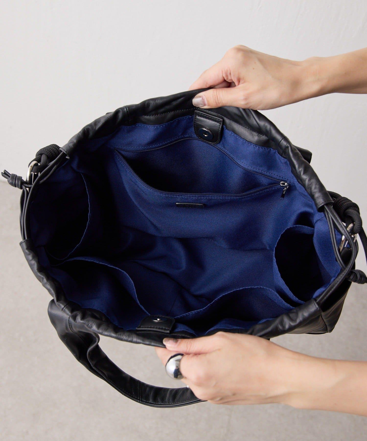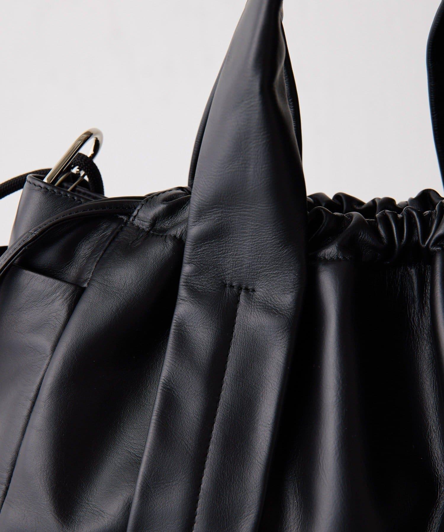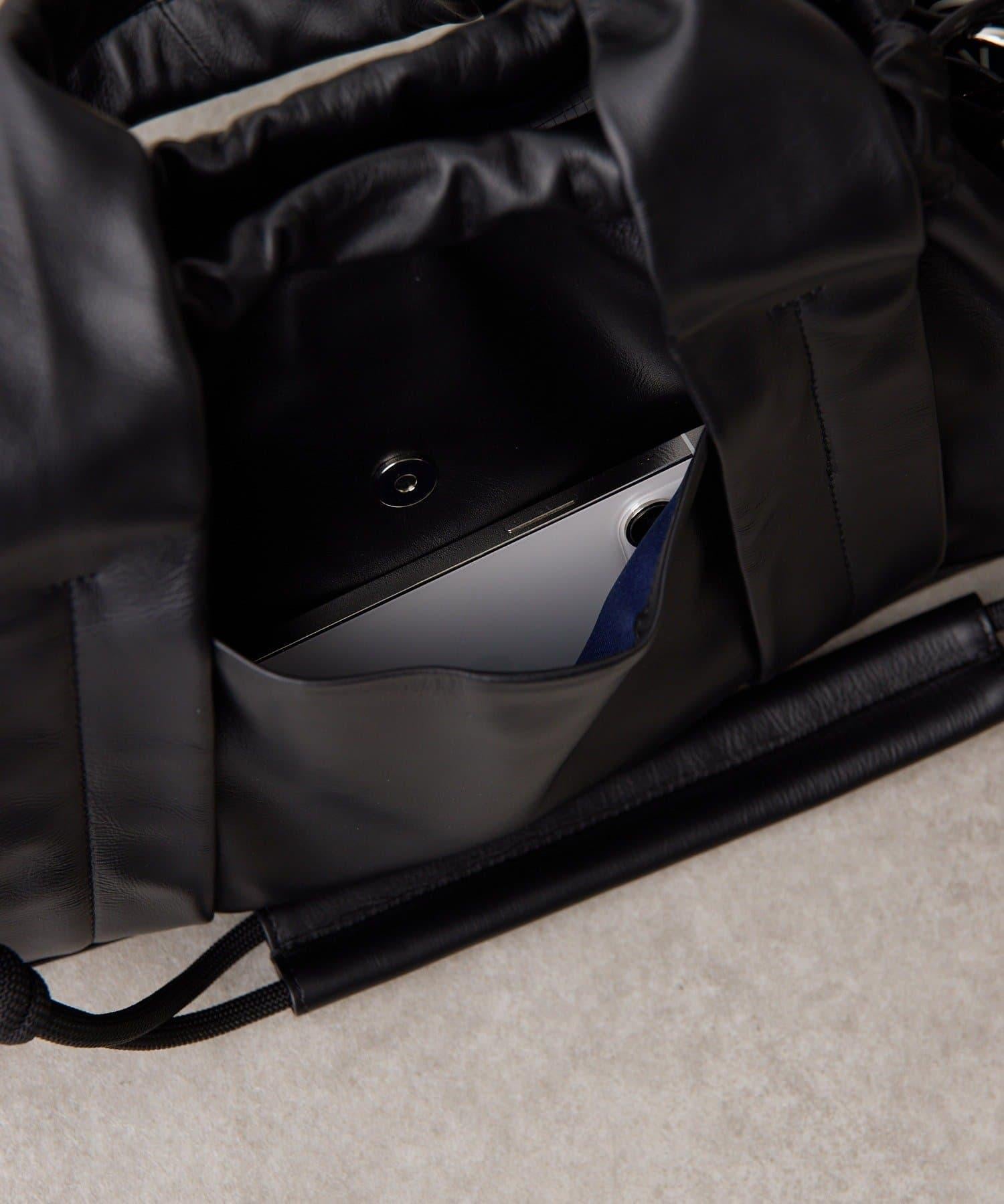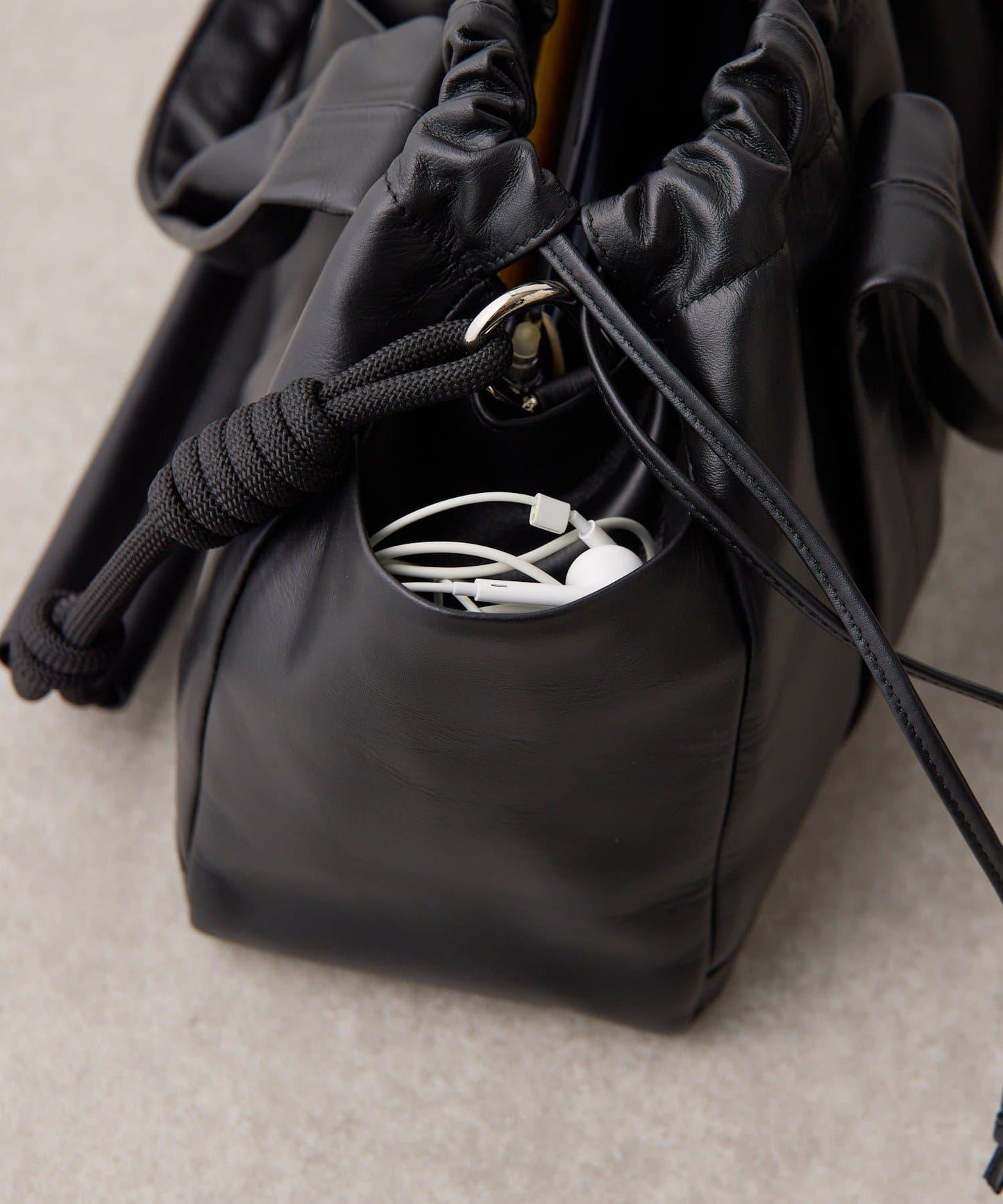 開口處的抽繩設計讓這款包看起來有些 "可愛"。