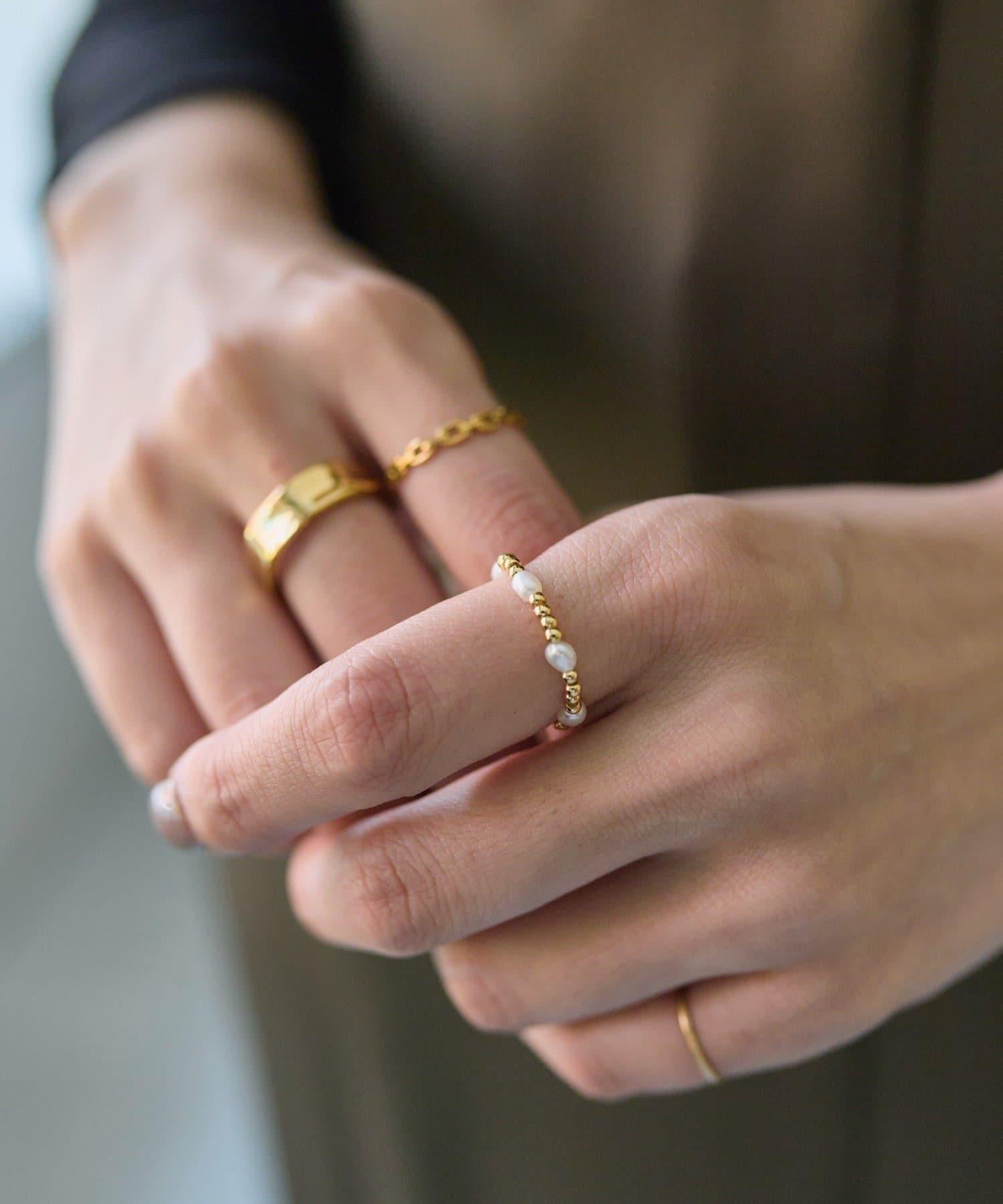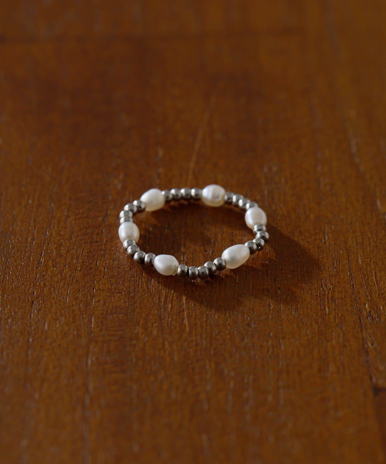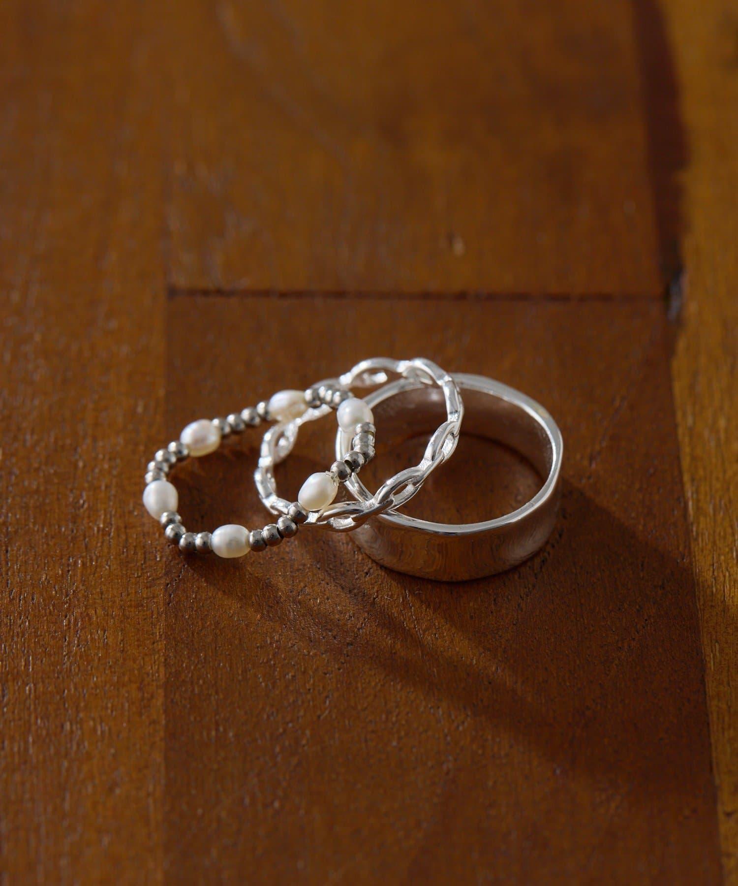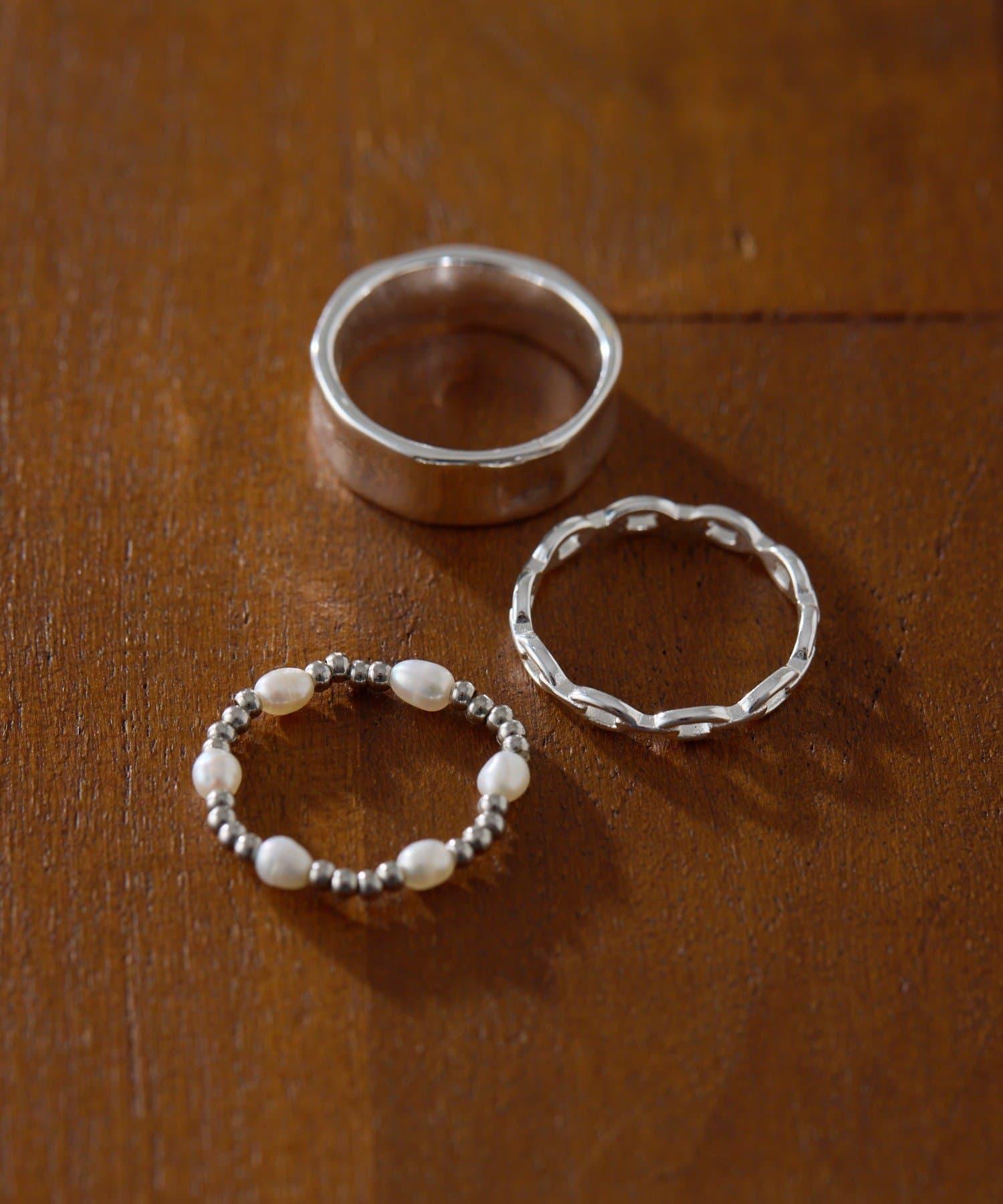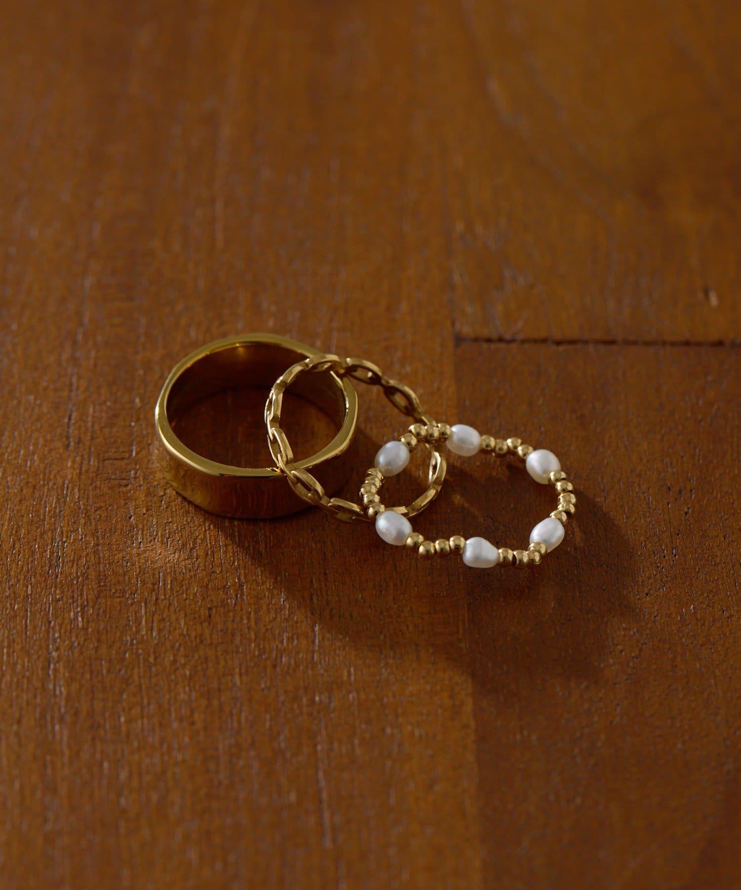 《インフルエンサーuchida企畫/ステンレス》淡水珍珠三連戒指