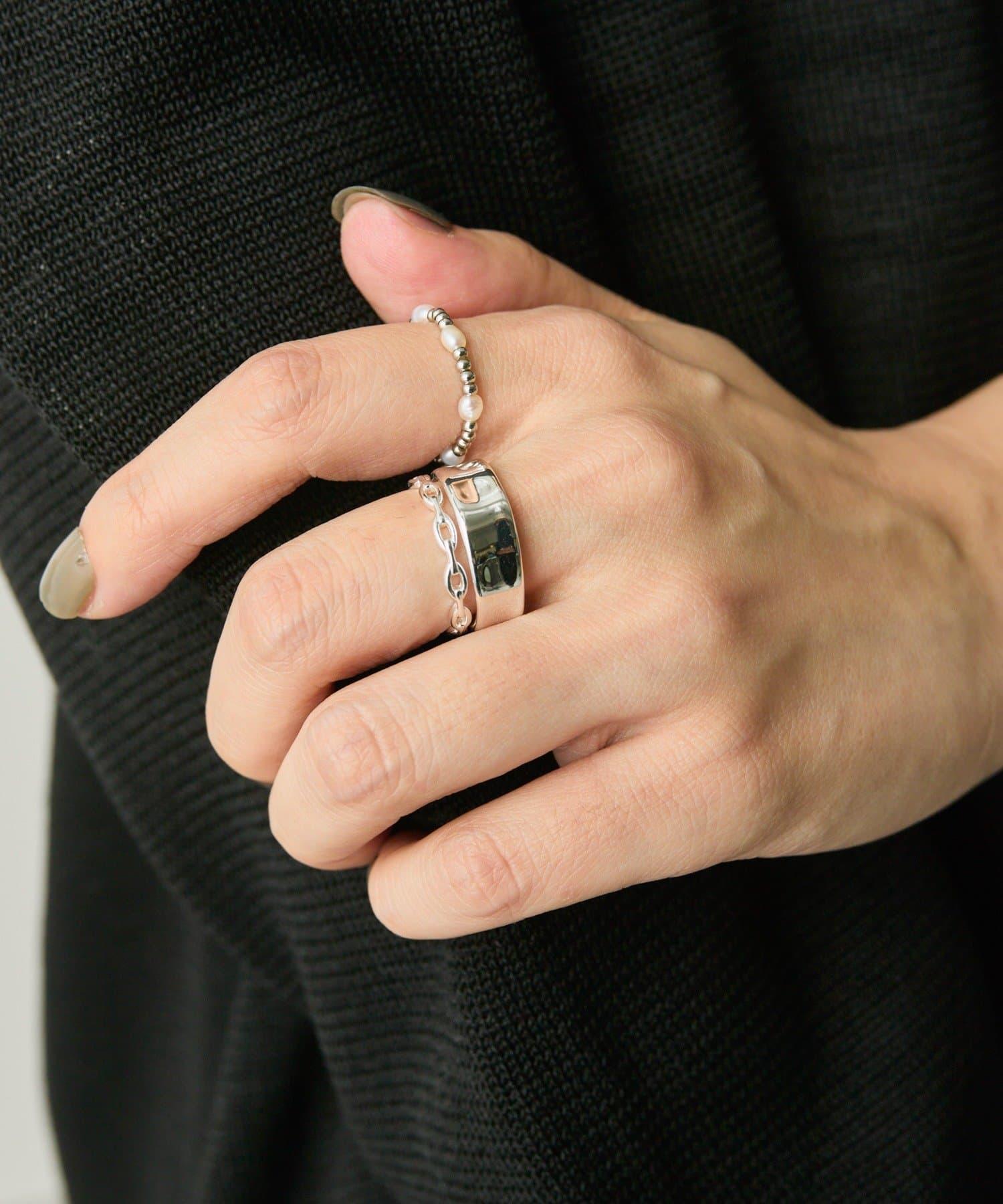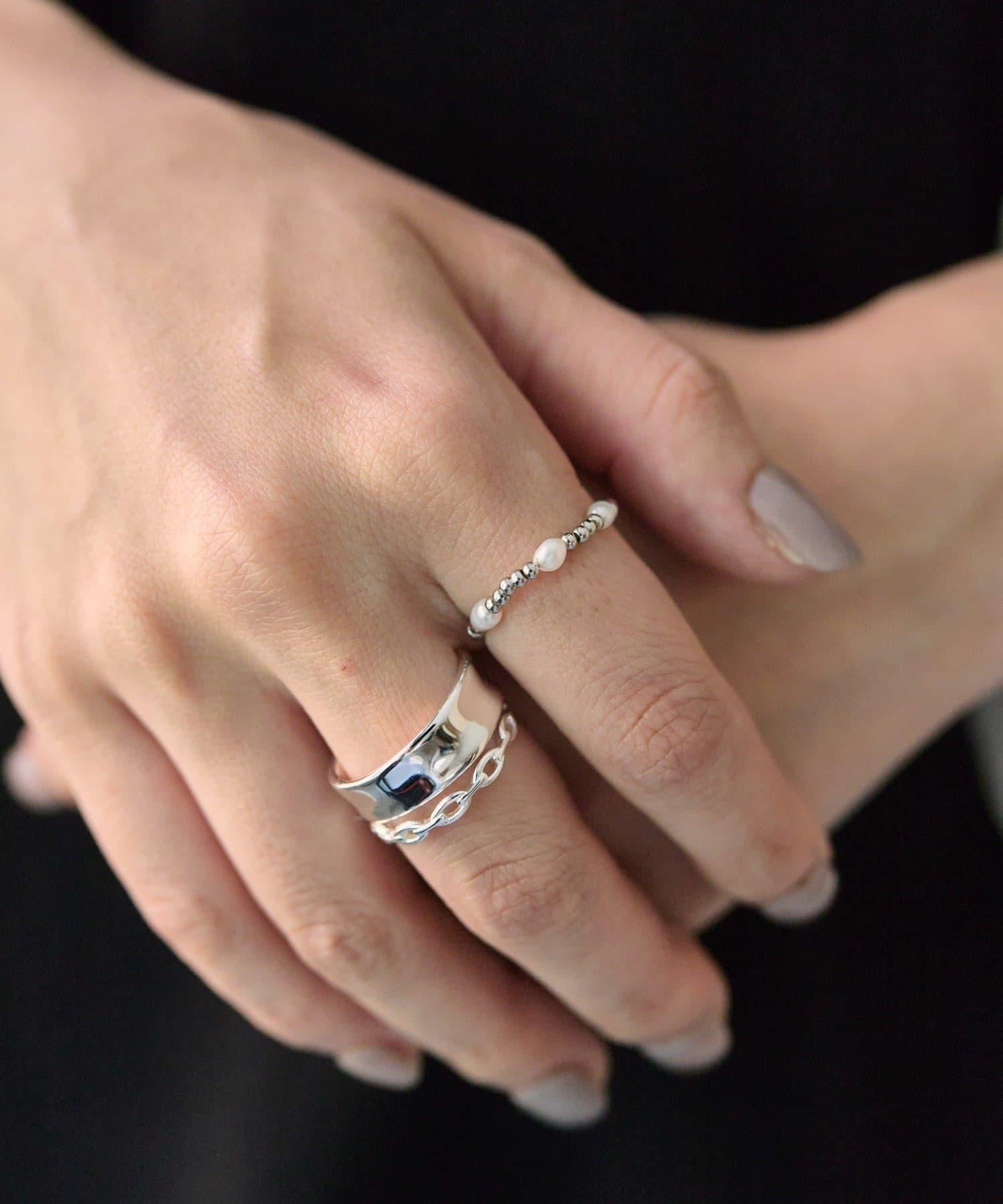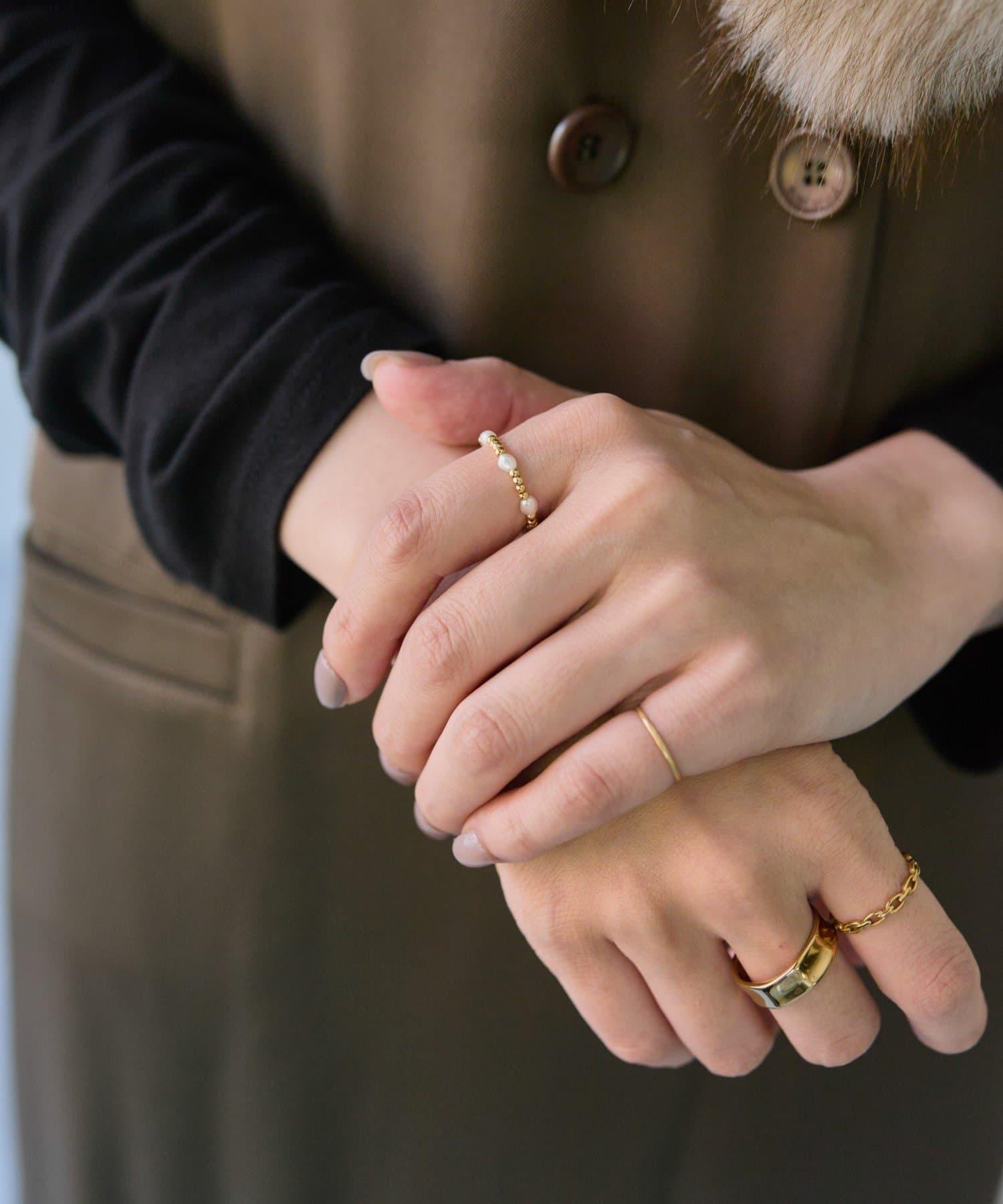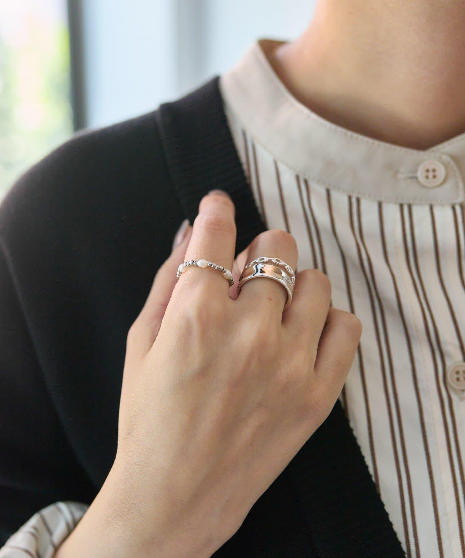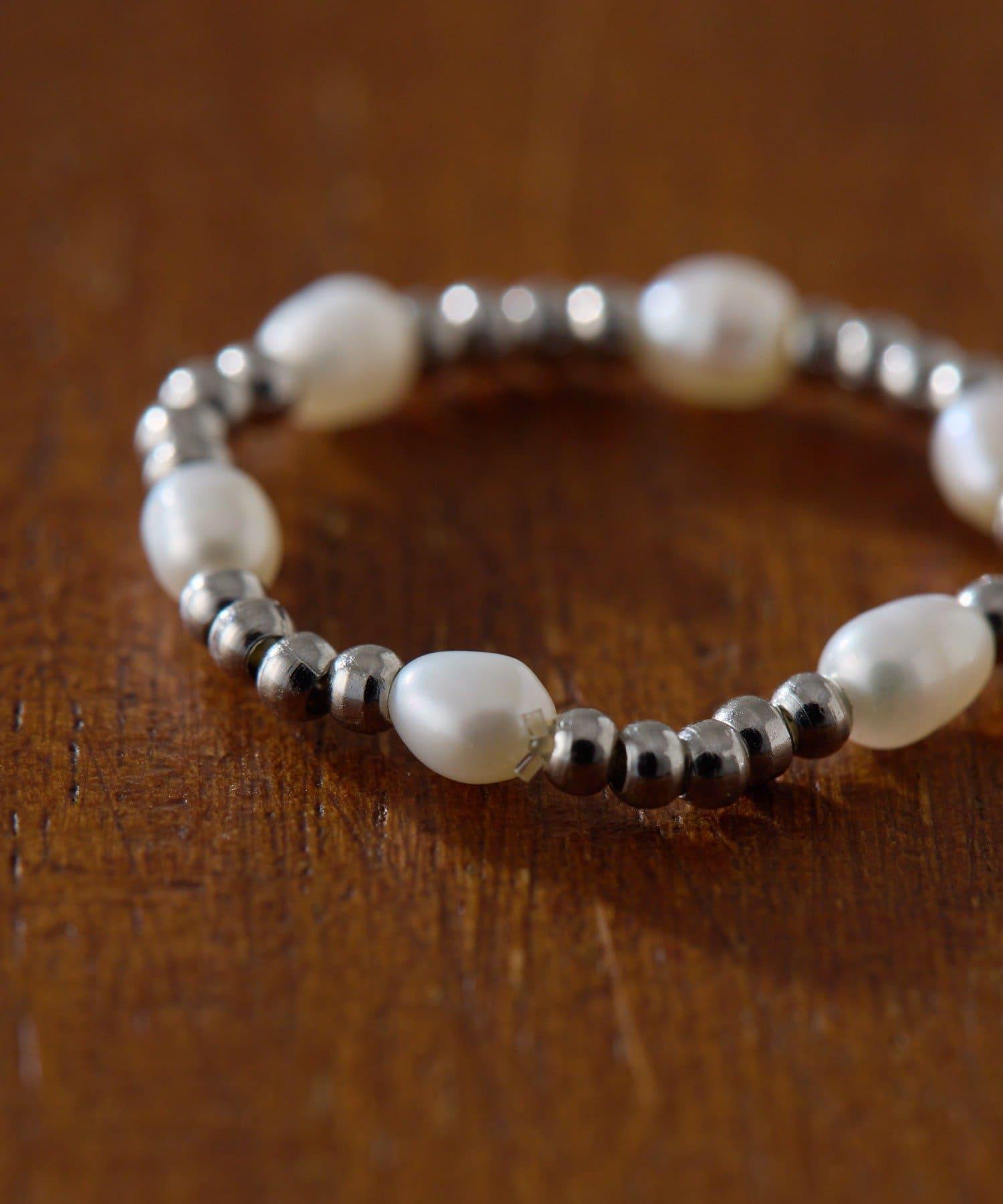 《インフルエンサーuchida企畫/ステンレス》淡水珍珠三連戒指