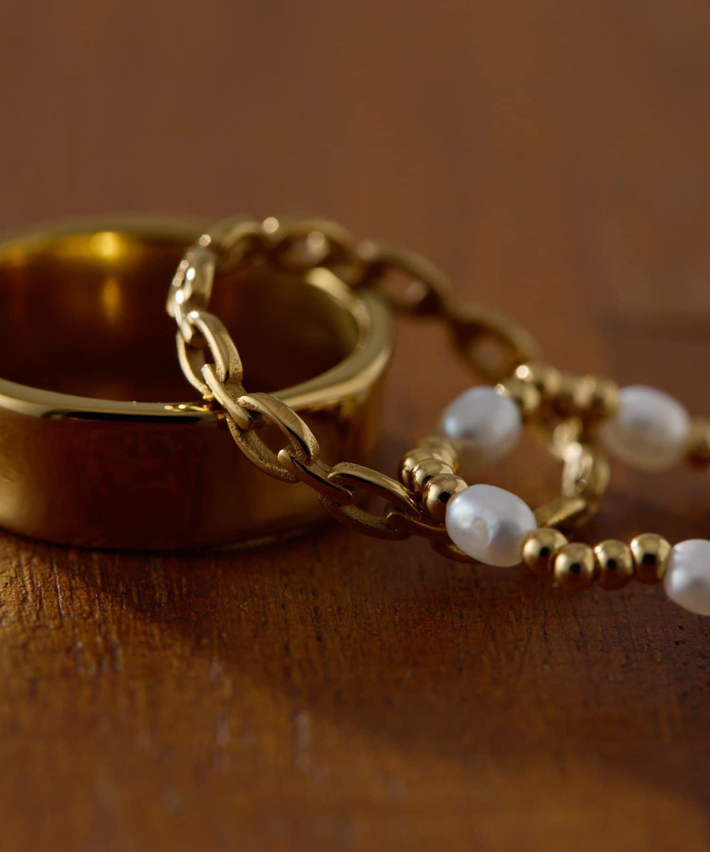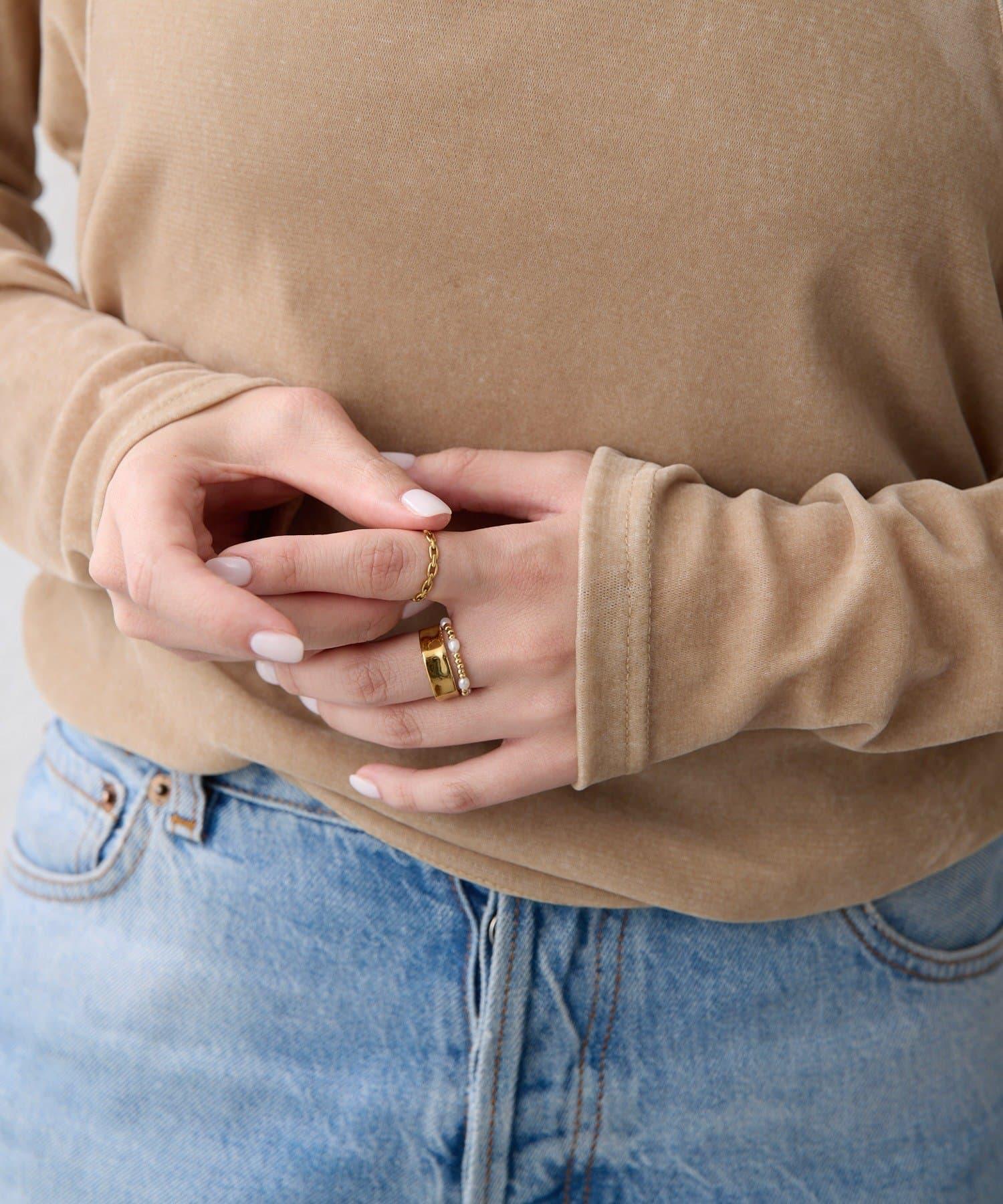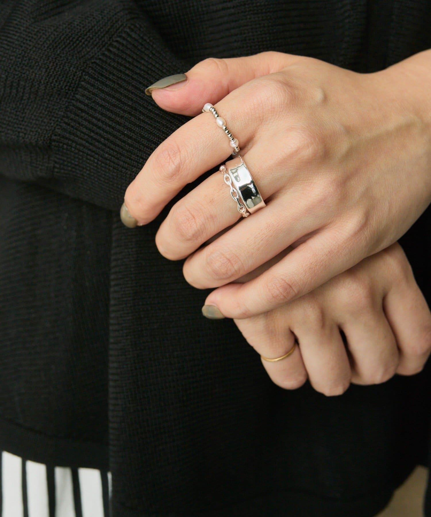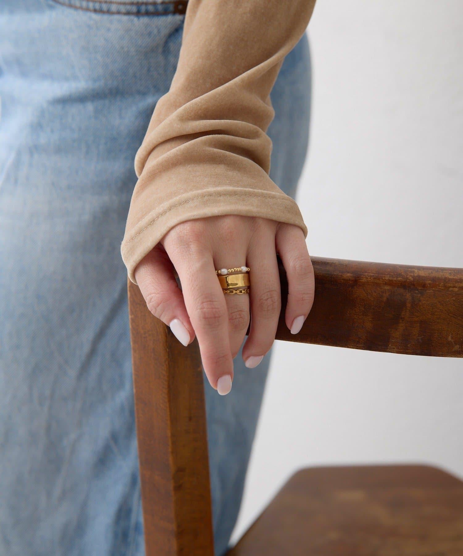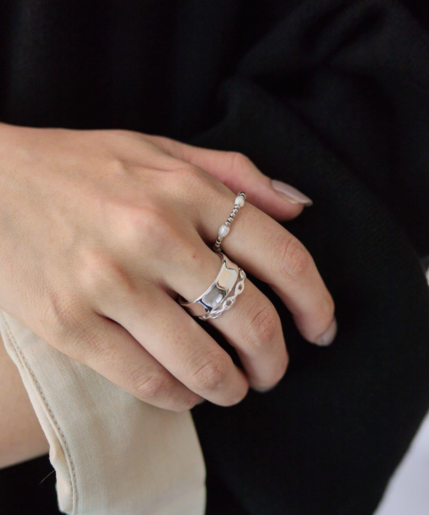 《インフルエンサーuchida企畫/ステンレス》淡水珍珠三連戒指
