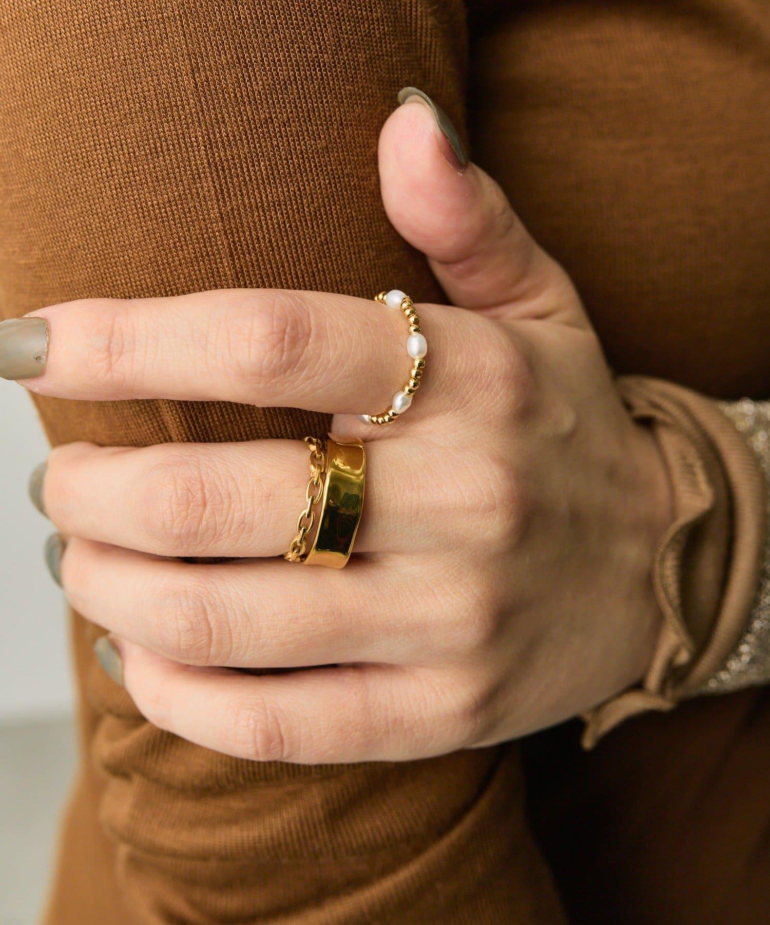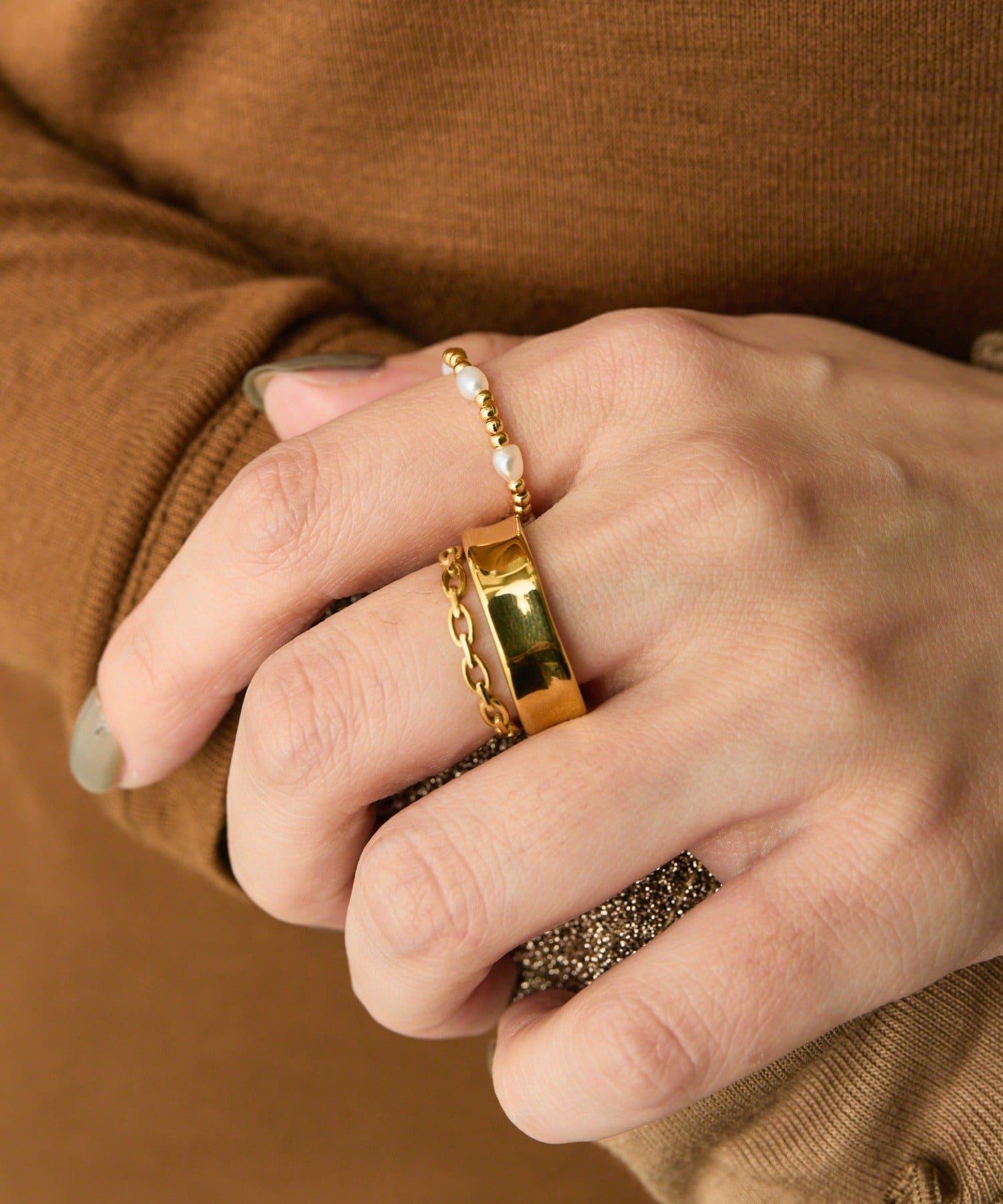 這三款層疊式淡水珍珠戒指為您的手部帶來時尚外觀。