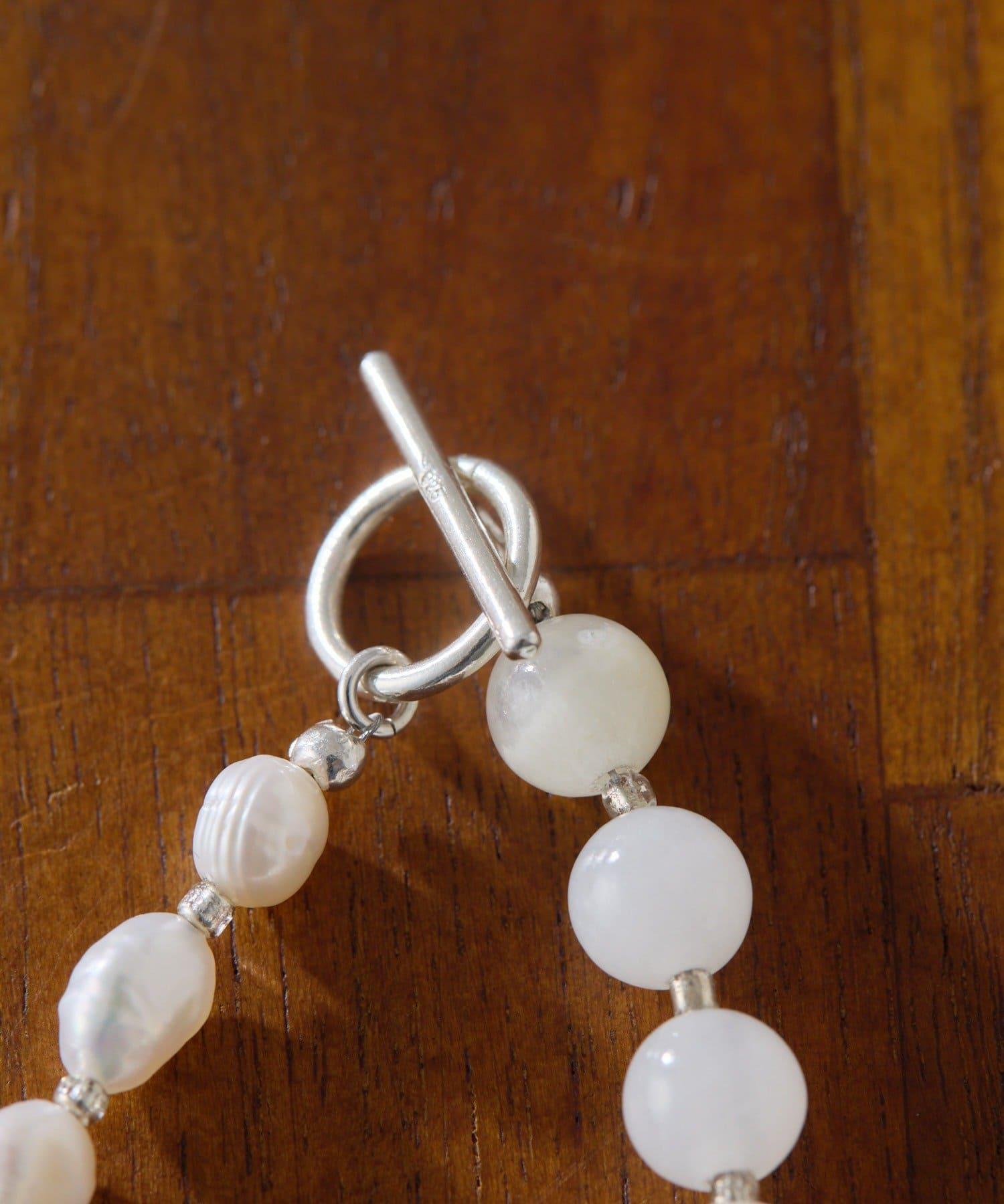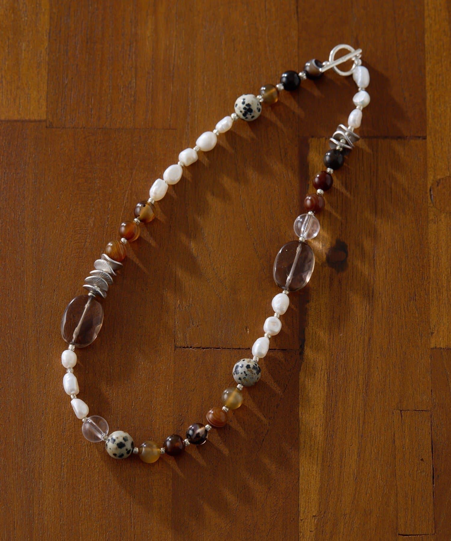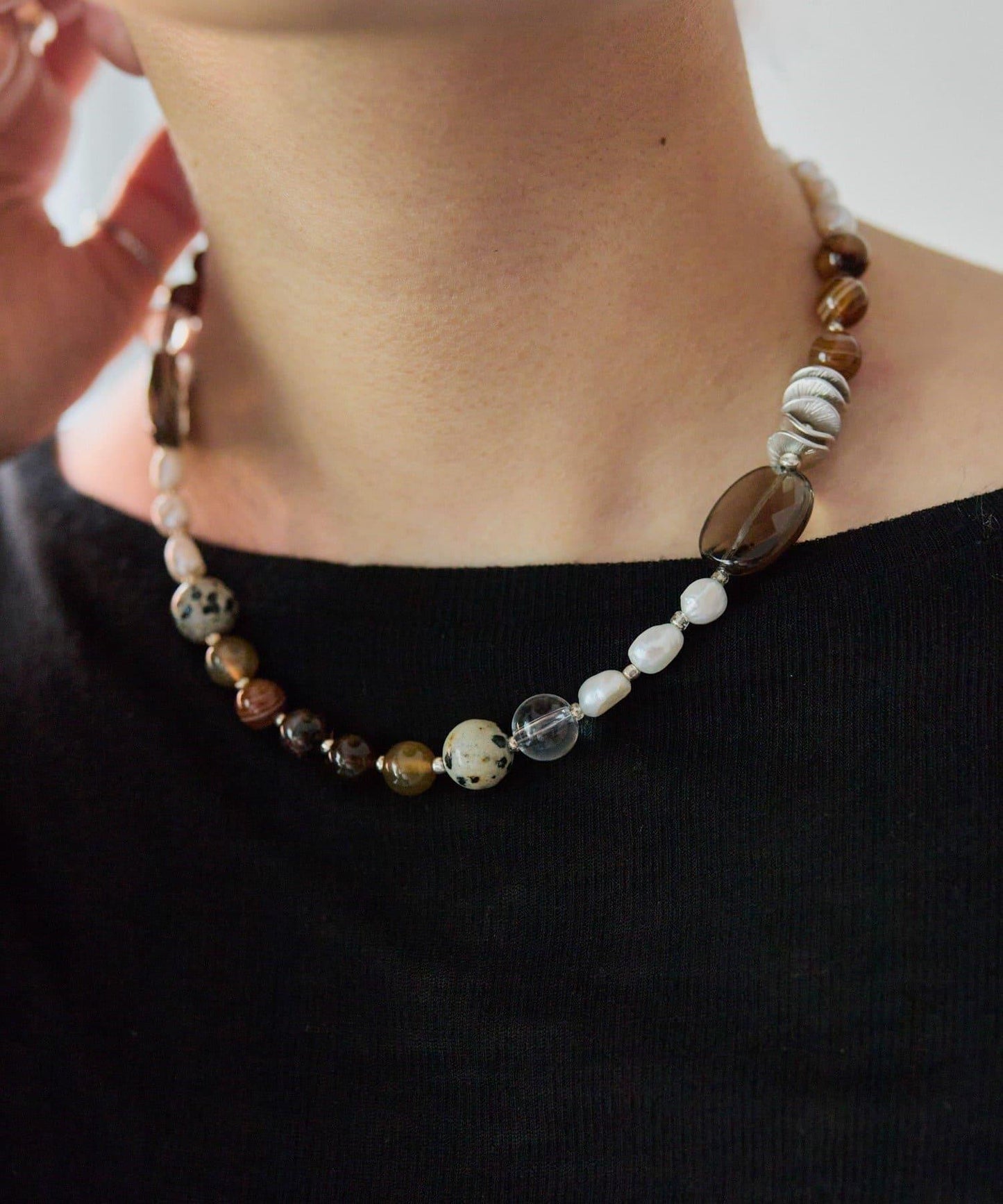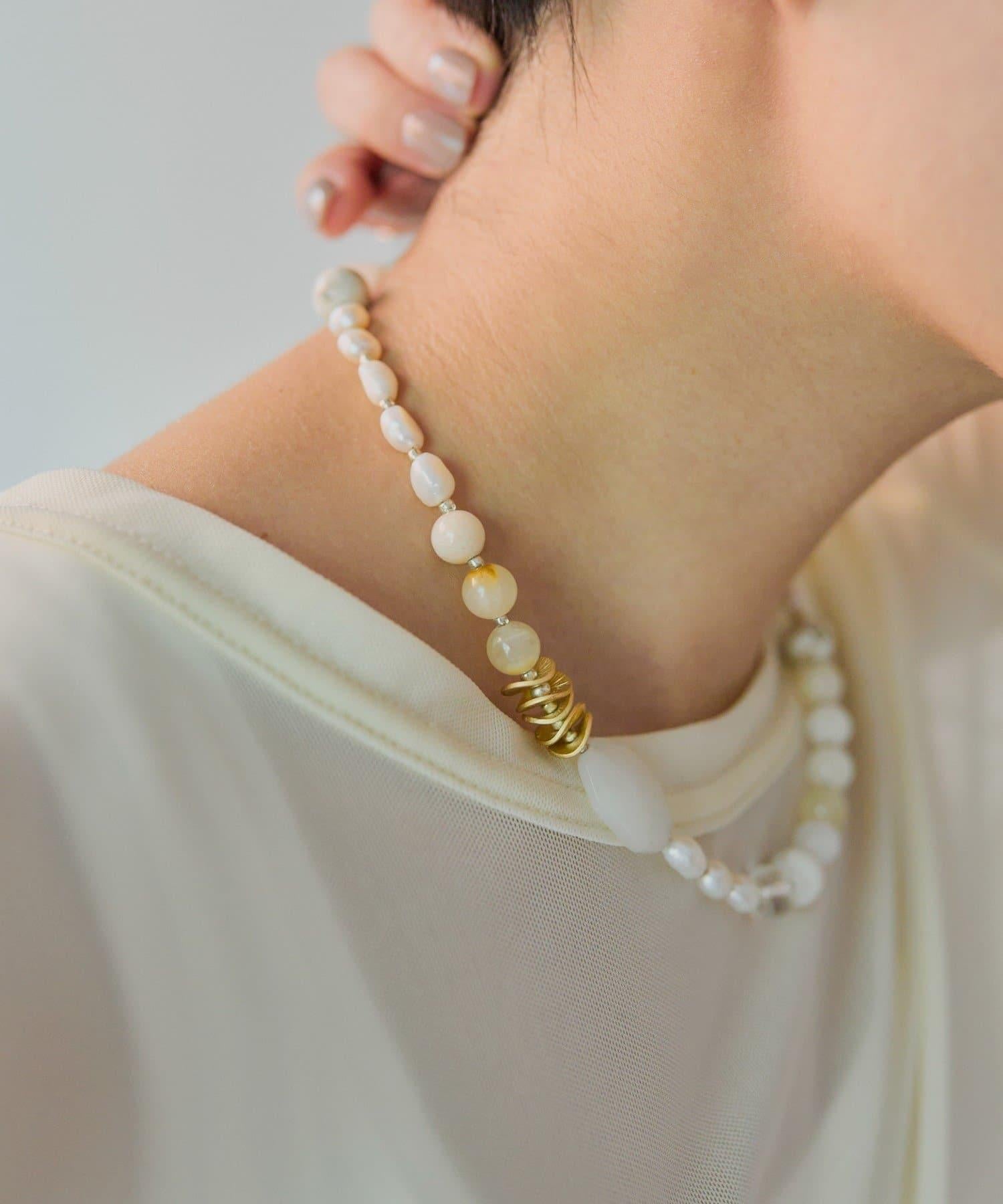 天然寶石的自然花紋和珍珠的柔和光澤是項鍊的亮點。