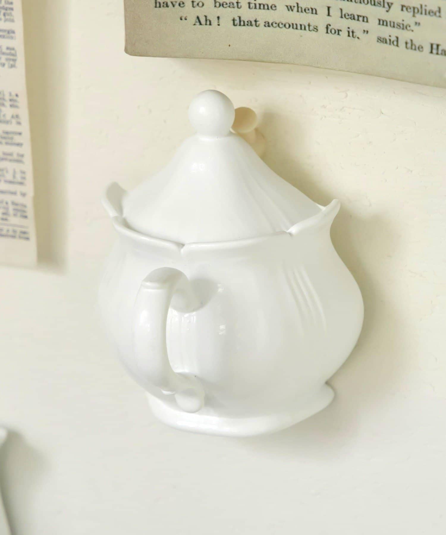 茶壺的設計俏皮可愛,就像從牆壁裡蹦出來一樣。