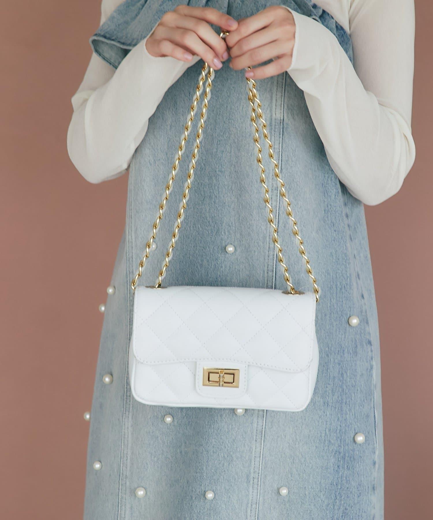 這款絎縫鏈條包採用大型縫線和五金配件,給人一種優雅的感覺。