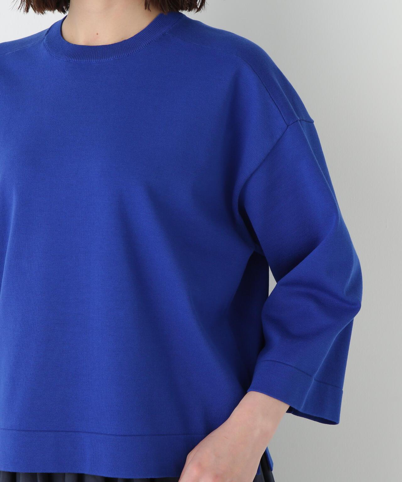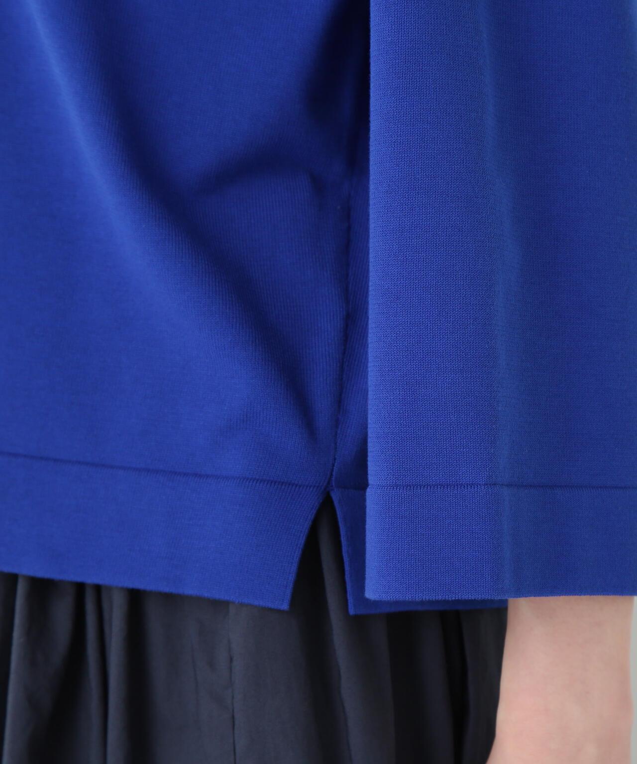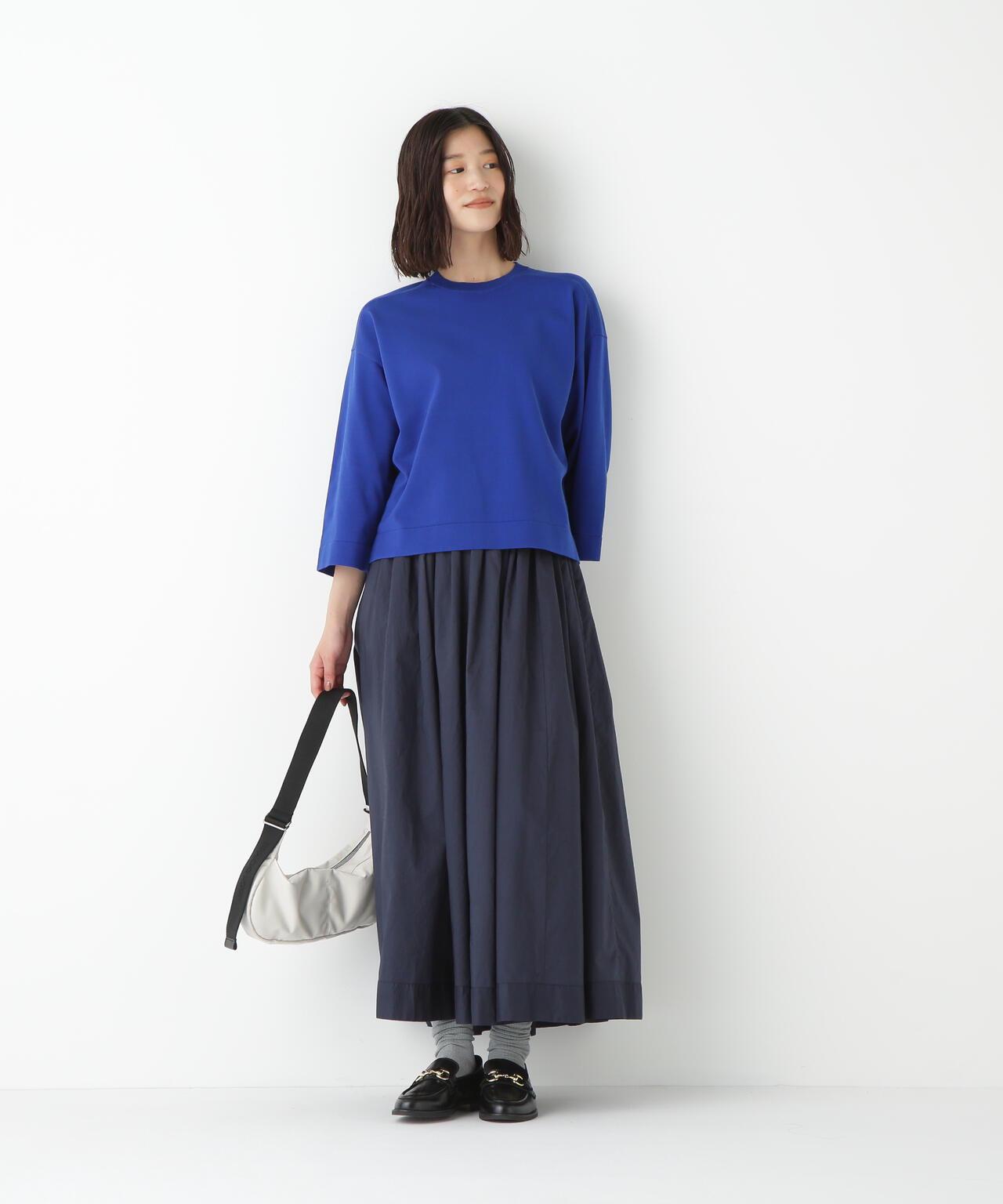 適合日常穿著的針織套頭衫 [設計要點] 這款套頭衫的輪廓就像運動鞋的下襬和袖口被剪裁過一樣。下襬和袖口都遠離身體,因此穿起來非常透氣。它是一款針織 T 恤,也能很好地打造簡潔的外觀。針織衫採用表面美觀的天然纖維材料鍍層有機棉製成。推薦座標】長度易於平衡,可搭配各種廓形的下裝。還建議搭配內搭襯衫的疊穿款式。這款套頭衫非常適合日常穿著,上班下班皆宜。