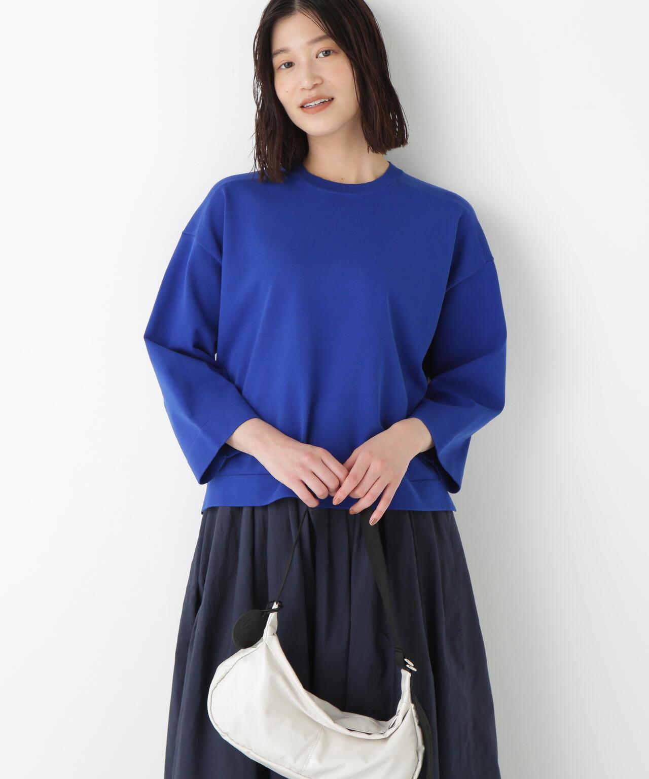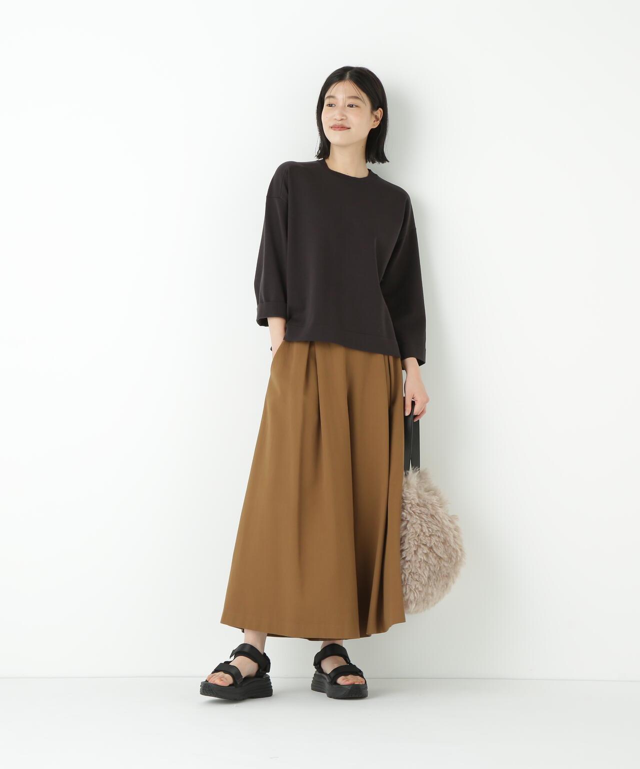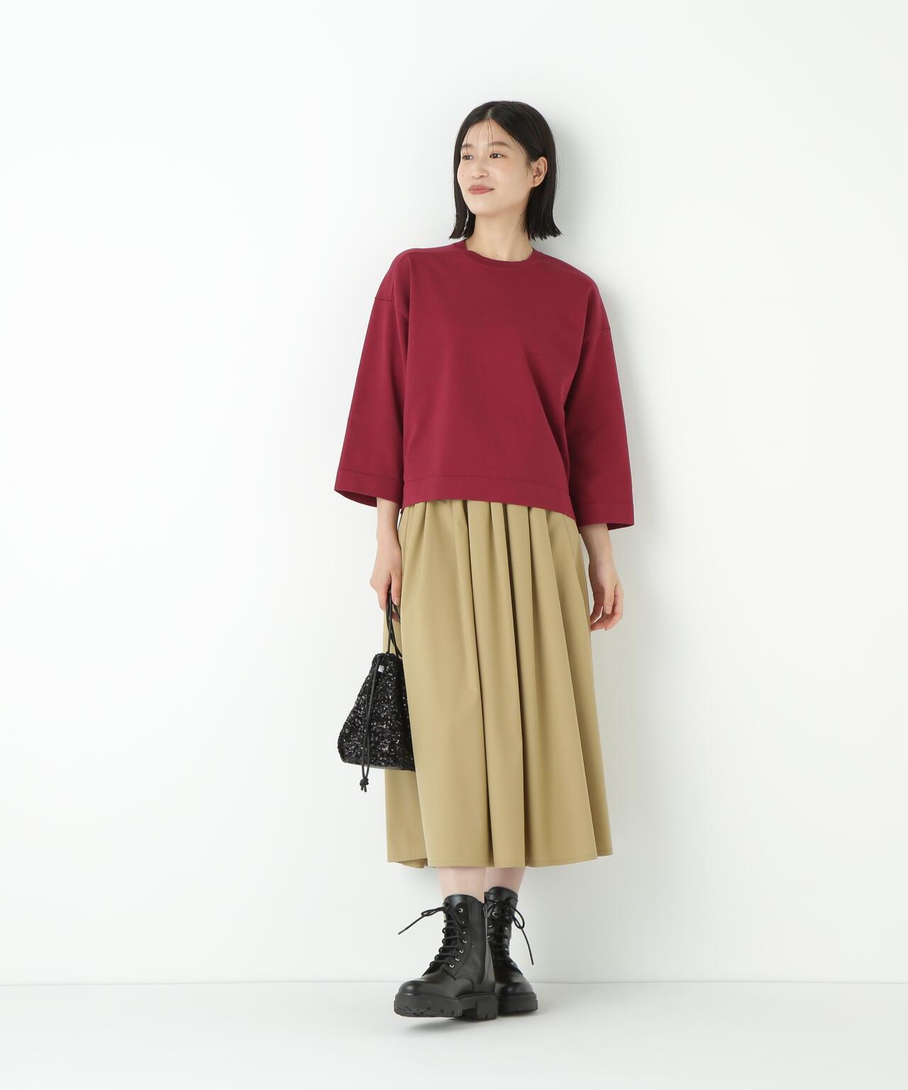 適合日常穿著的針織套頭衫 [設計要點] 這款套頭衫的輪廓就像運動鞋的下襬和袖口被剪裁過一樣。下襬和袖口都遠離身體,因此穿起來非常透氣。它是一款針織 T 恤,也能很好地打造簡潔的外觀。針織衫採用表面美觀的天然纖維材料鍍層有機棉製成。推薦座標】長度易於平衡,可搭配各種廓形的下裝。還建議搭配內搭襯衫的疊穿款式。這款套頭衫非常適合日常穿著,上班下班皆宜。