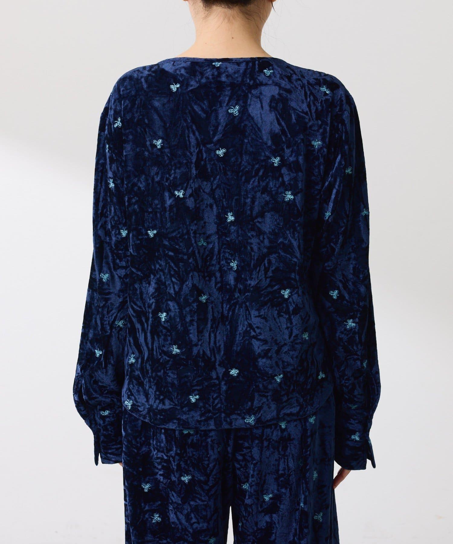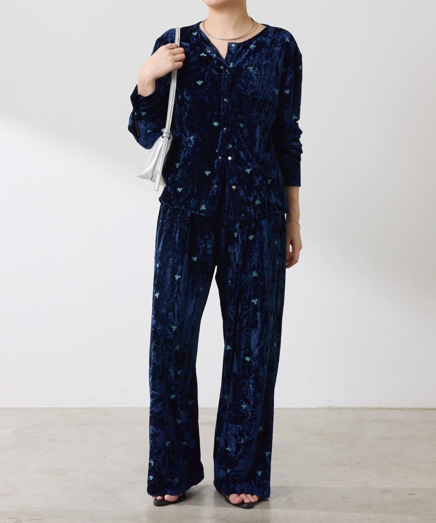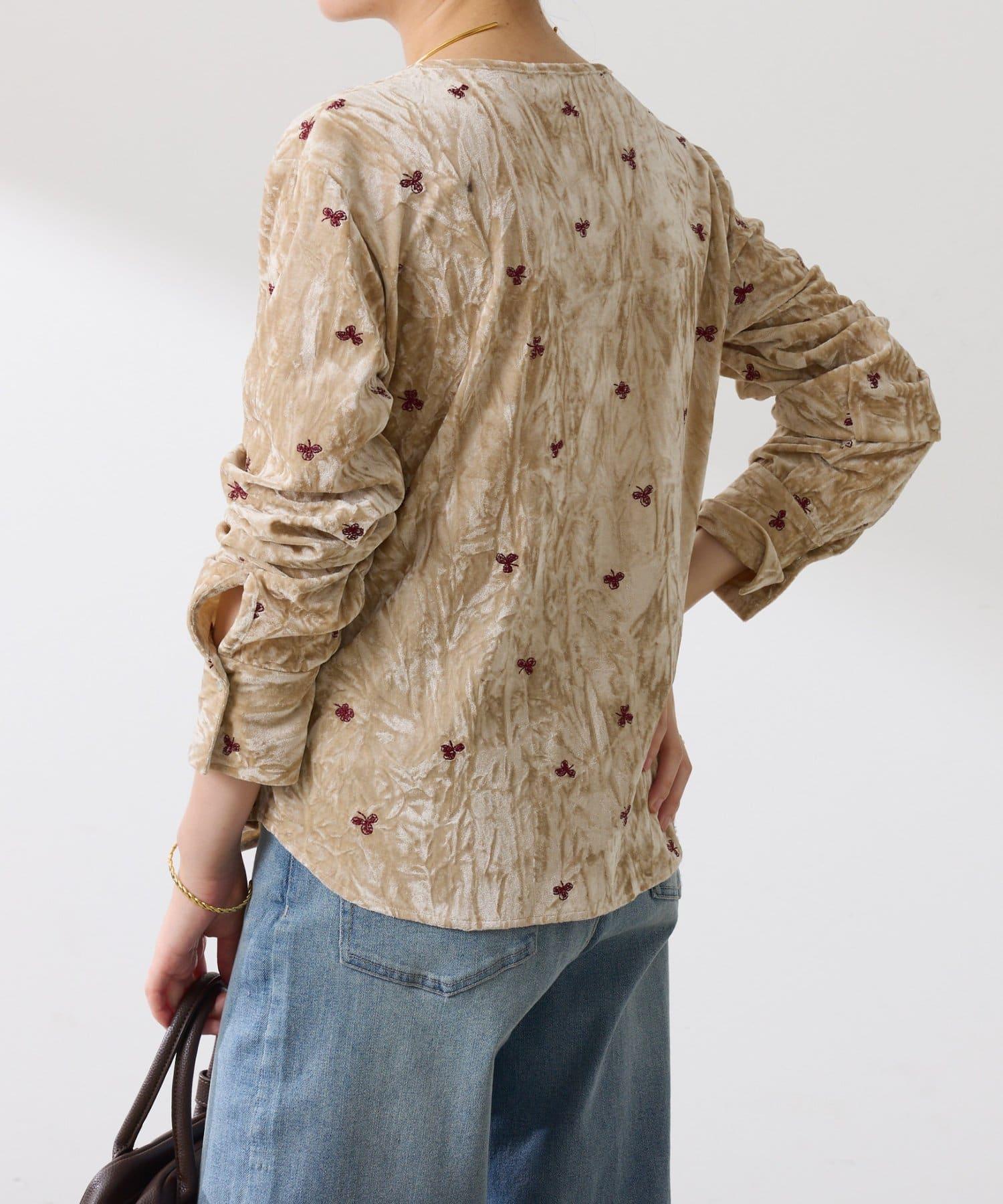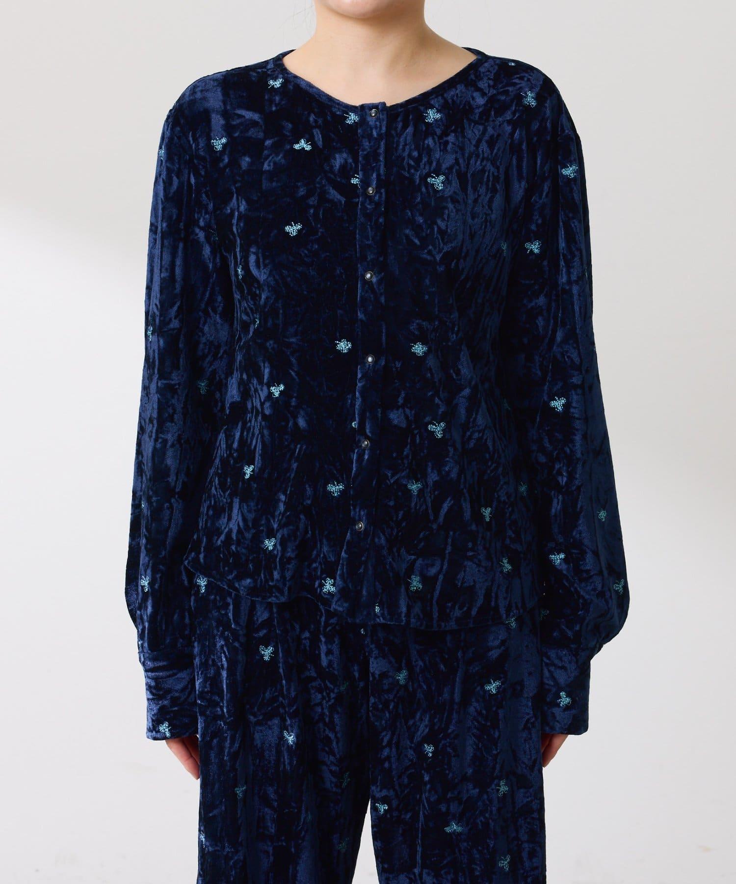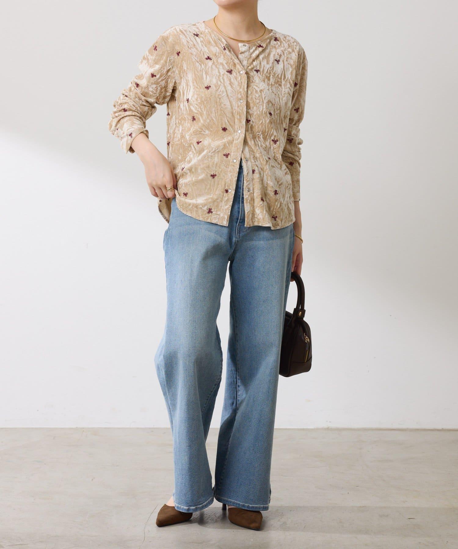 這款開衫採用碎絲絨面料,與其他開衫不同。