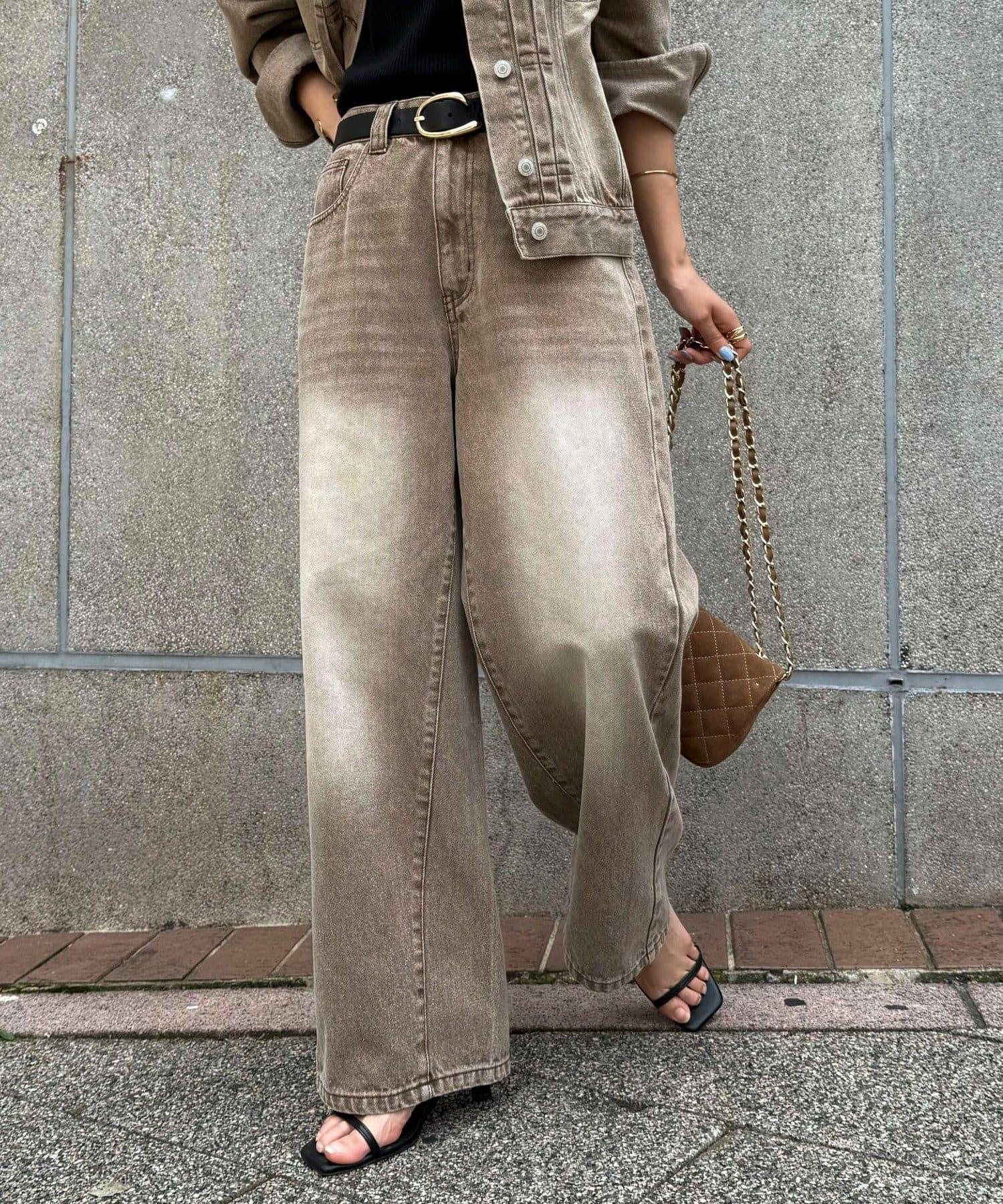 與同材質的 [無領緊湊型牛仔夾克] 搭配,完成季節性的套裝風格!
