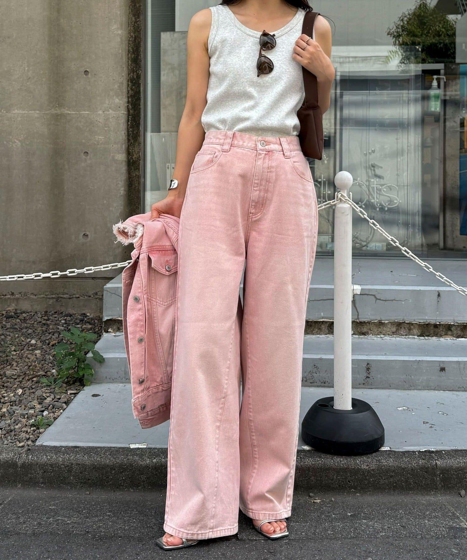 彩色牛仔長褲,輪廓優美,與眾不同。