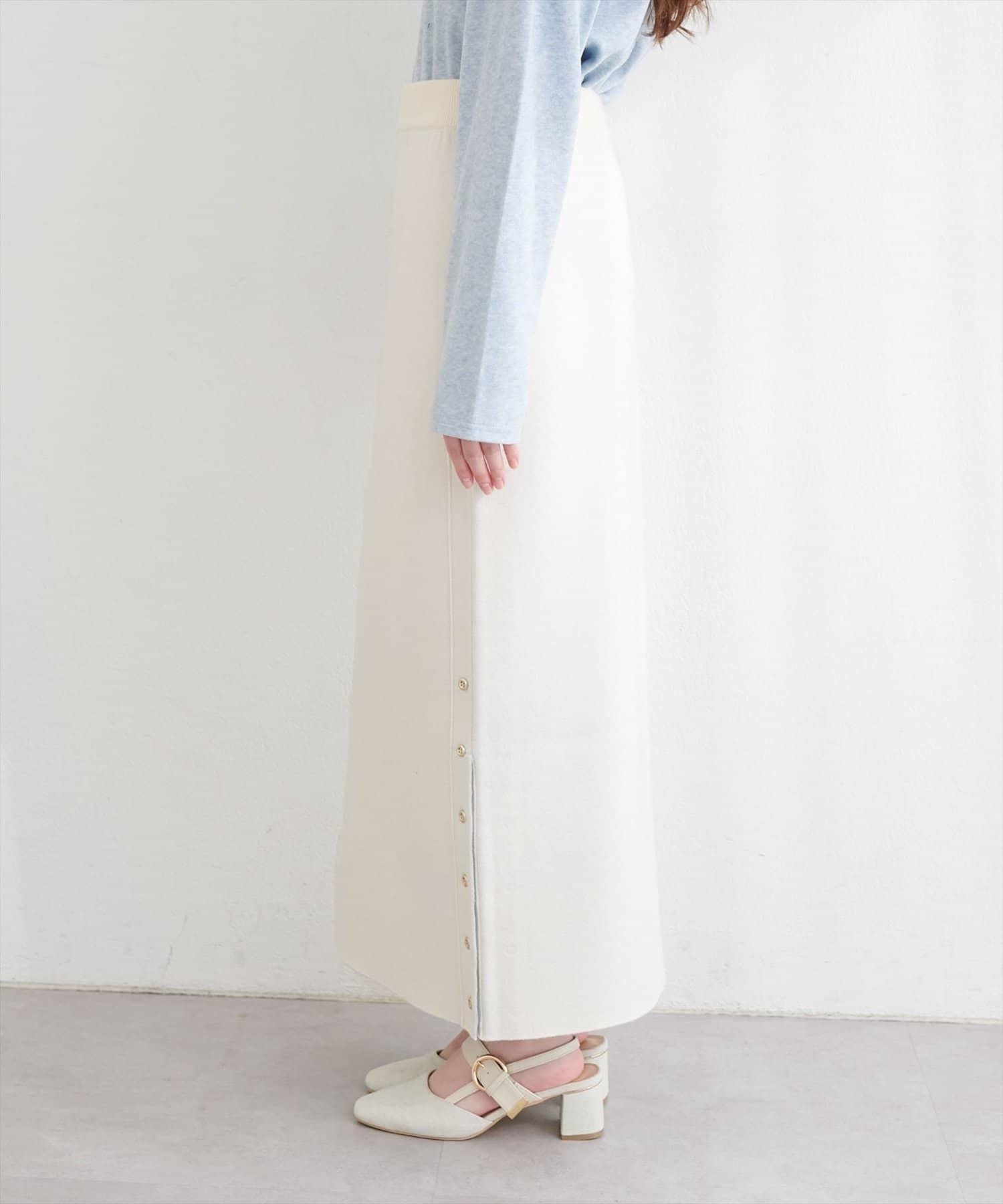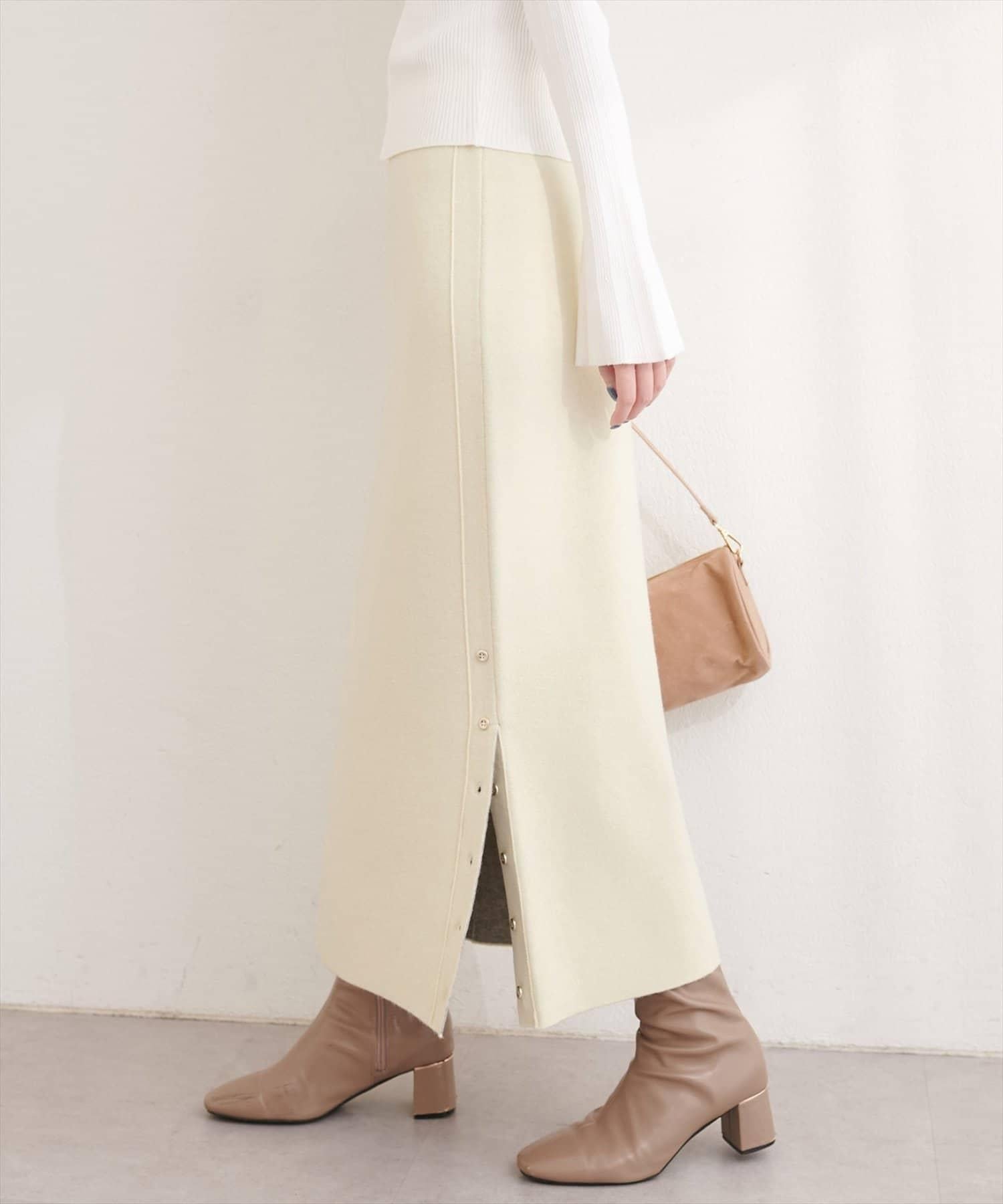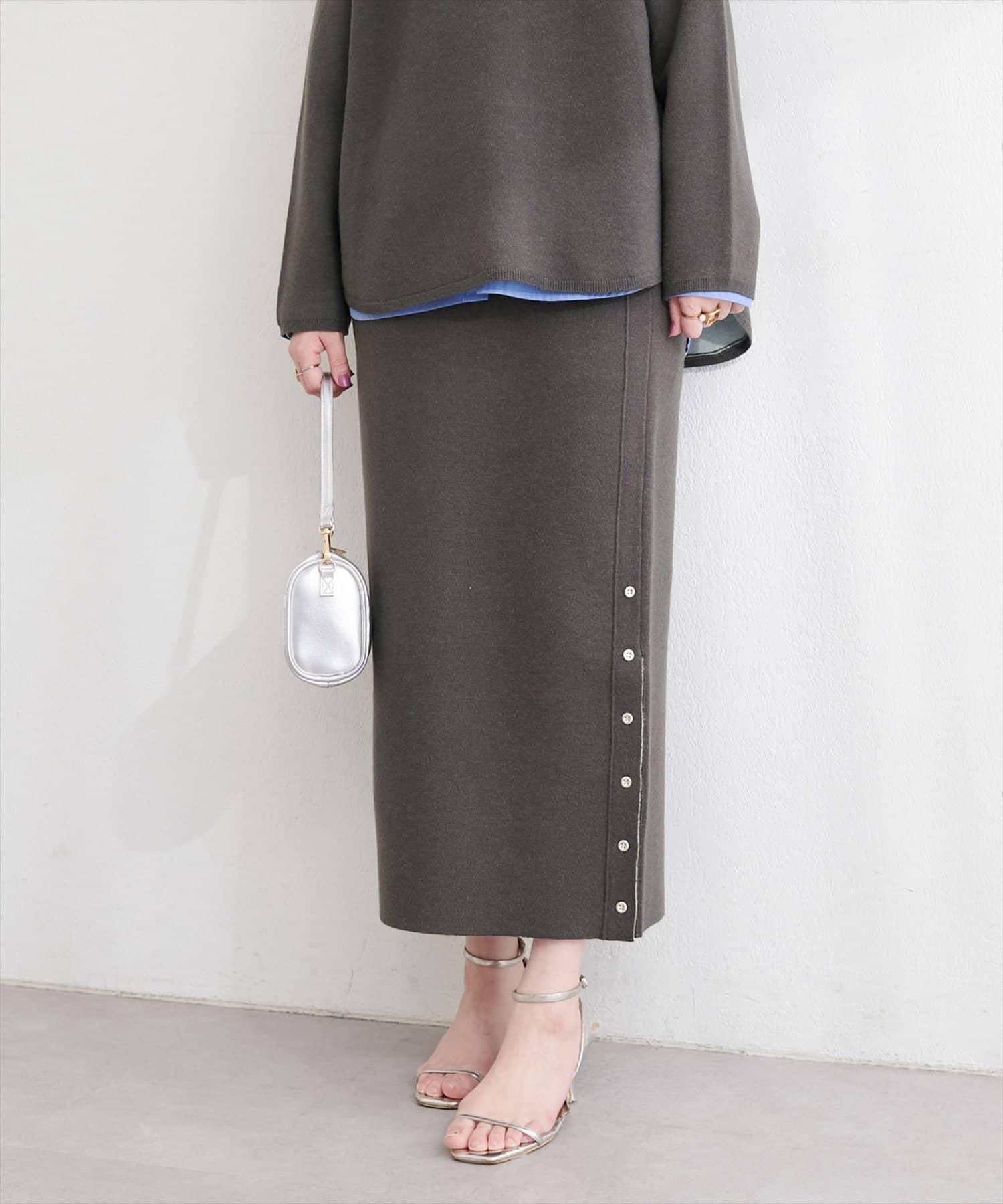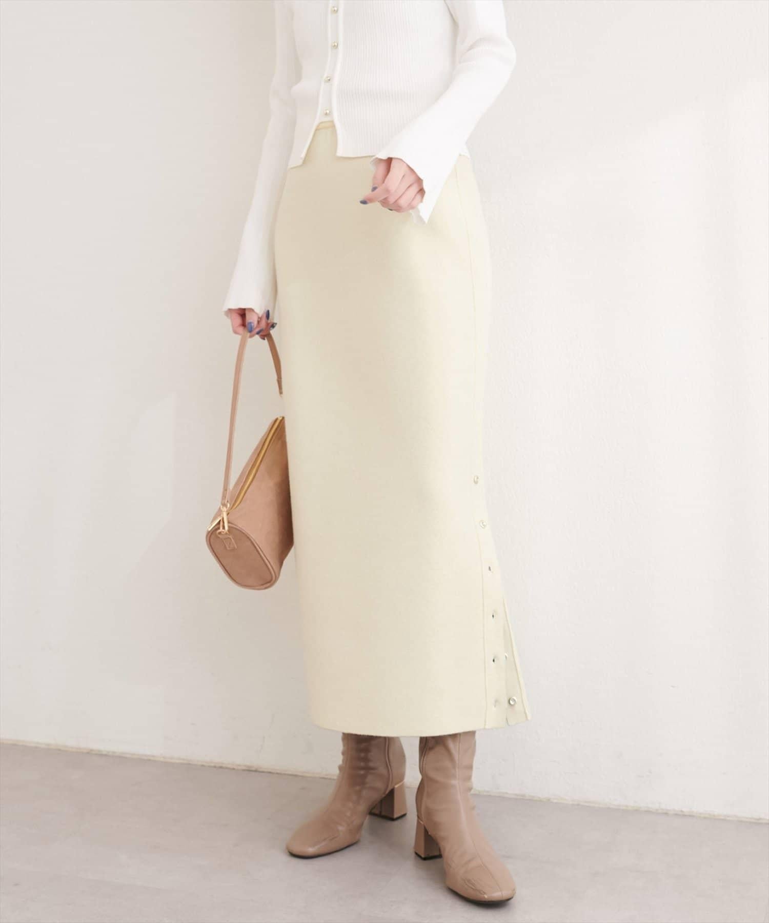 サイド釦スリットタイトニットスカート