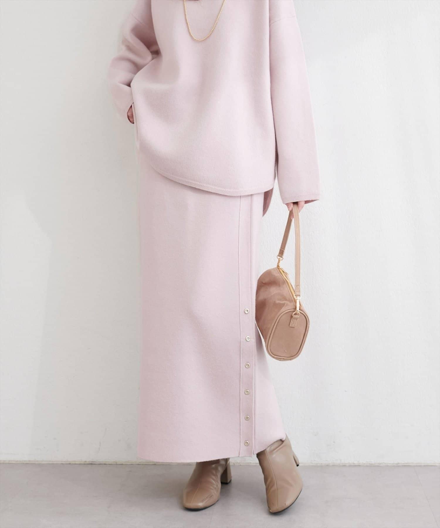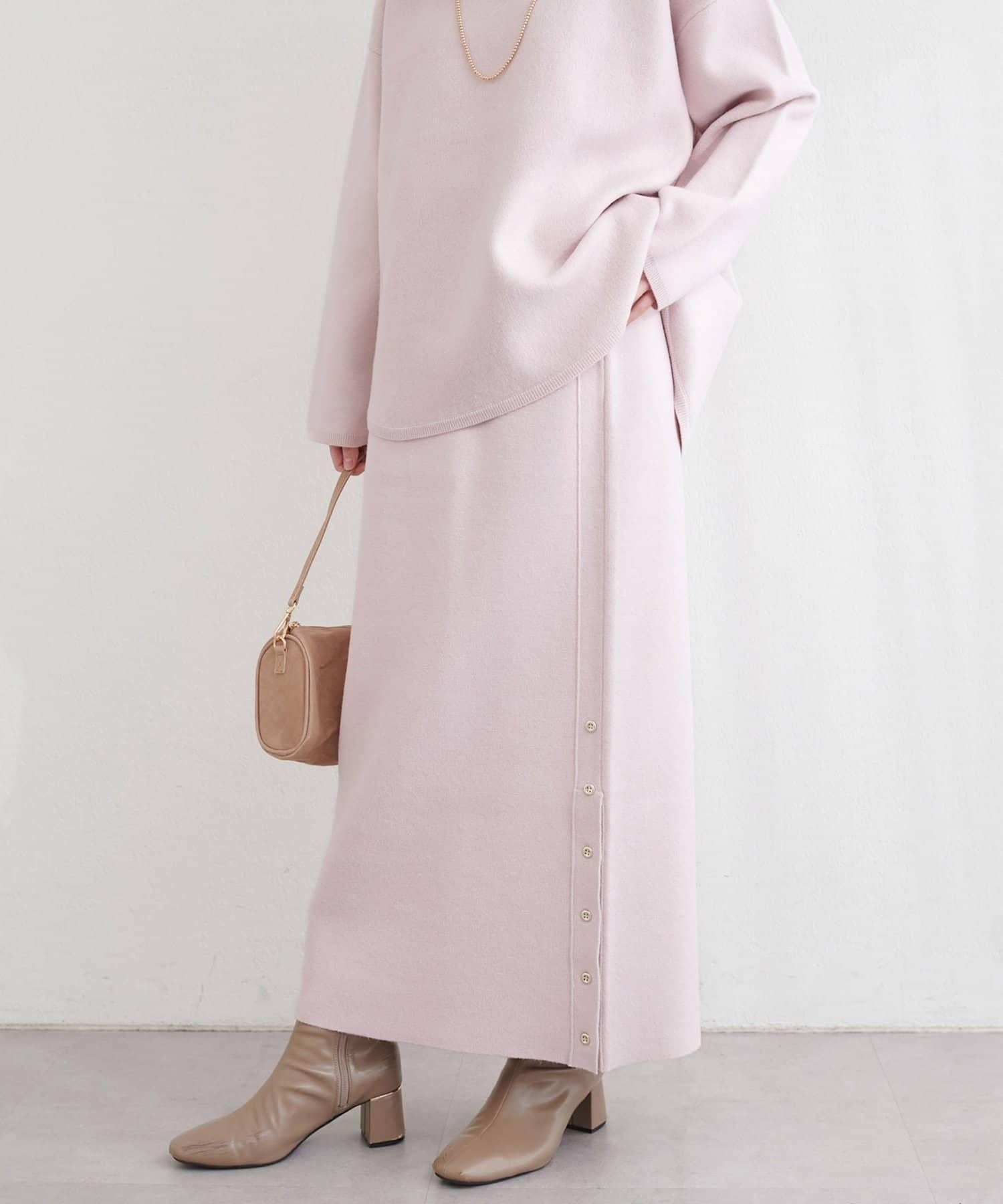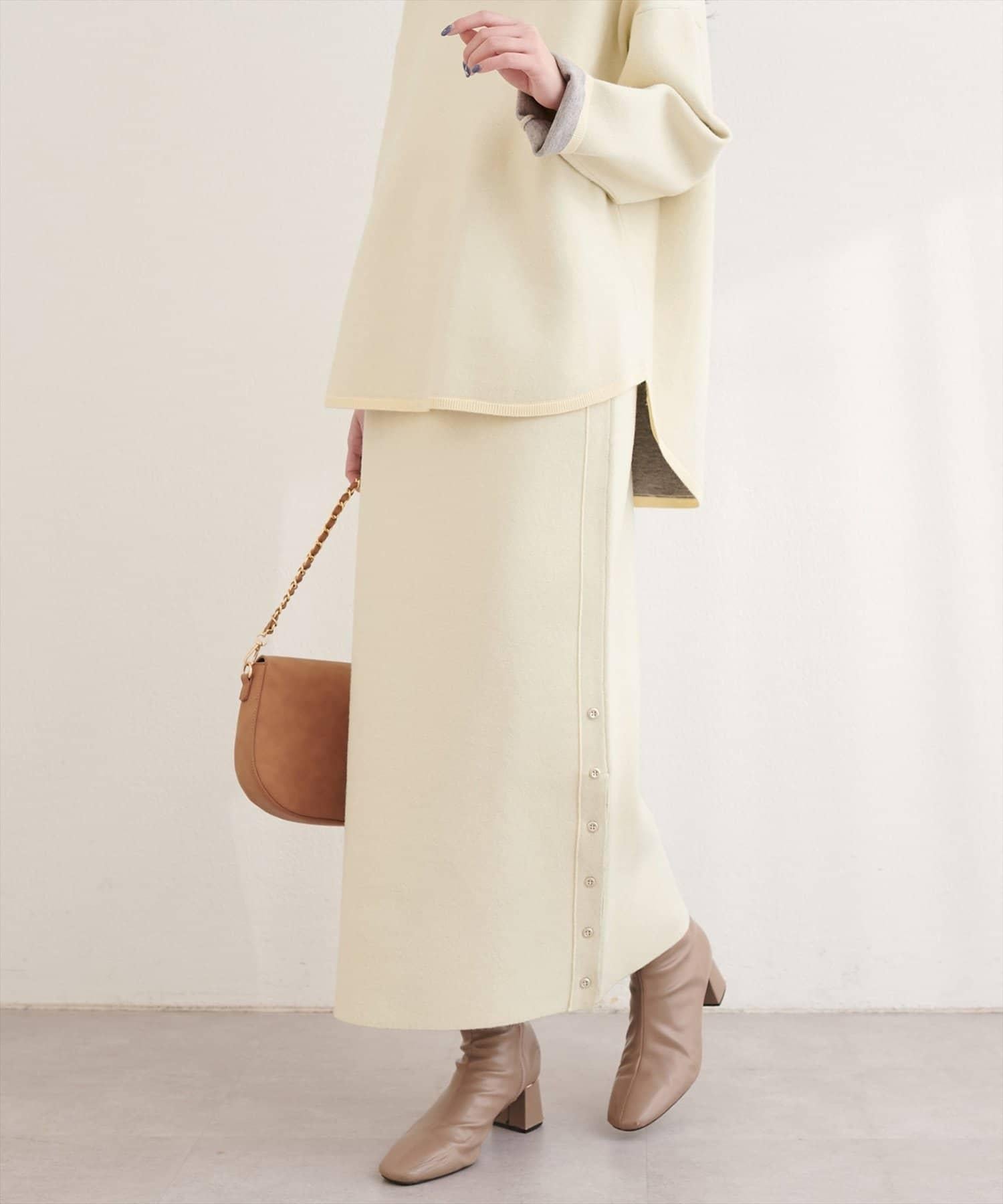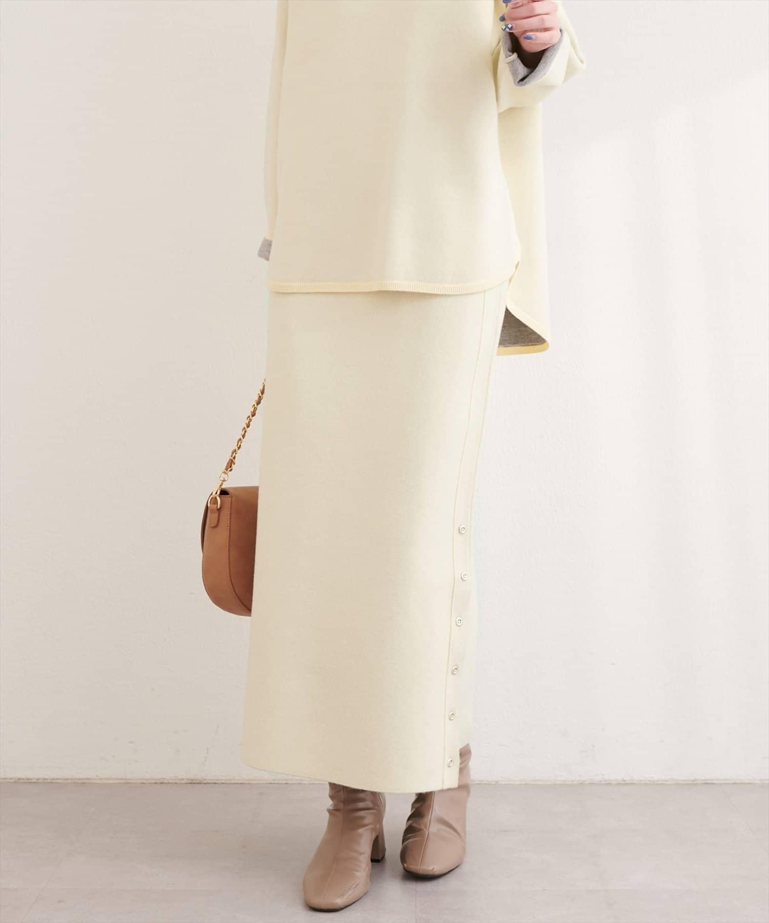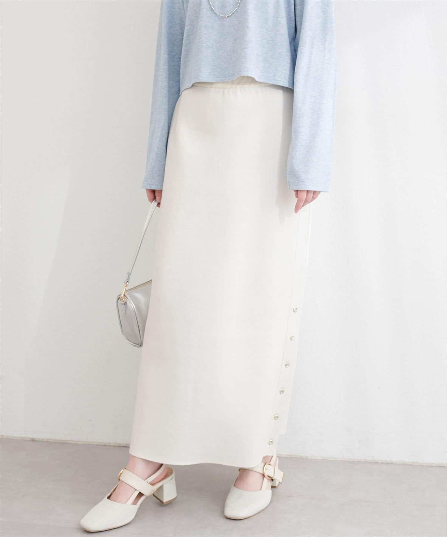 サイド釦スリットタイトニットスカート