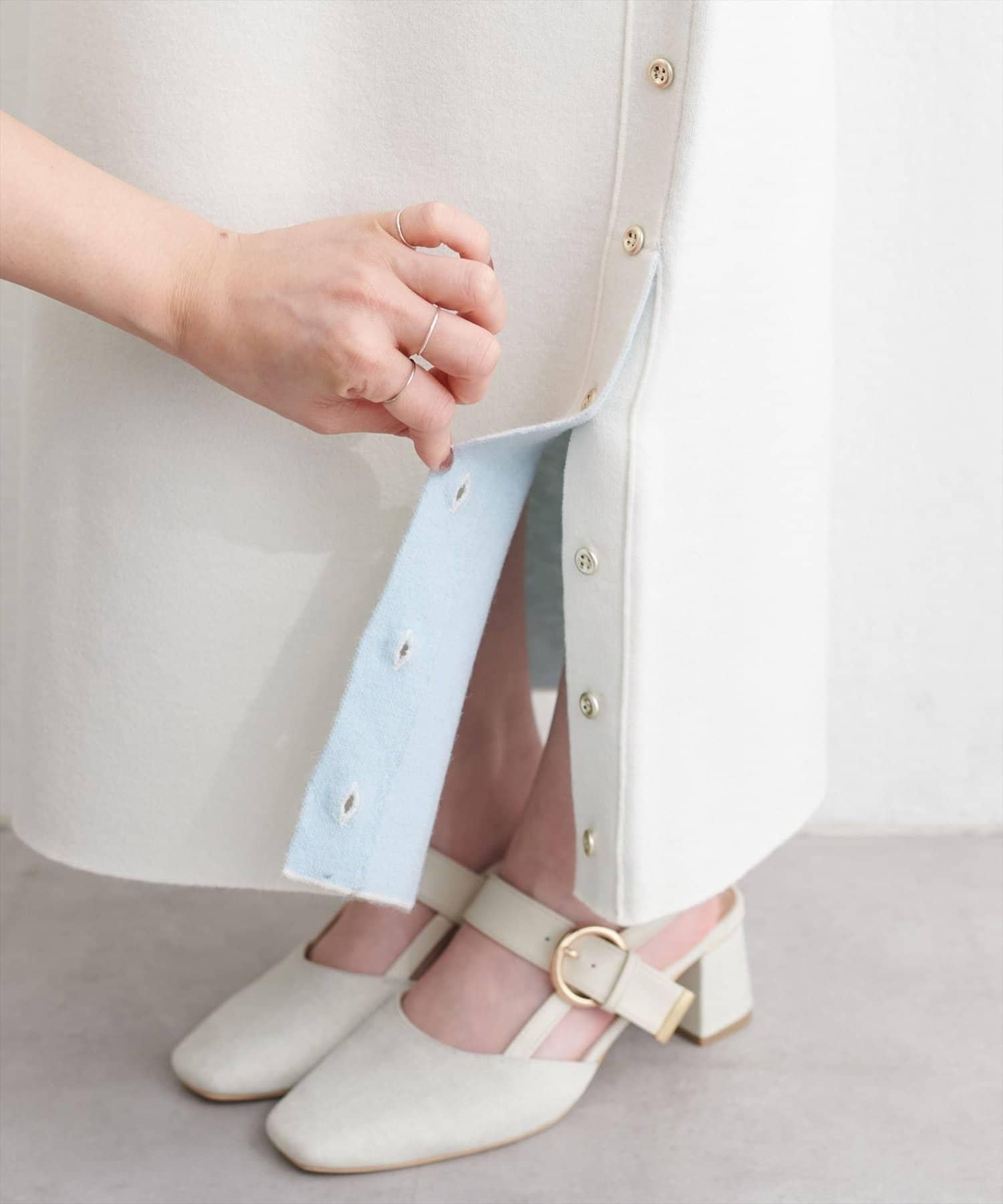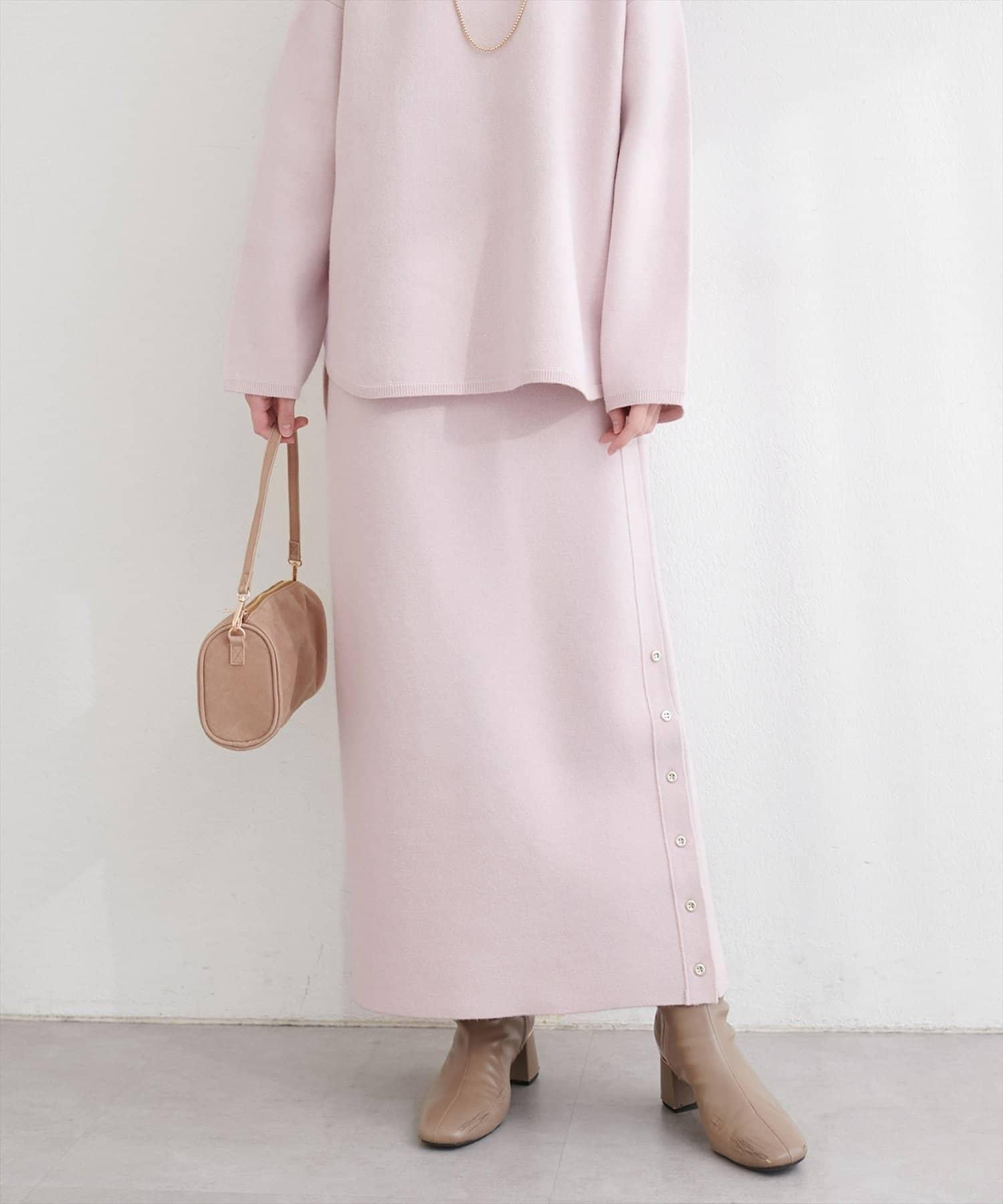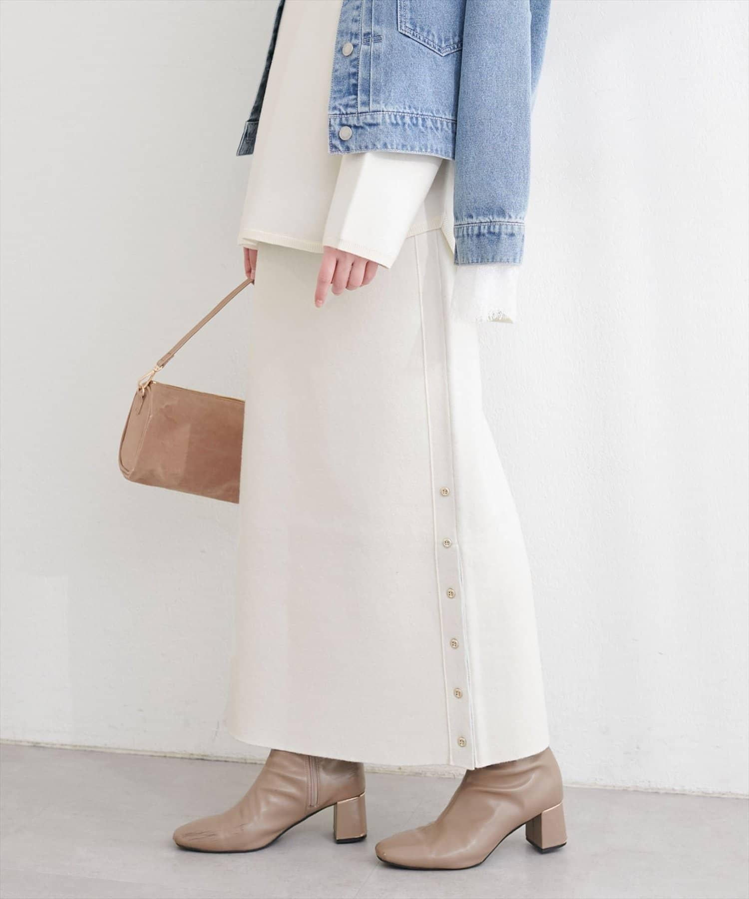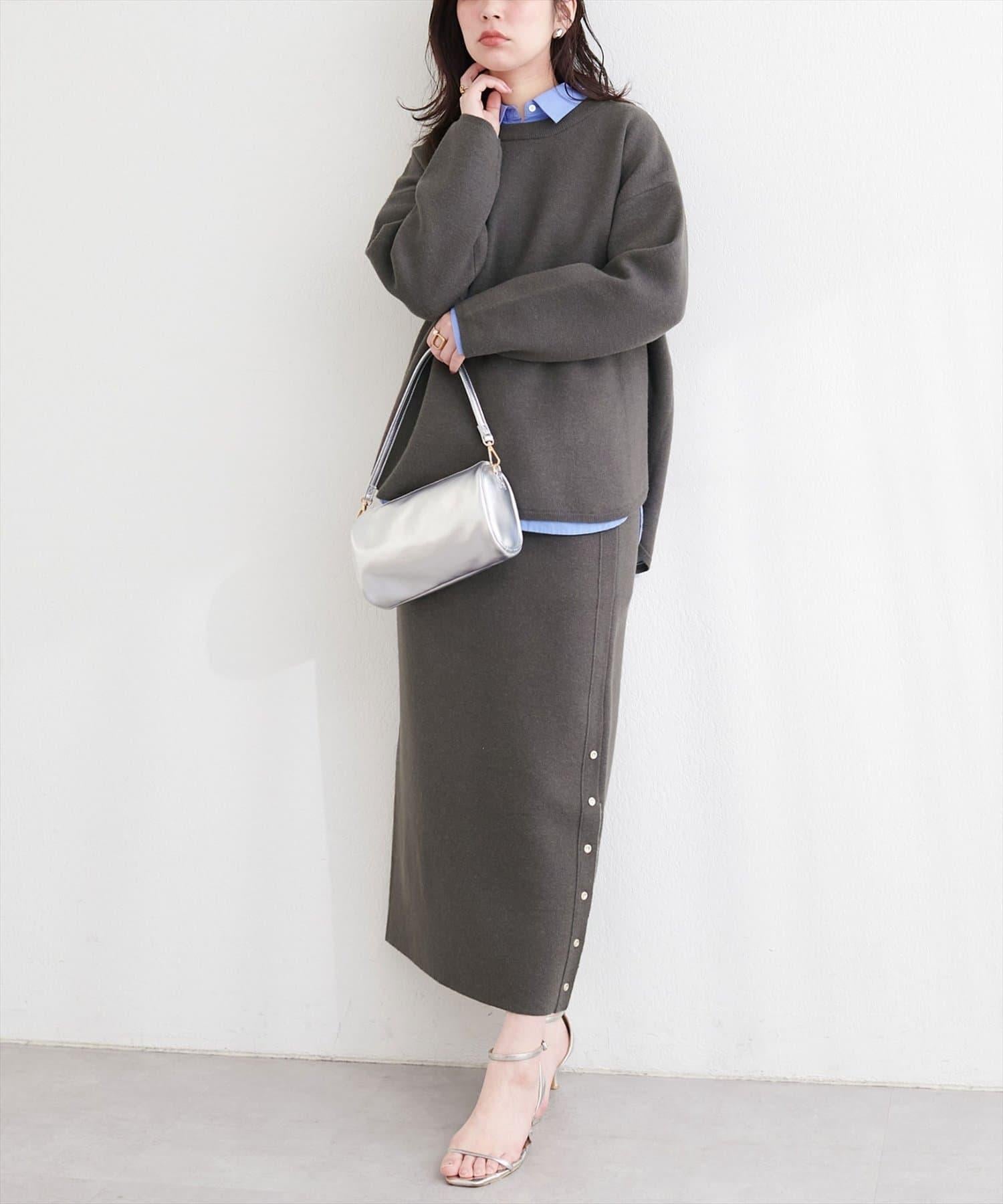 サイド釦スリットタイトニットスカート