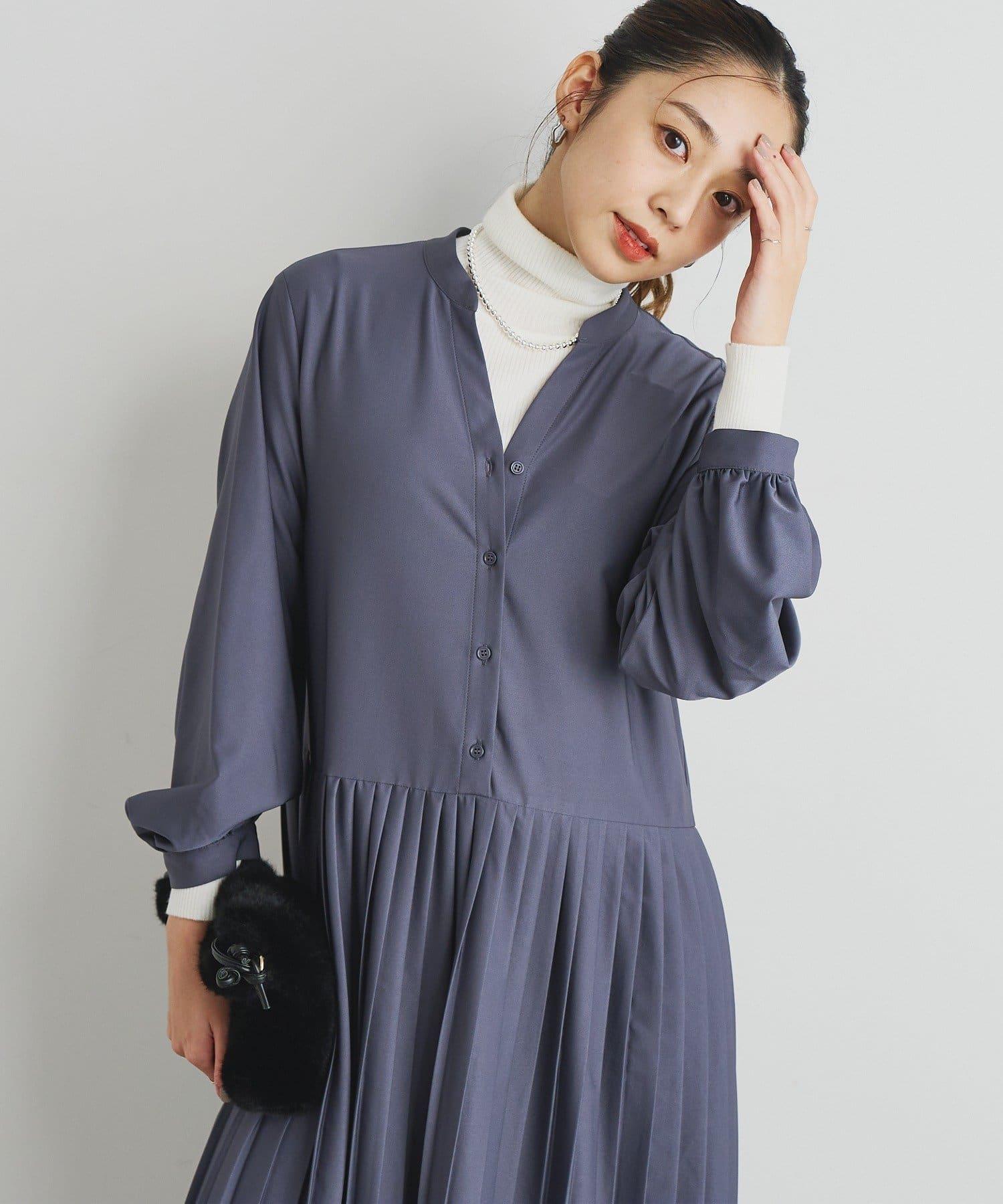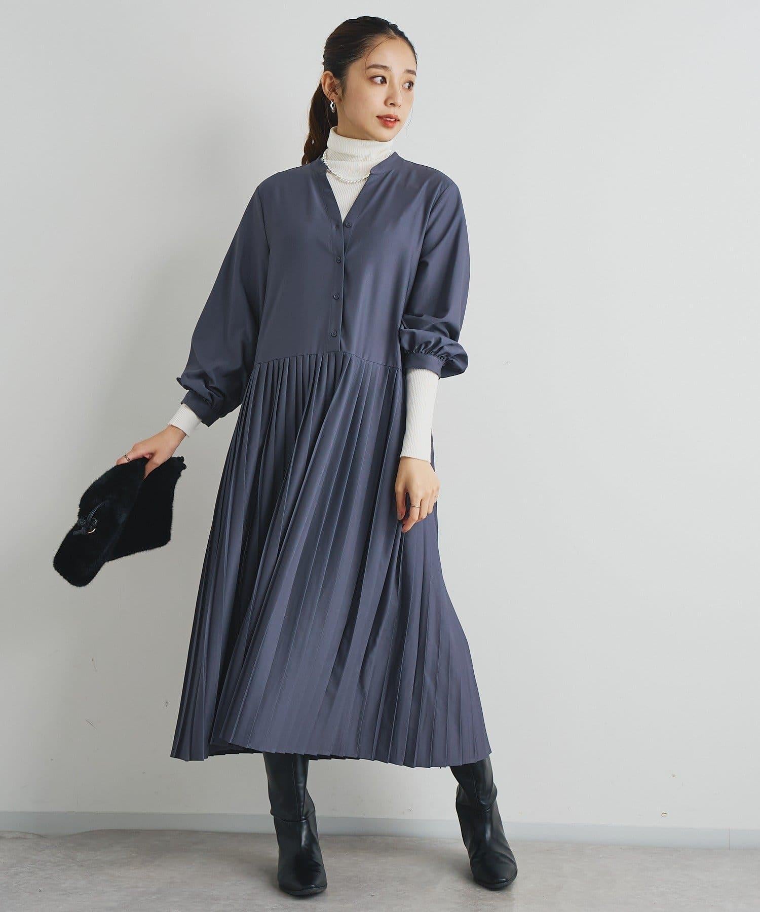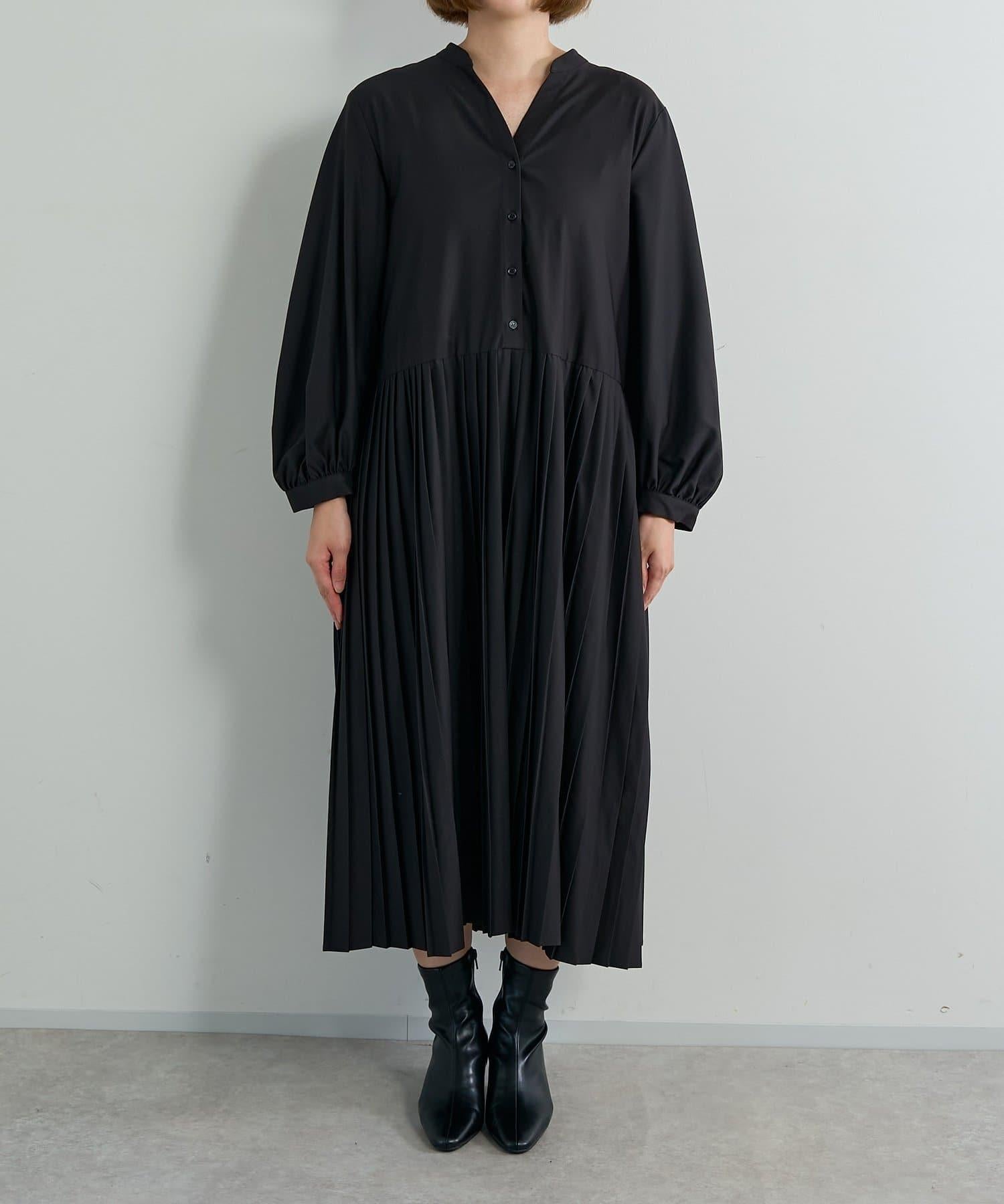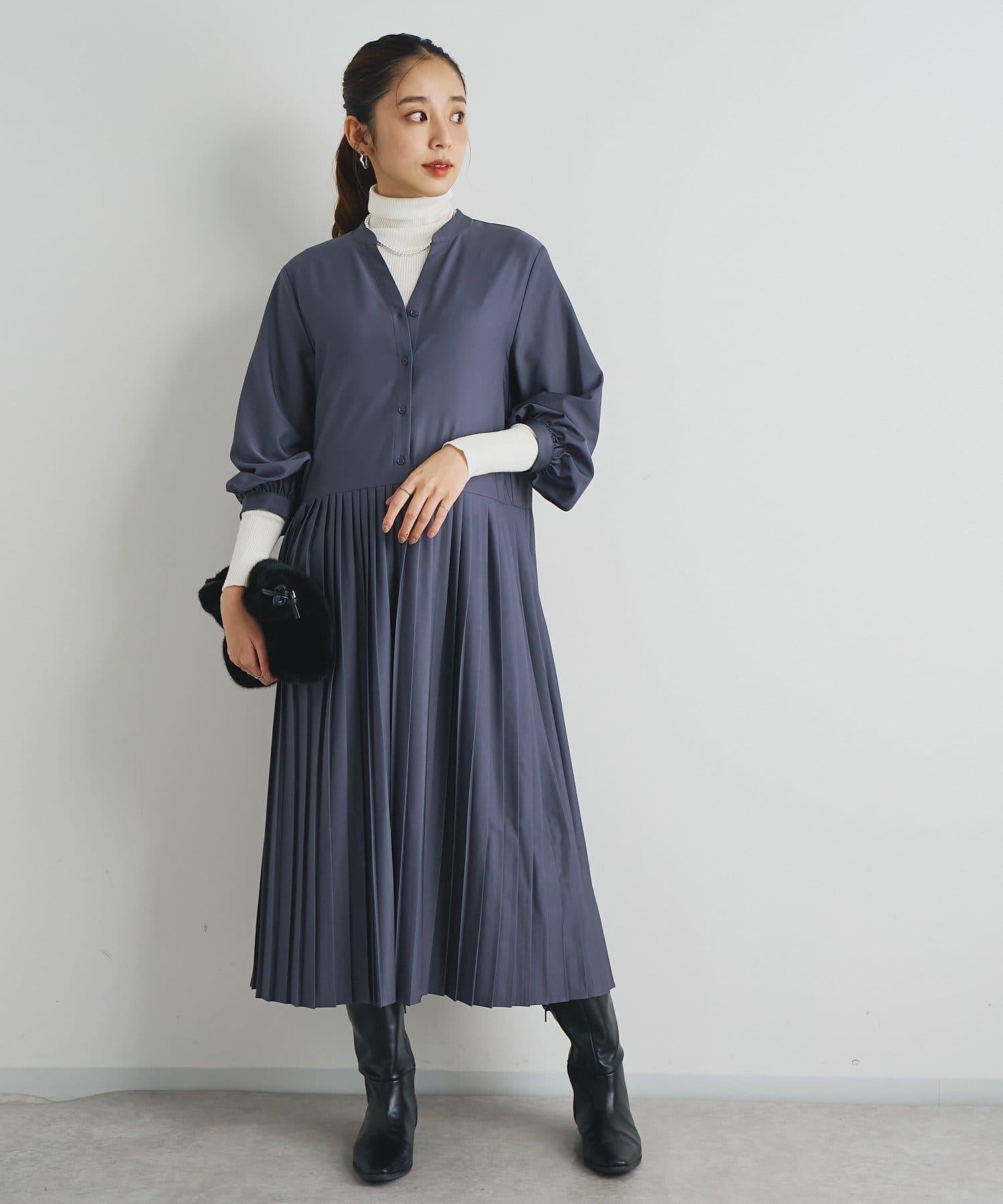 《シック&エレガントに》高腰拼接百褶連衣裙