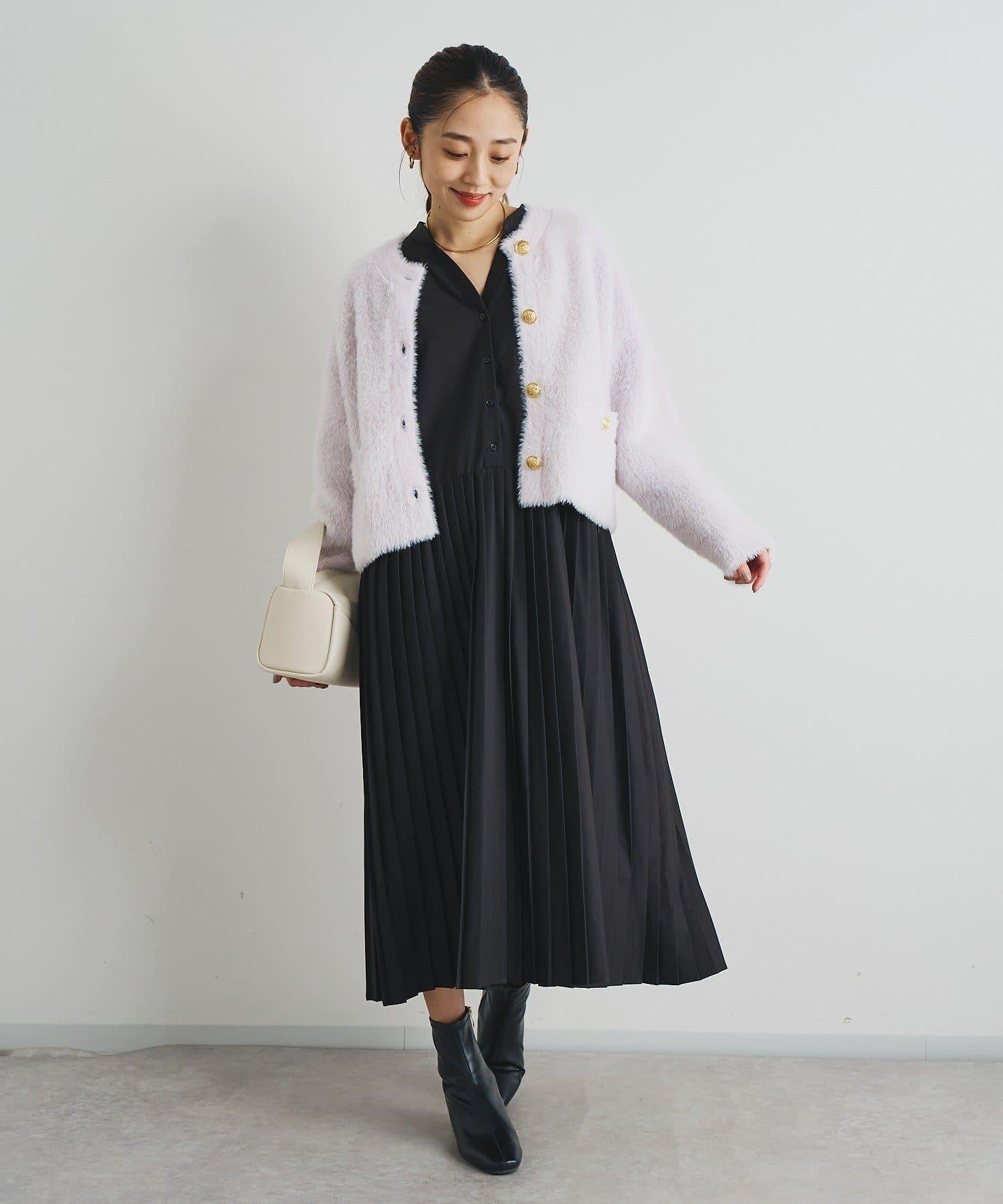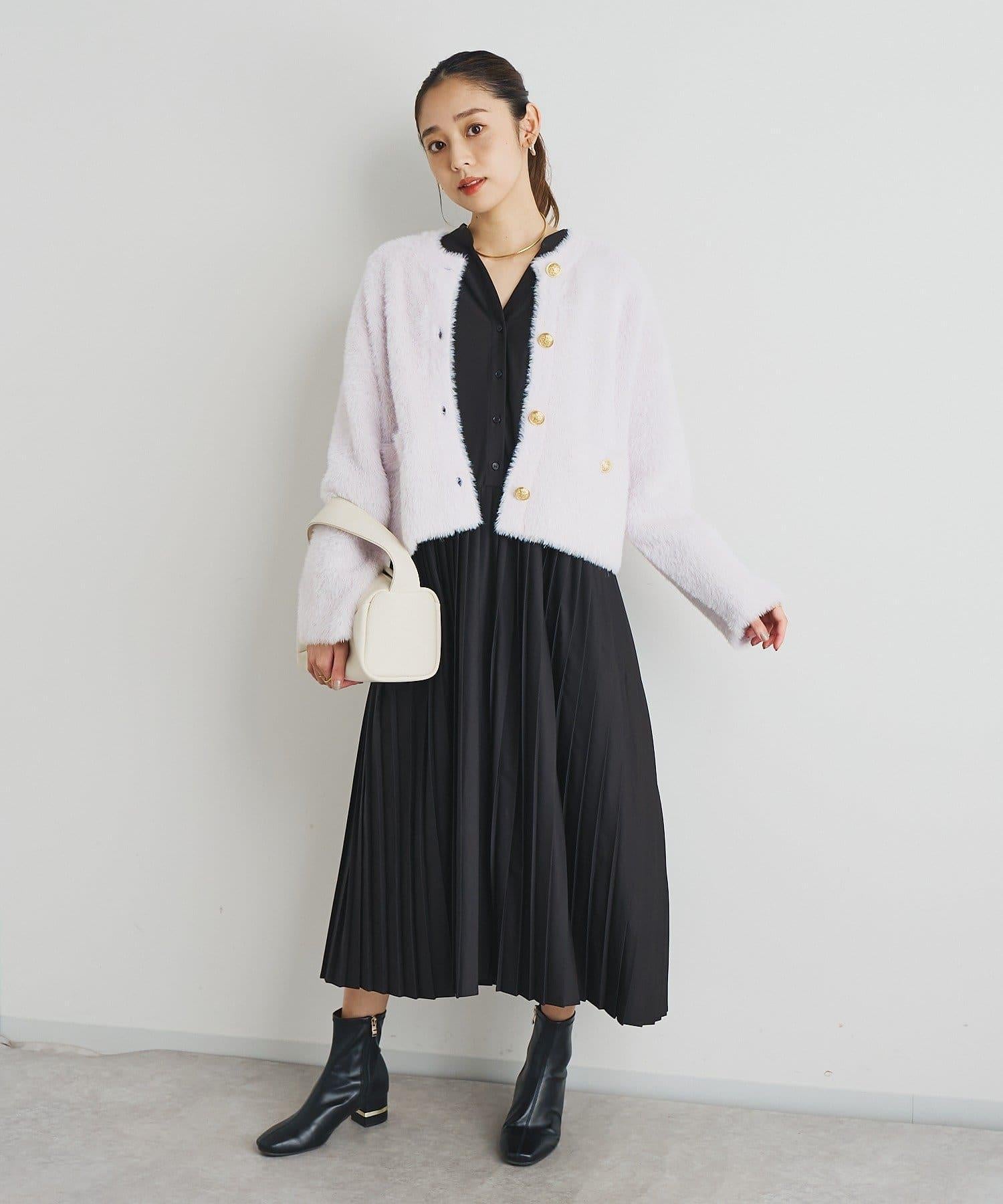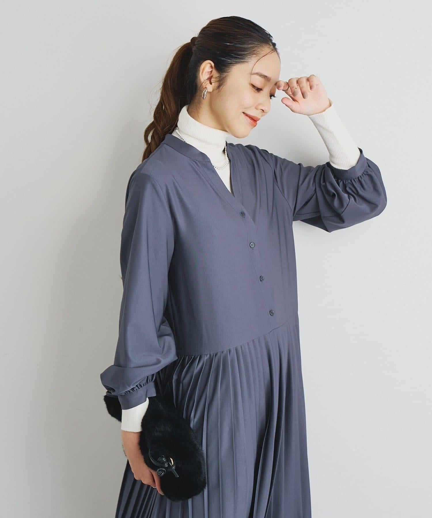 《シック&エレガントに》高腰拼接百褶連衣裙