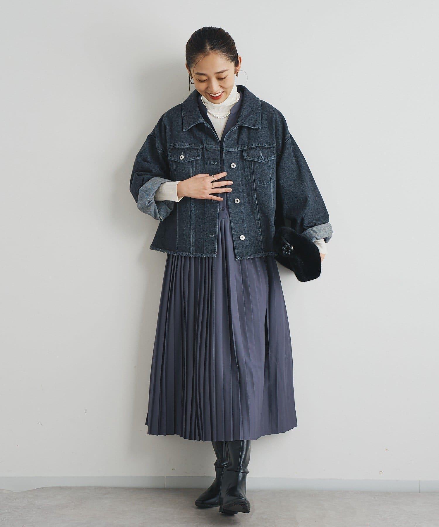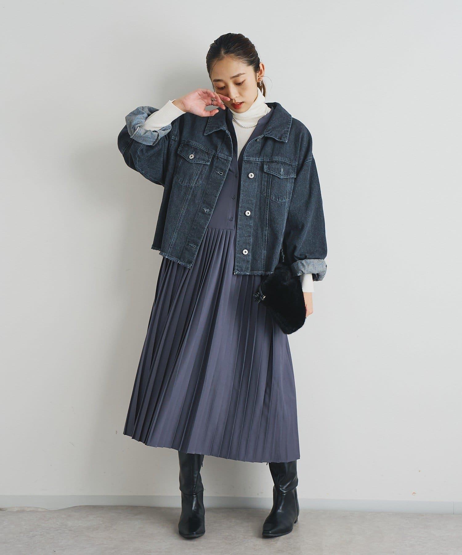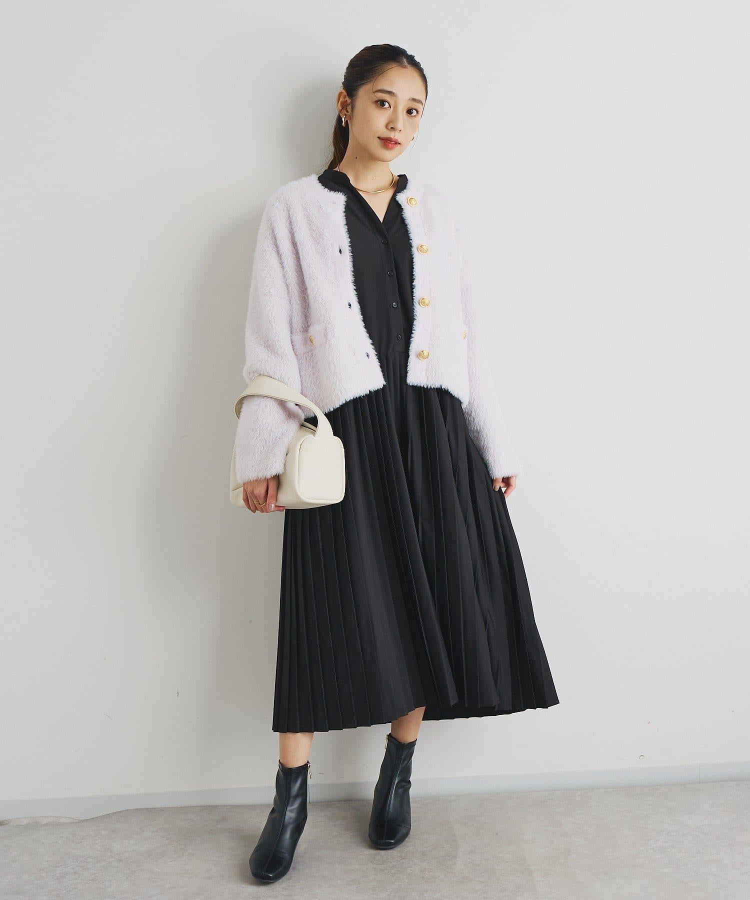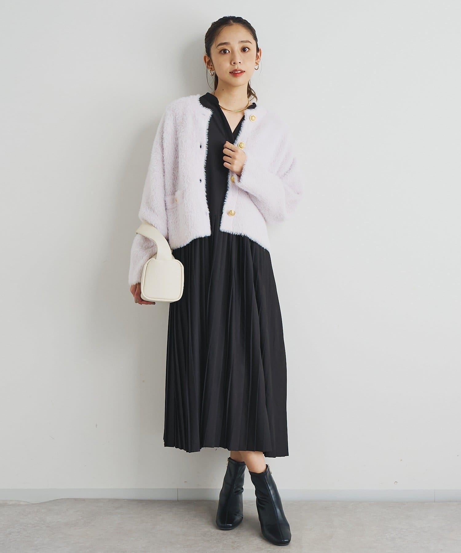 《シック&エレガントに》高腰拼接百褶連衣裙