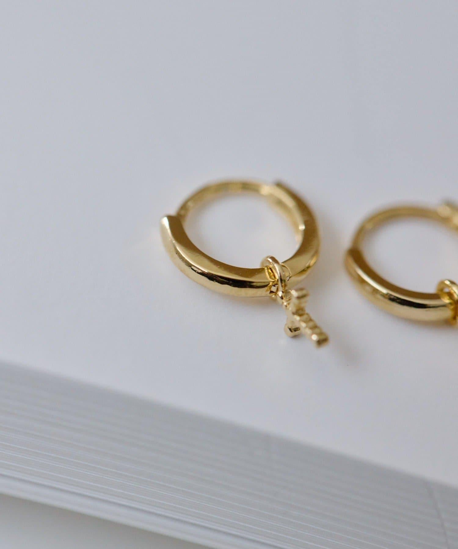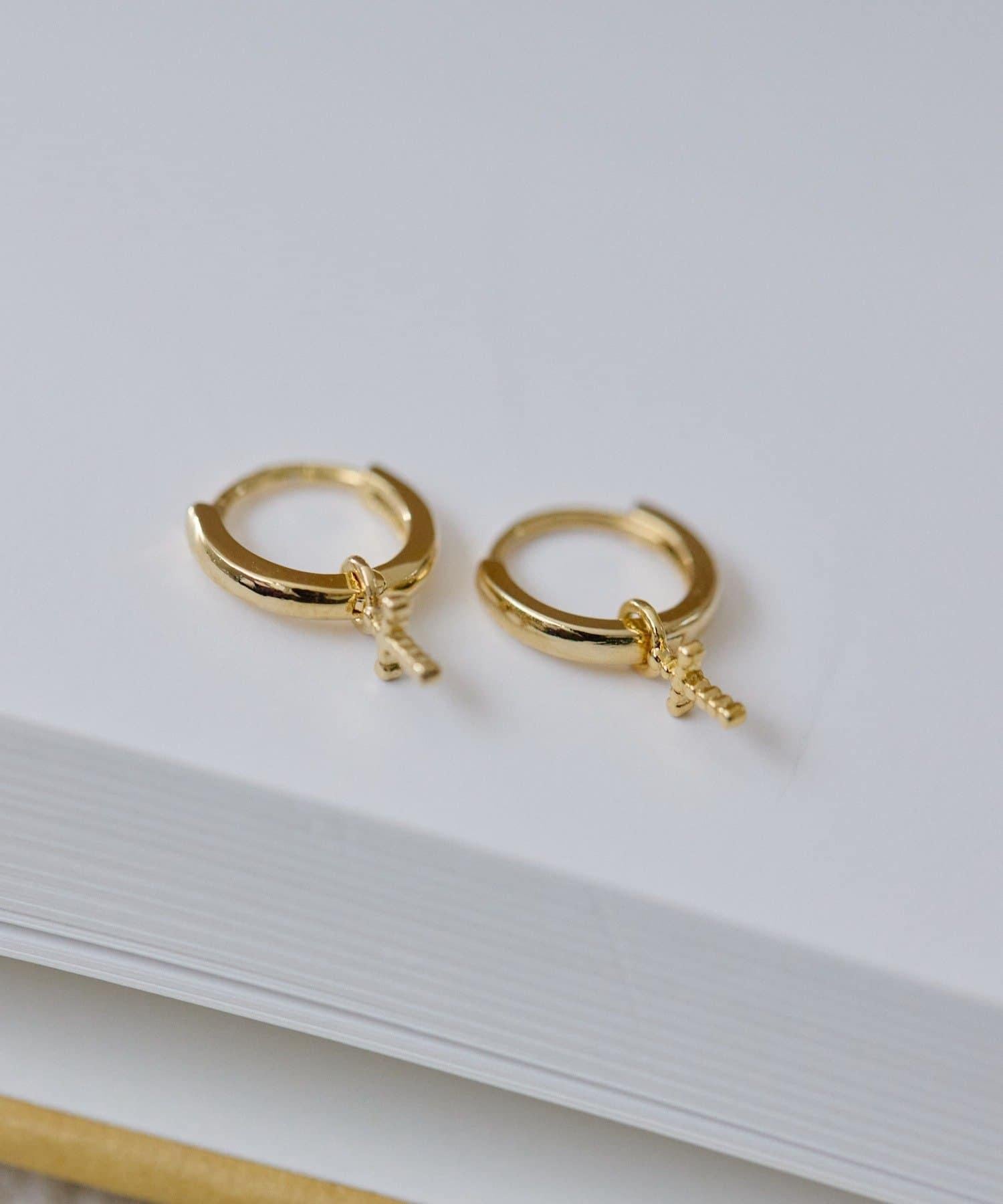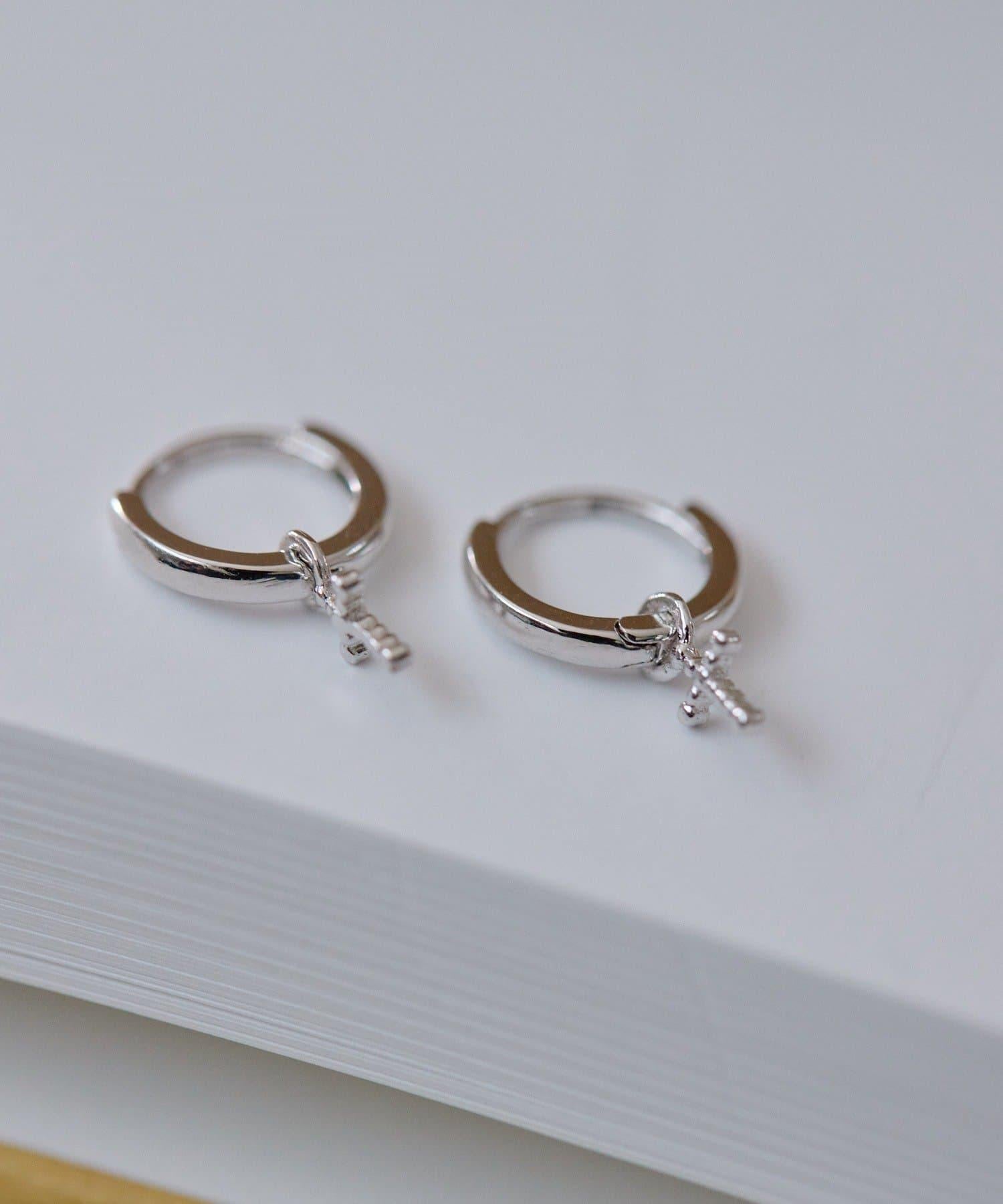 可愛的環形耳環上有一個搖擺的圓點十字架。