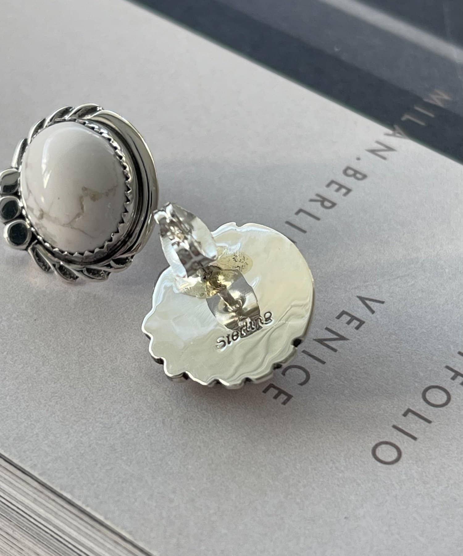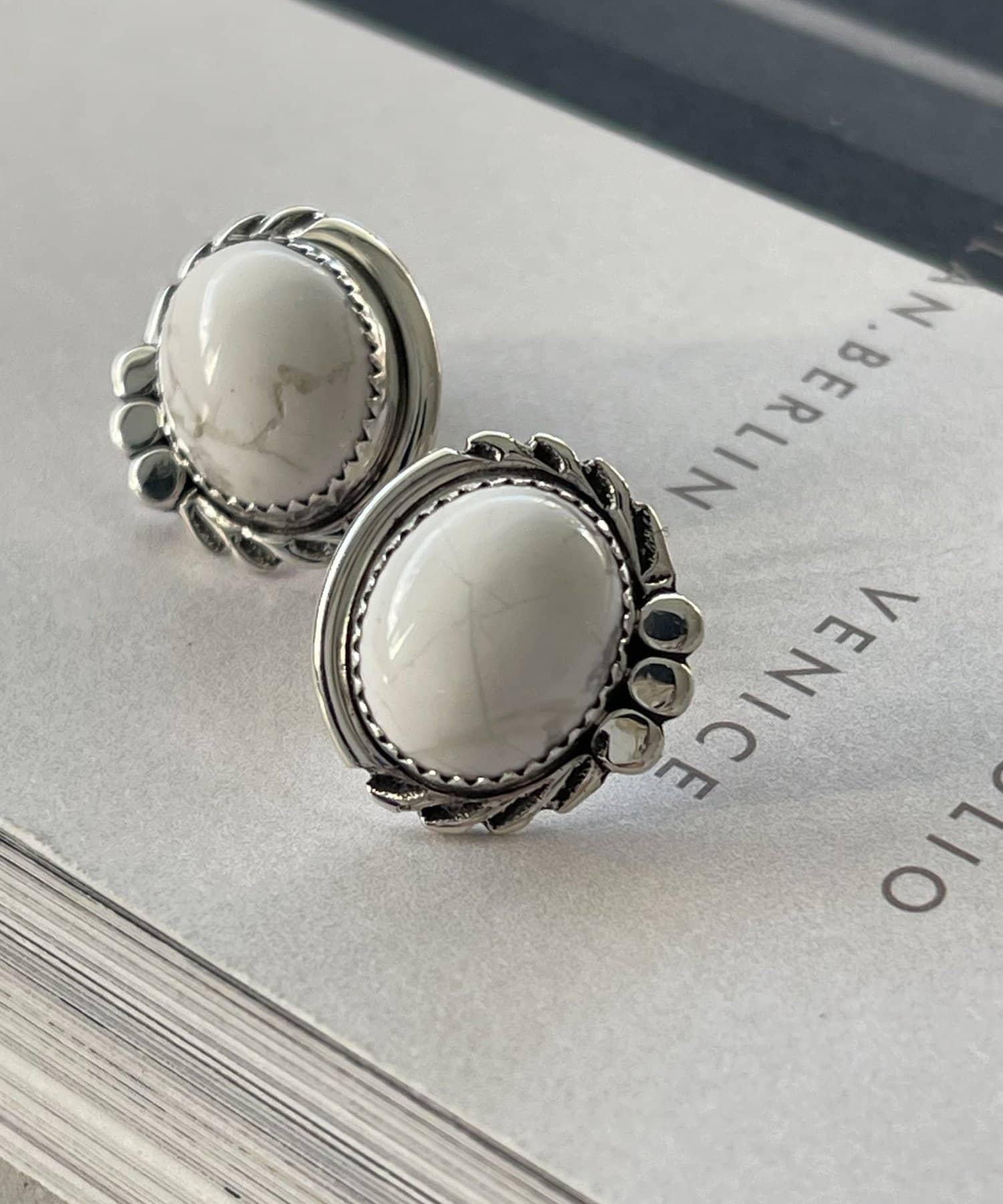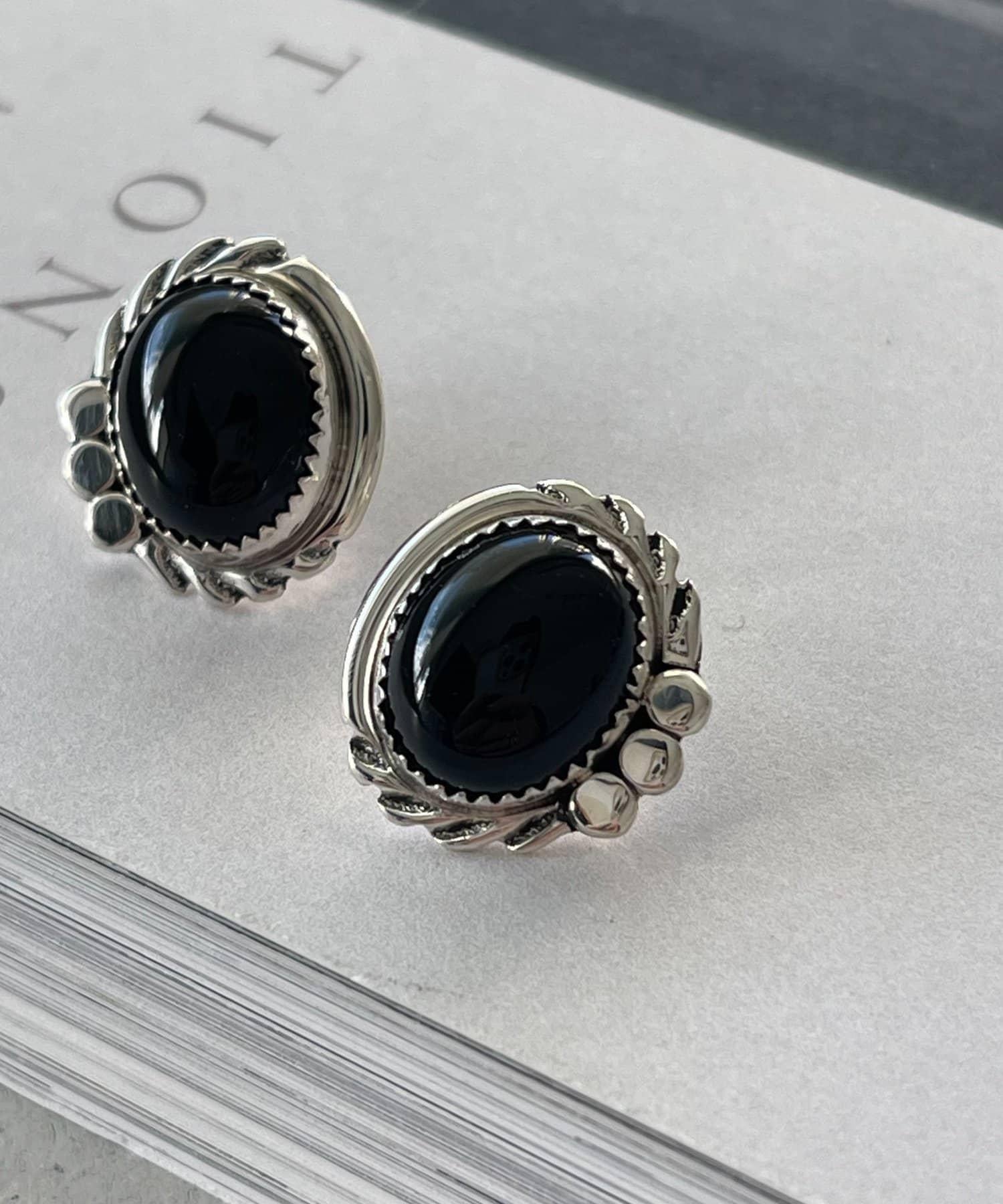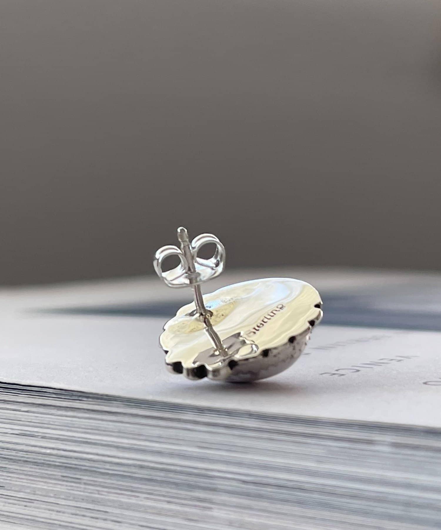 《スターリングシルバー使用》橢圓形寶石耳釘