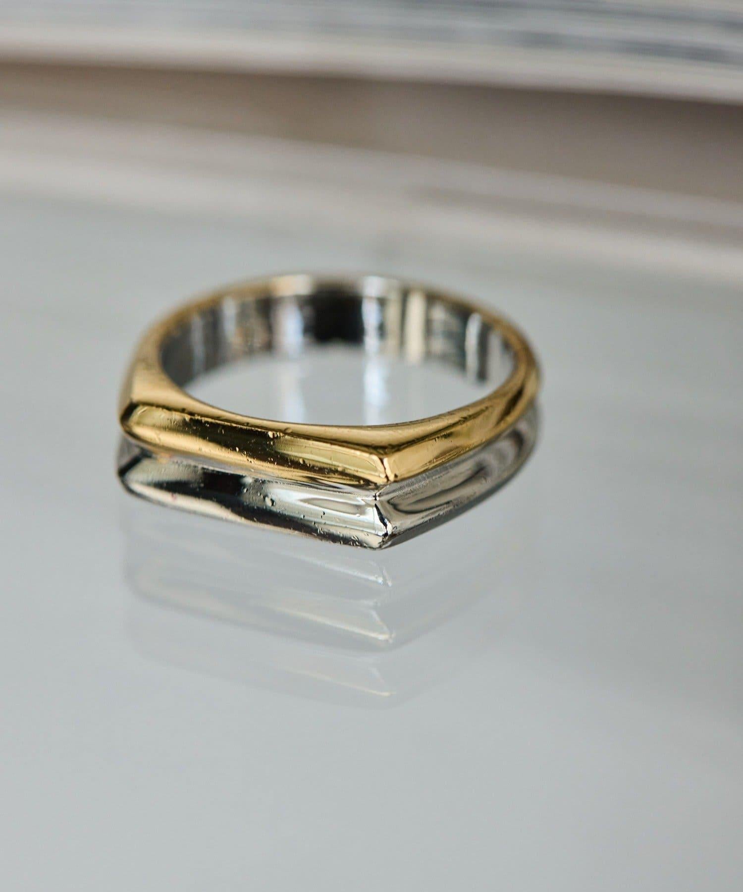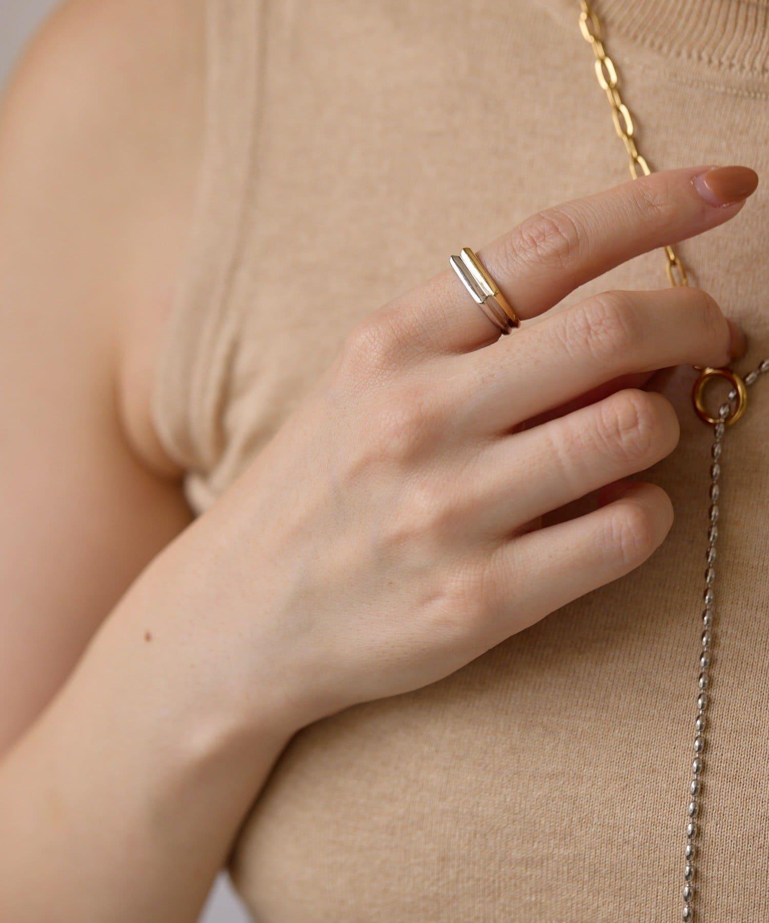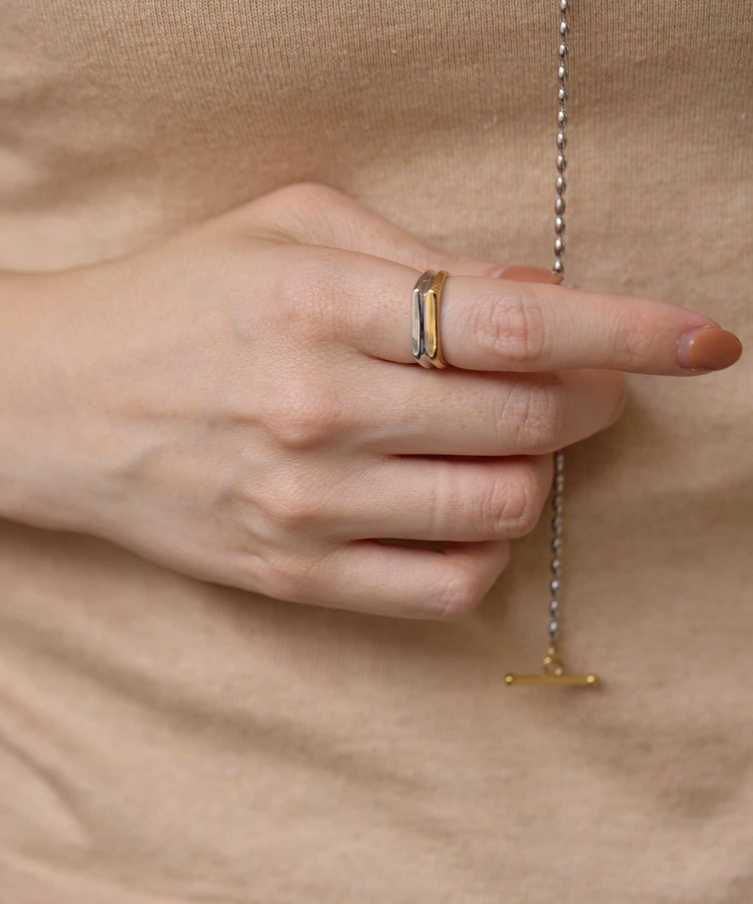 預約商品《スターリングシルバー使用》雙色扁平戒指