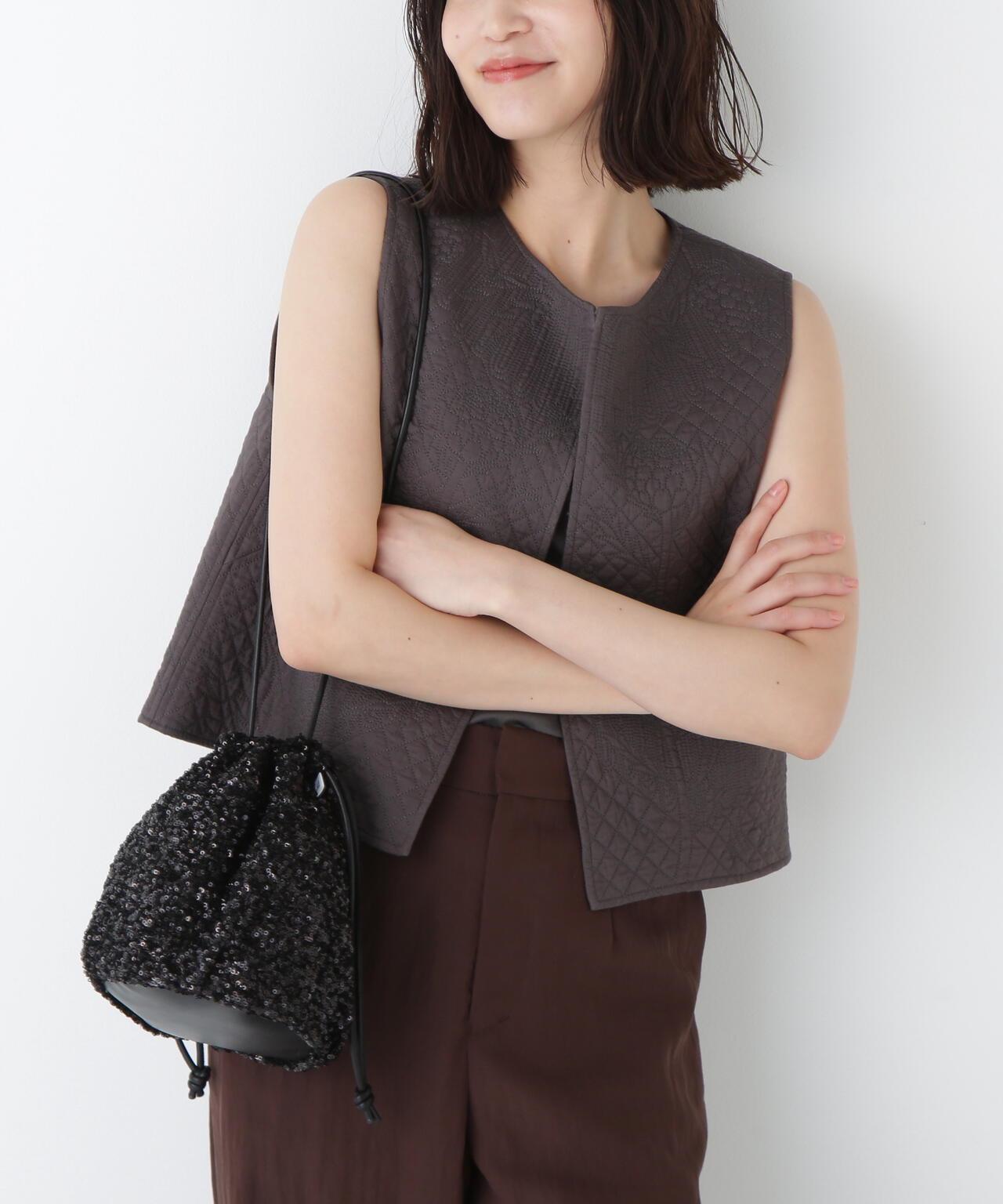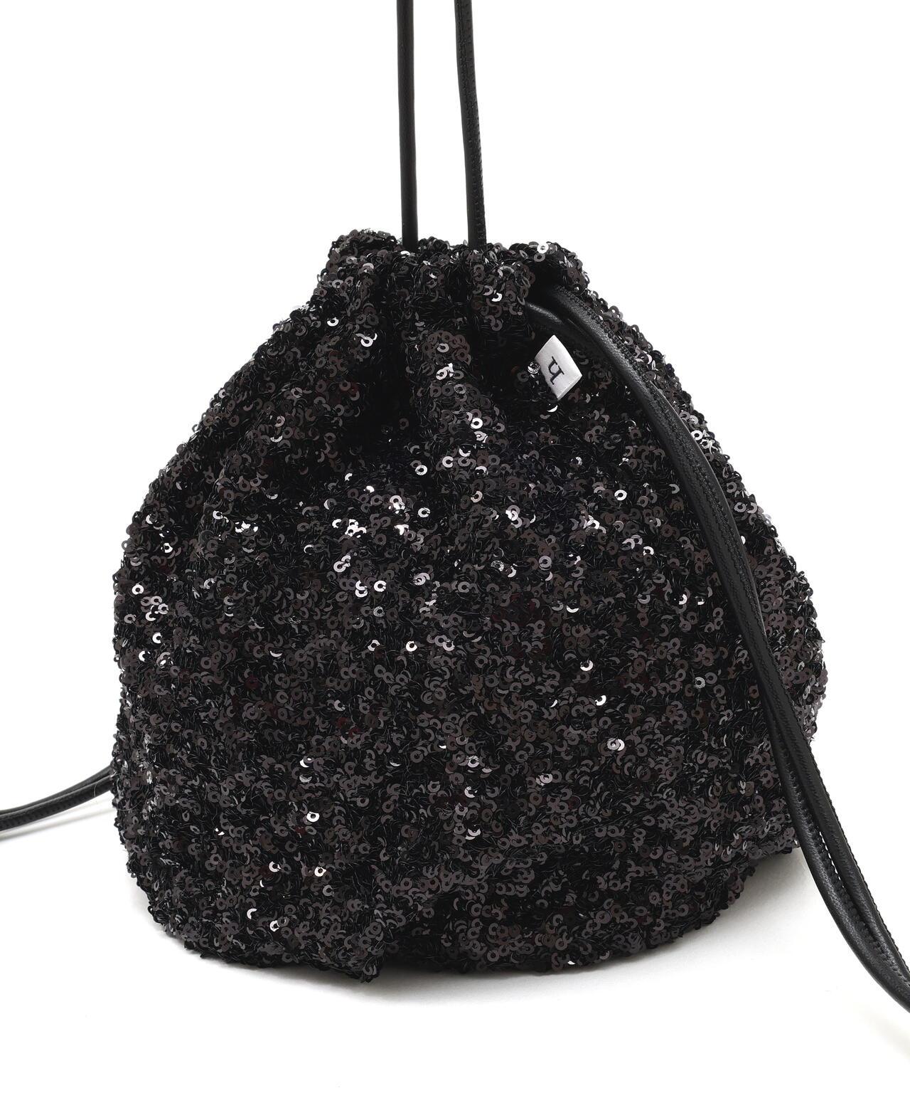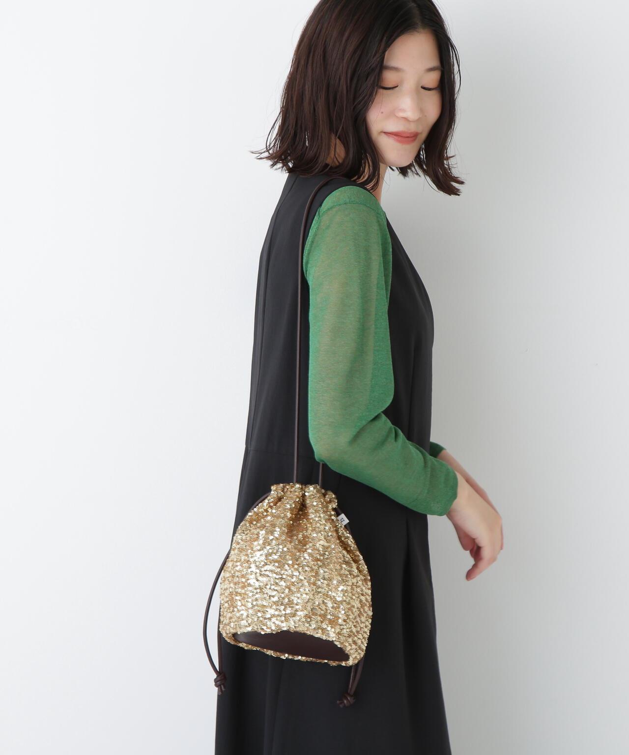 優雅閃亮的亮片包,搭配得體 [設計要點] 這款亮片抽繩包具有優雅的光澤。包包由人造皮革製成,大小可容納一個 350 毫升的塑料瓶。包包由亮片織物製成,具有成熟的光澤,不會過於閃亮。底部和抽繩採用👍人造皮革製成。這款包屬於抽繩式包袋,可用於上班和下班。它可以搭配簡單的服裝,增添一抹魅力。