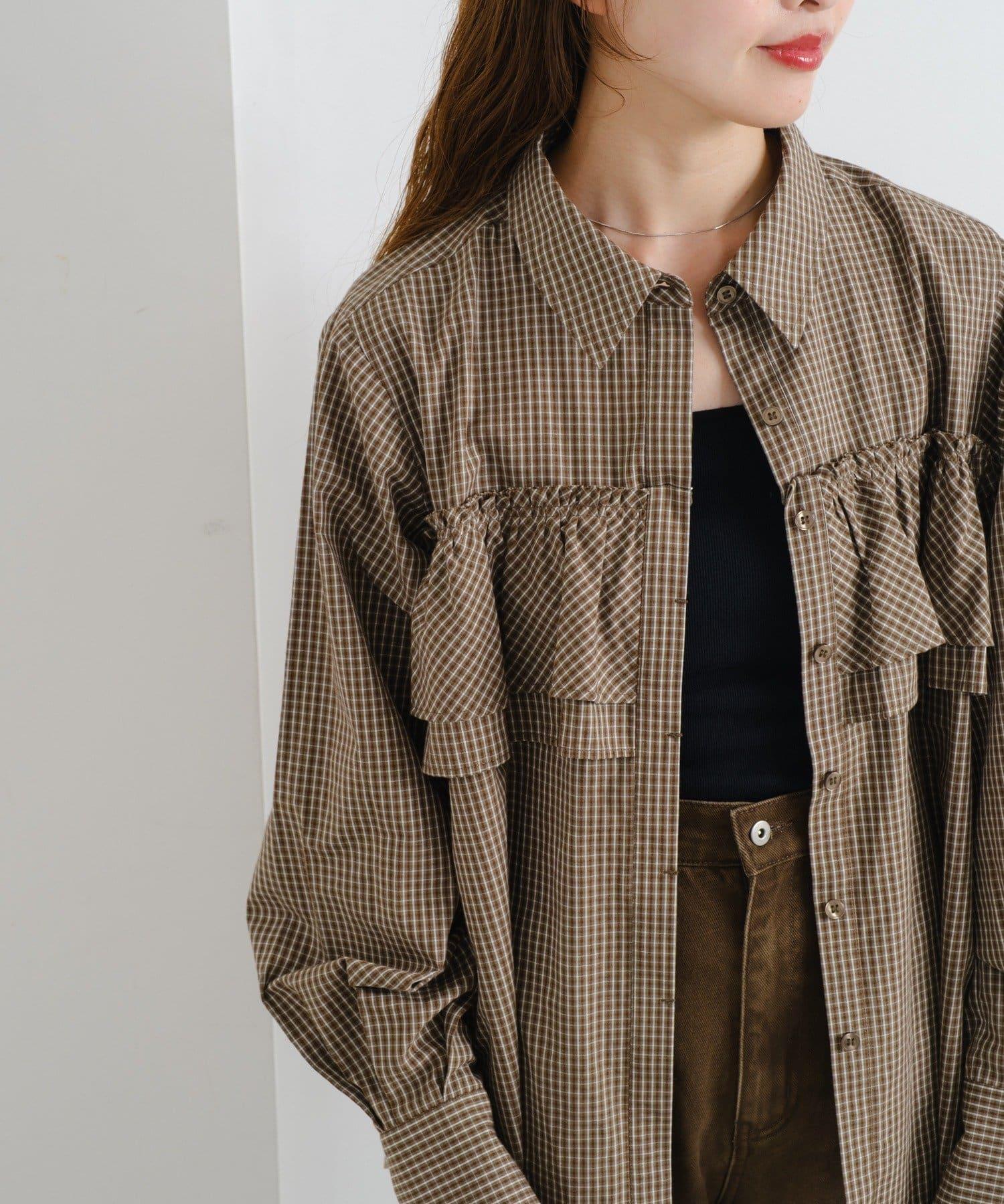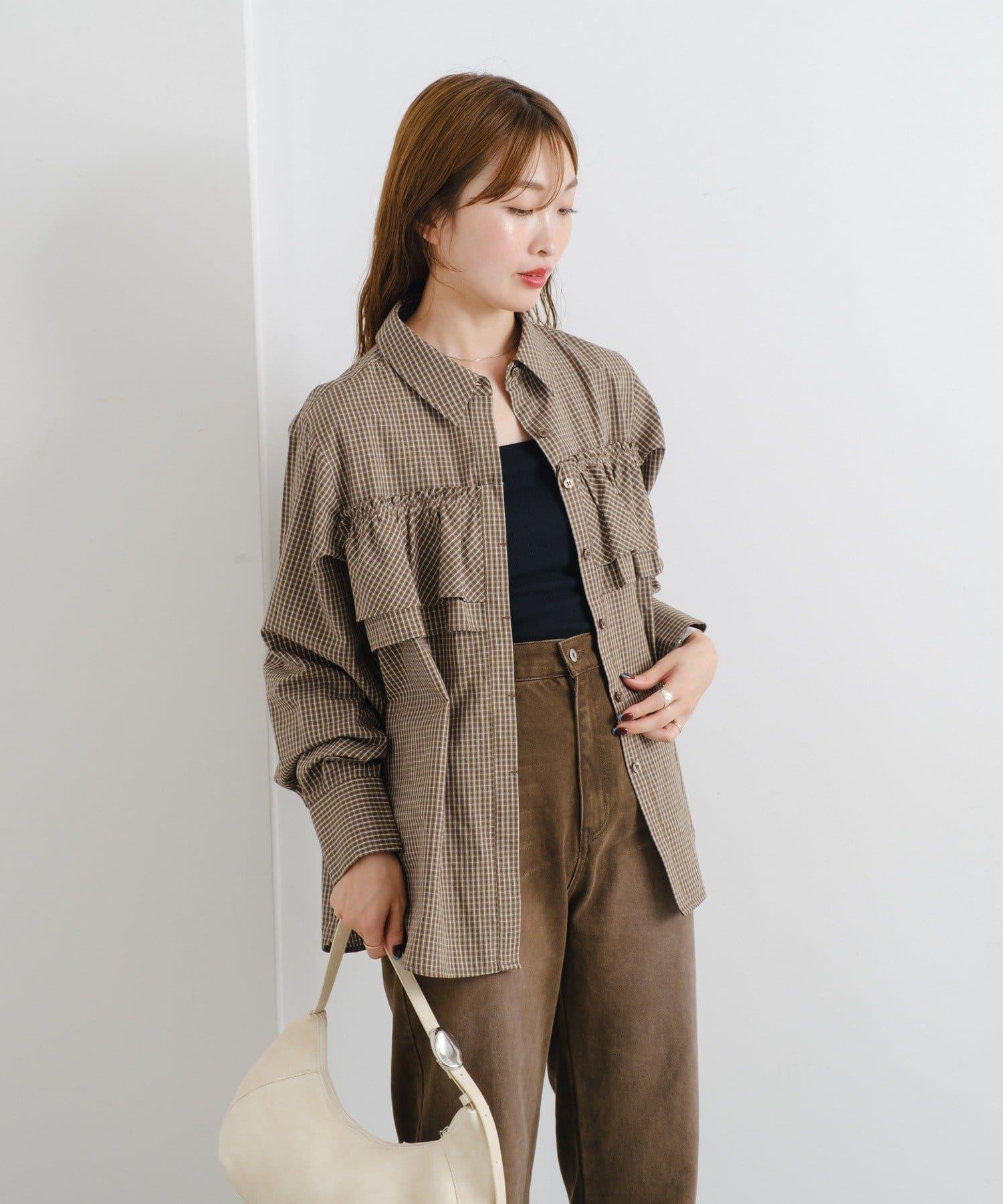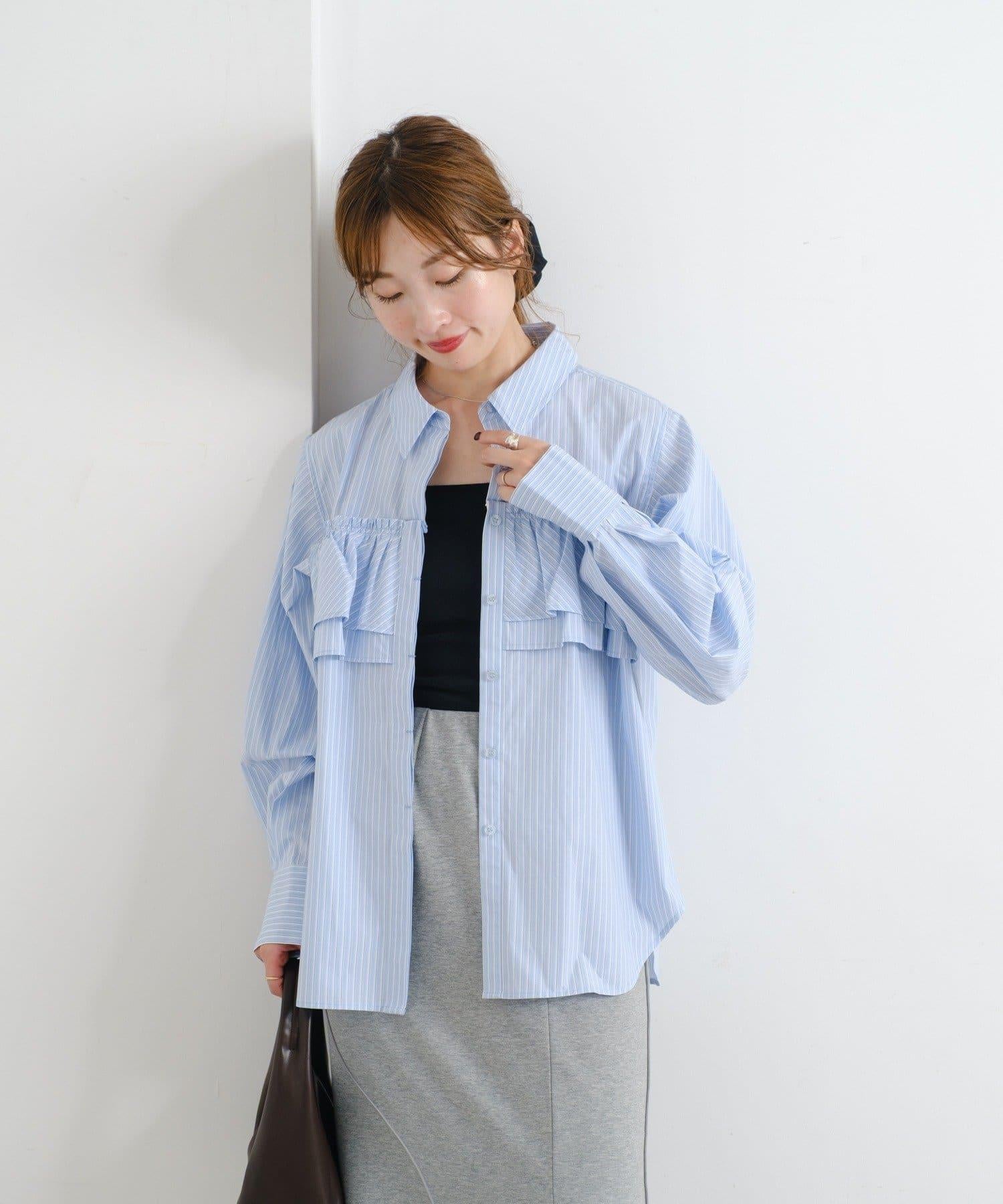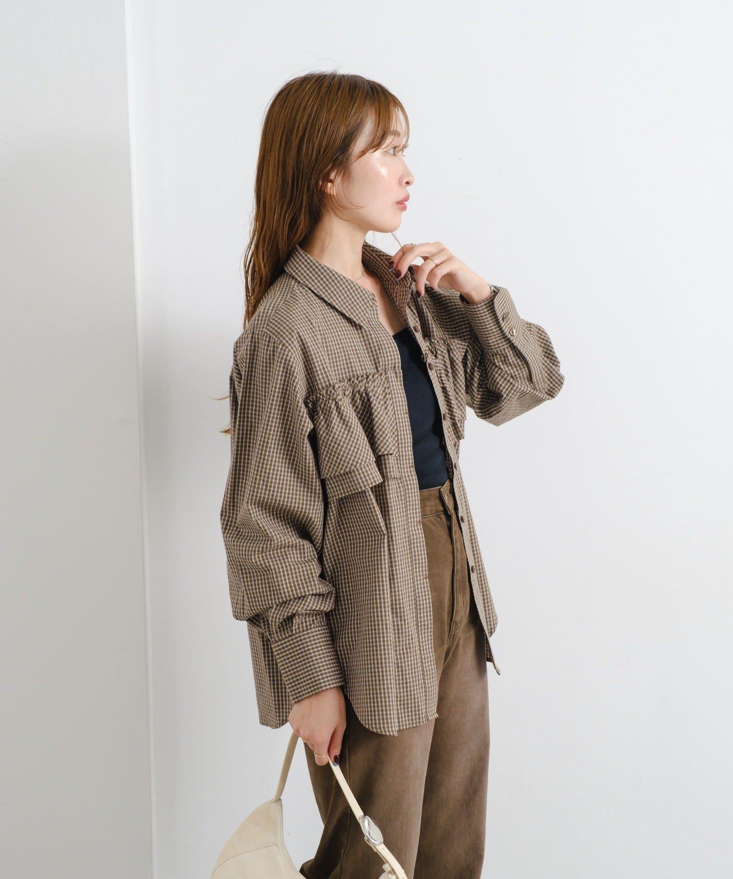 胸前聚攏的荷葉邊增添了女性的柔美,使這款襯衫簡約而不失力量。