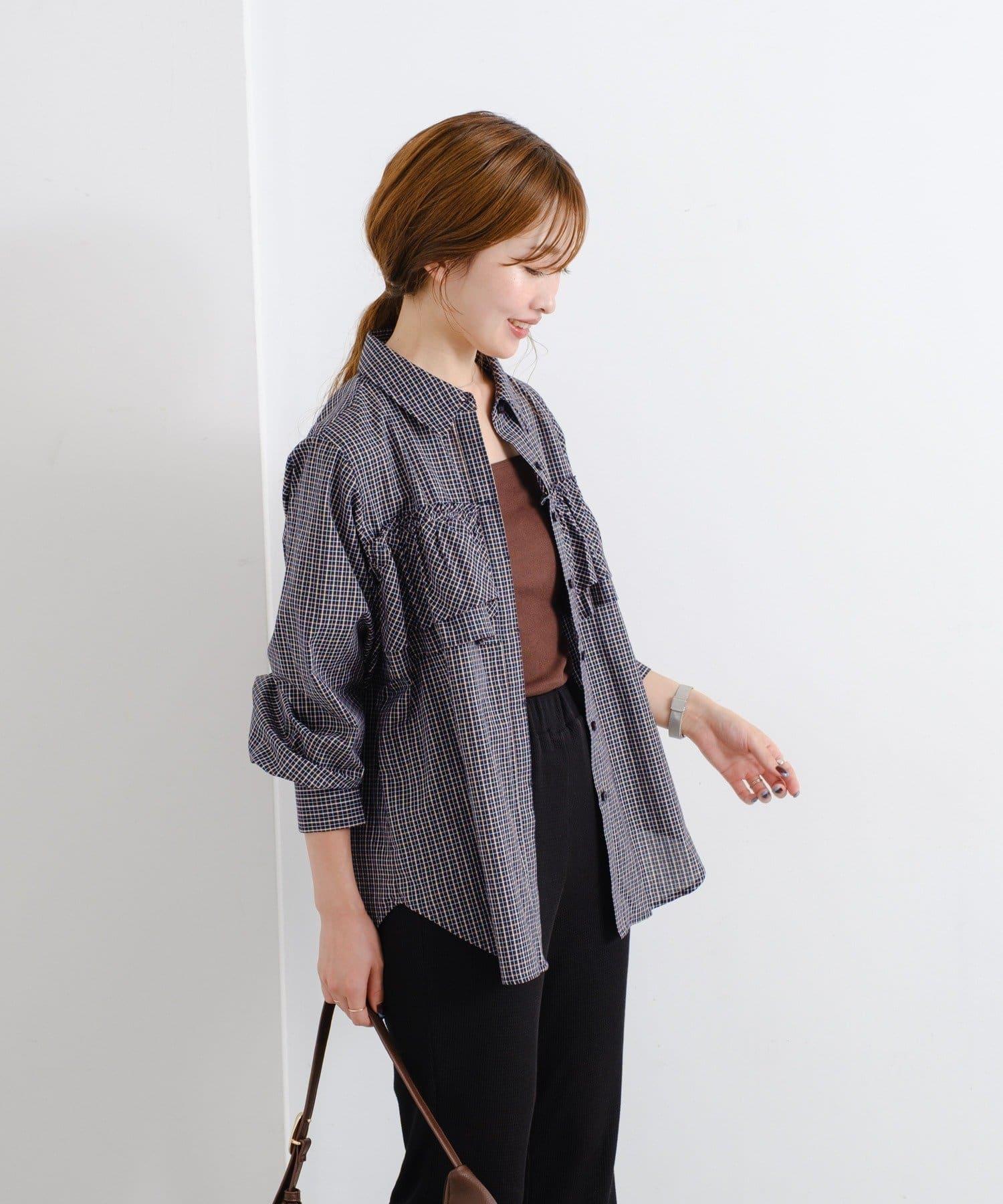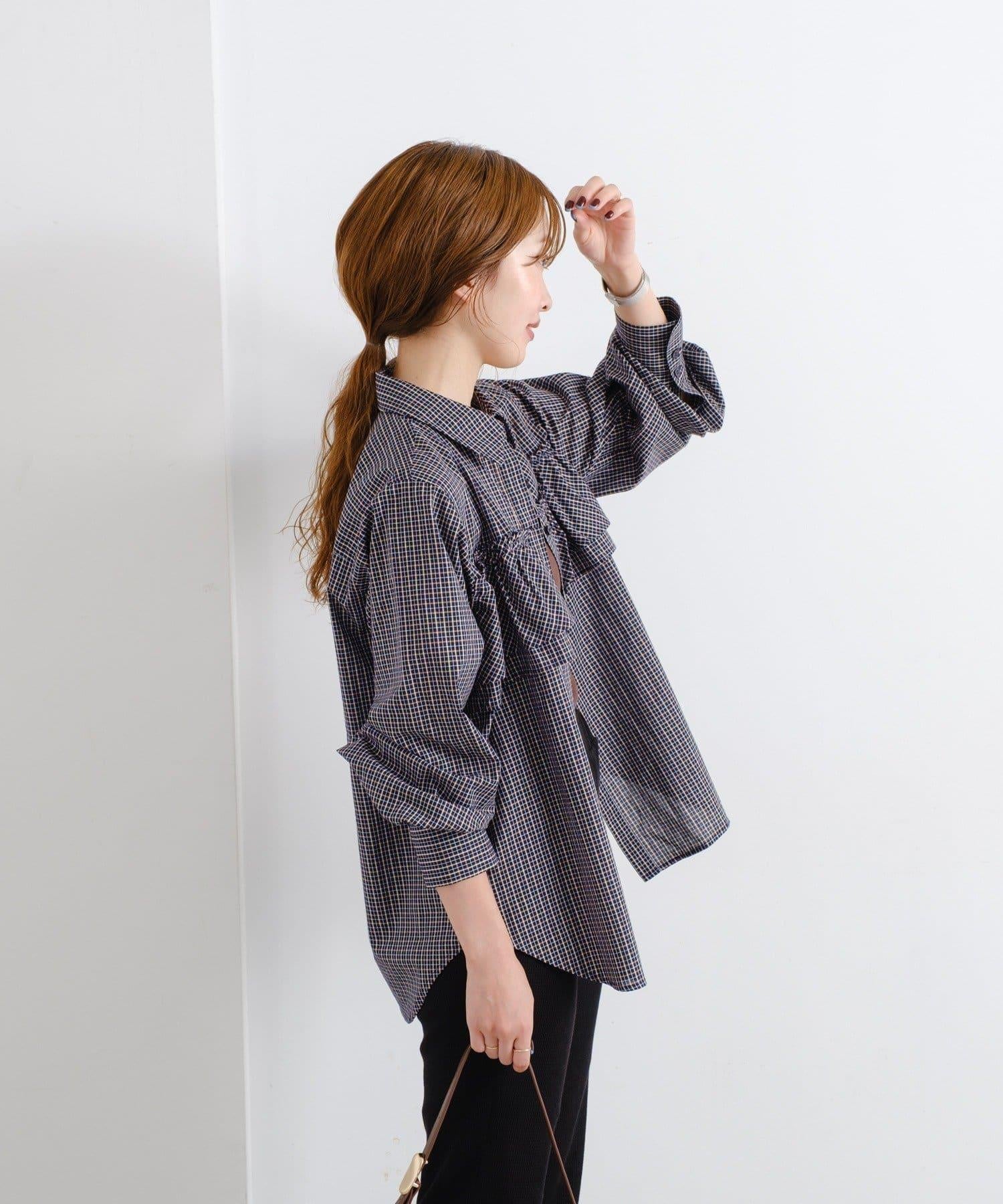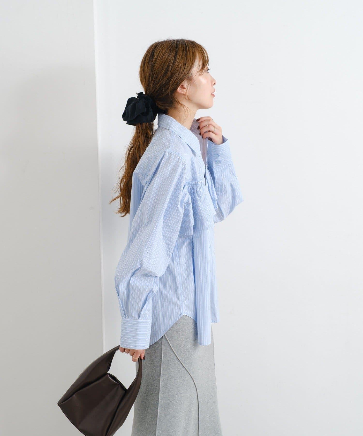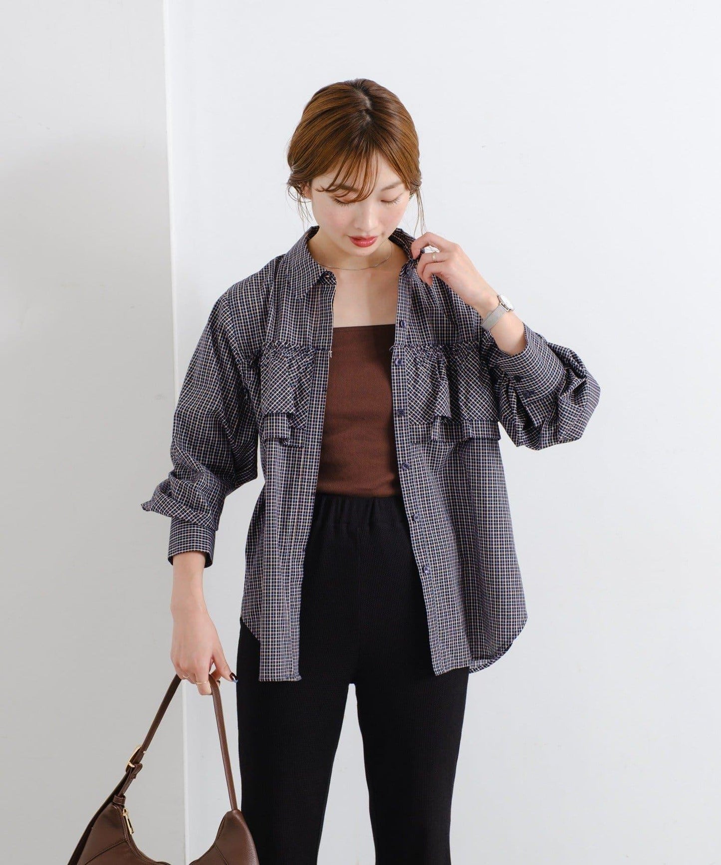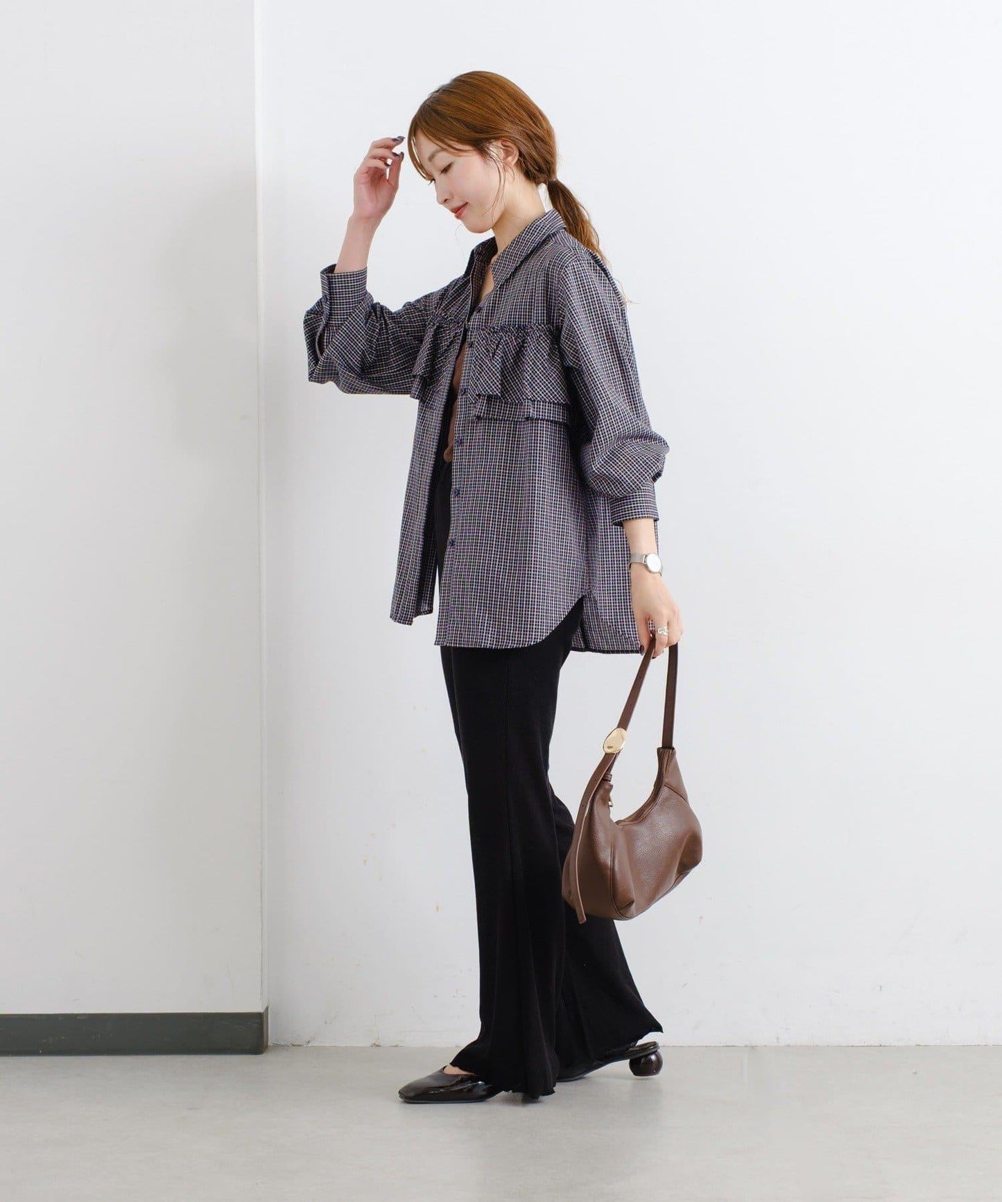 胸前聚攏的荷葉邊增添了女性的柔美,使這款襯衫簡約而不失力量。