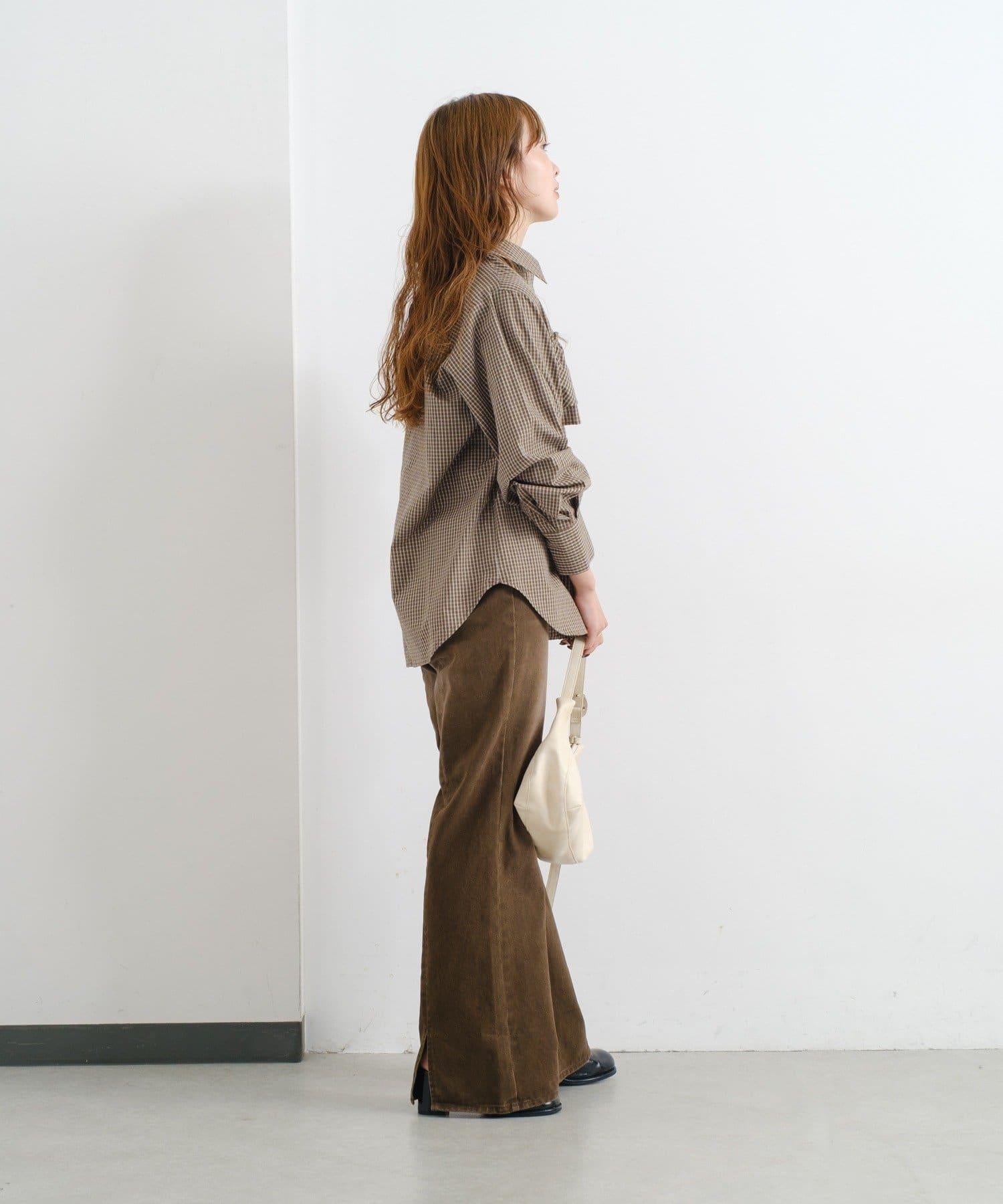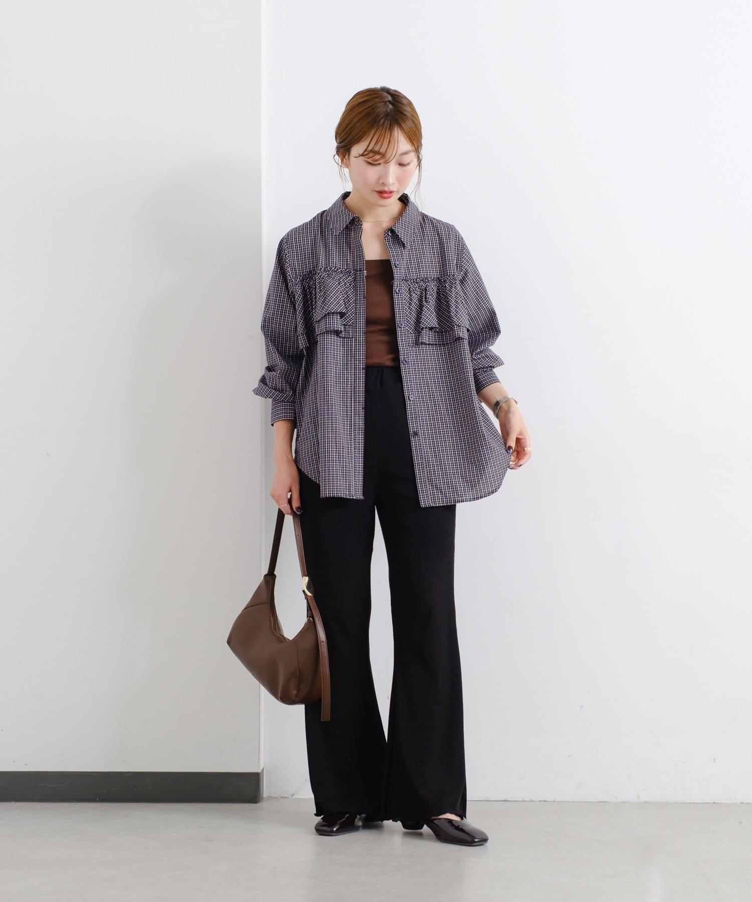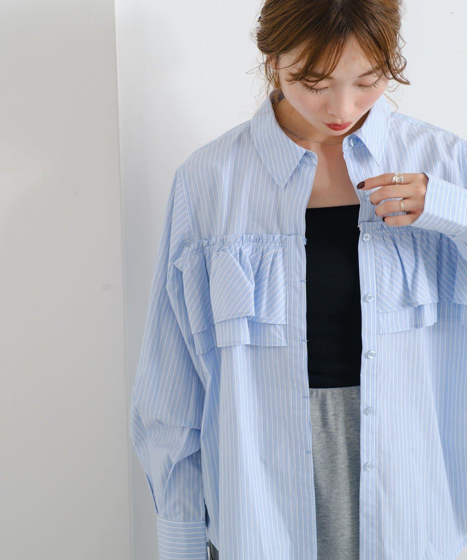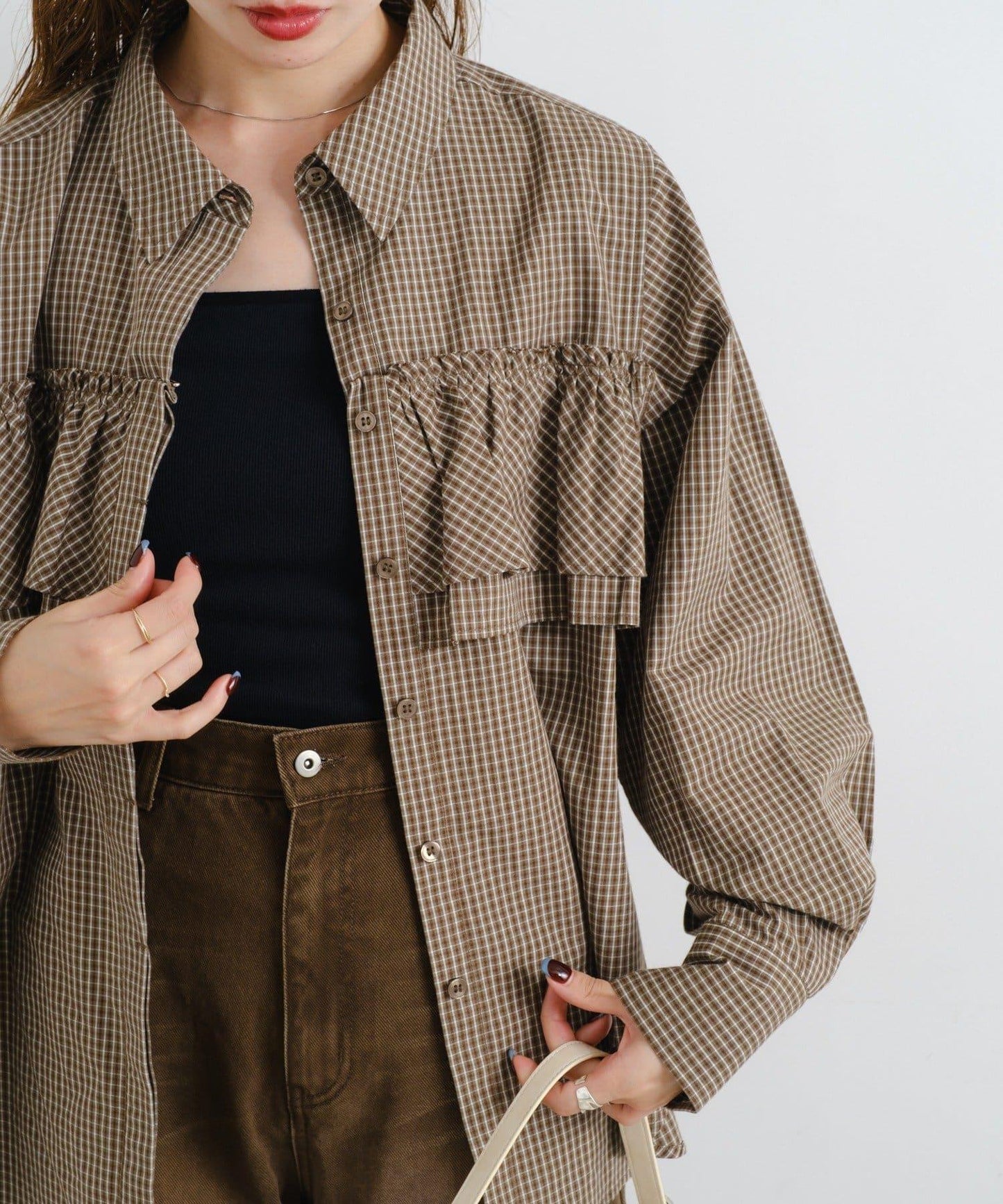 胸前聚攏的荷葉邊增添了女性的柔美,使這款襯衫簡約而不失力量。