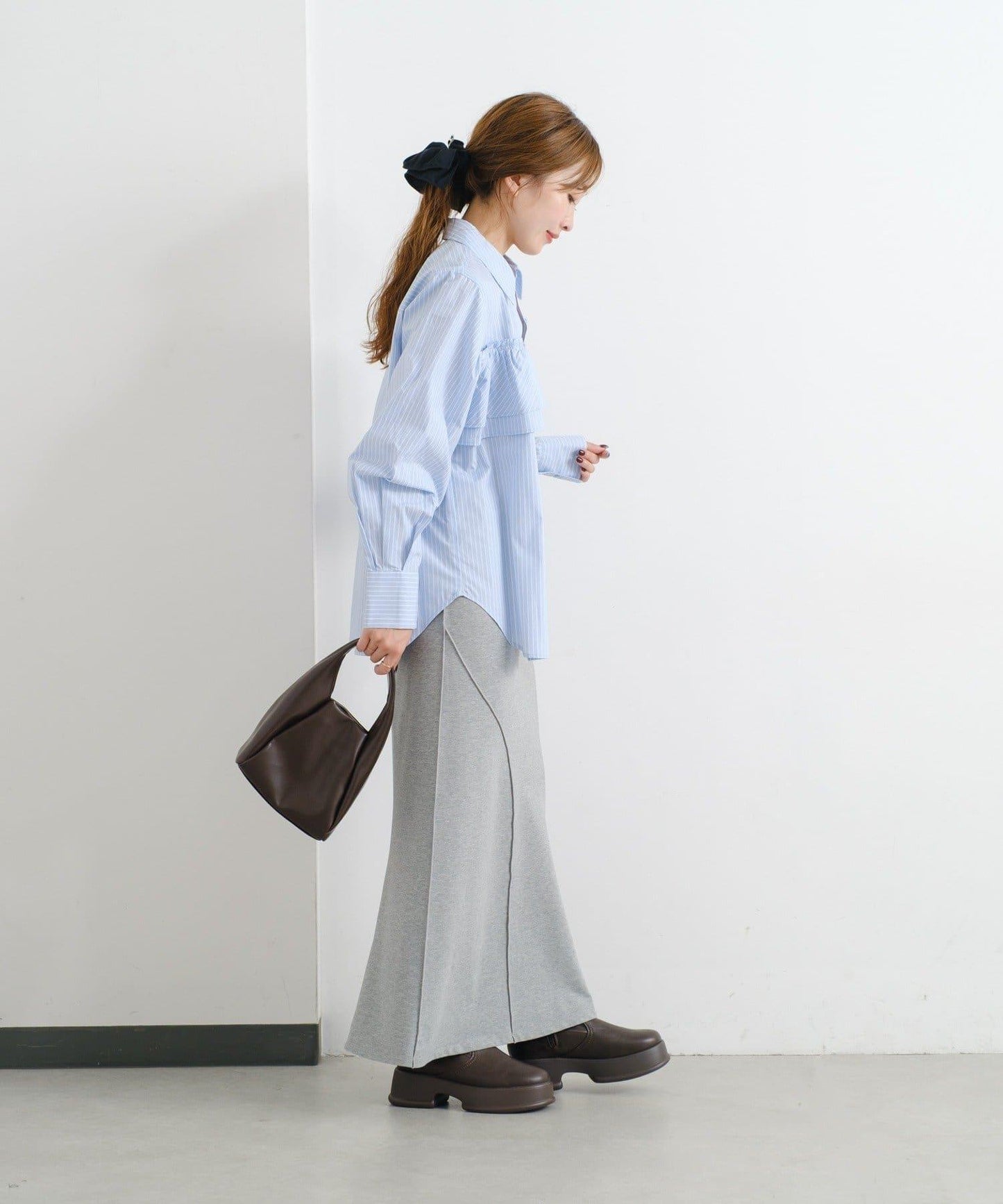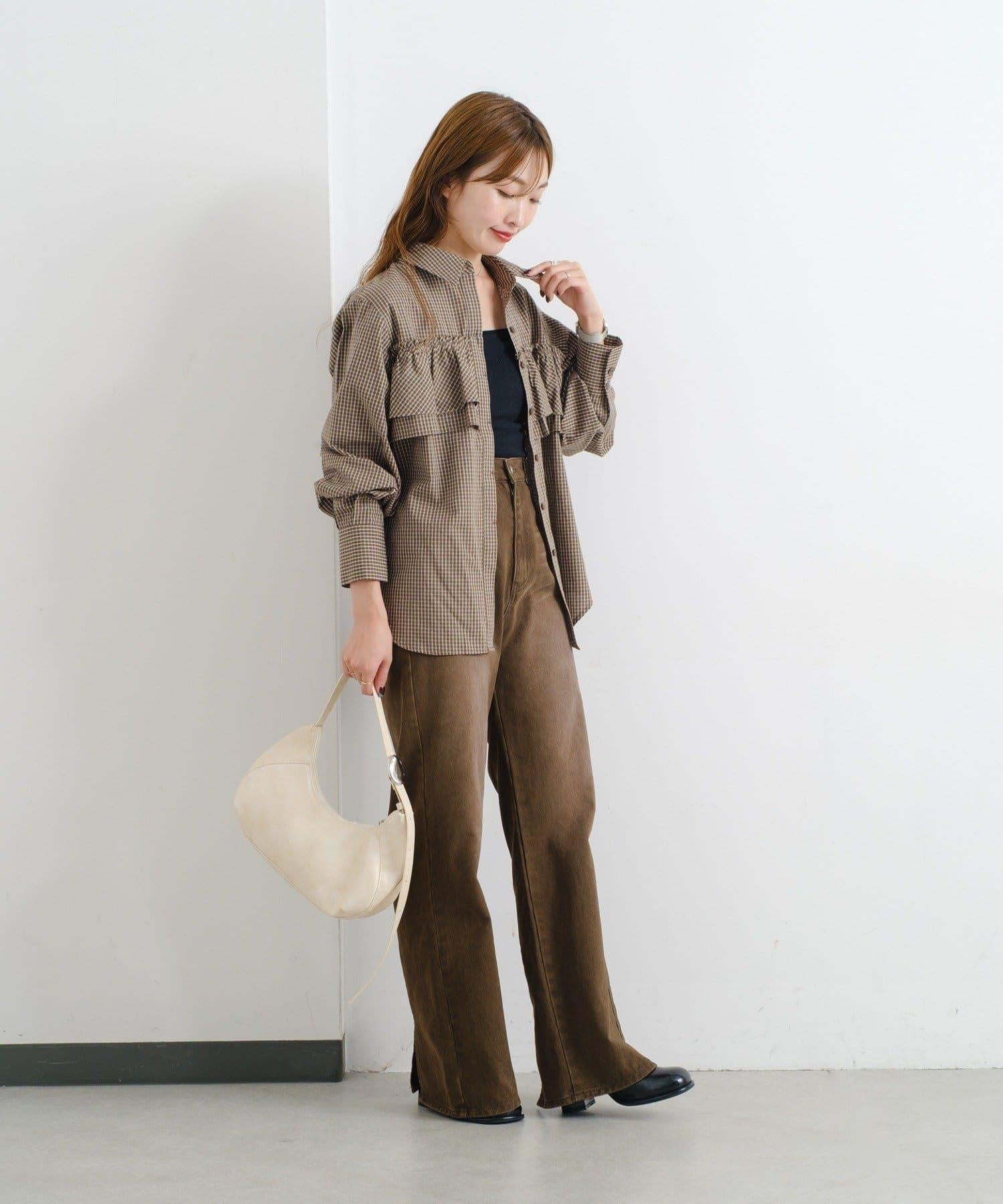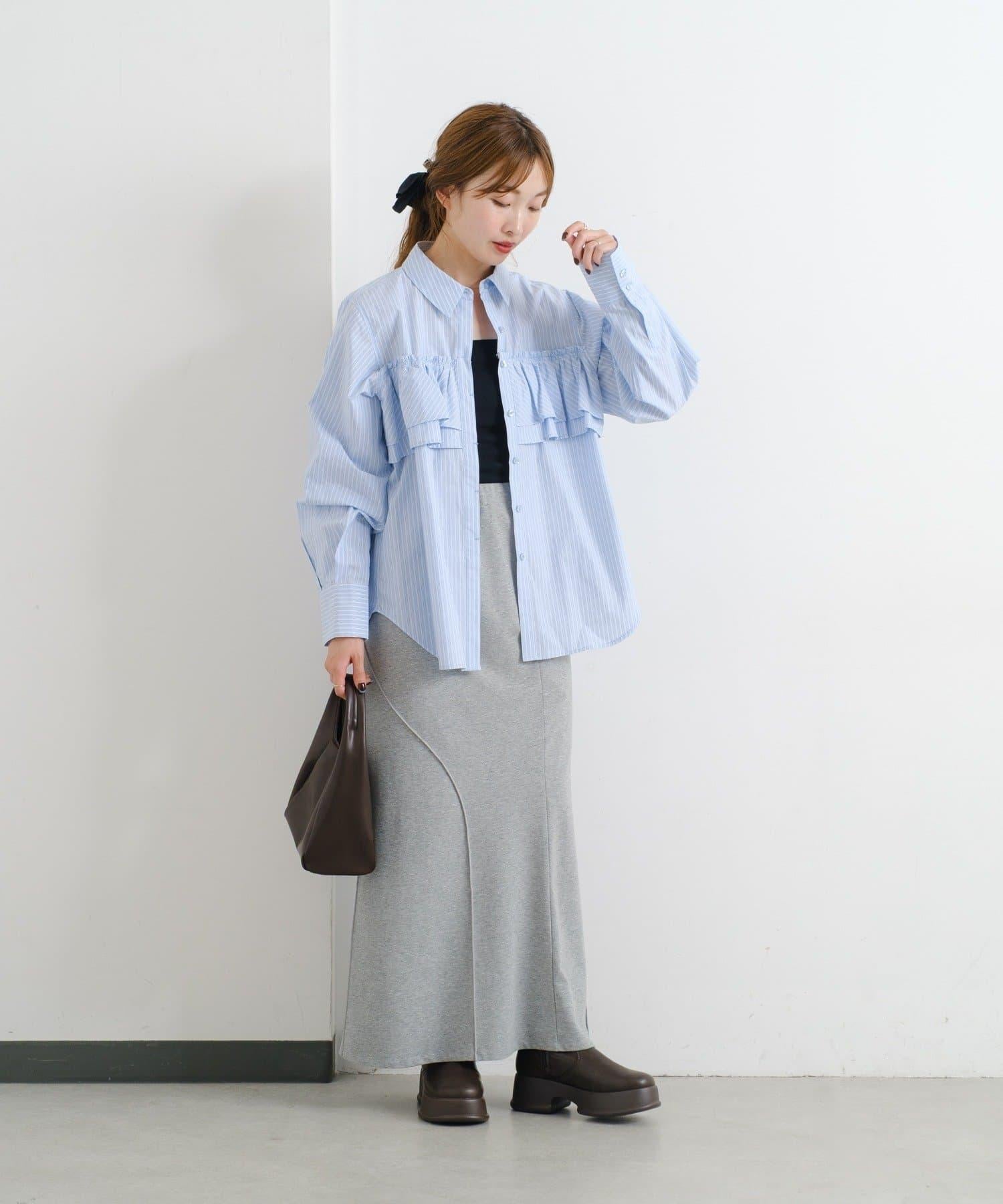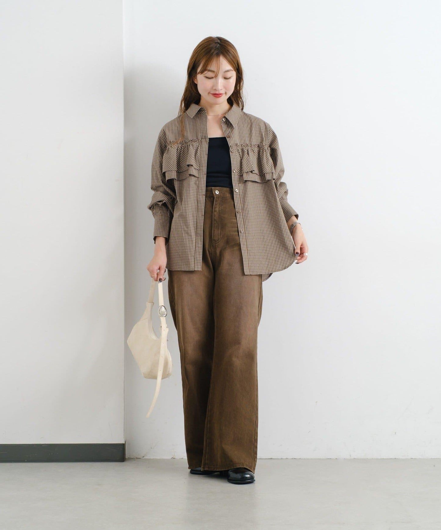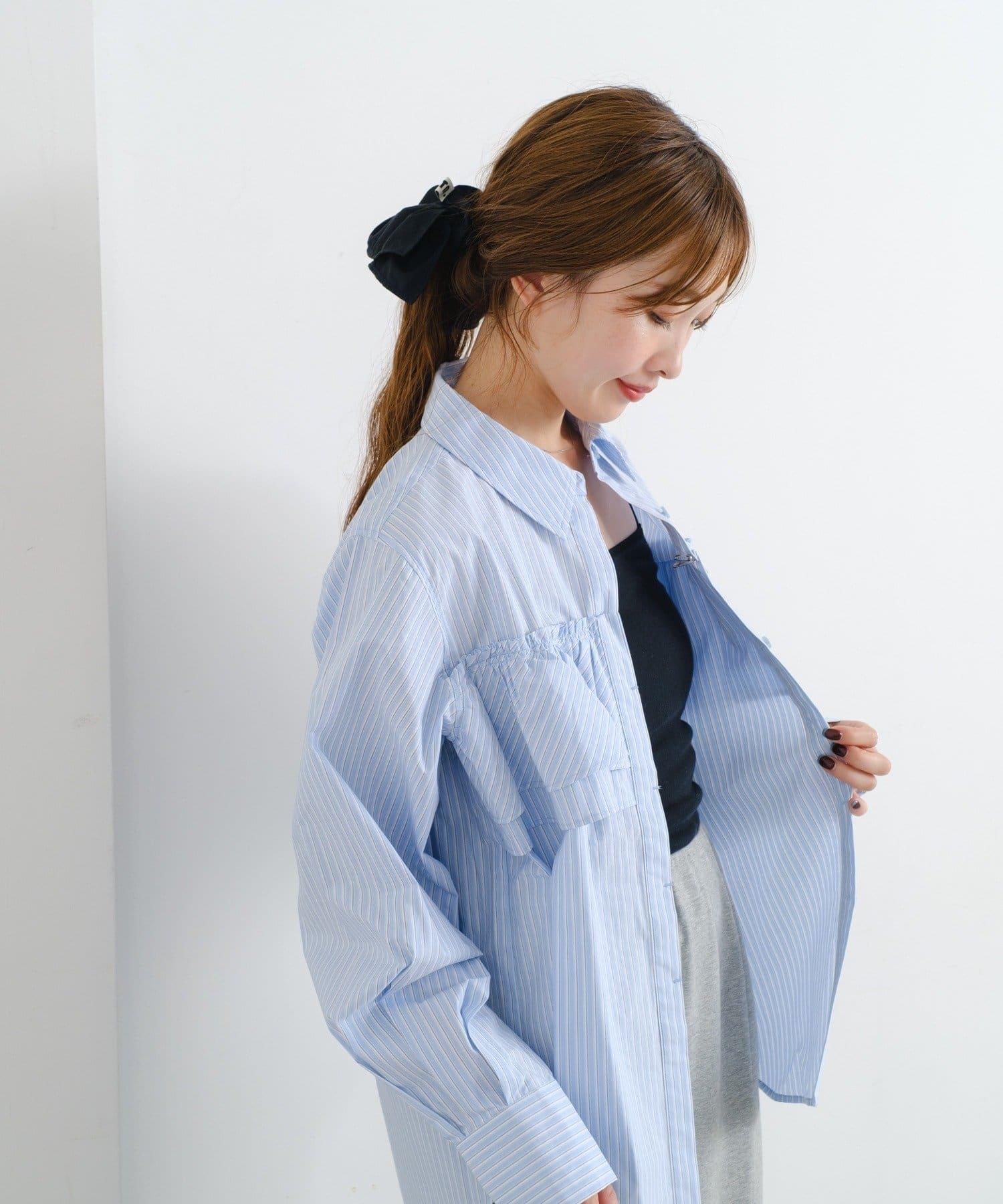 胸前聚攏的荷葉邊增添了女性的柔美,使這款襯衫簡約而不失力量。