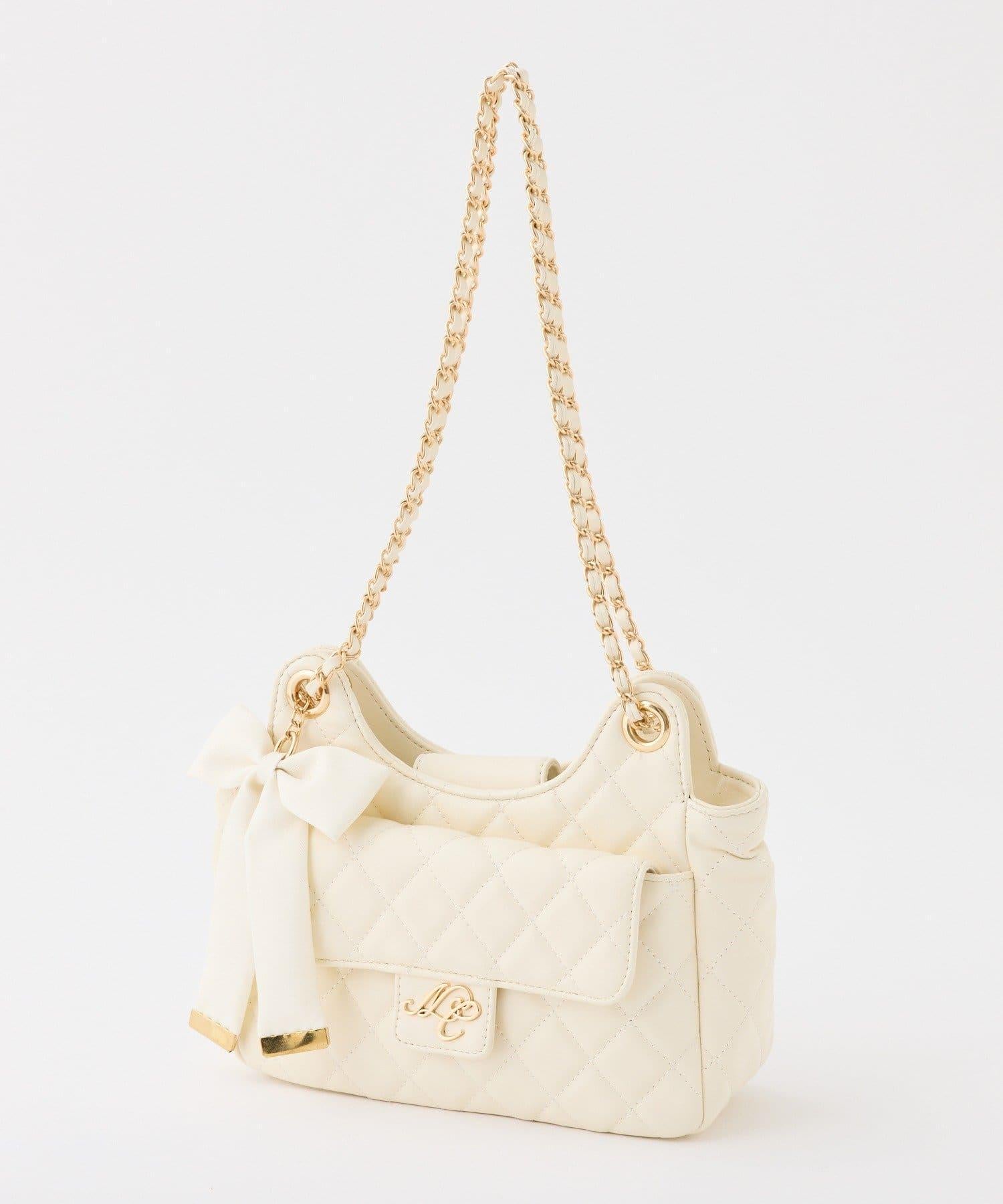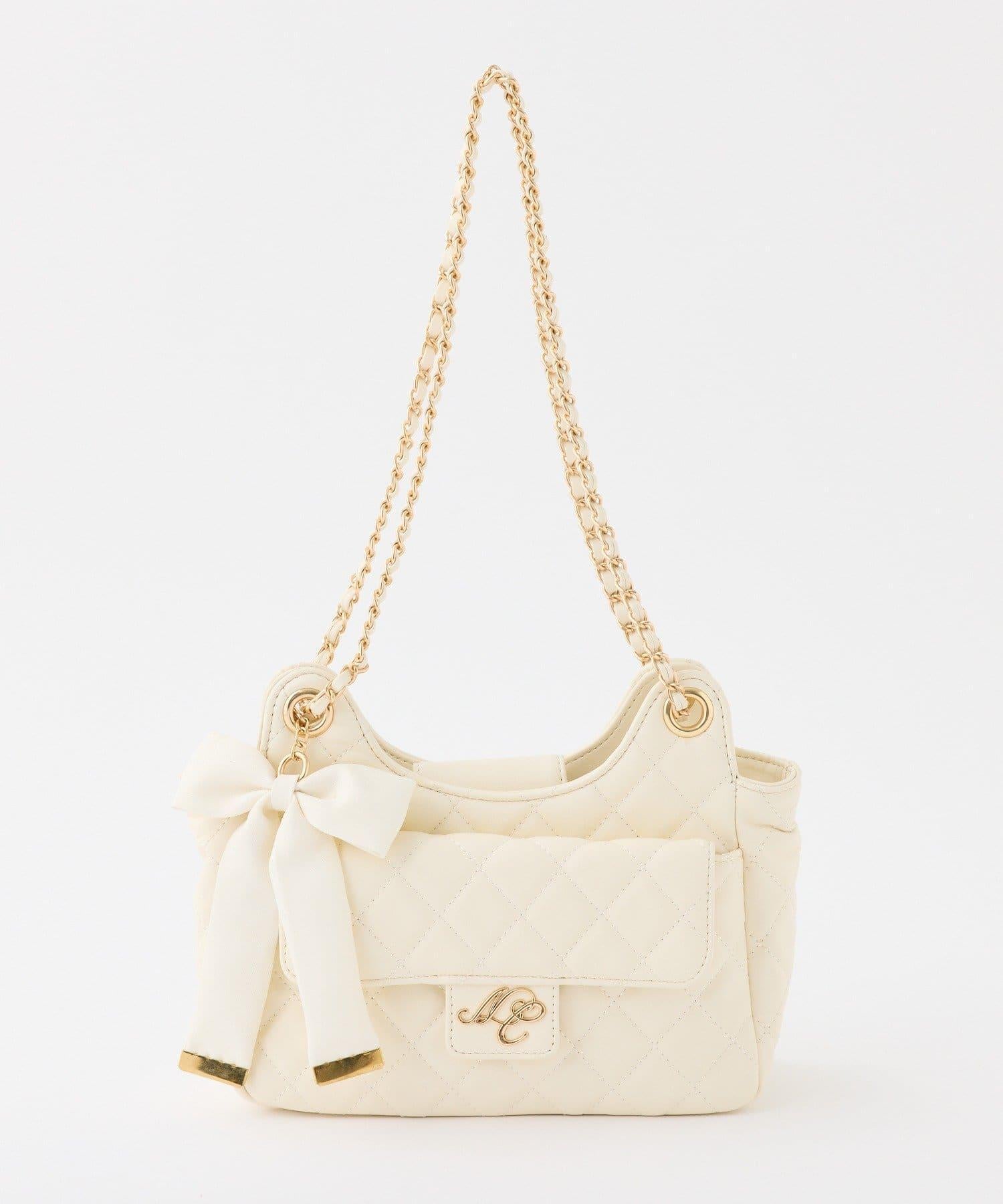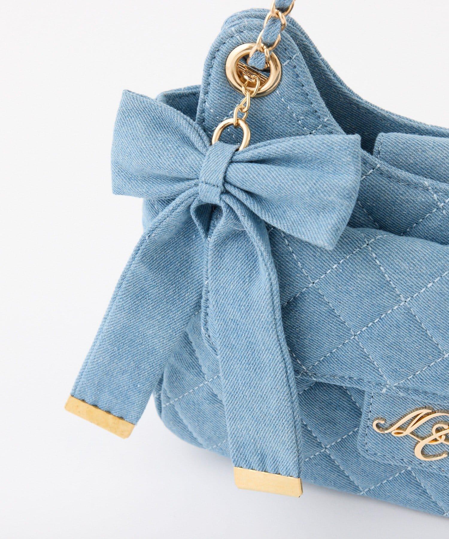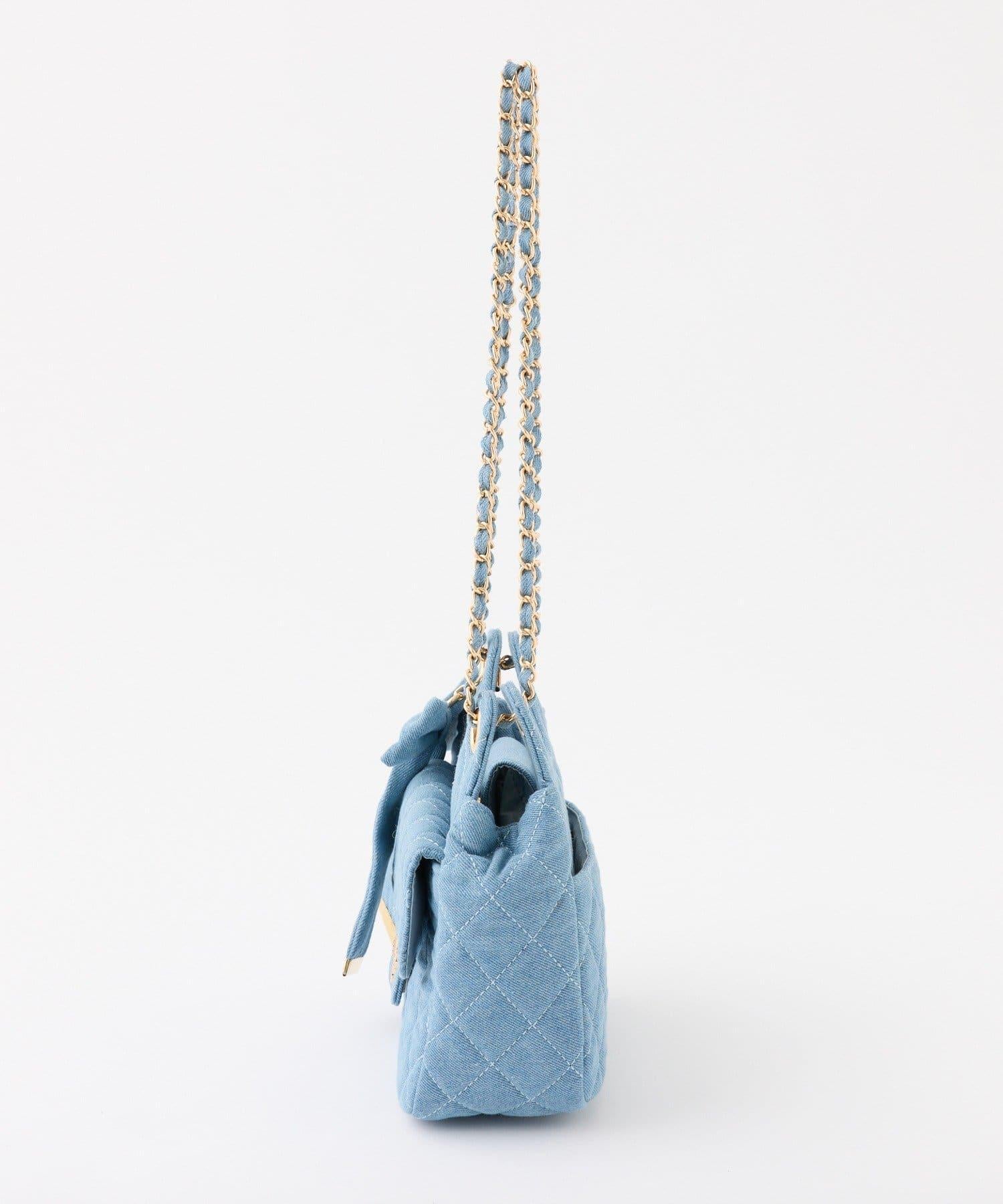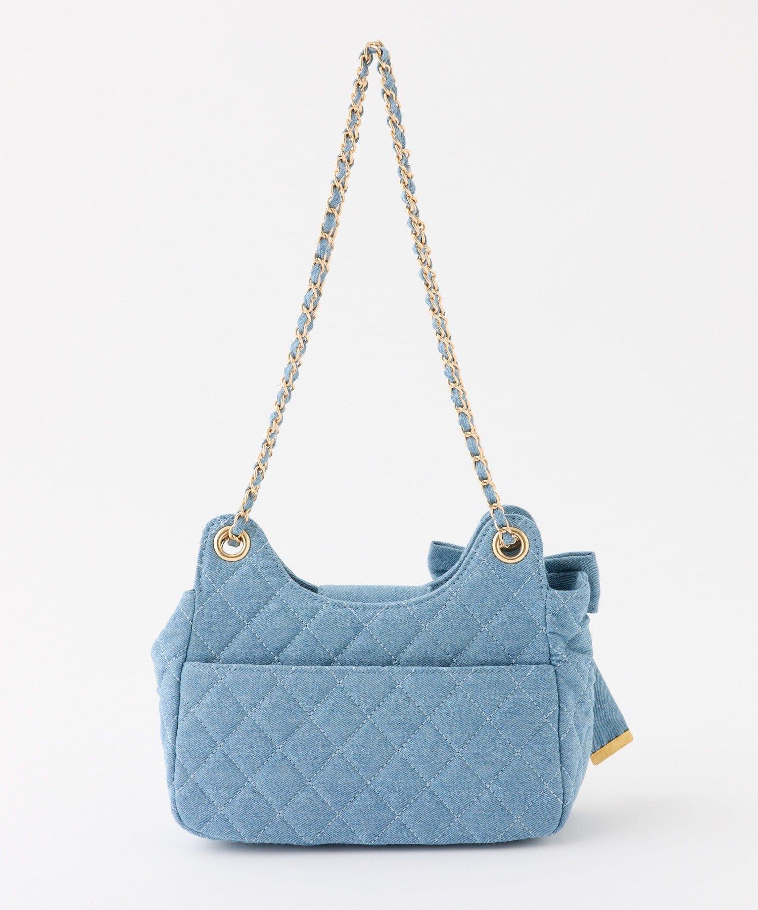 這款鏈條單肩迷你包採用醒目的絎縫設計和大號絲帶吊飾。